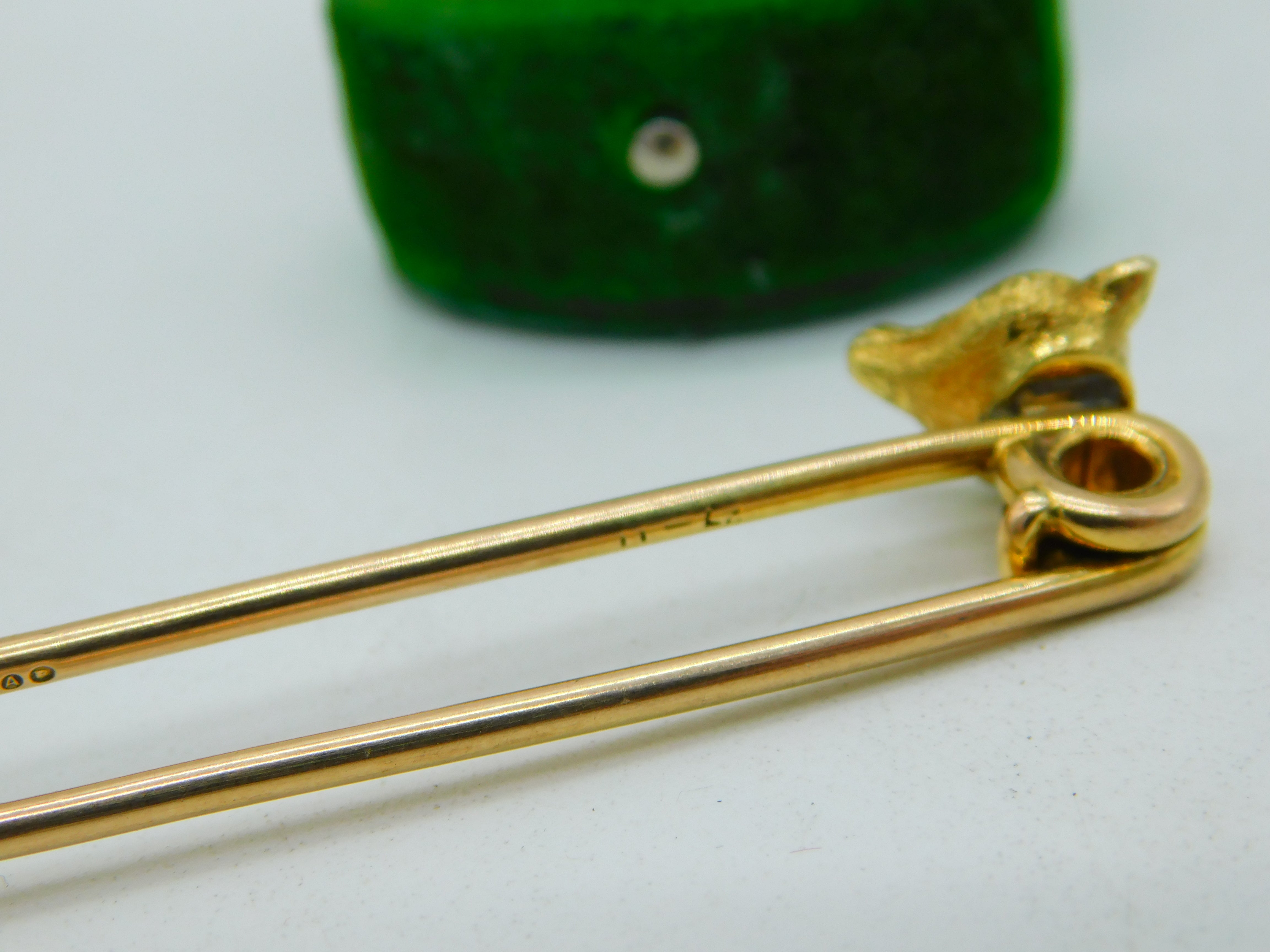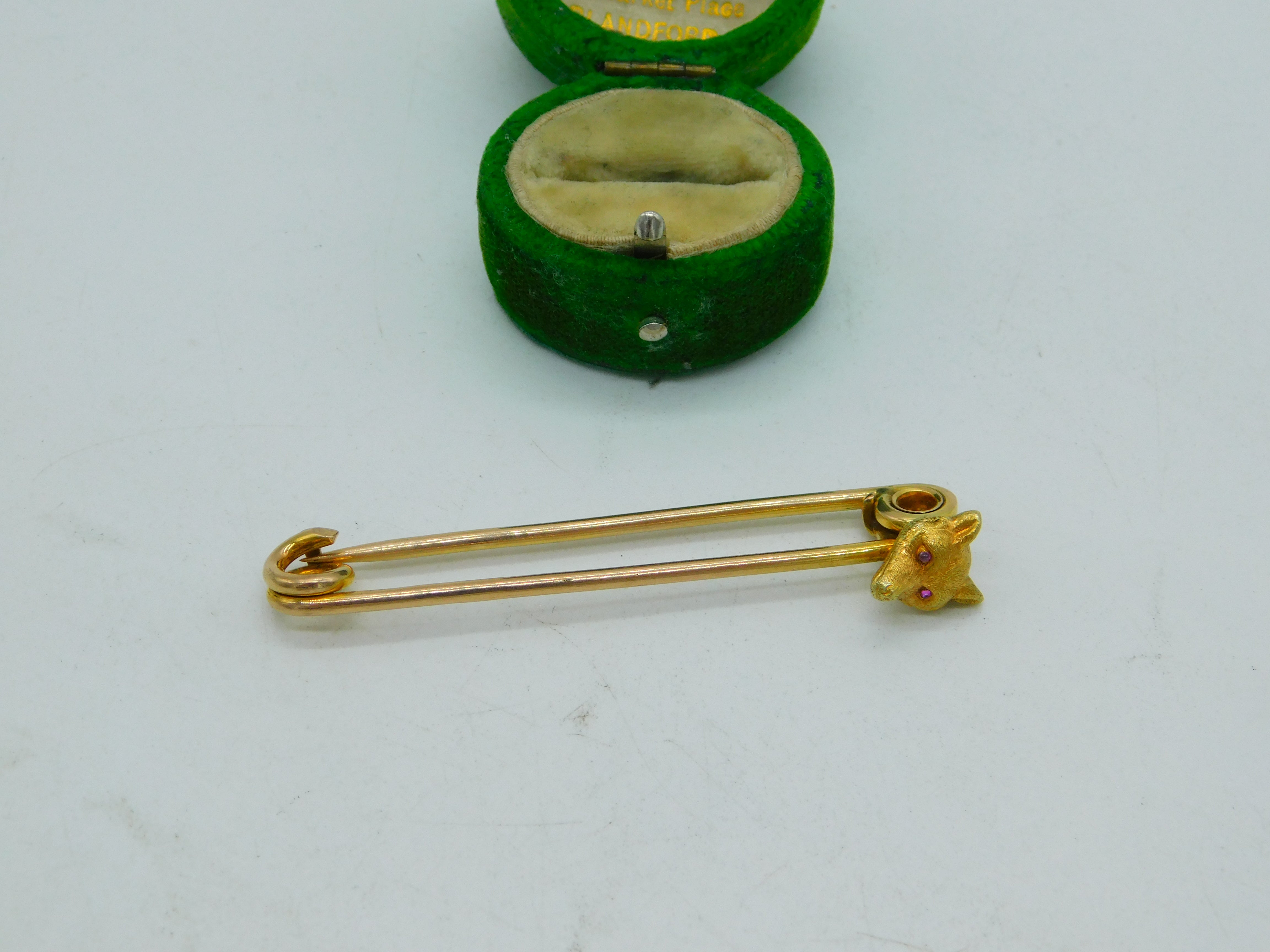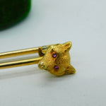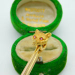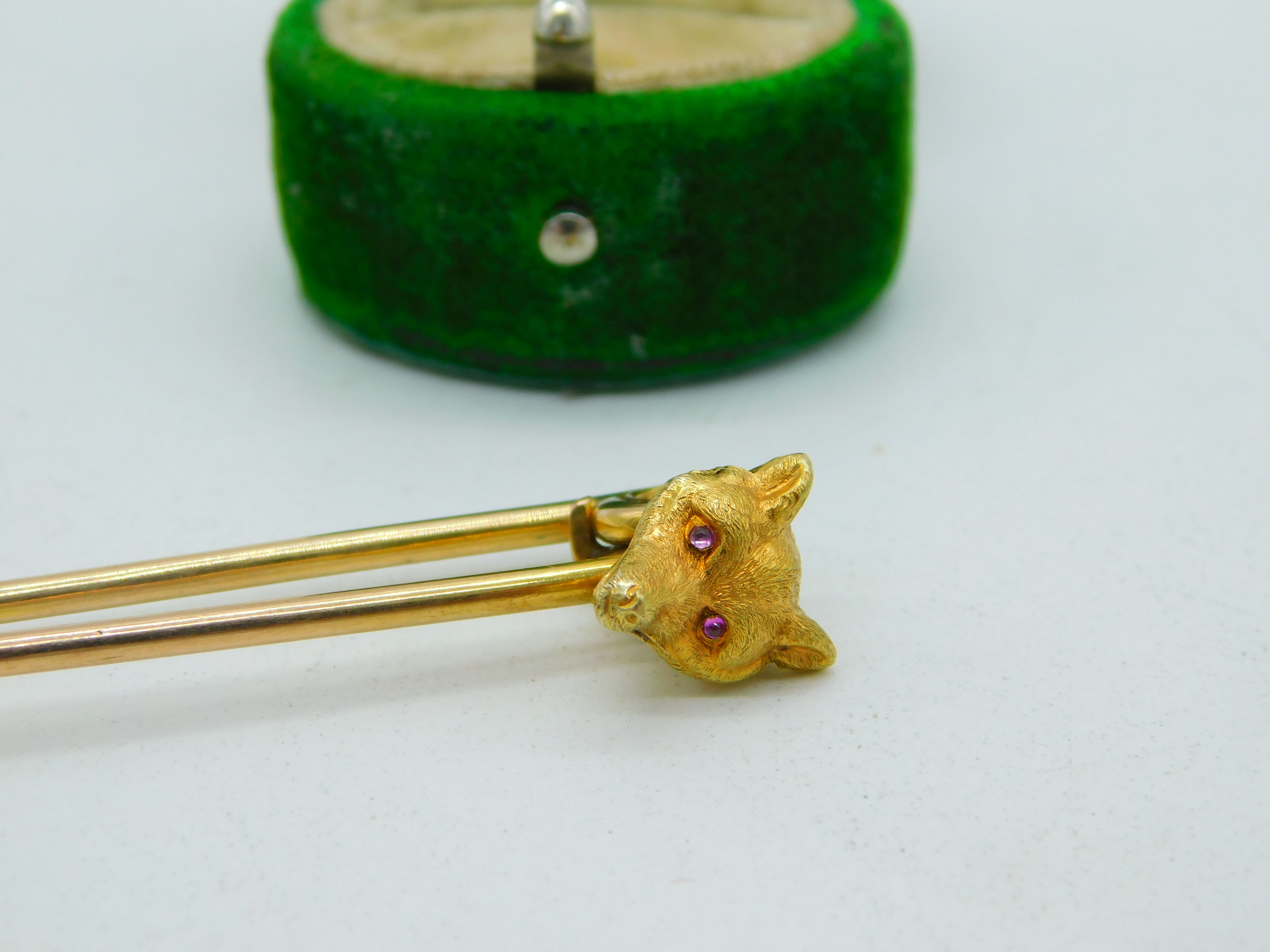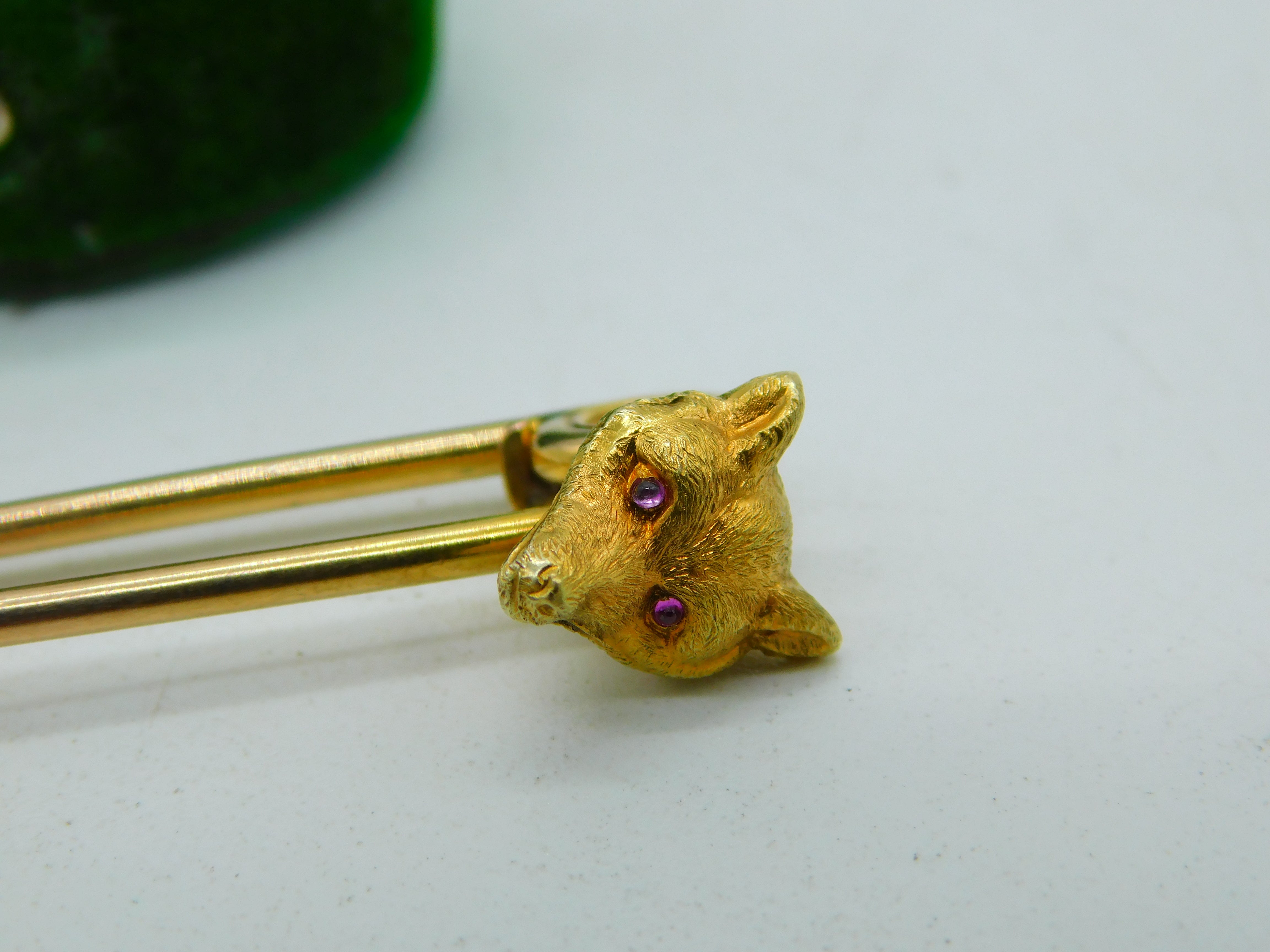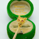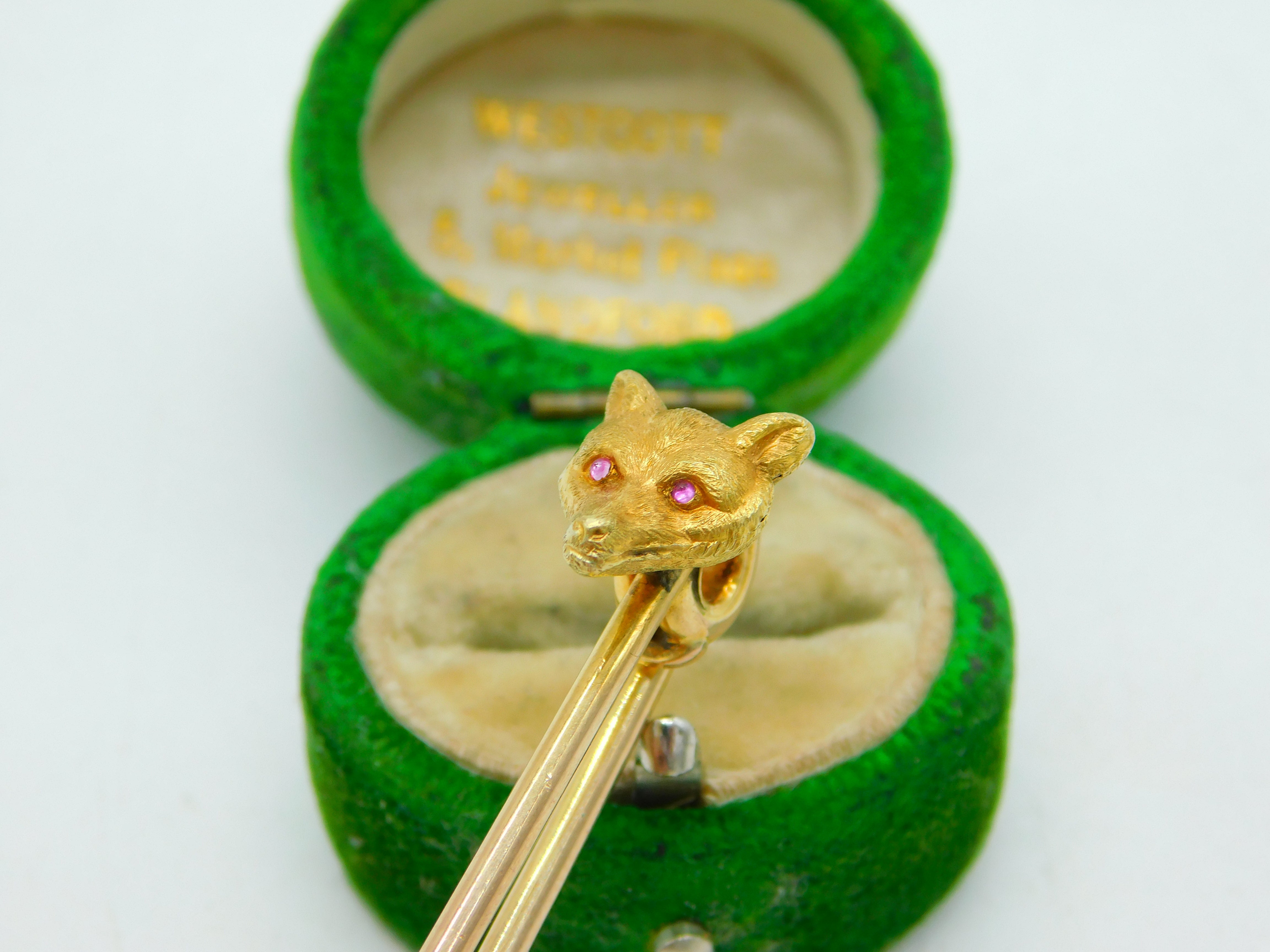 9ct & 18ct Yellow Gold Fox Mask Ruby Eye Hunting Stock Pin Brooch Antique 1936