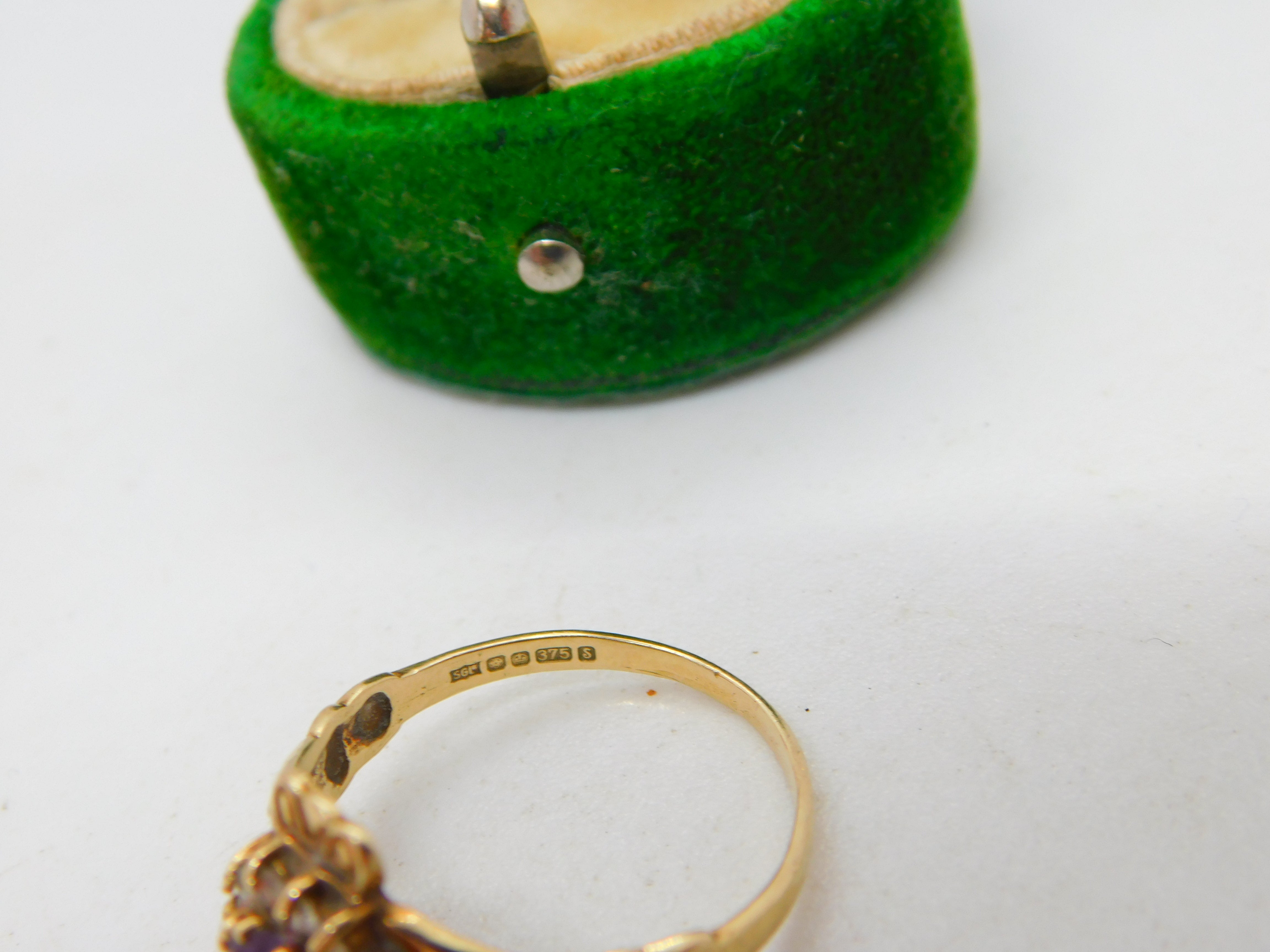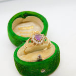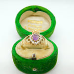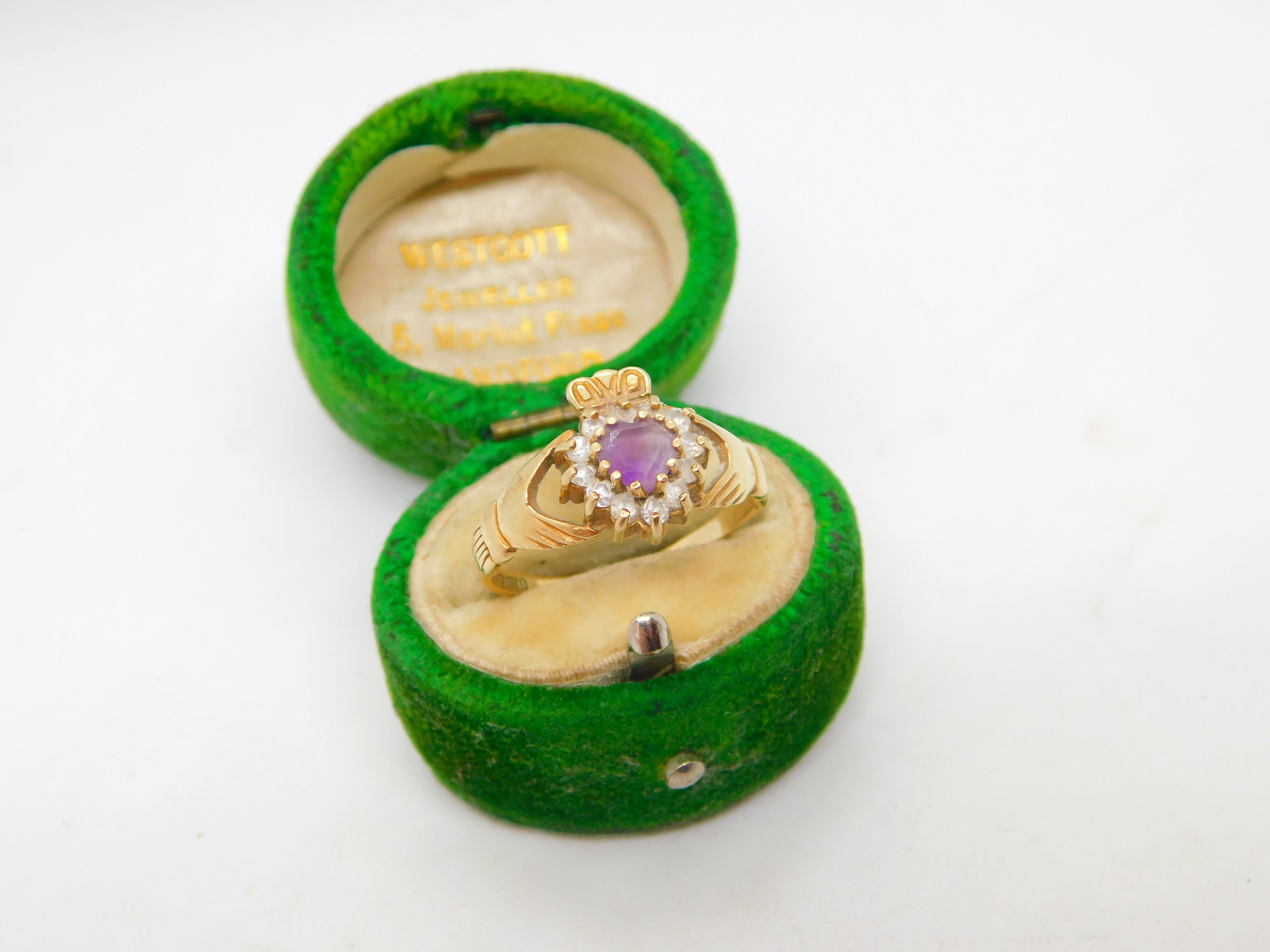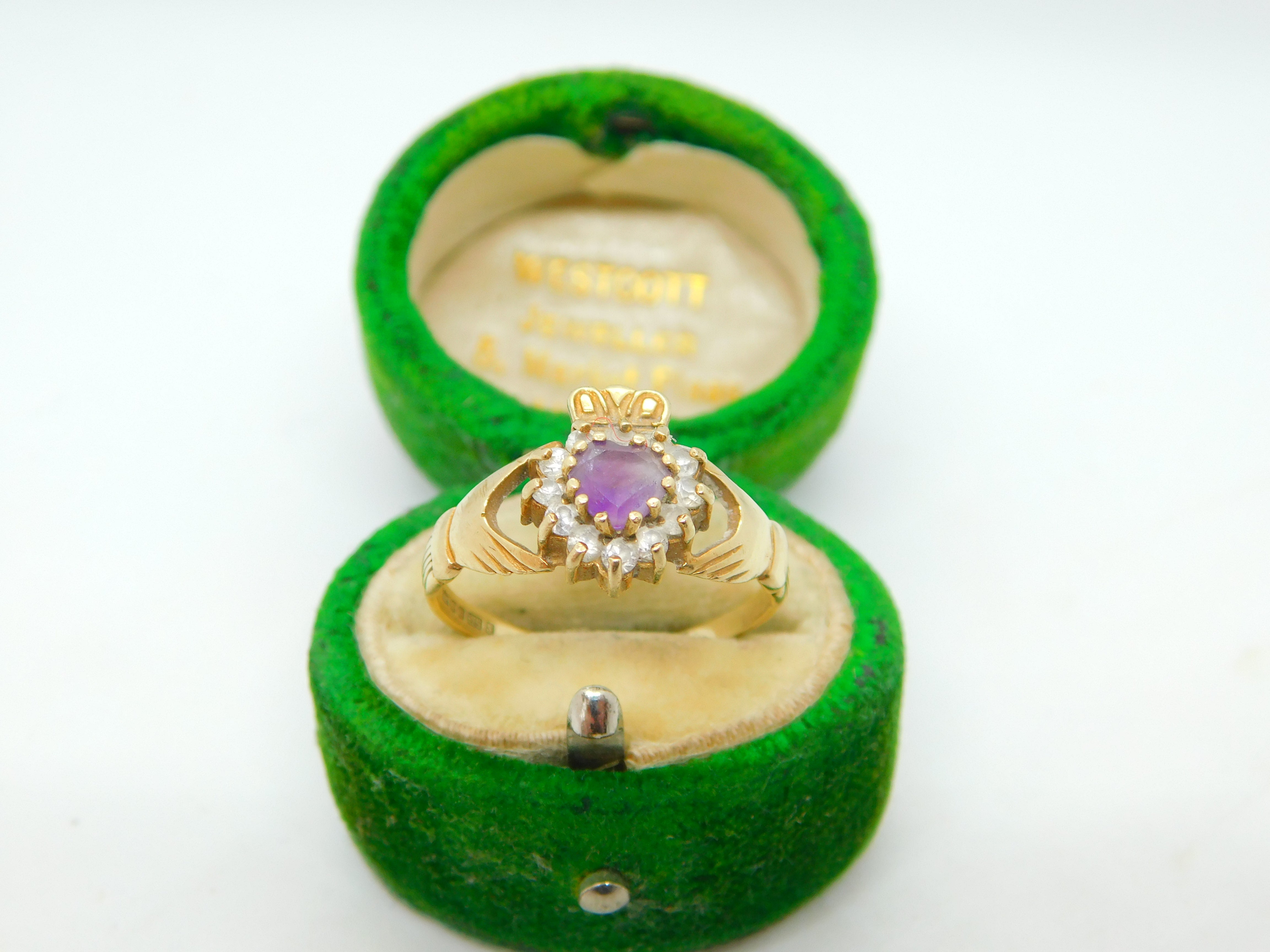 9ct Gold, Amethyst & Paste Set Irish Claddagh Wedding Ring Vintage 1973