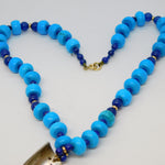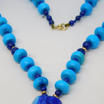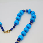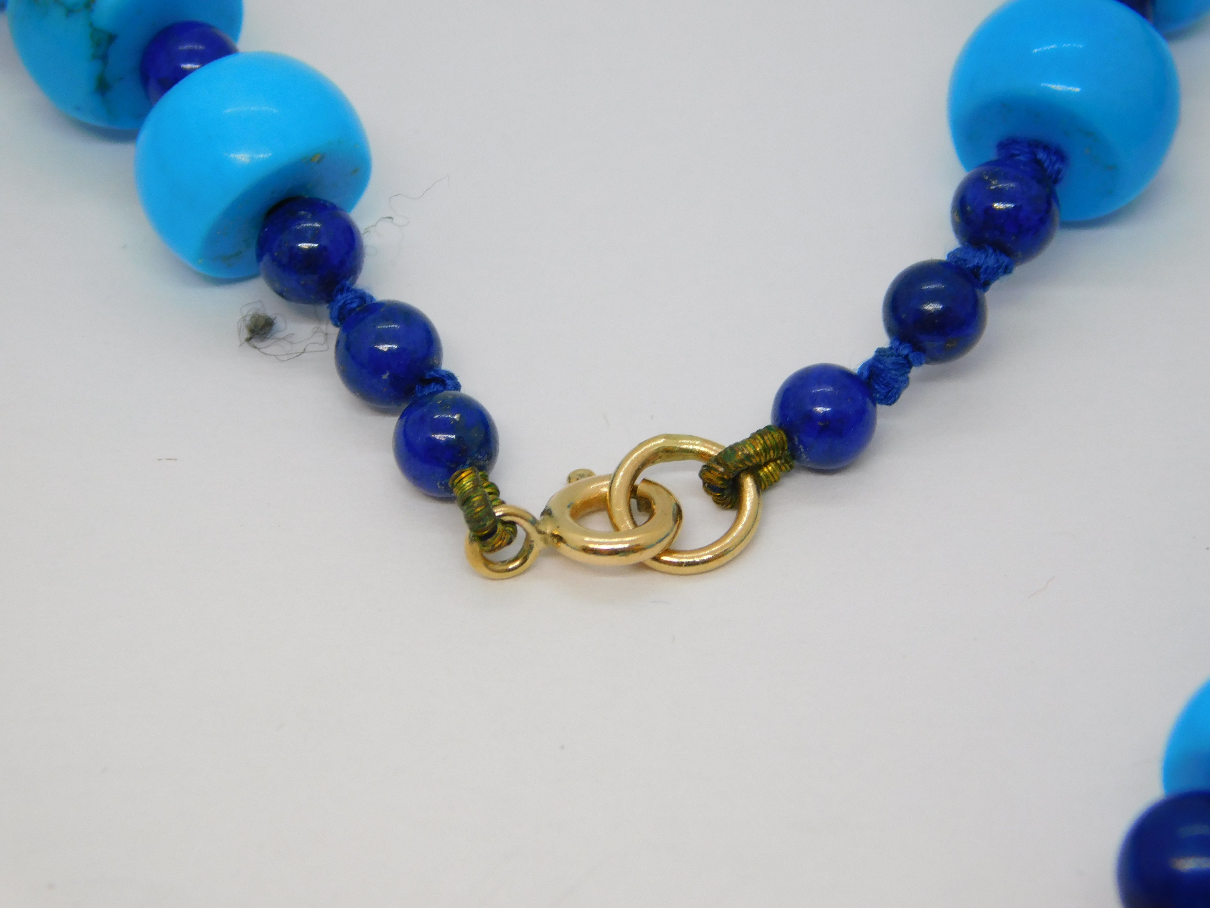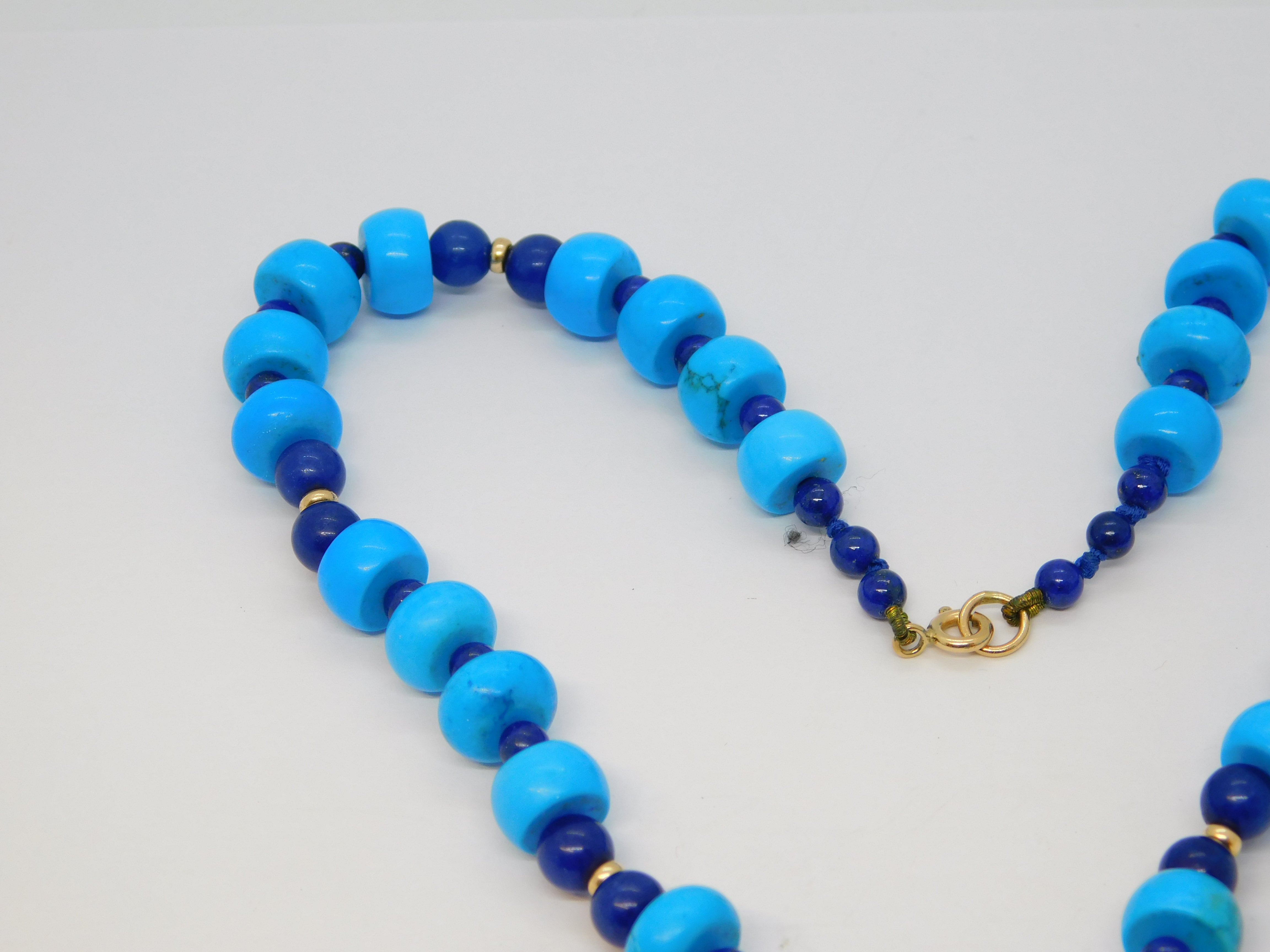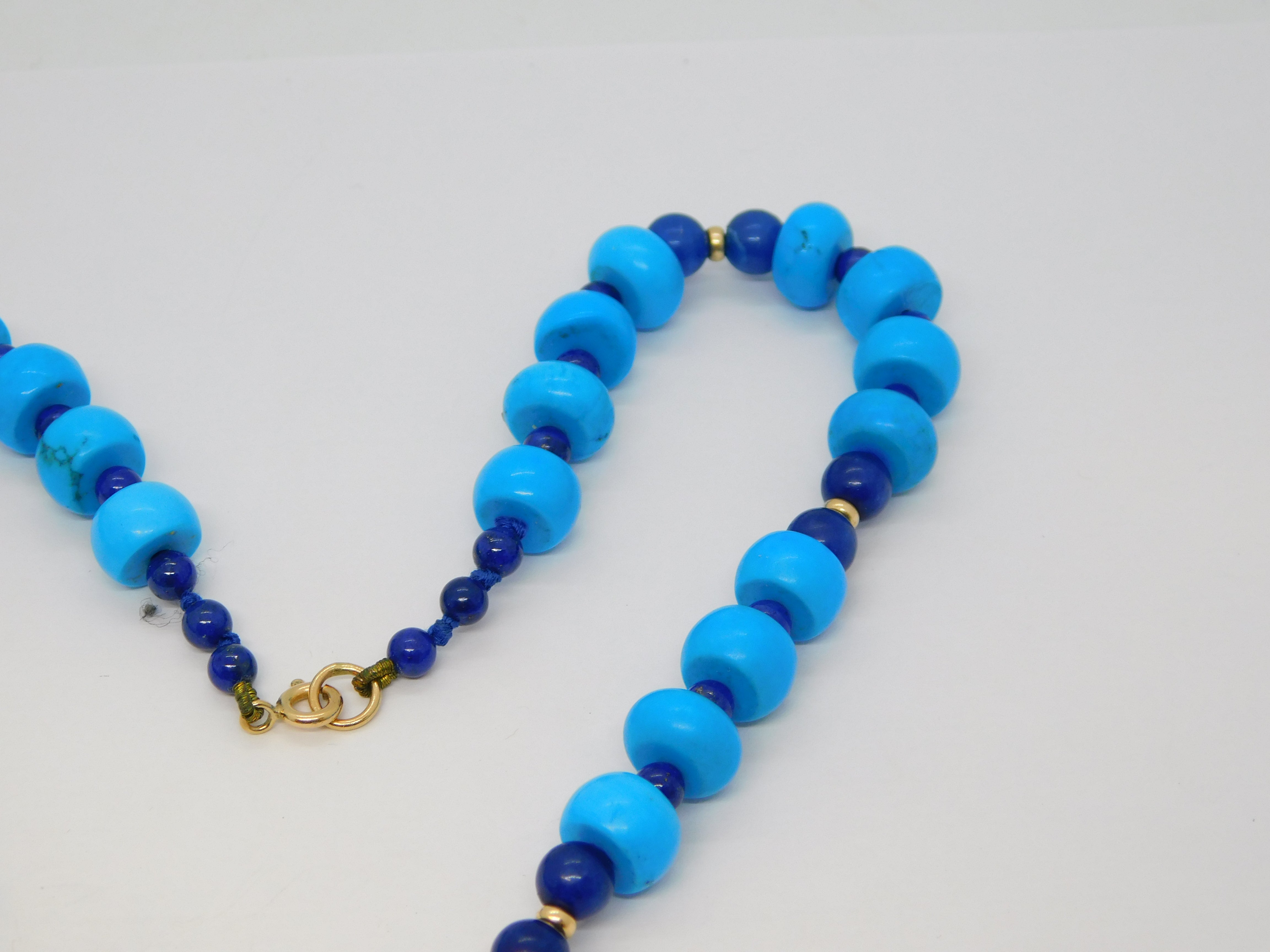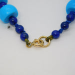 9ct Gold Beaded Turquoise & Lapis Lazuli Drop Necklace Vintage 2008 London