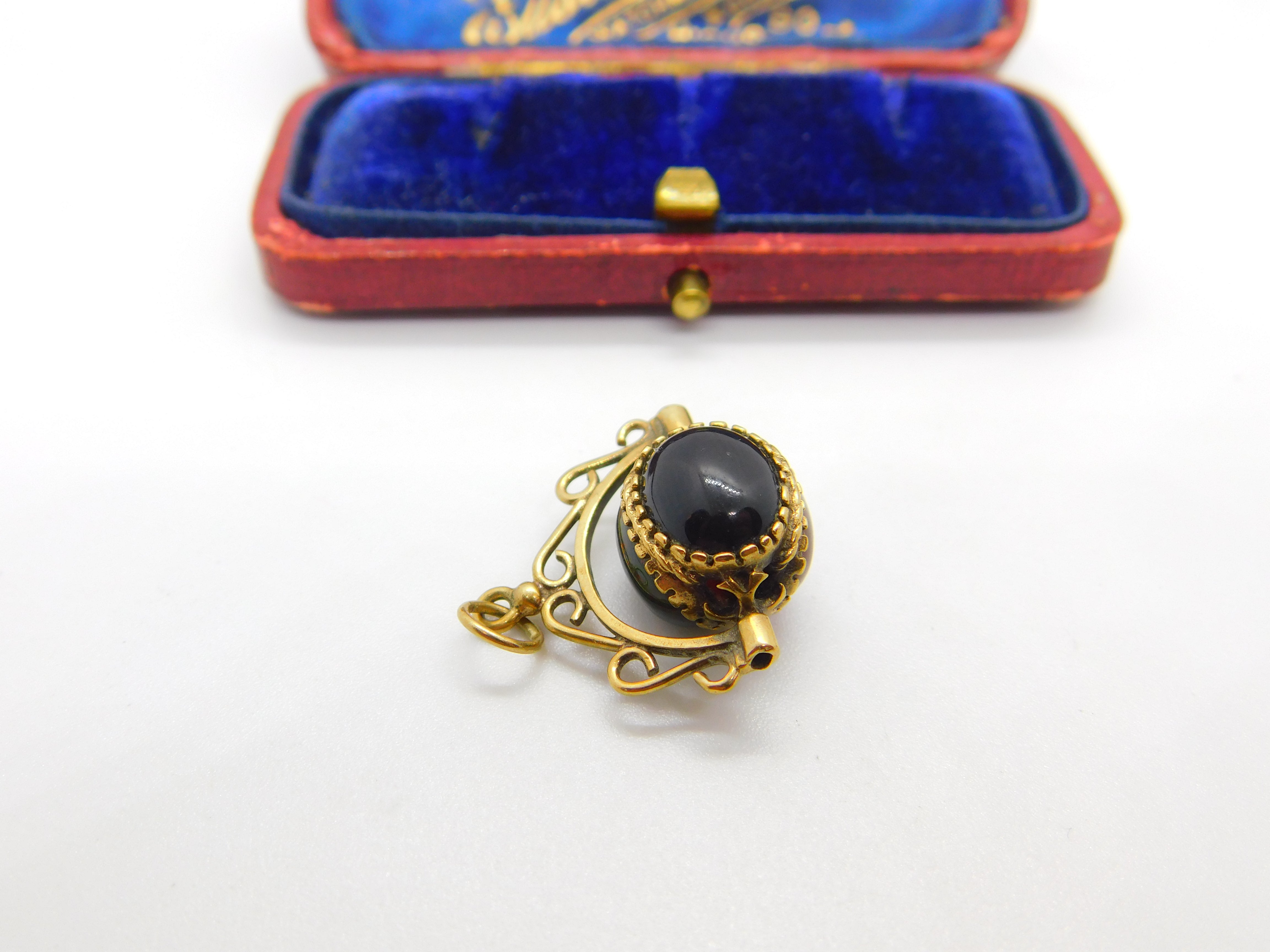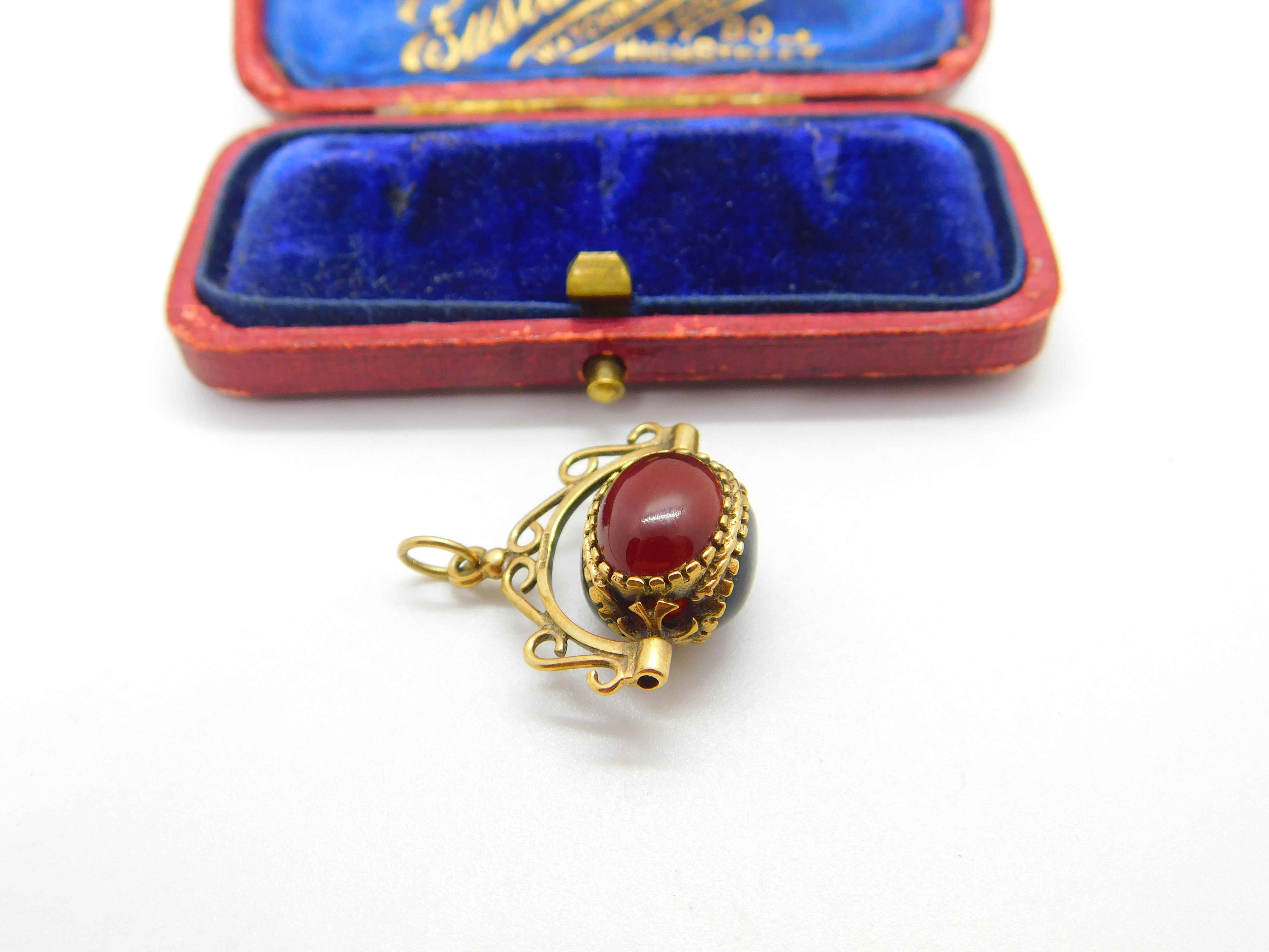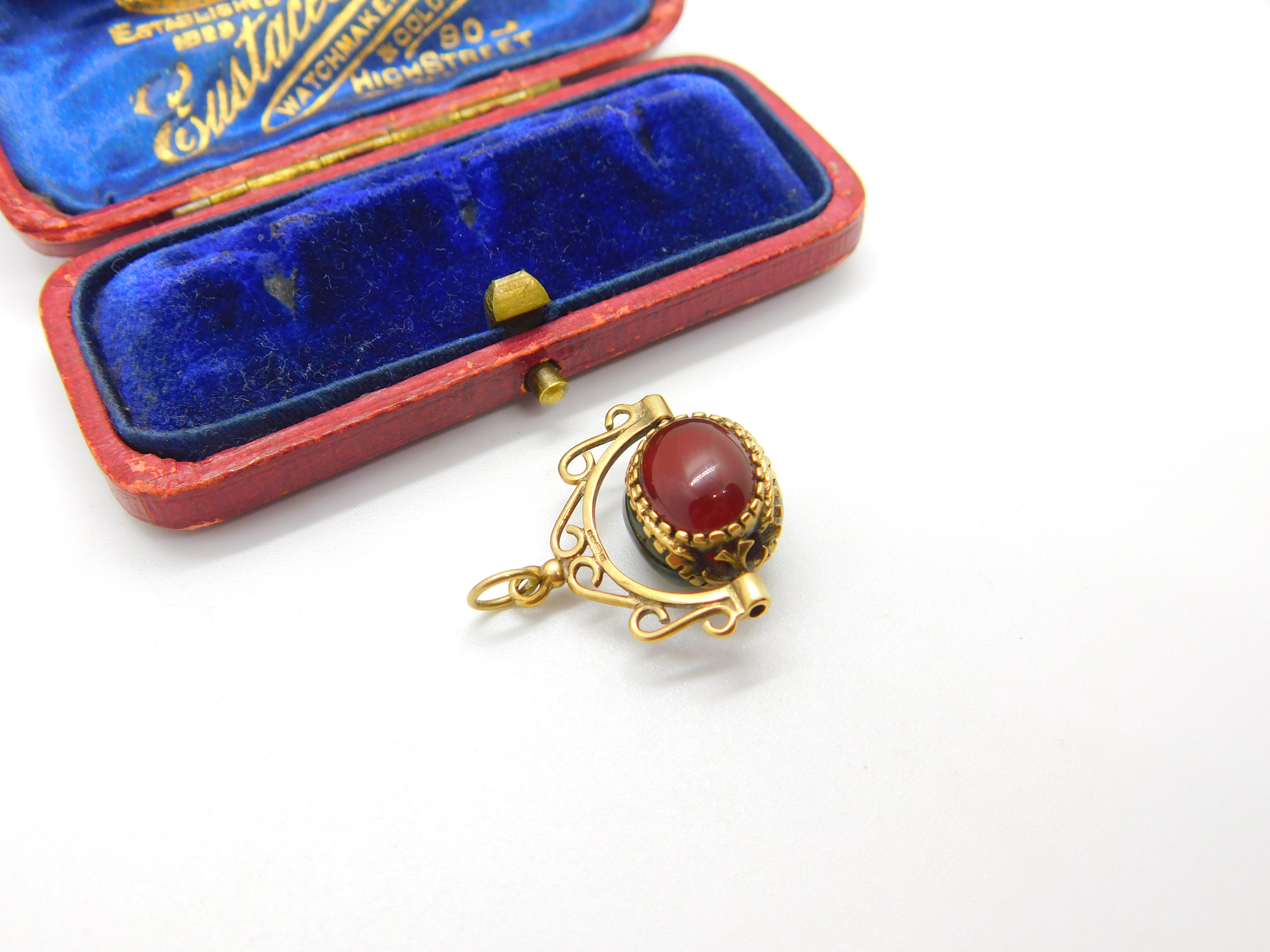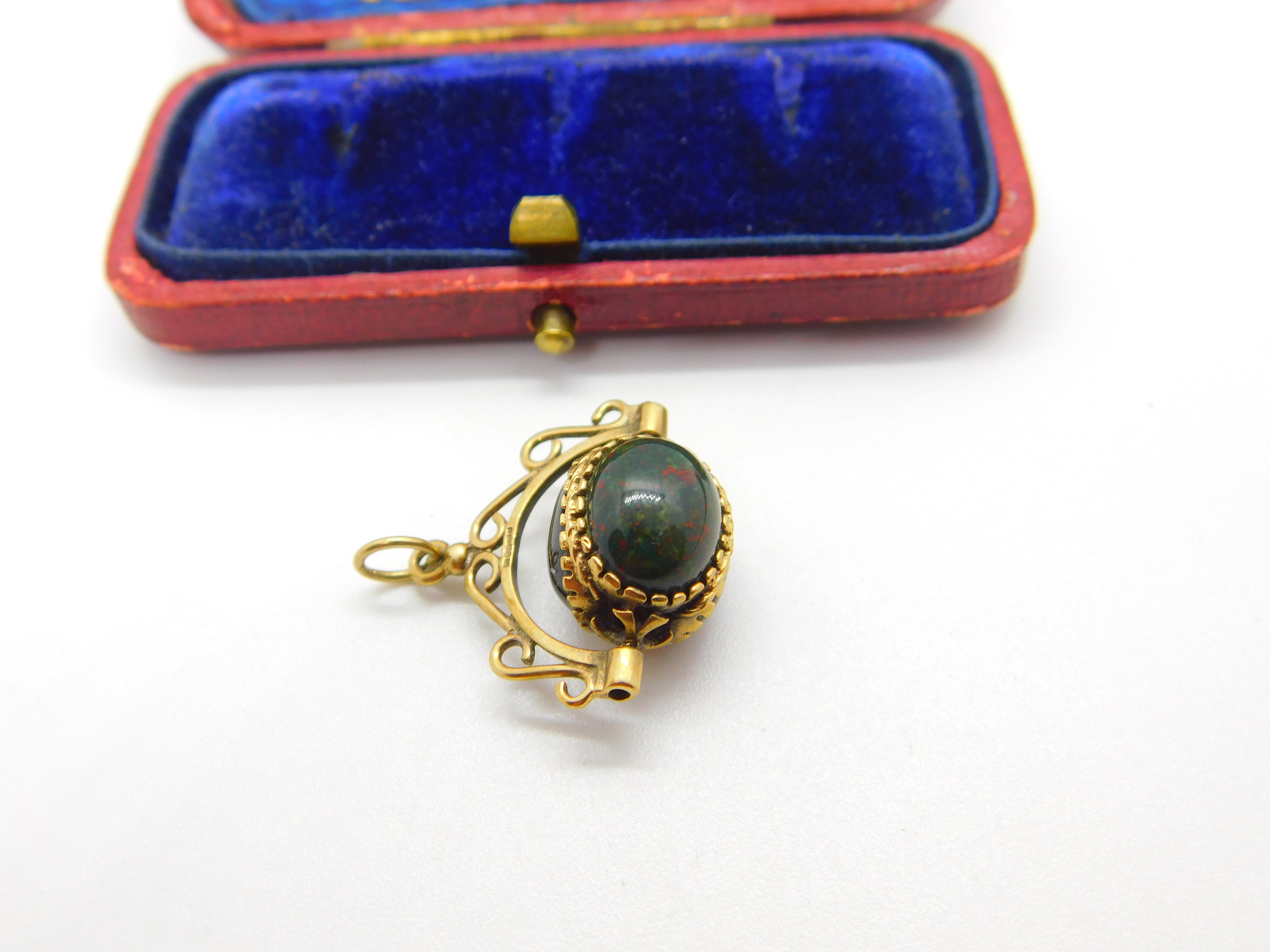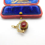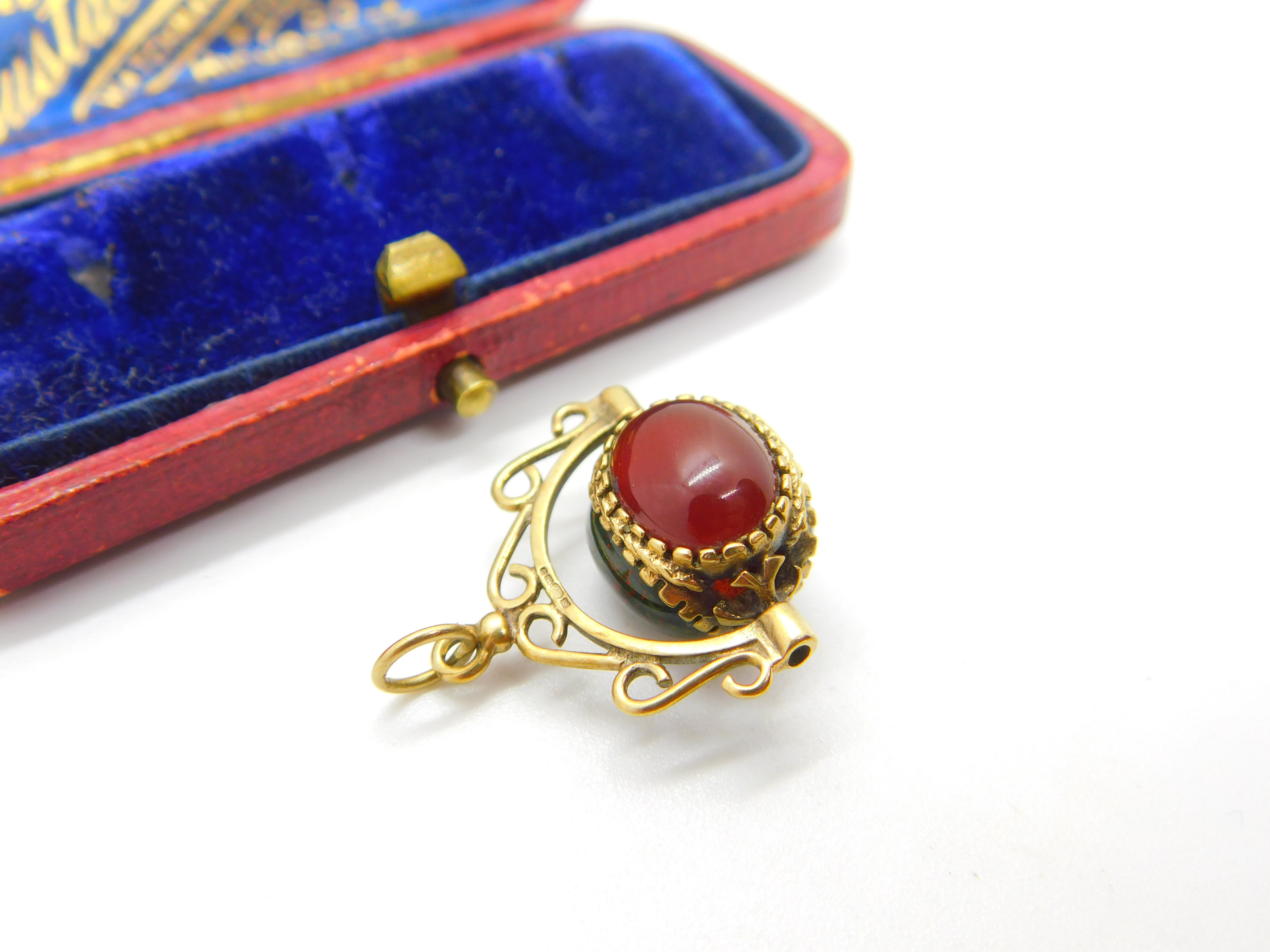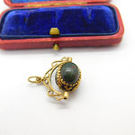 9ct Gold Bloodstone, Carnelian, Onyx Spinner Fob Pendant Vintage c1990