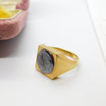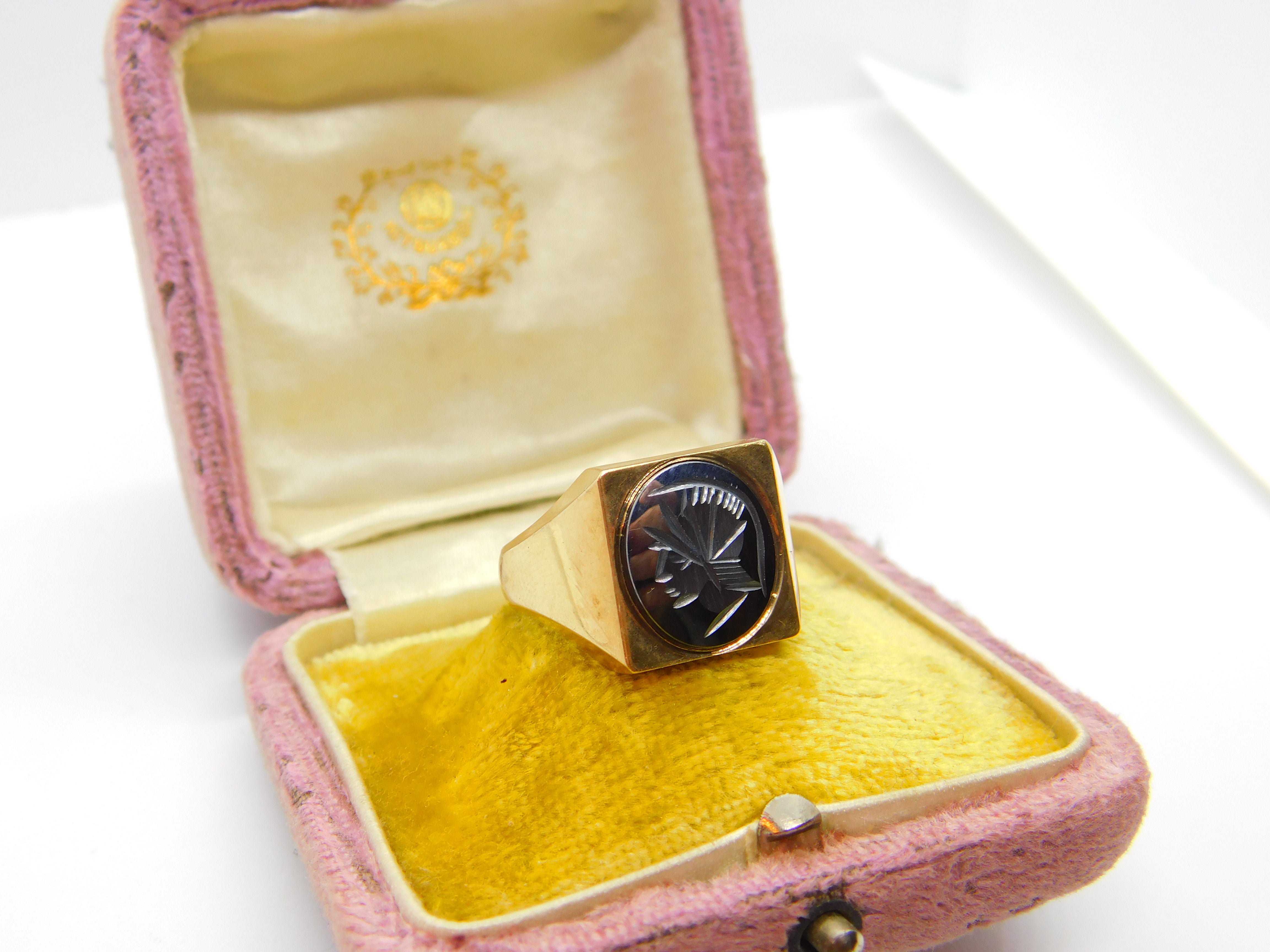 9ct Gold & Carved Haematite Centurion Signet Ring Vintage 1975 Birmingham