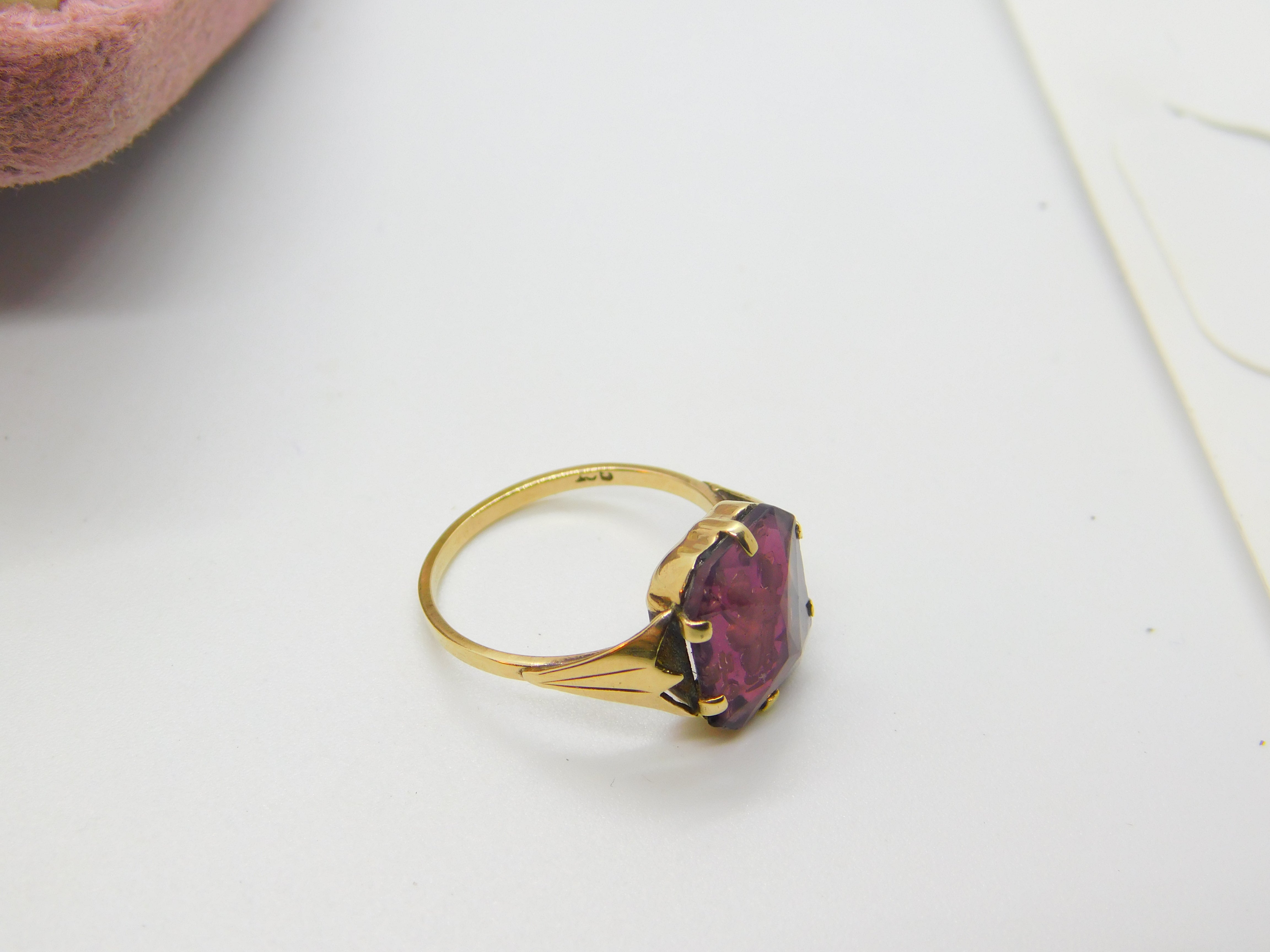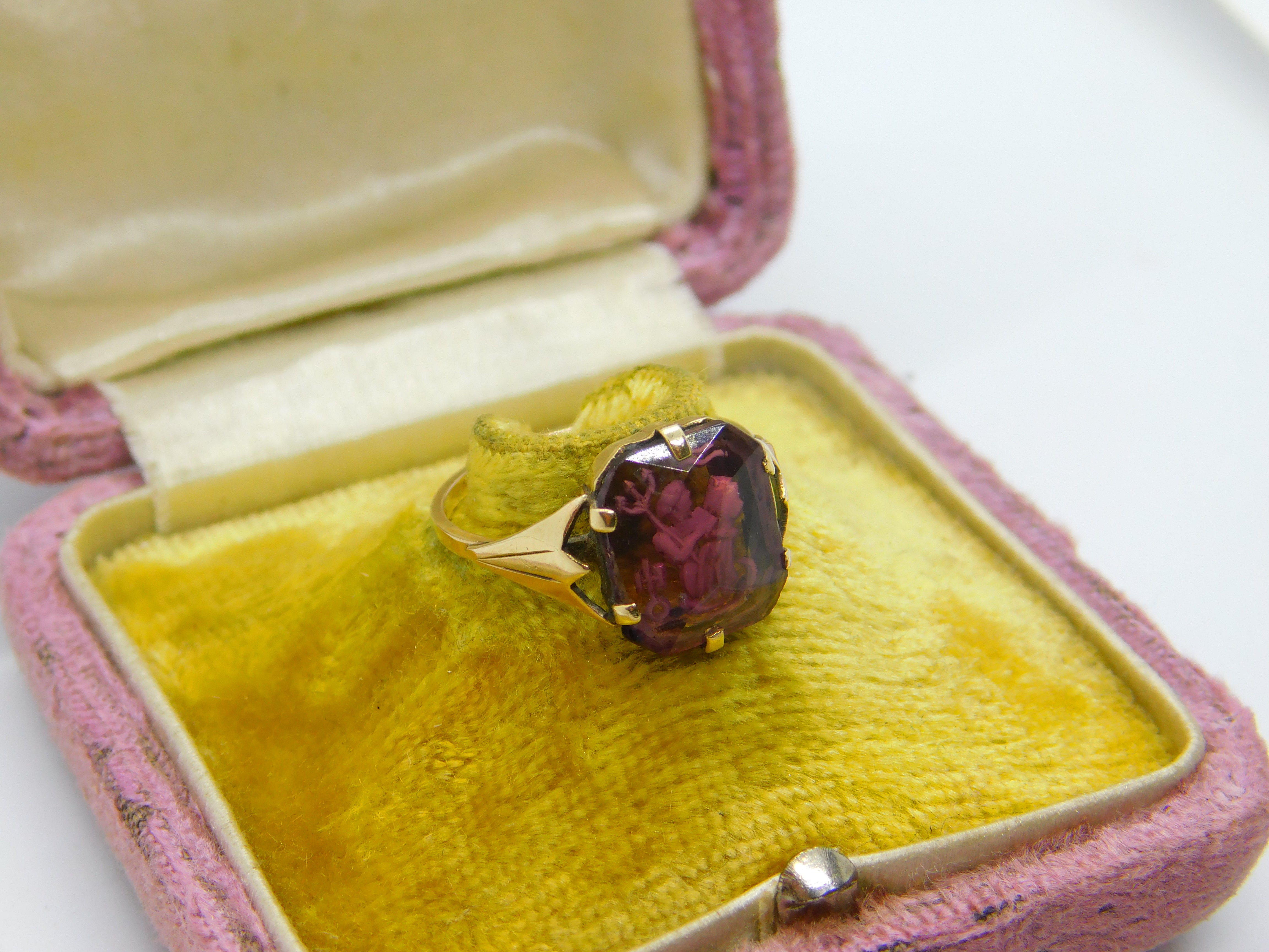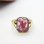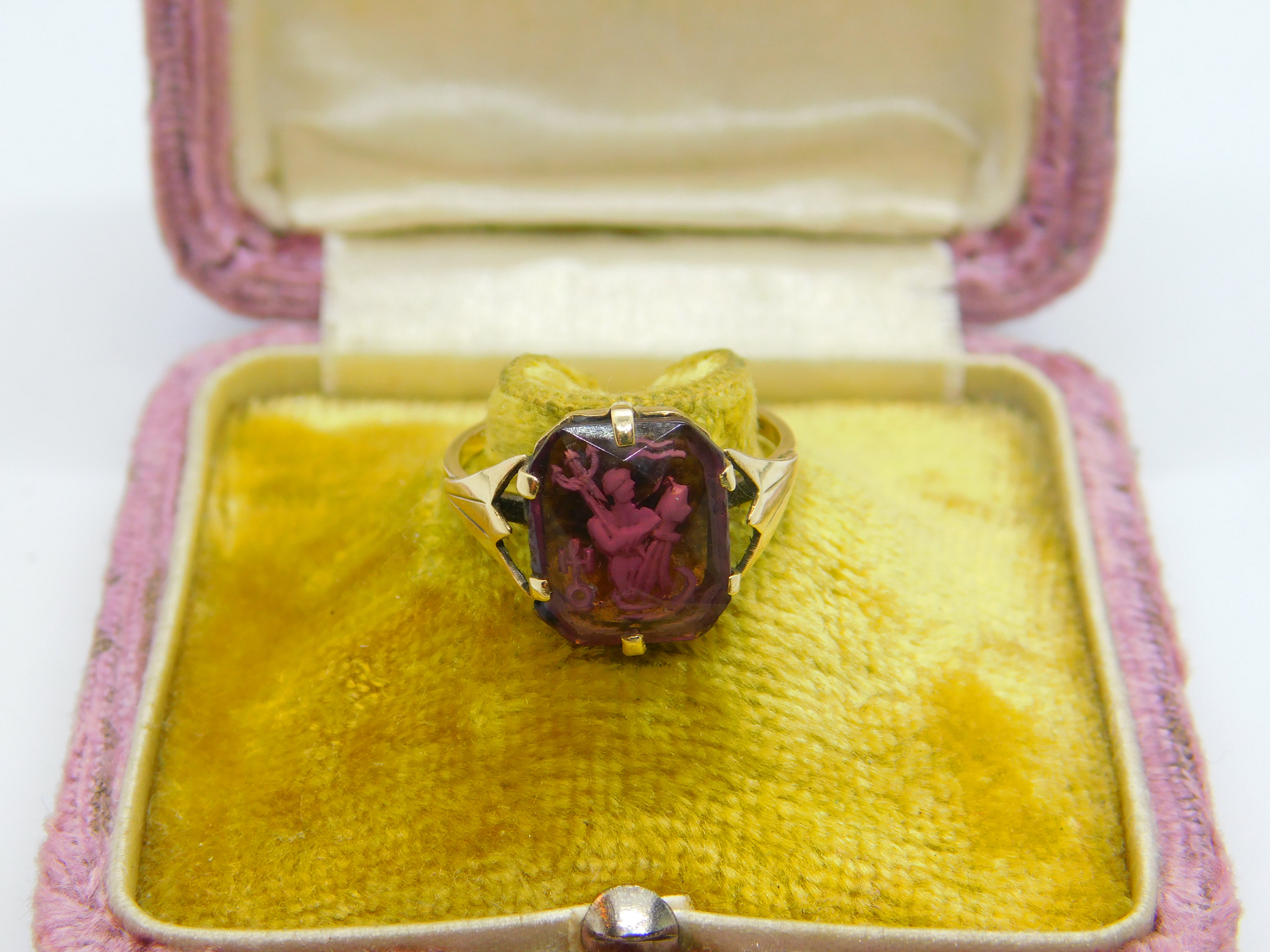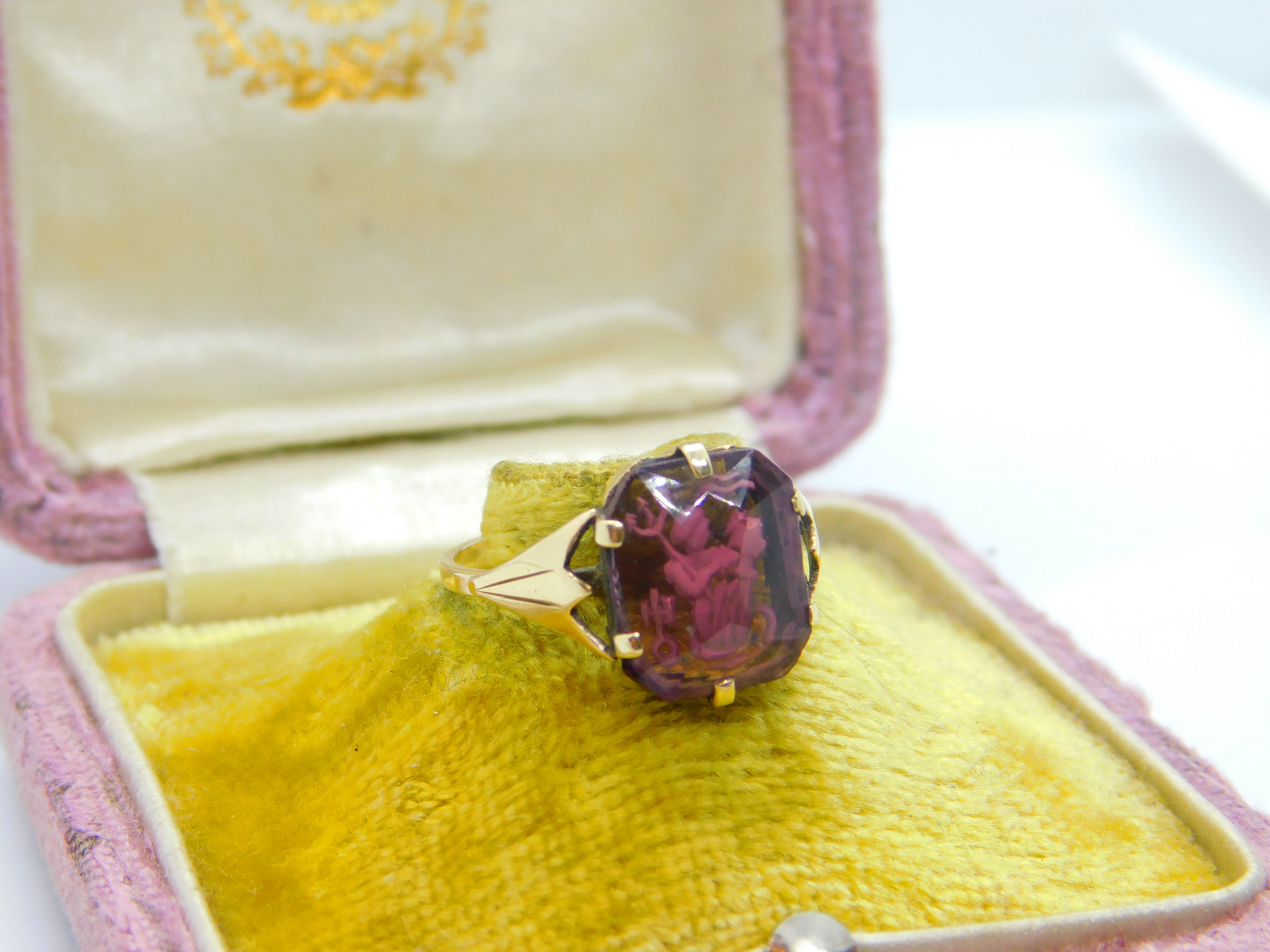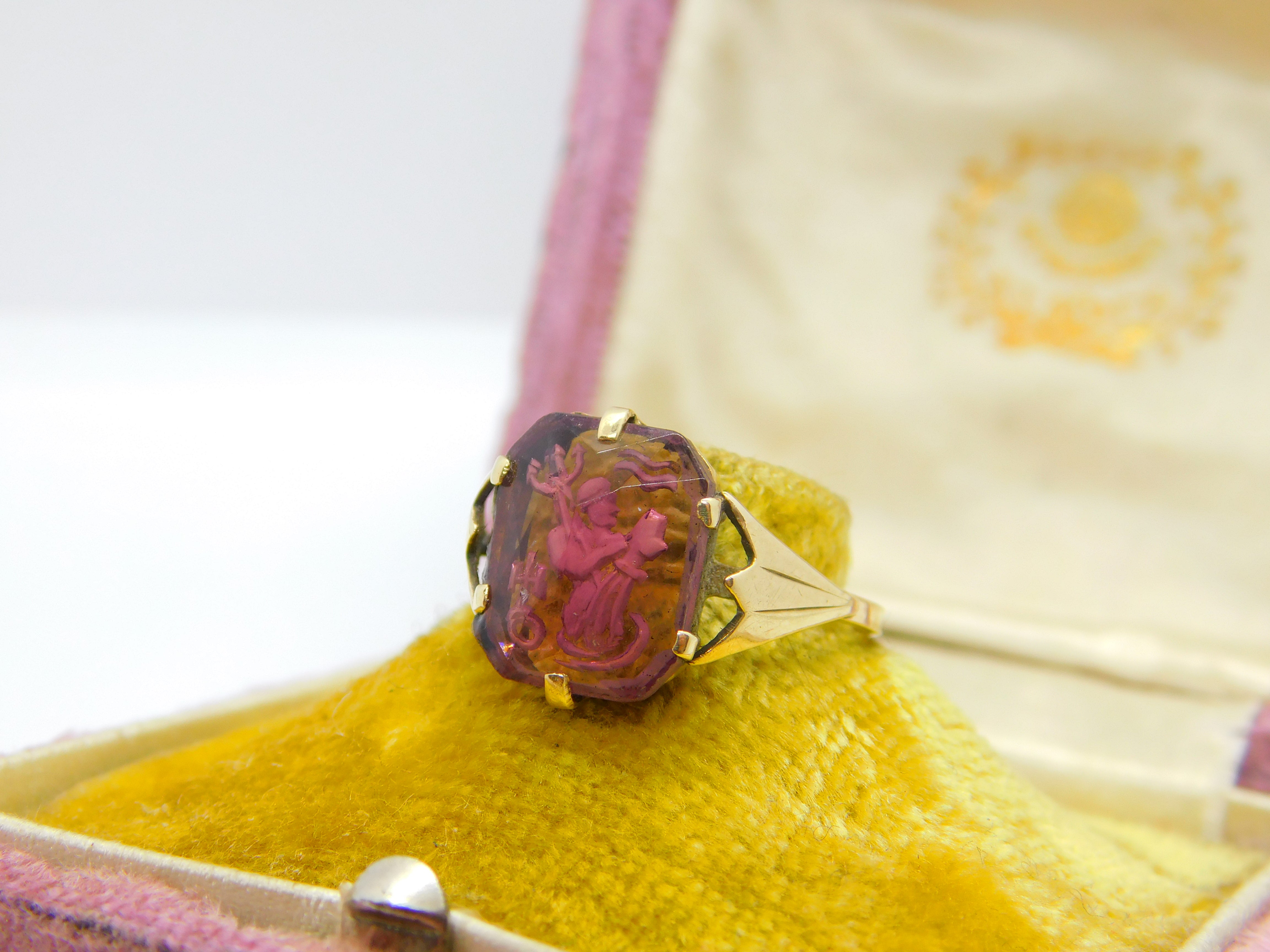 9ct Gold & Carved Purple Glass Intaglio of Neptune Antique c1920 Art Deco