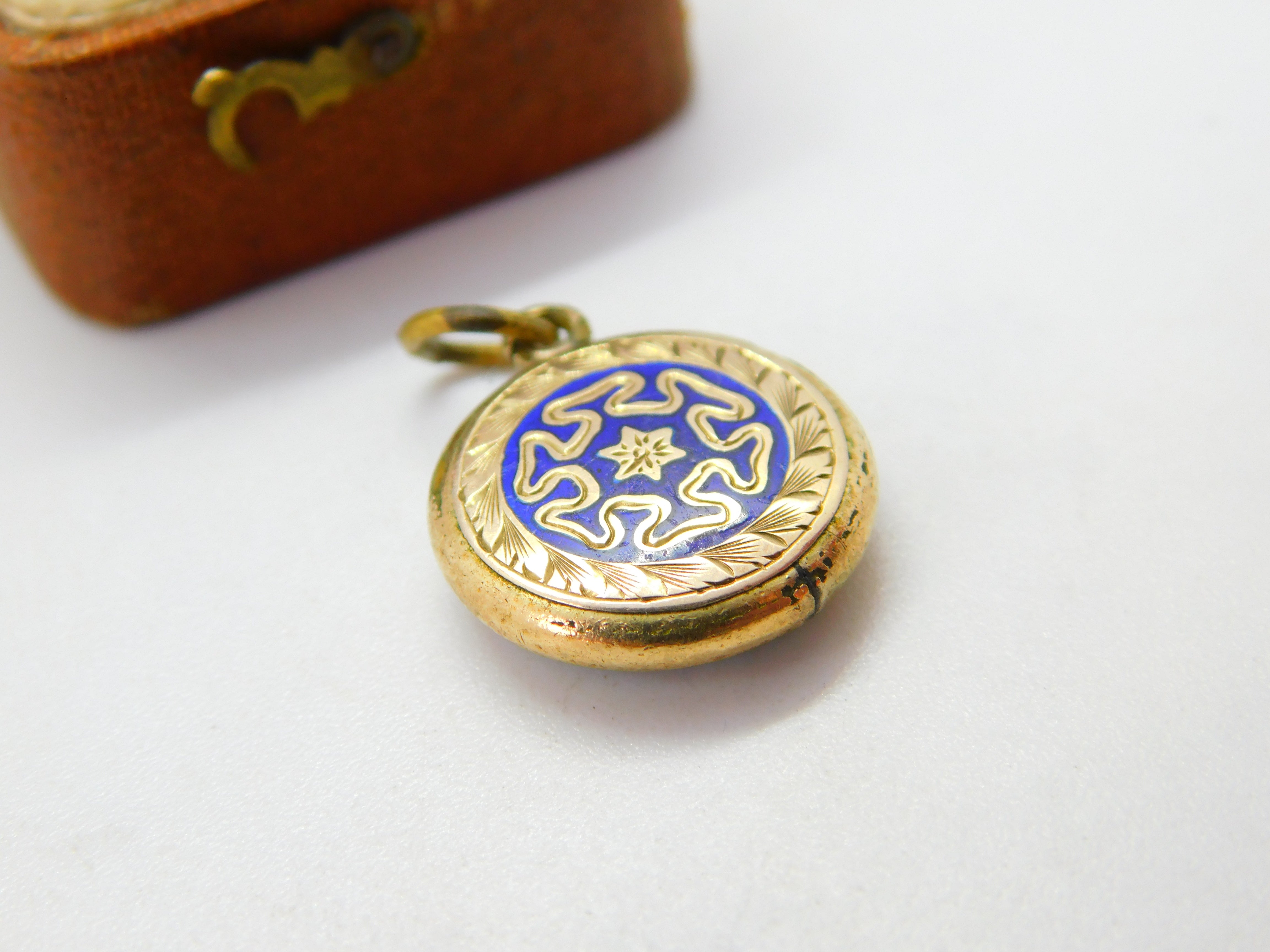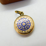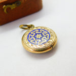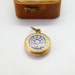 9ct Gold Cased Blue Enamel Floral Single Locket Pendant c1880 Antique Victorian