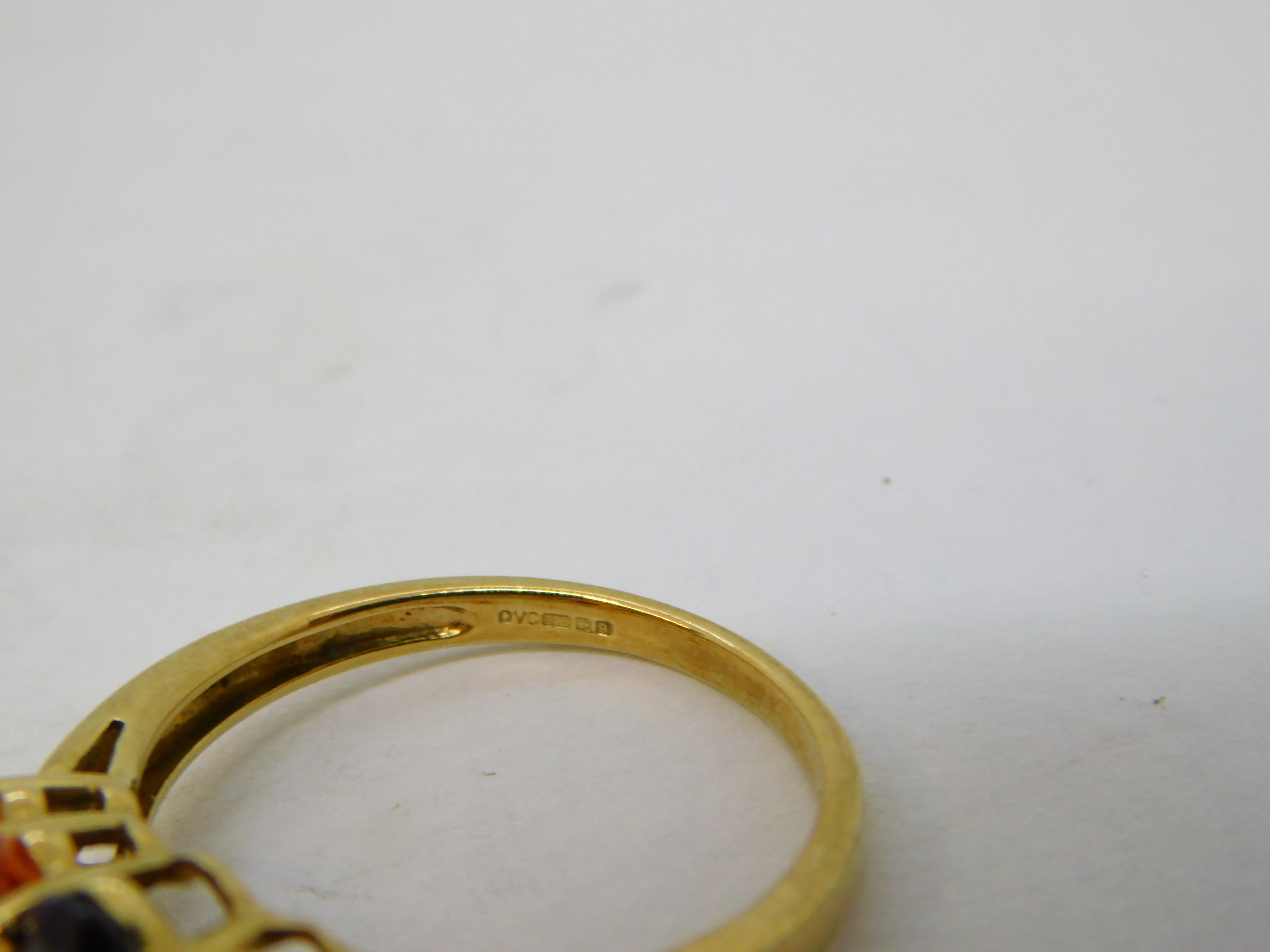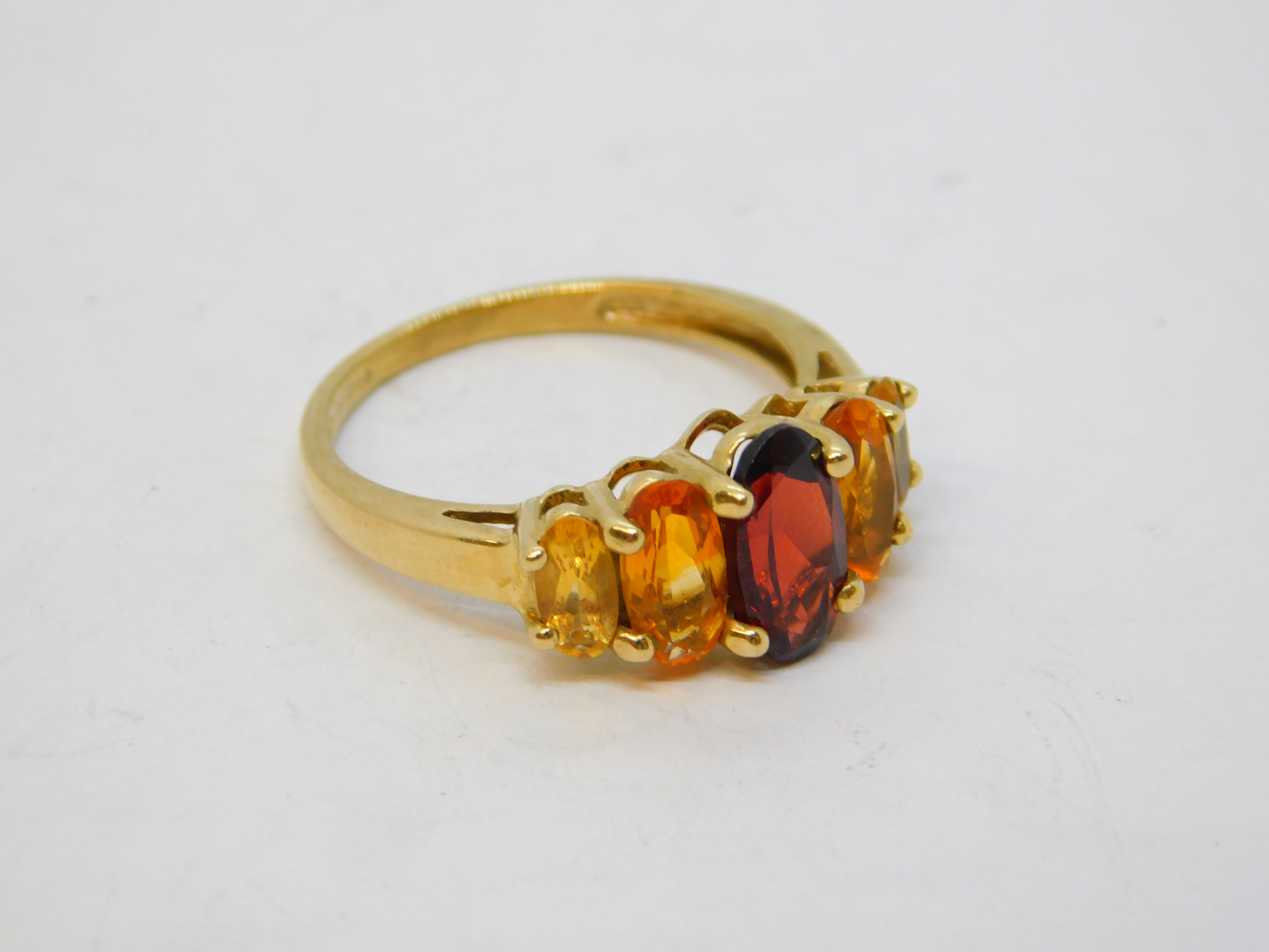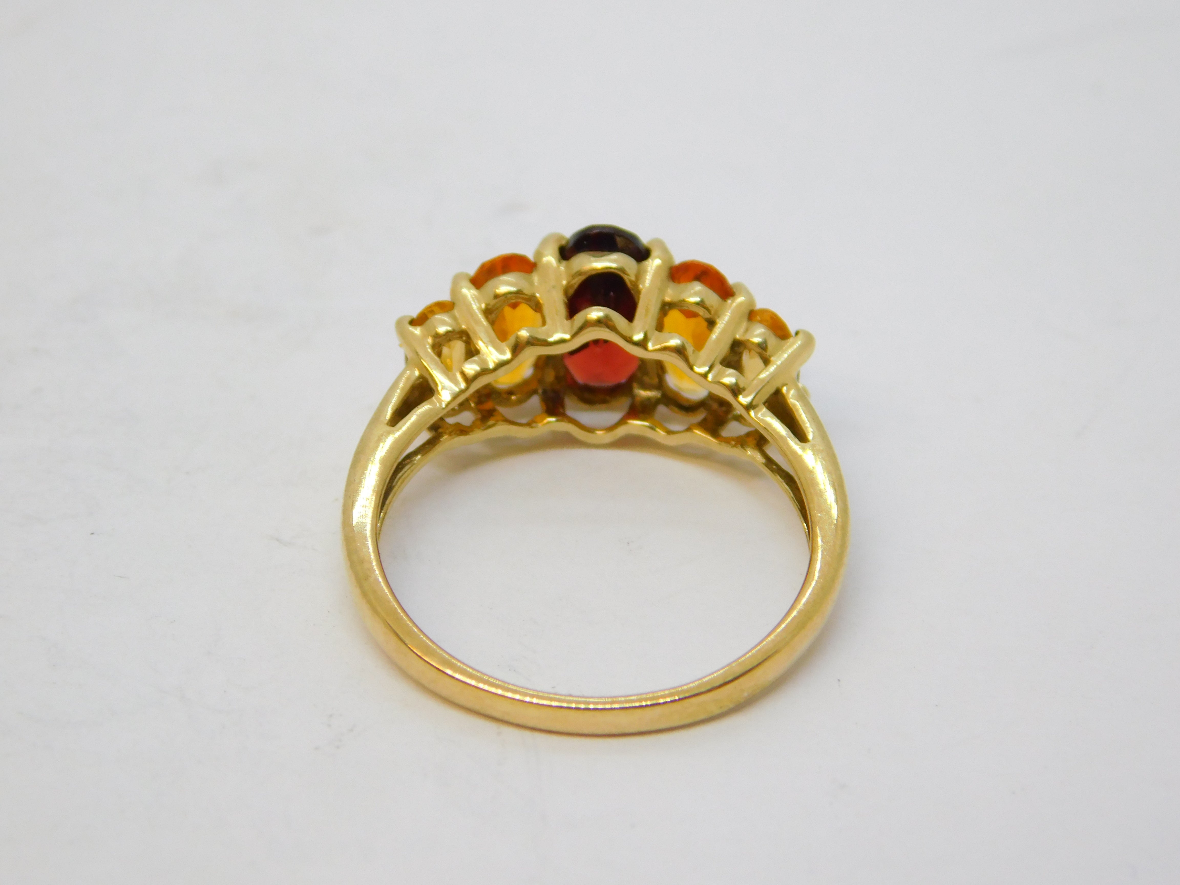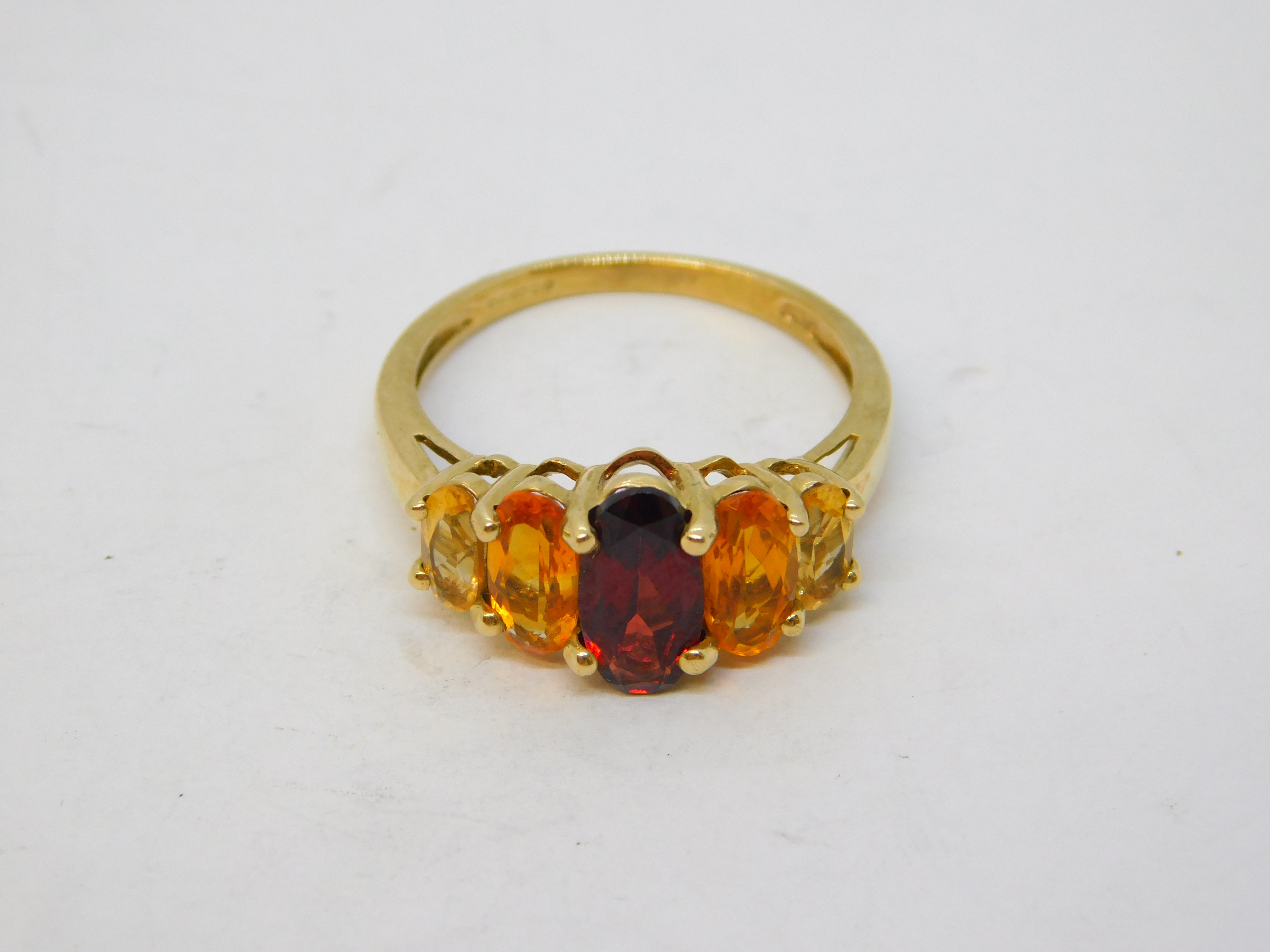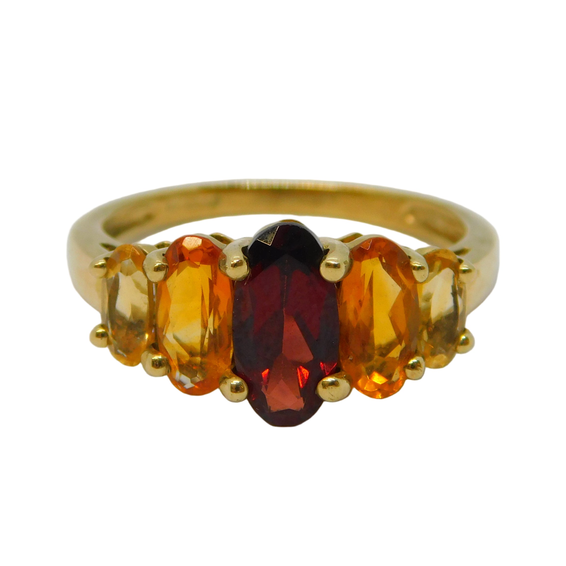 9ct Gold, Citrine, Topaz & Garnet Five-Stone Dress Ring Vintage 2006 Birmingham