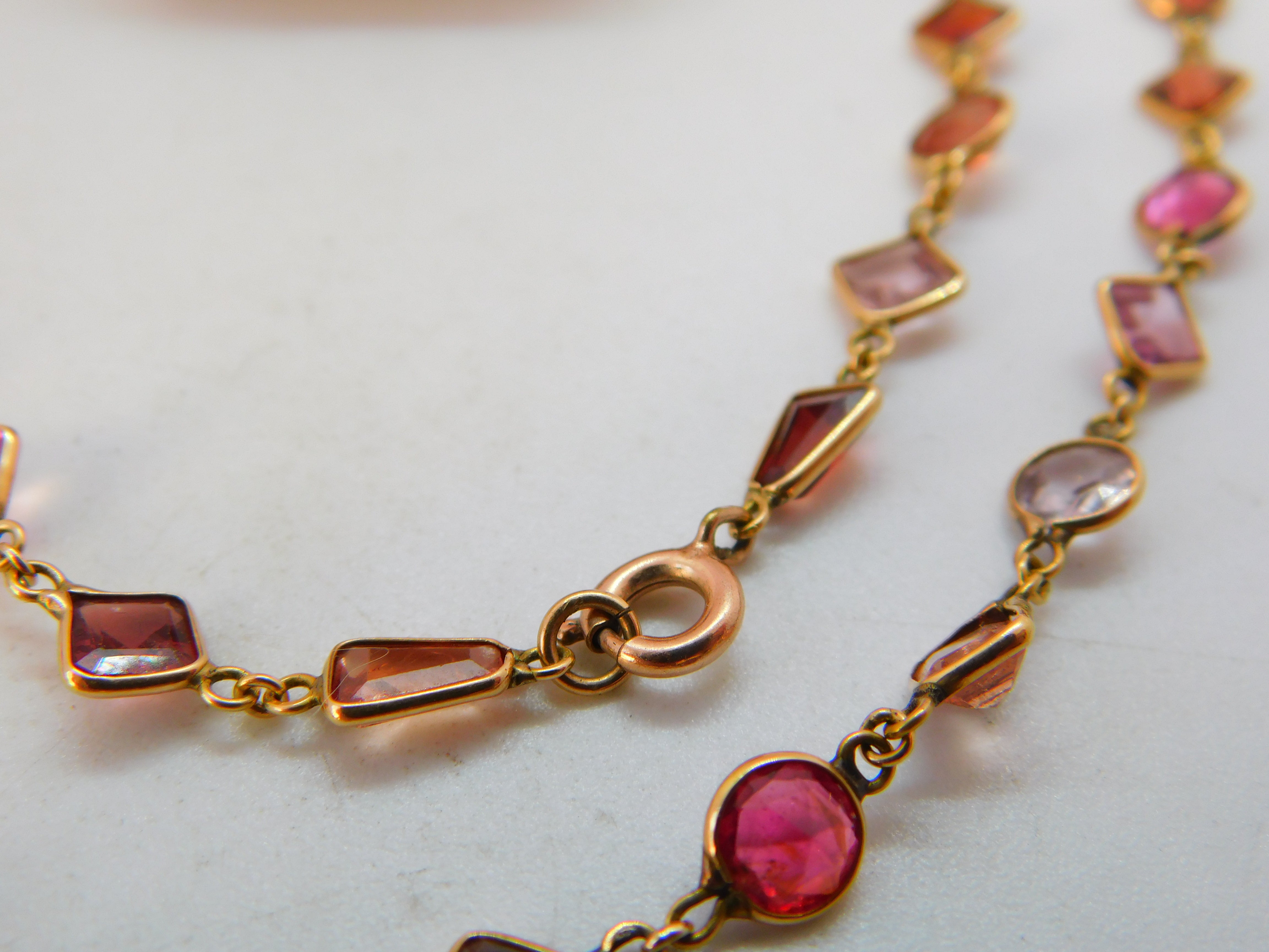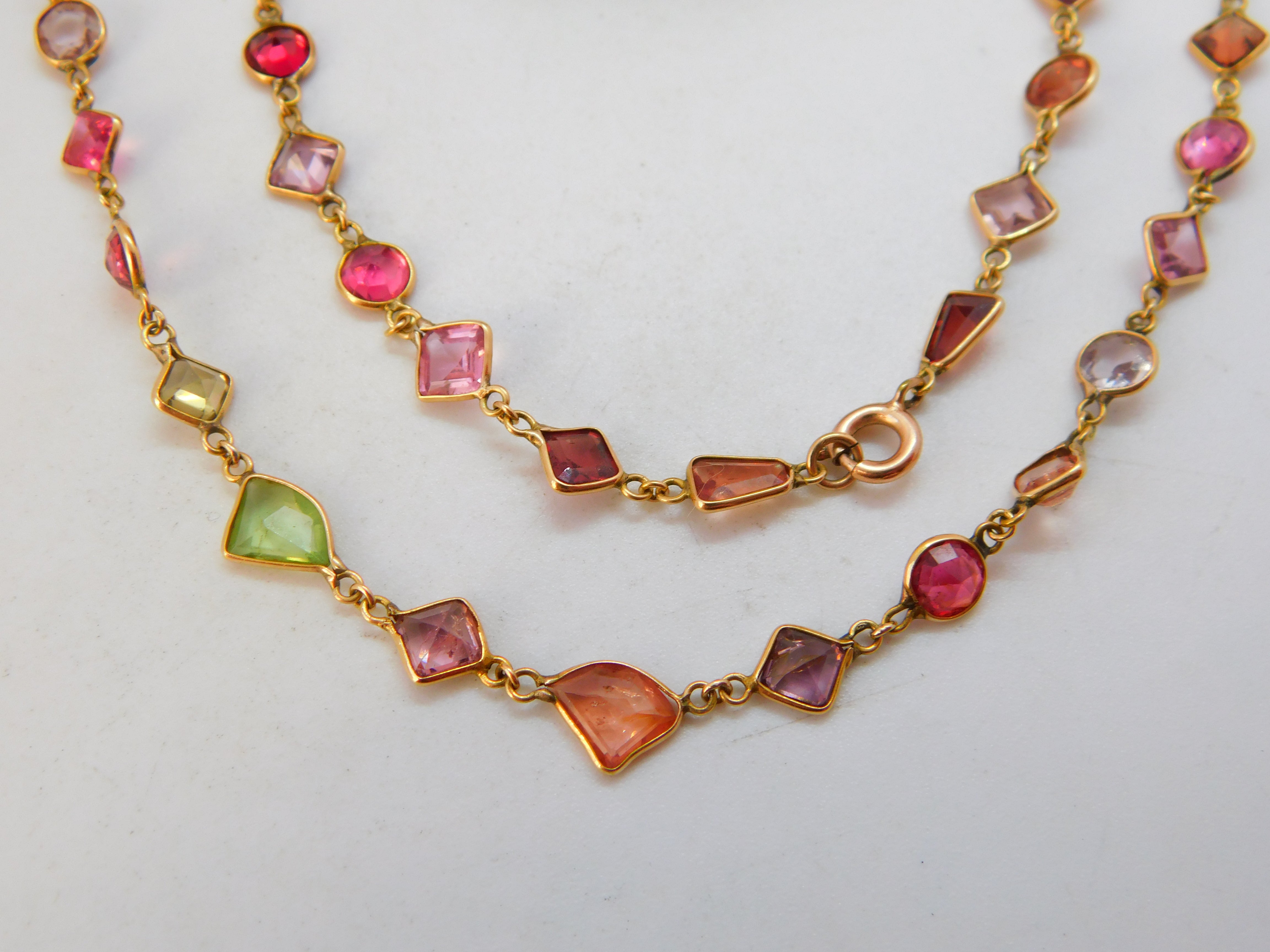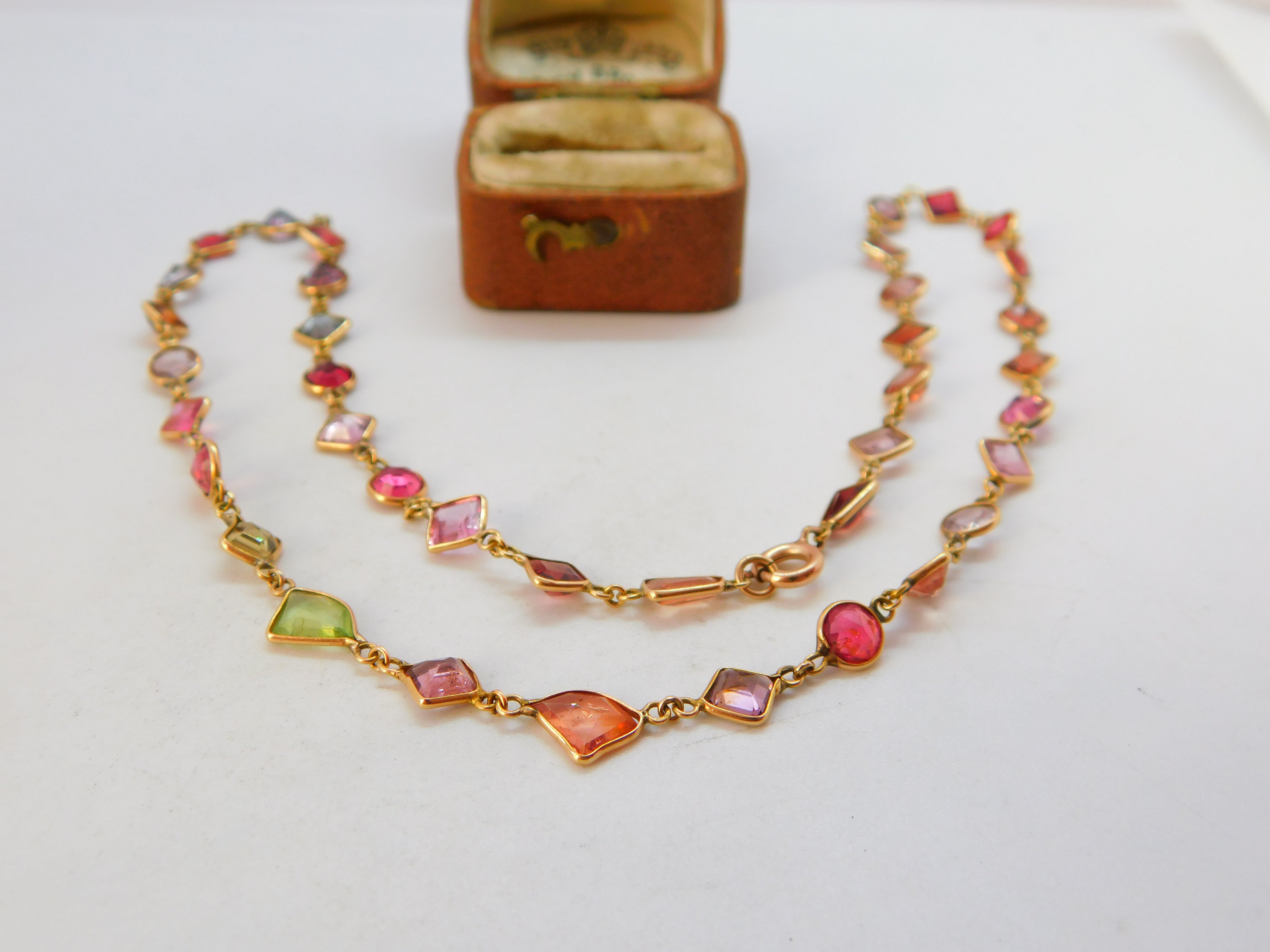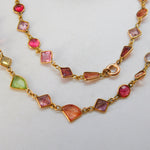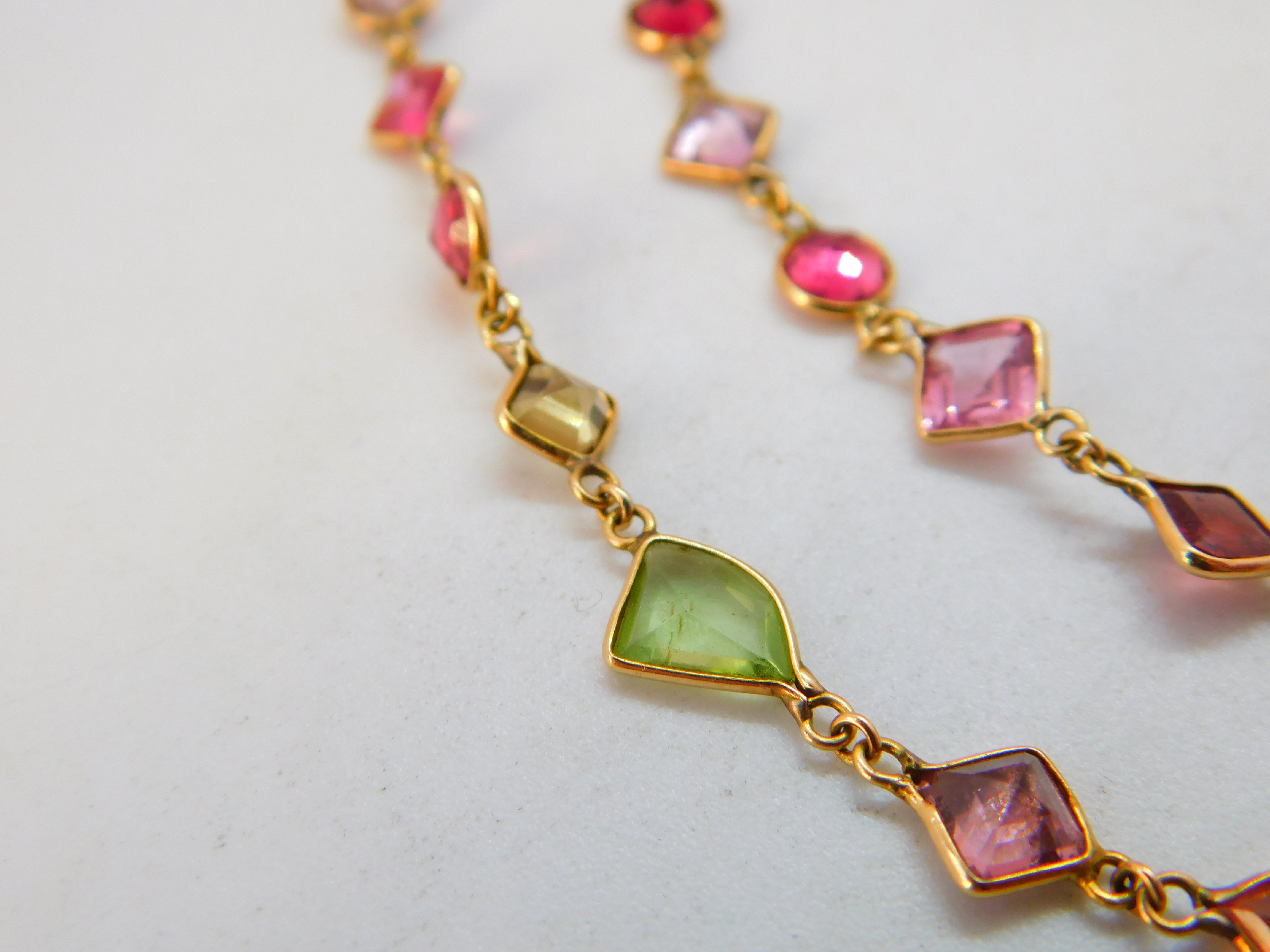 9ct Gold Modernist Multi Gemstone Set Necklace Vintage c1980 15.8" 40cm