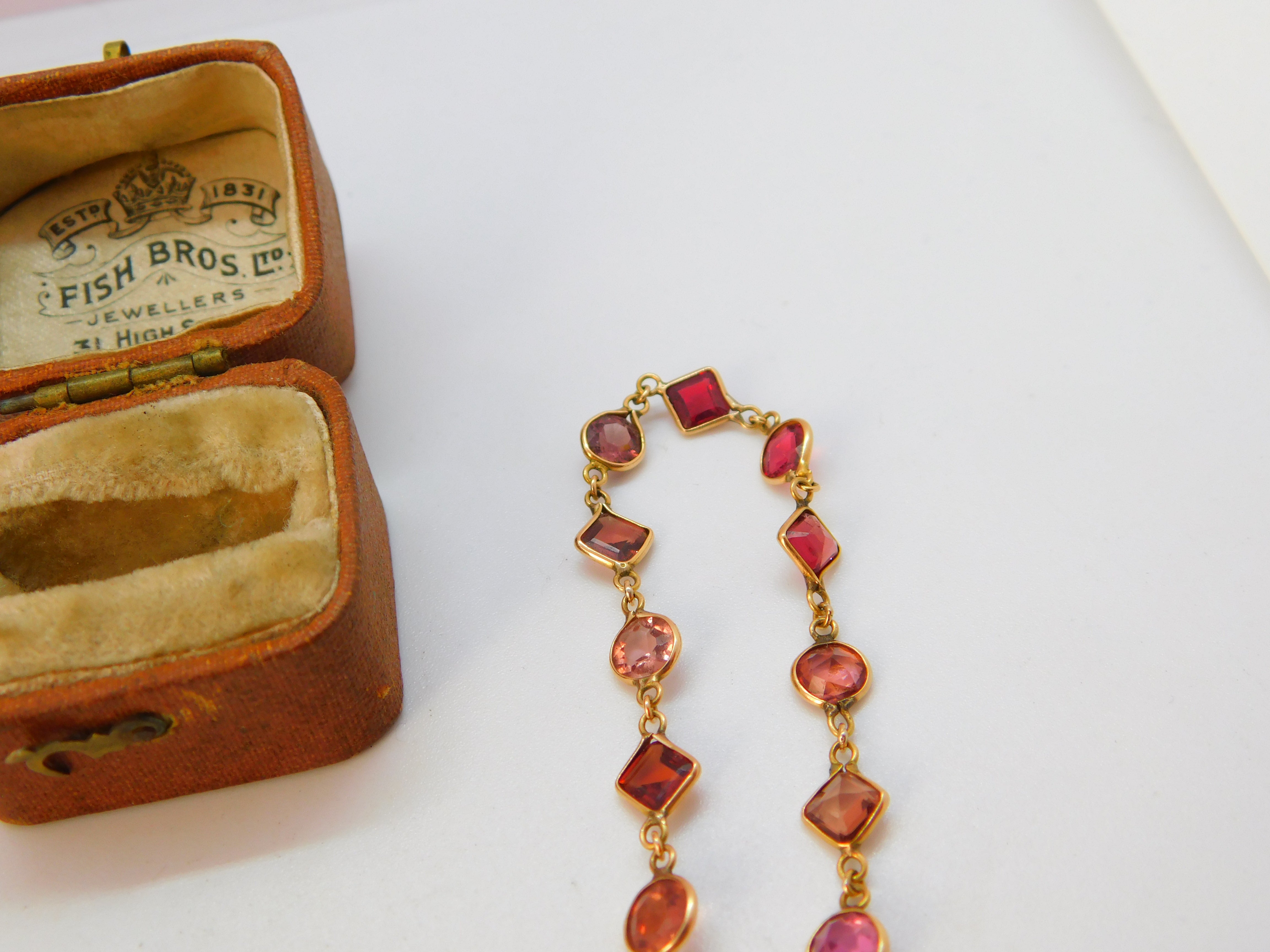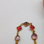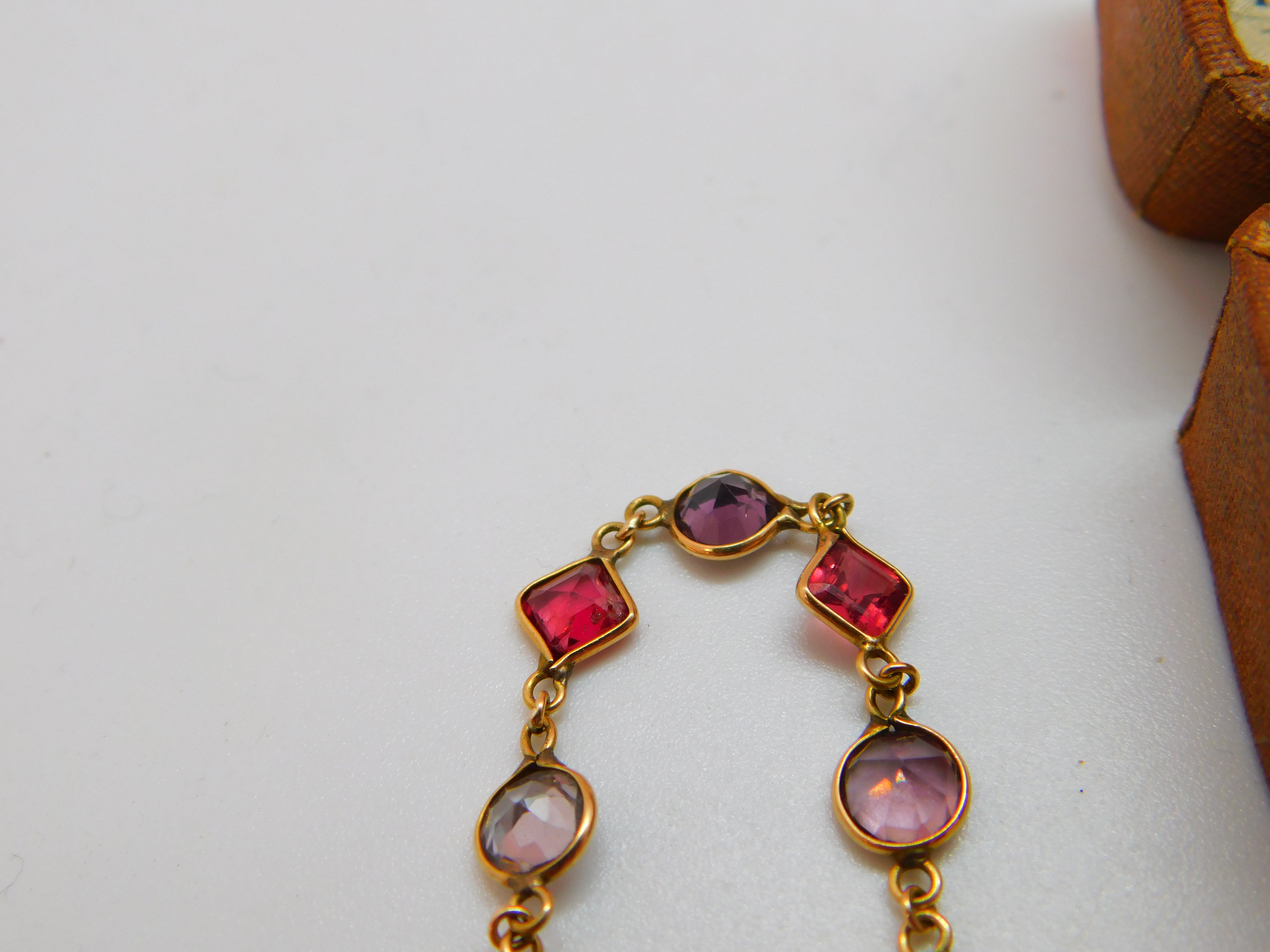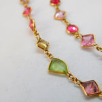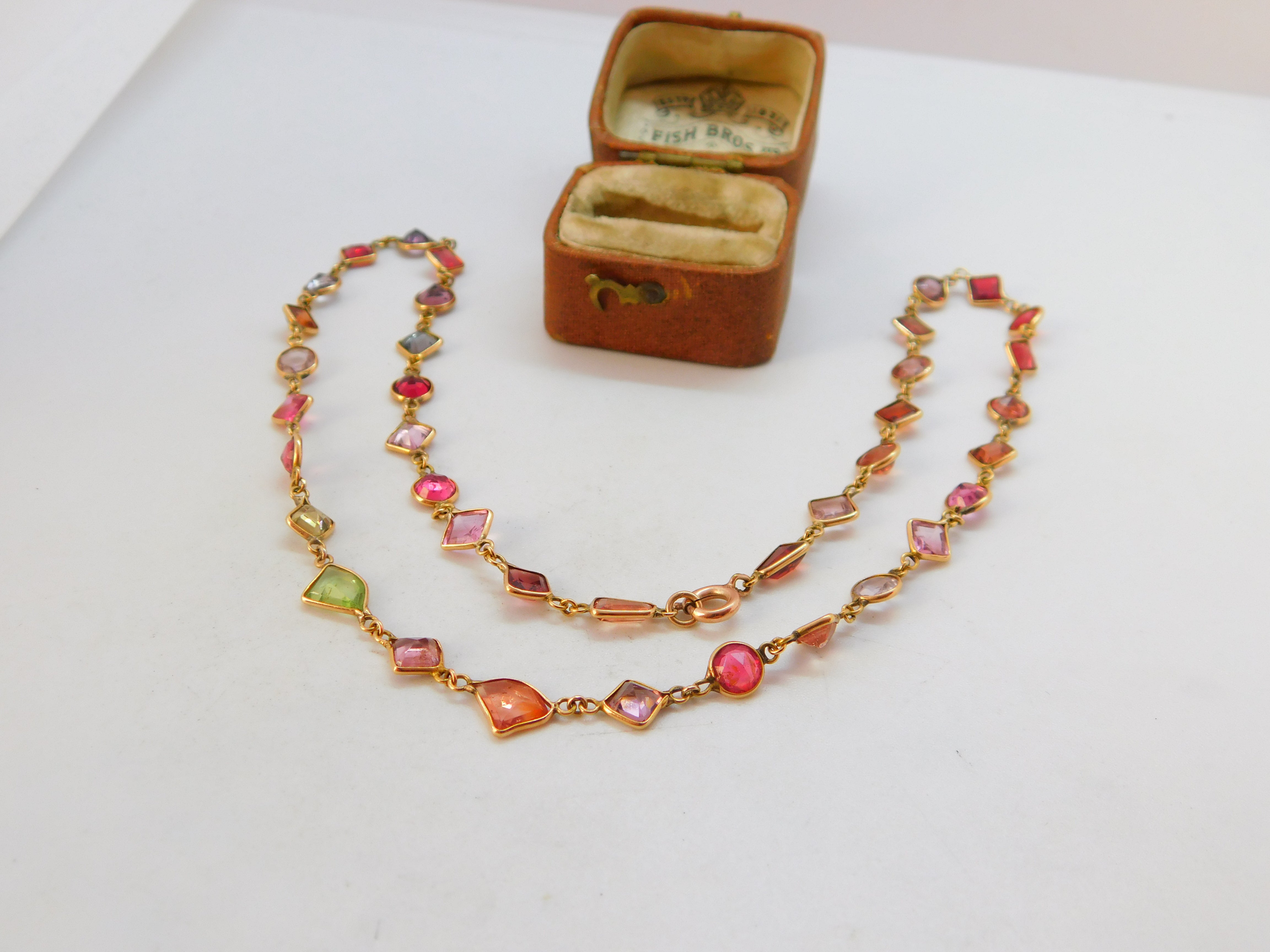 9ct Gold Modernist Multi Gemstone Set Necklace Vintage c1980 15.8" 40cm