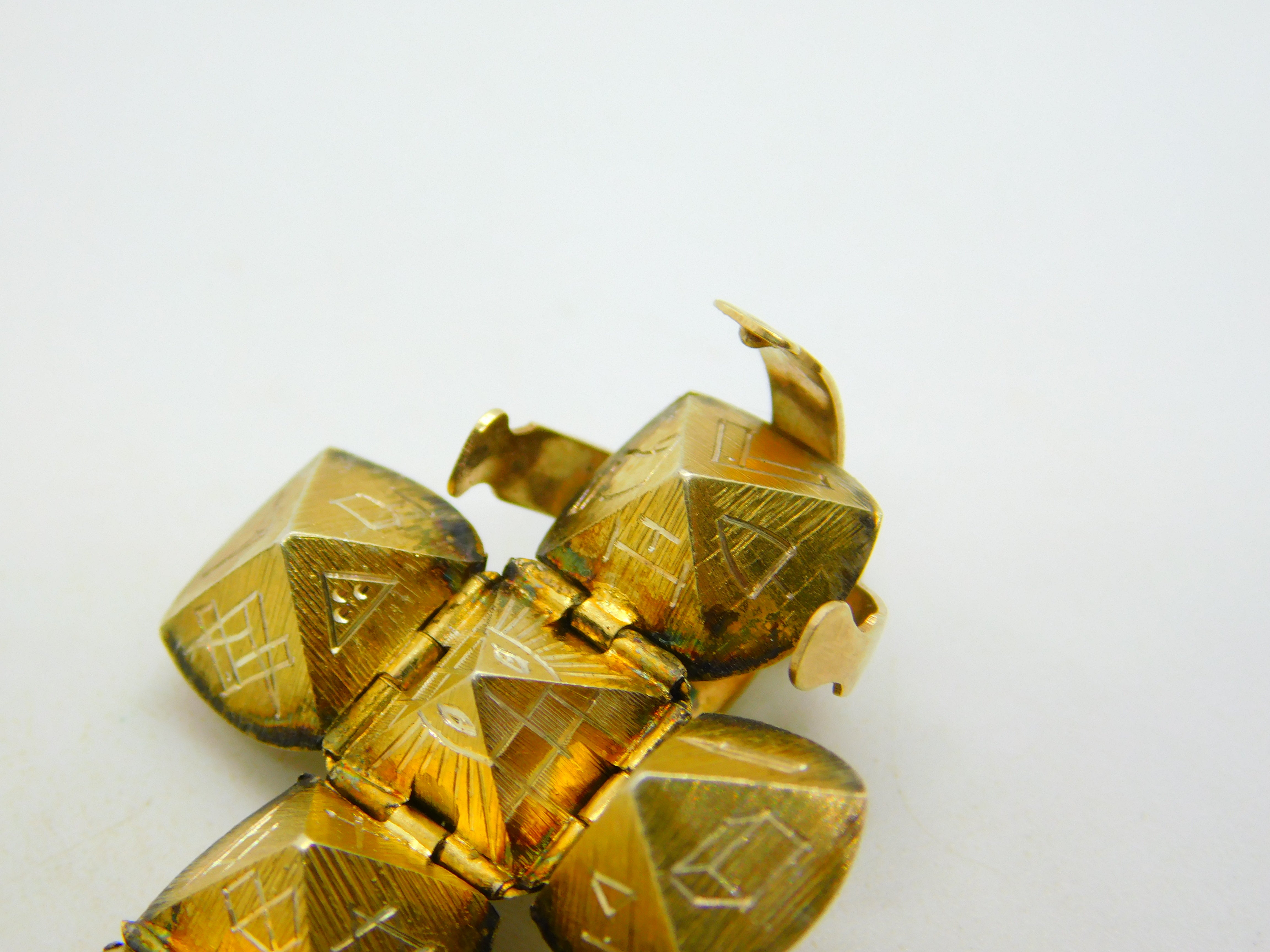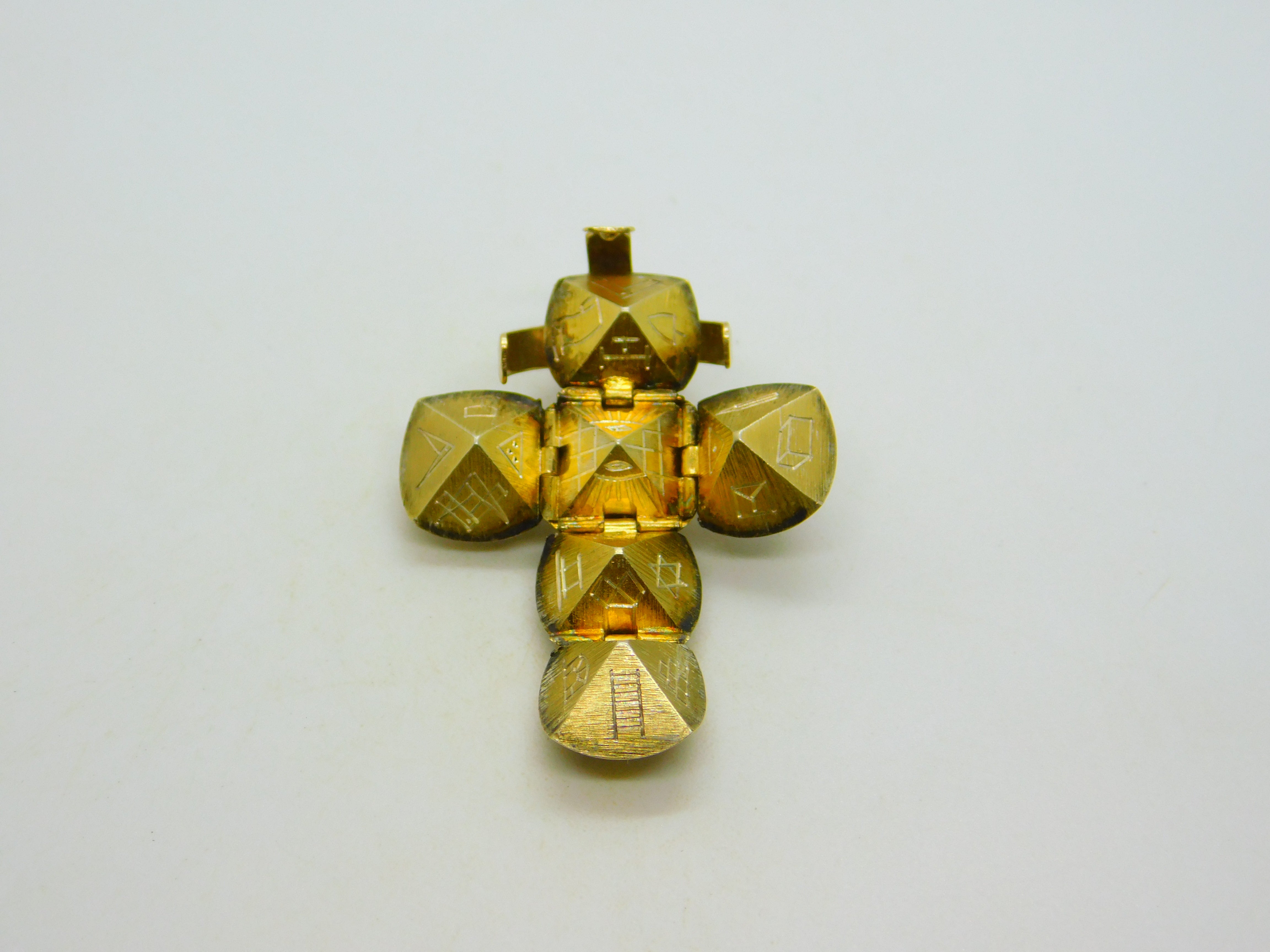 Details: A fantastic and wonderfully designed antique art deco 9ct gold & sterling silver opening masonic ball cross charm fob or pendant with superb detailing throughout hallmarked Silver & Gold to the base c1920, worn by masons on watch chain or necklaces to meetings. This is a wonderful item that would make a perfect gift or addition to any collection. The BOX pictured is for PRESENTATION ONLY and is NOT included in the listings but used to frame the pictures unless specifically stated otherwise.