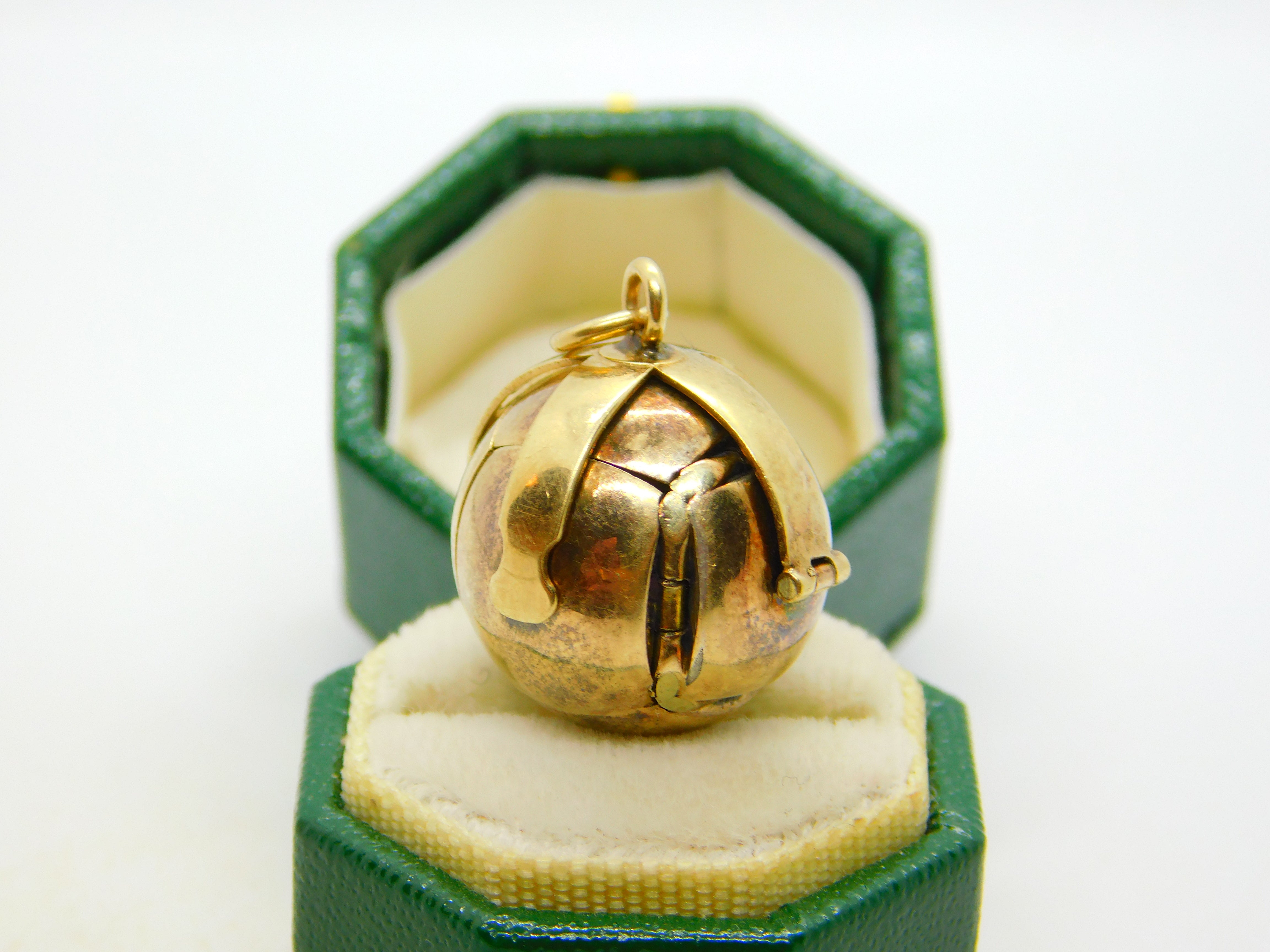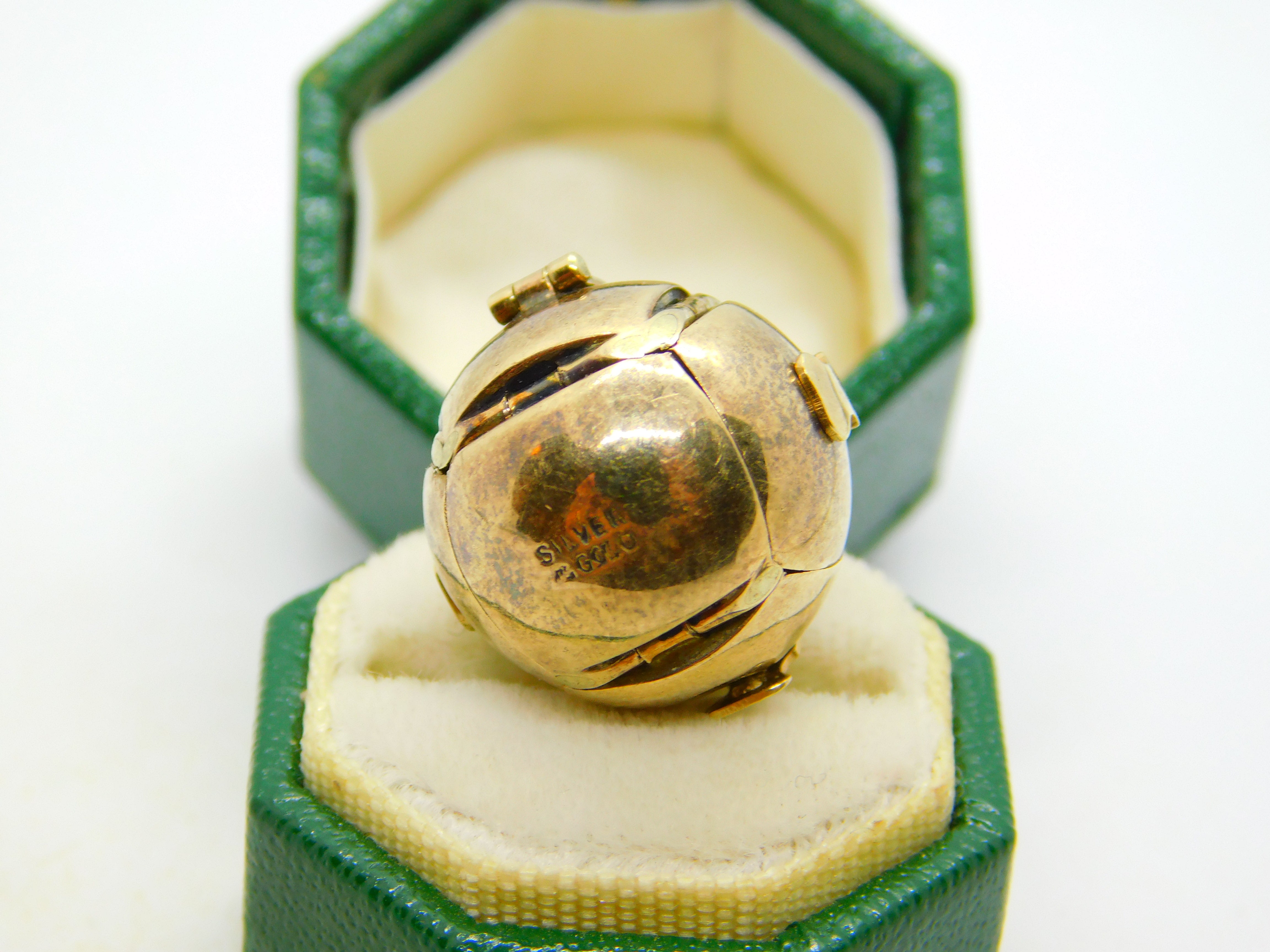 9ct Gold & Sterling Silver Opening Masonic Ball Charm Fob Antique c1920 Art Deco