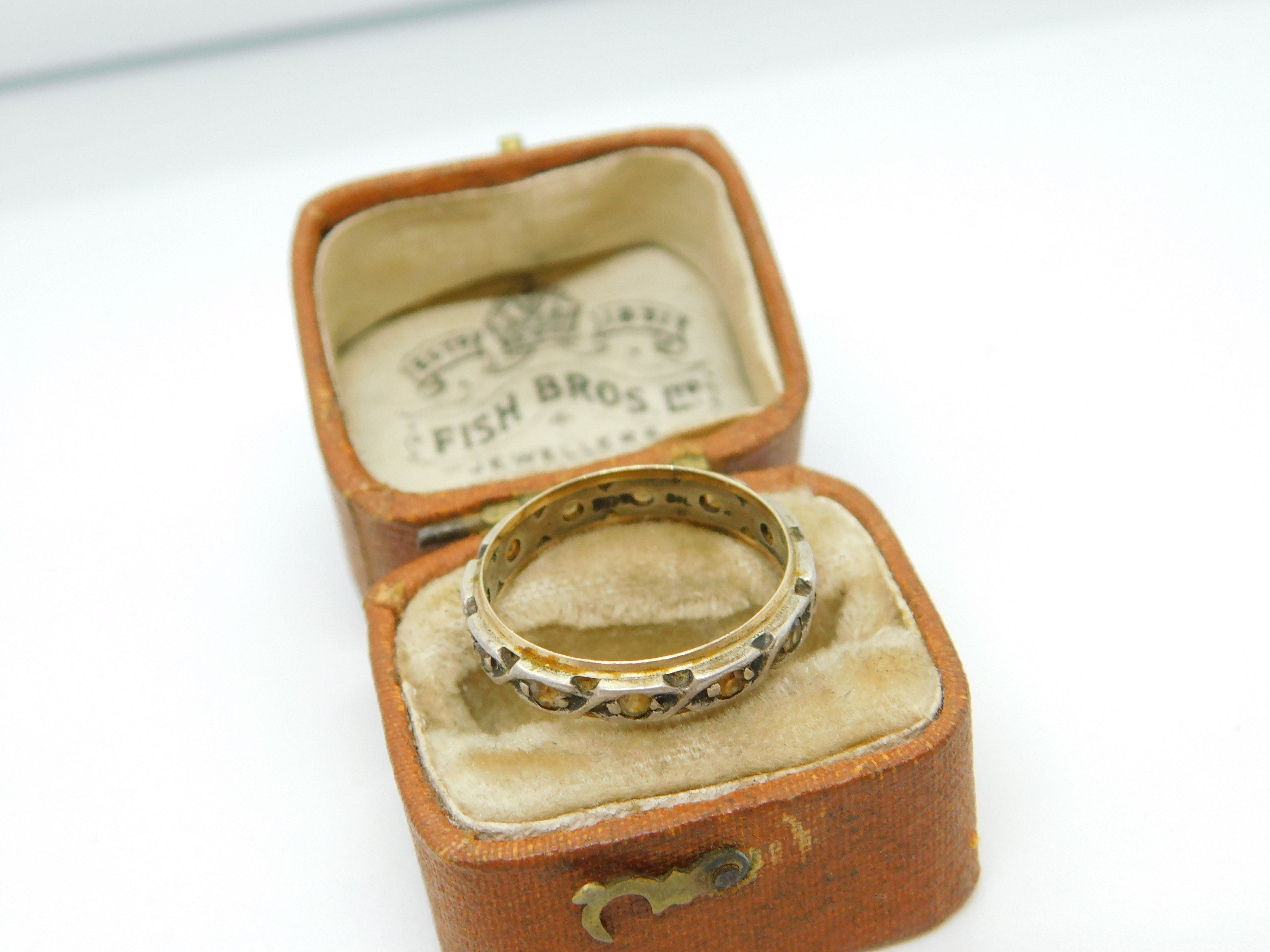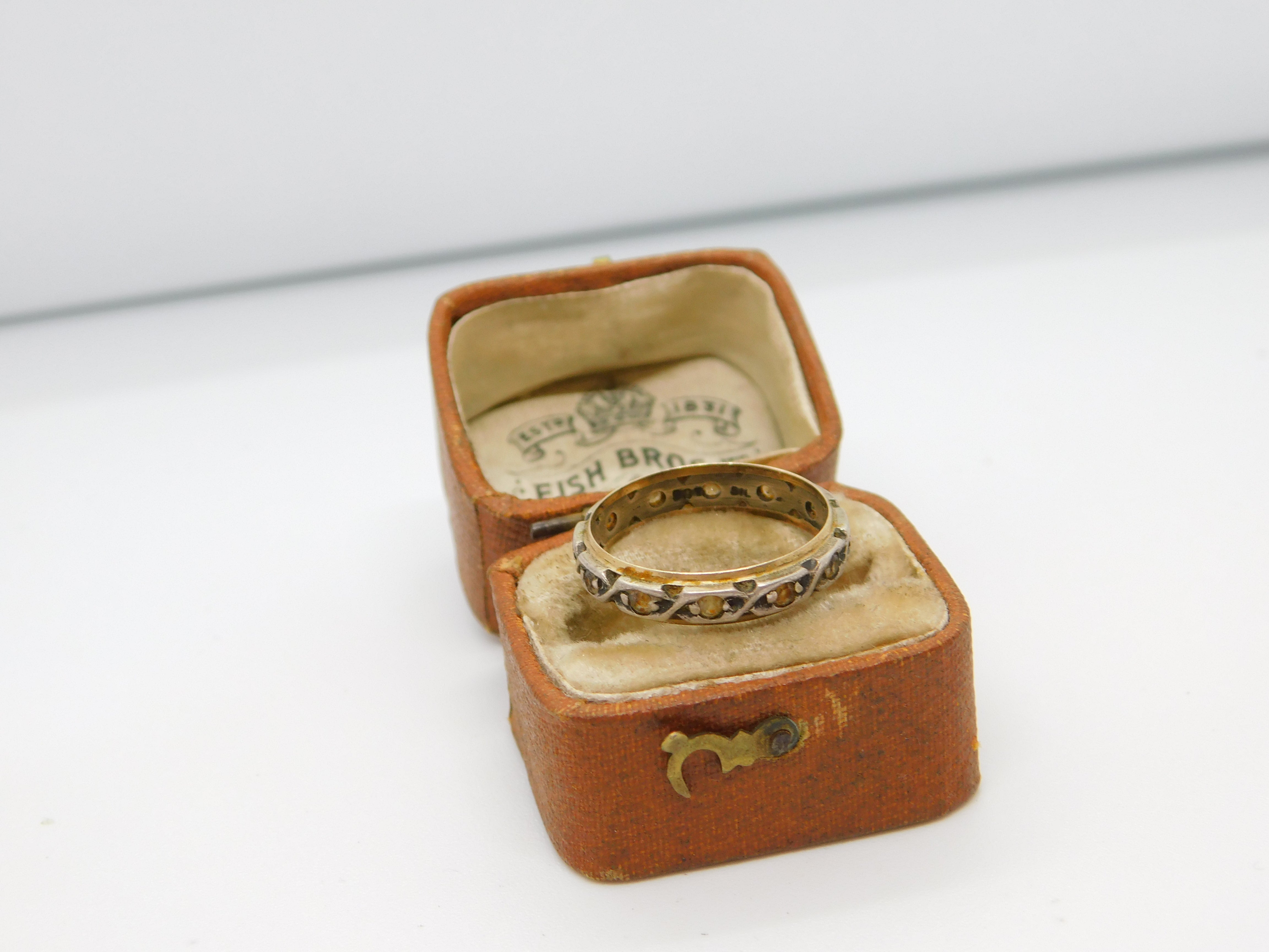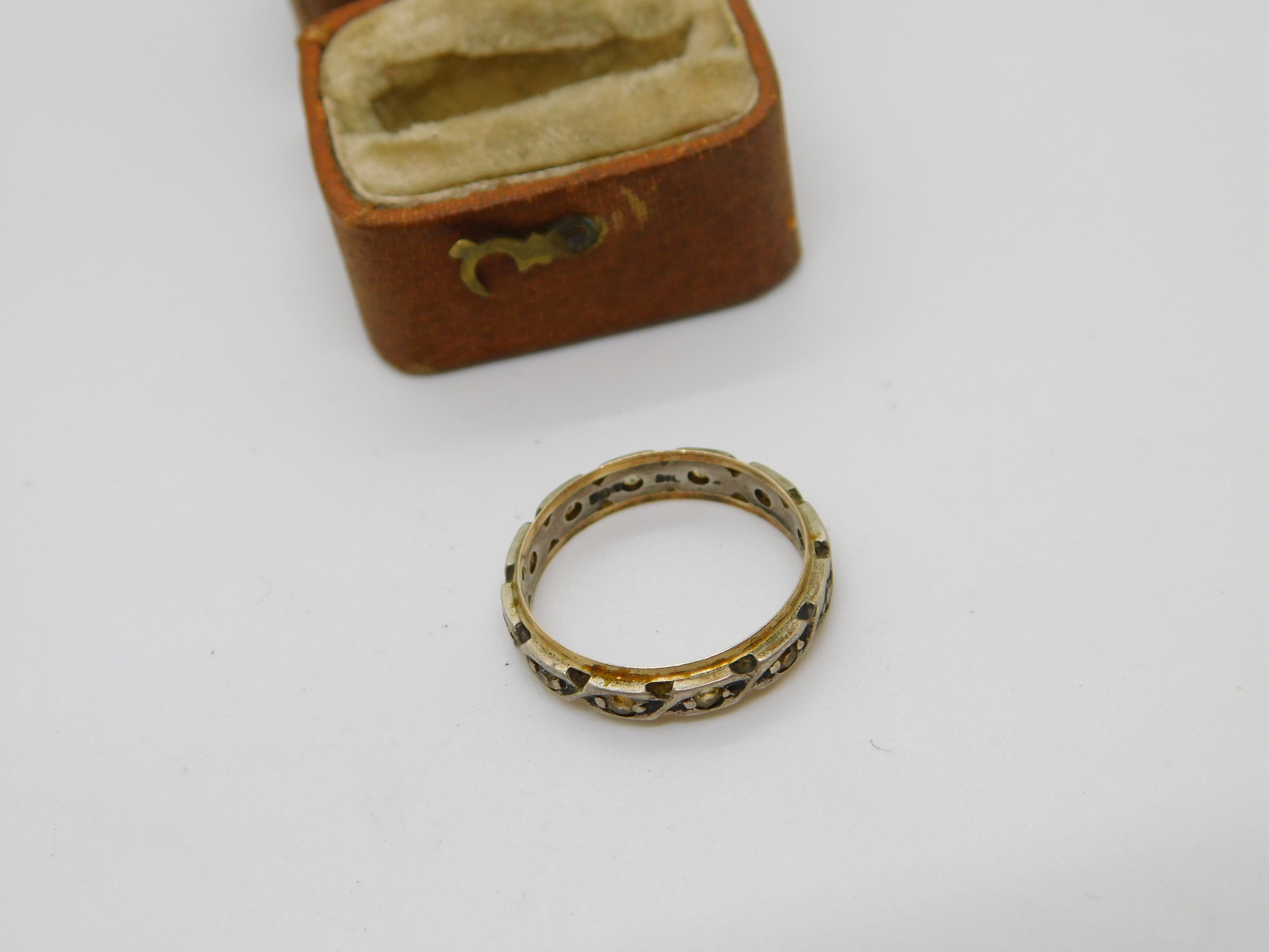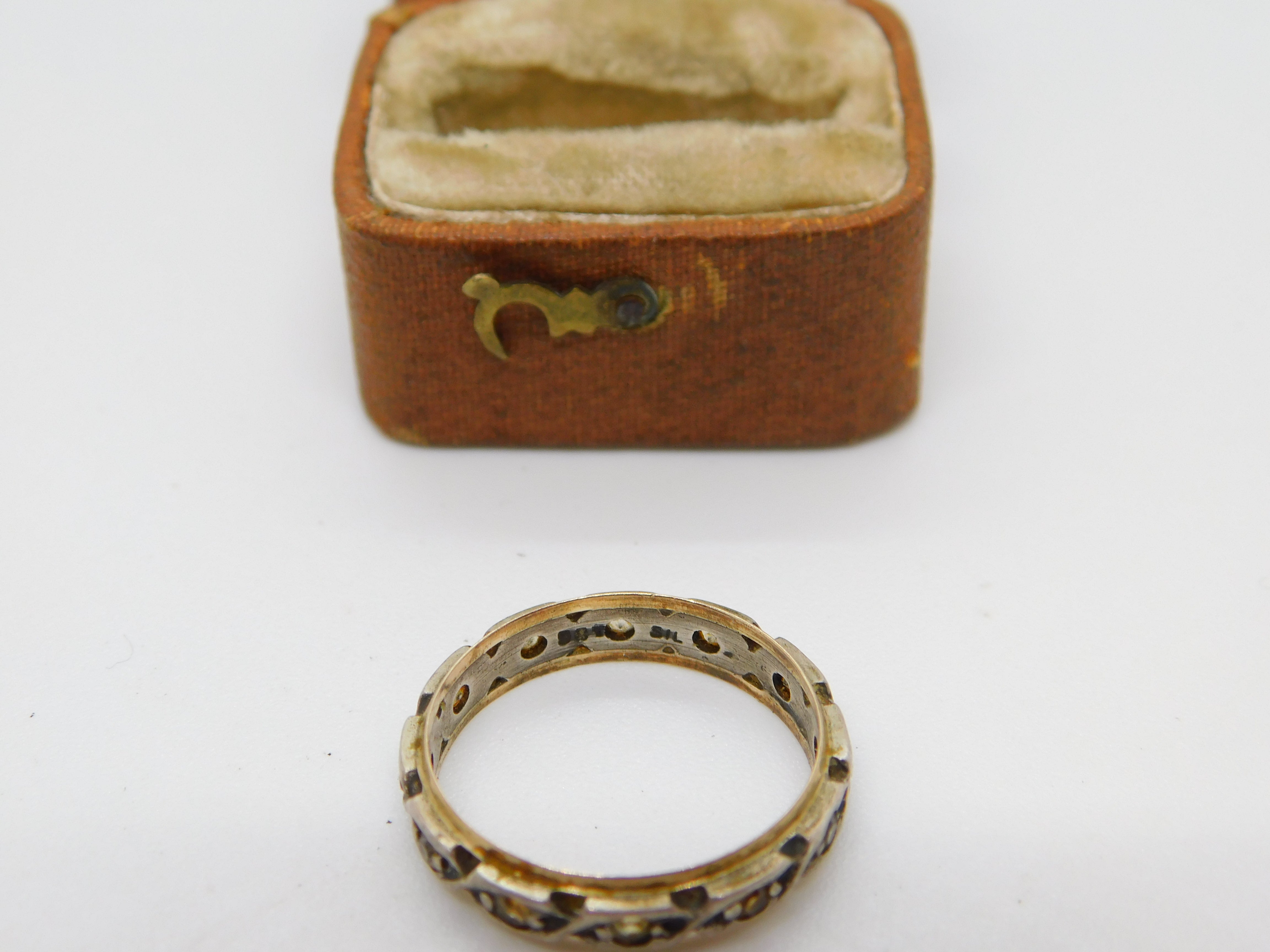 9ct Gold & Sterling Silver Paste Set Eternity Ring Antique c1930 Art Deco