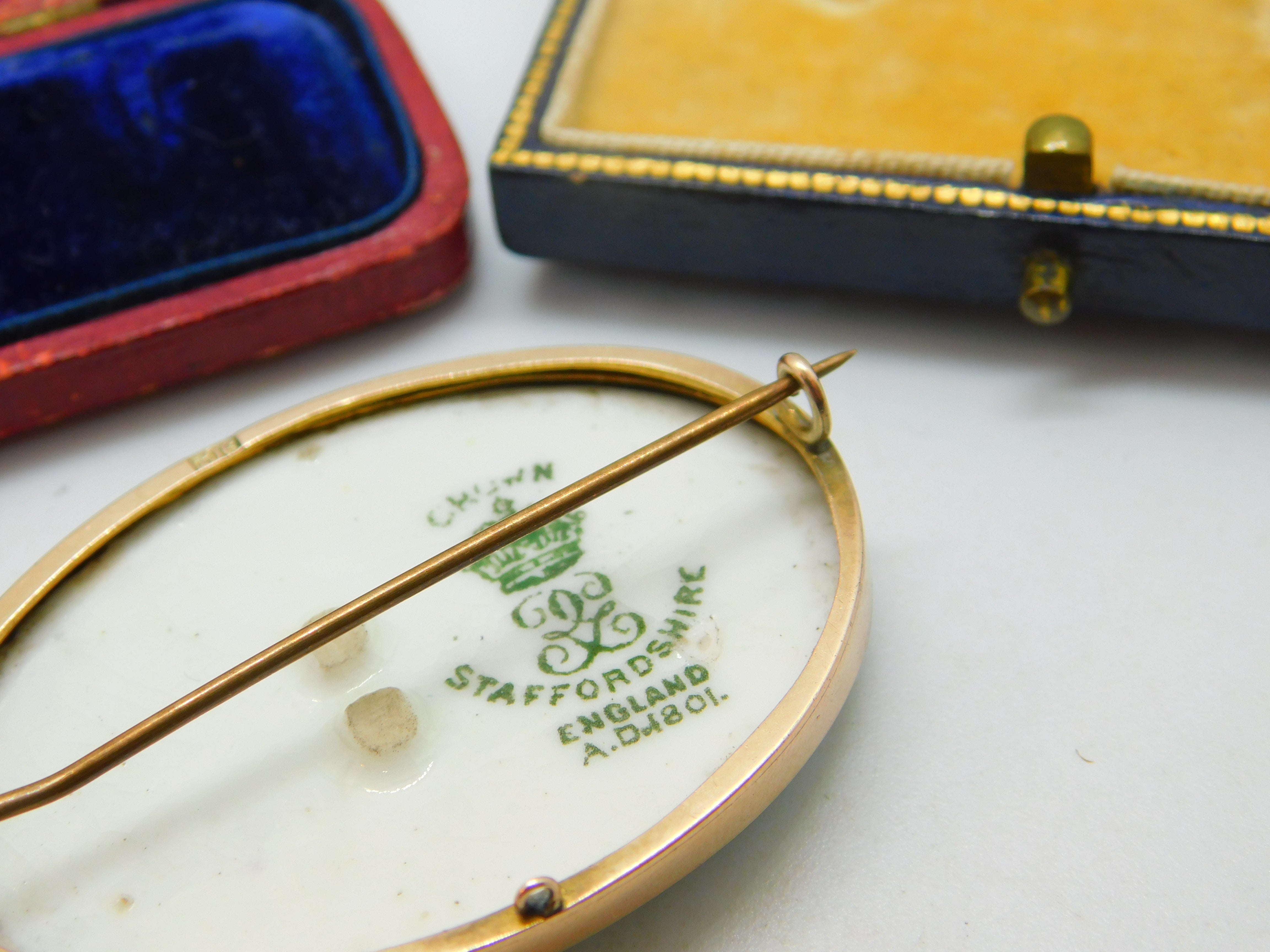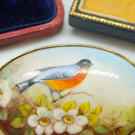 Details: A fantastic and wonderfully designed antique art deco 9ct rose gold and hand painted Crown Staffordshire porcelain oval bird brooch pin with excellent design marked 9ct to the edge c1920. Great clear marks to the reverse. This is a wonderful item that would make a perfect gift or addition to any collection. The BOX pictured is for PRESENTATION ONLY and is NOT included in the listings but used to frame the pictures unless specifically stated otherwise.