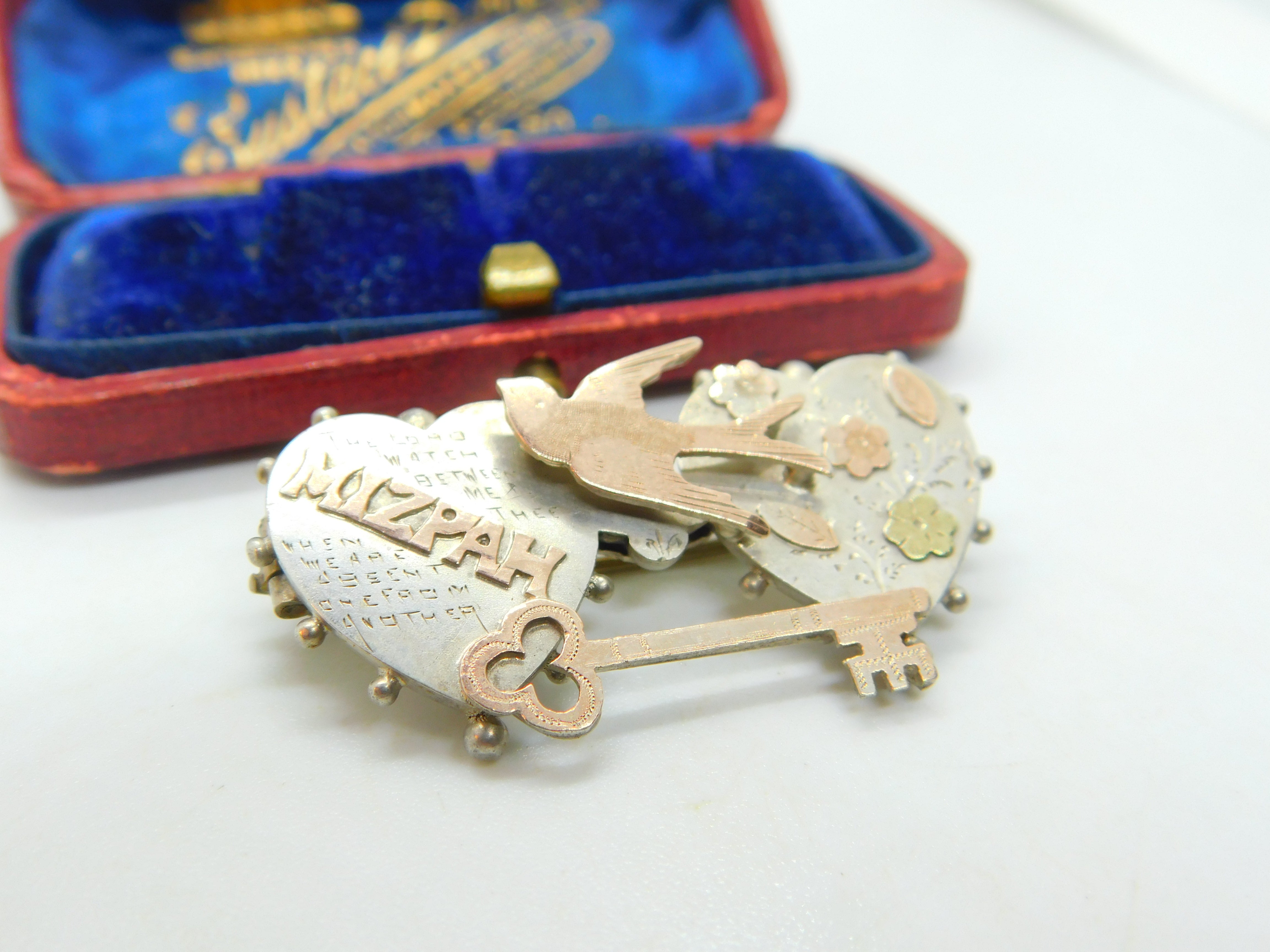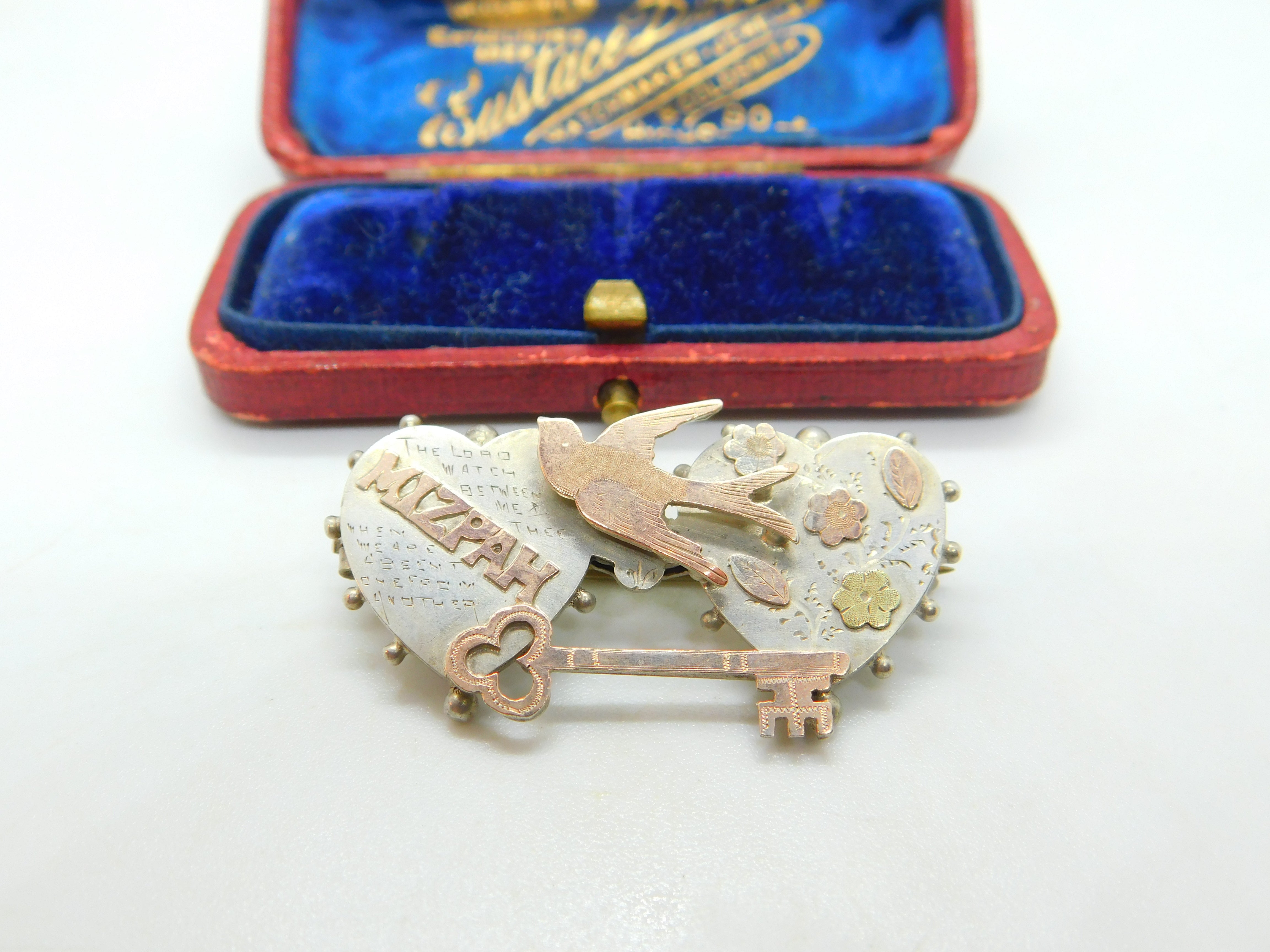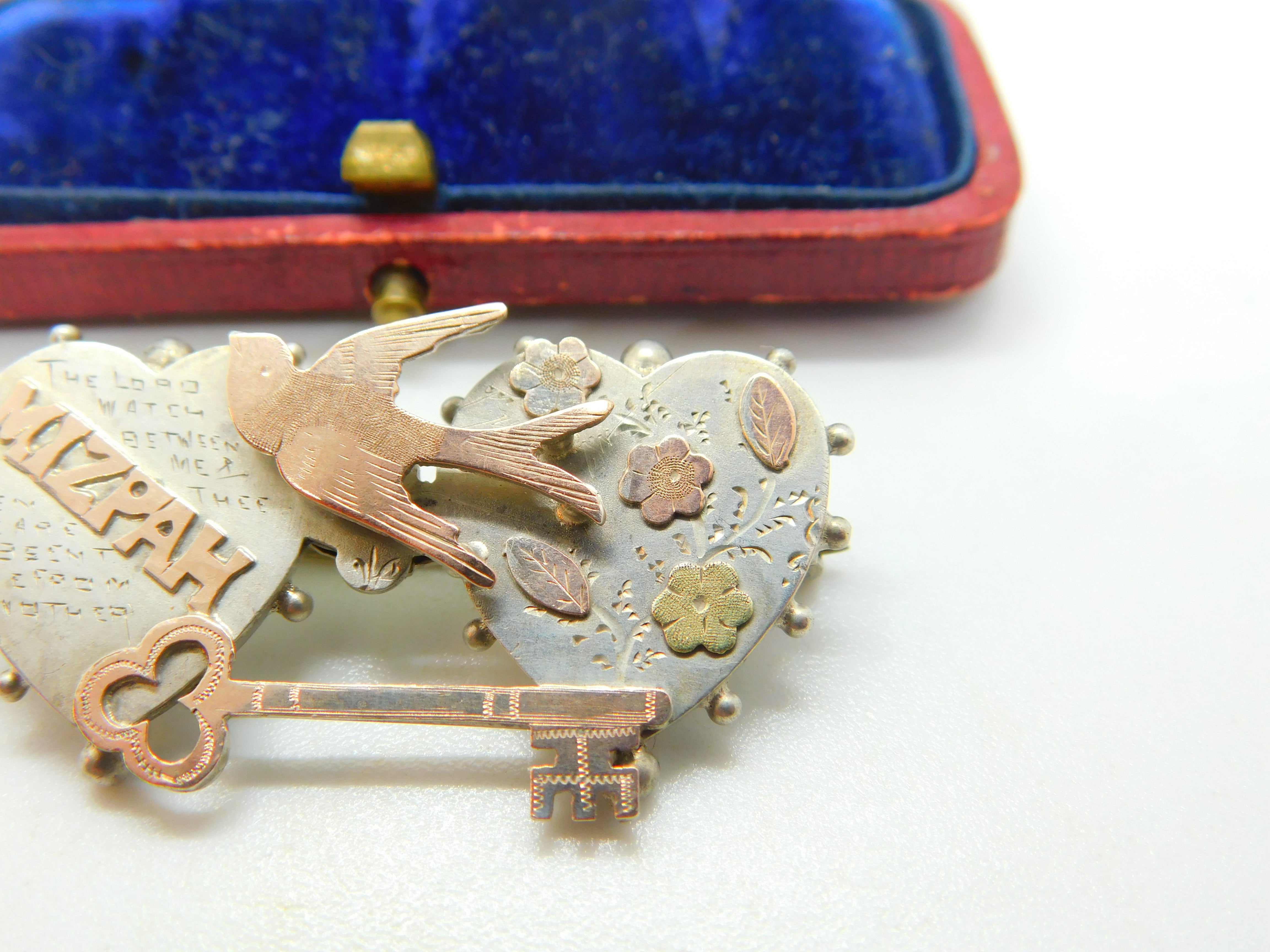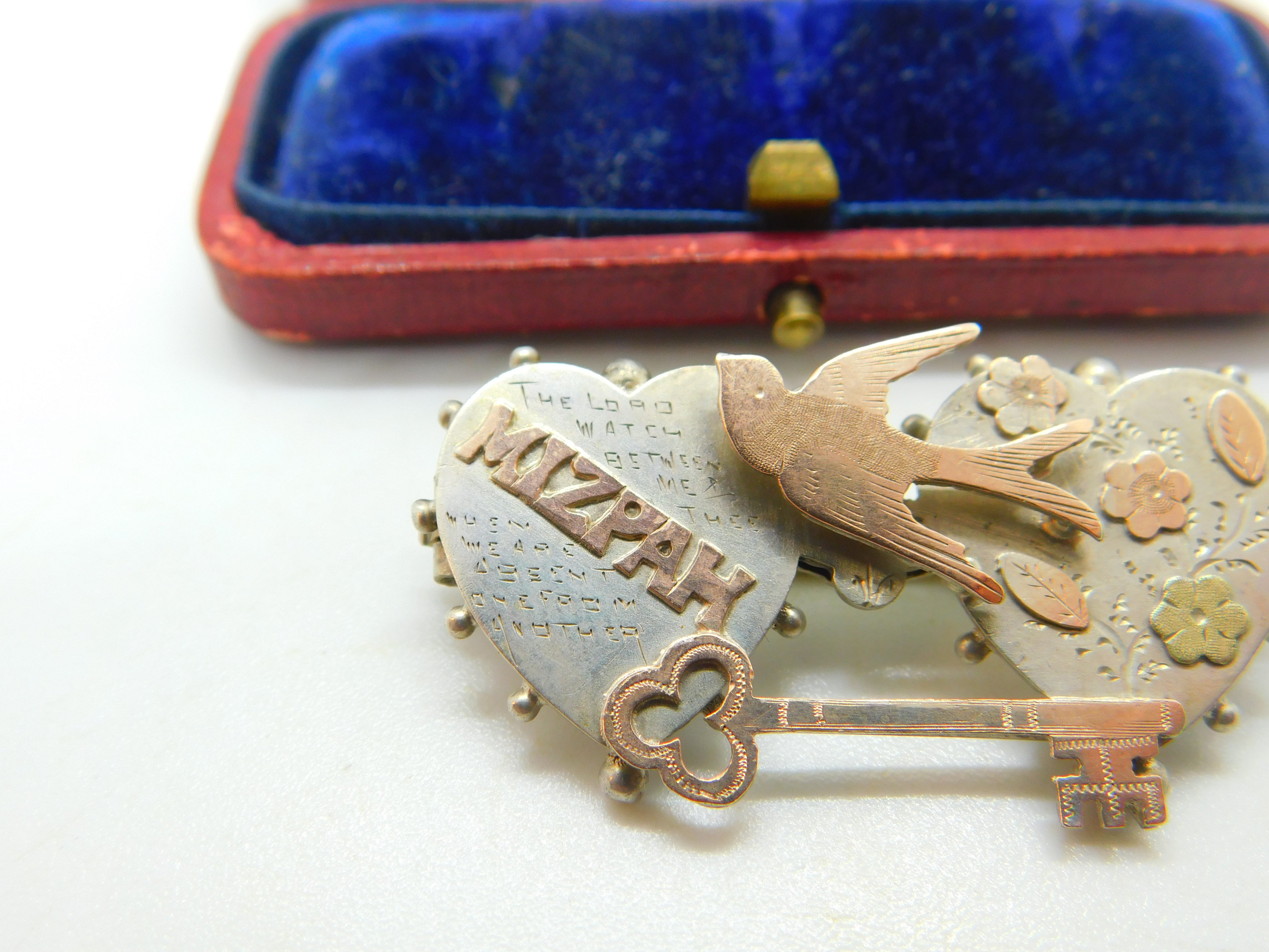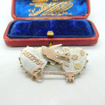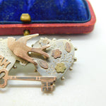 9ct Rose Gold & Sterling Silver Mizpah Swallow Brooch Antique 1910 Edwardian