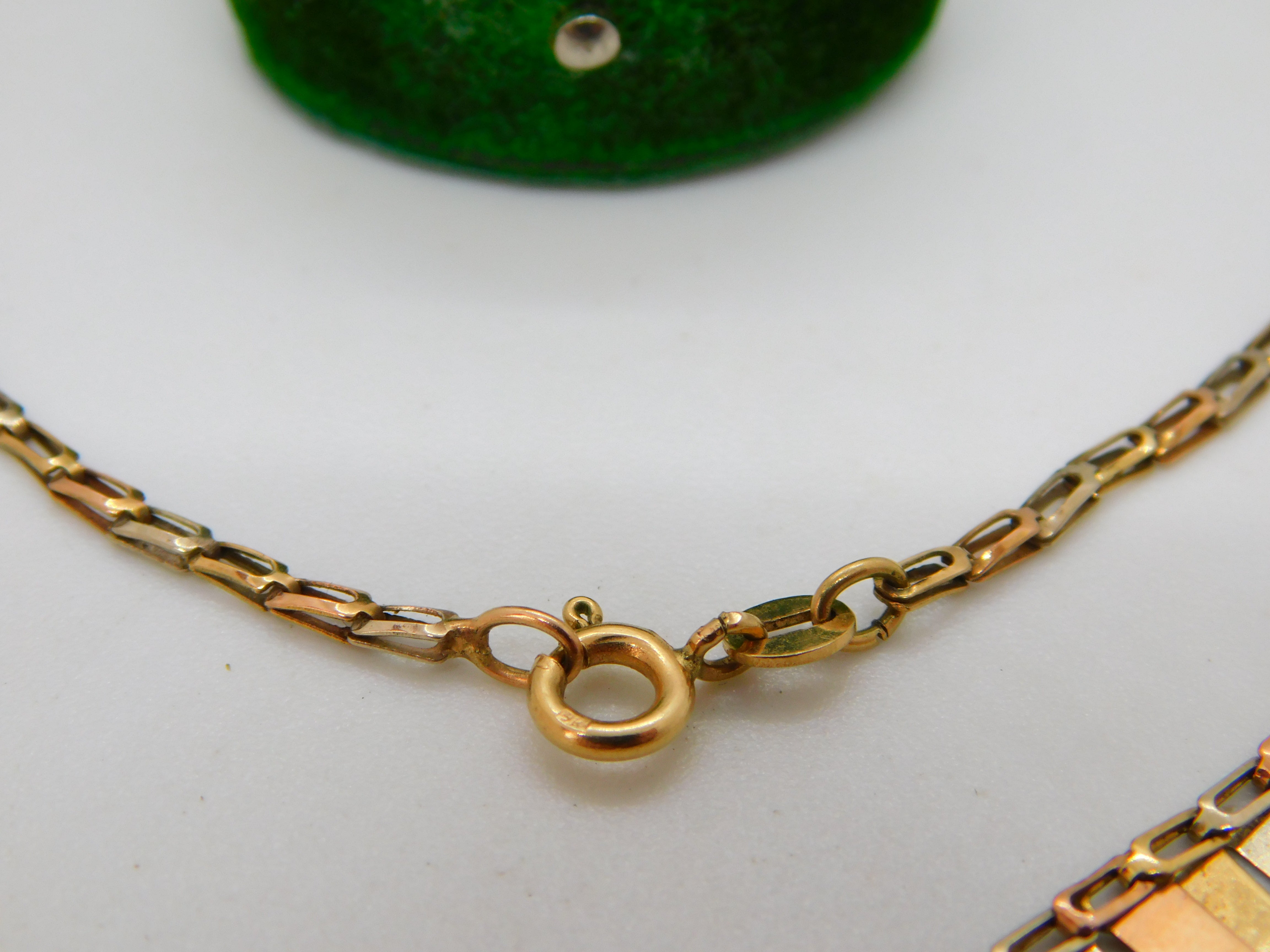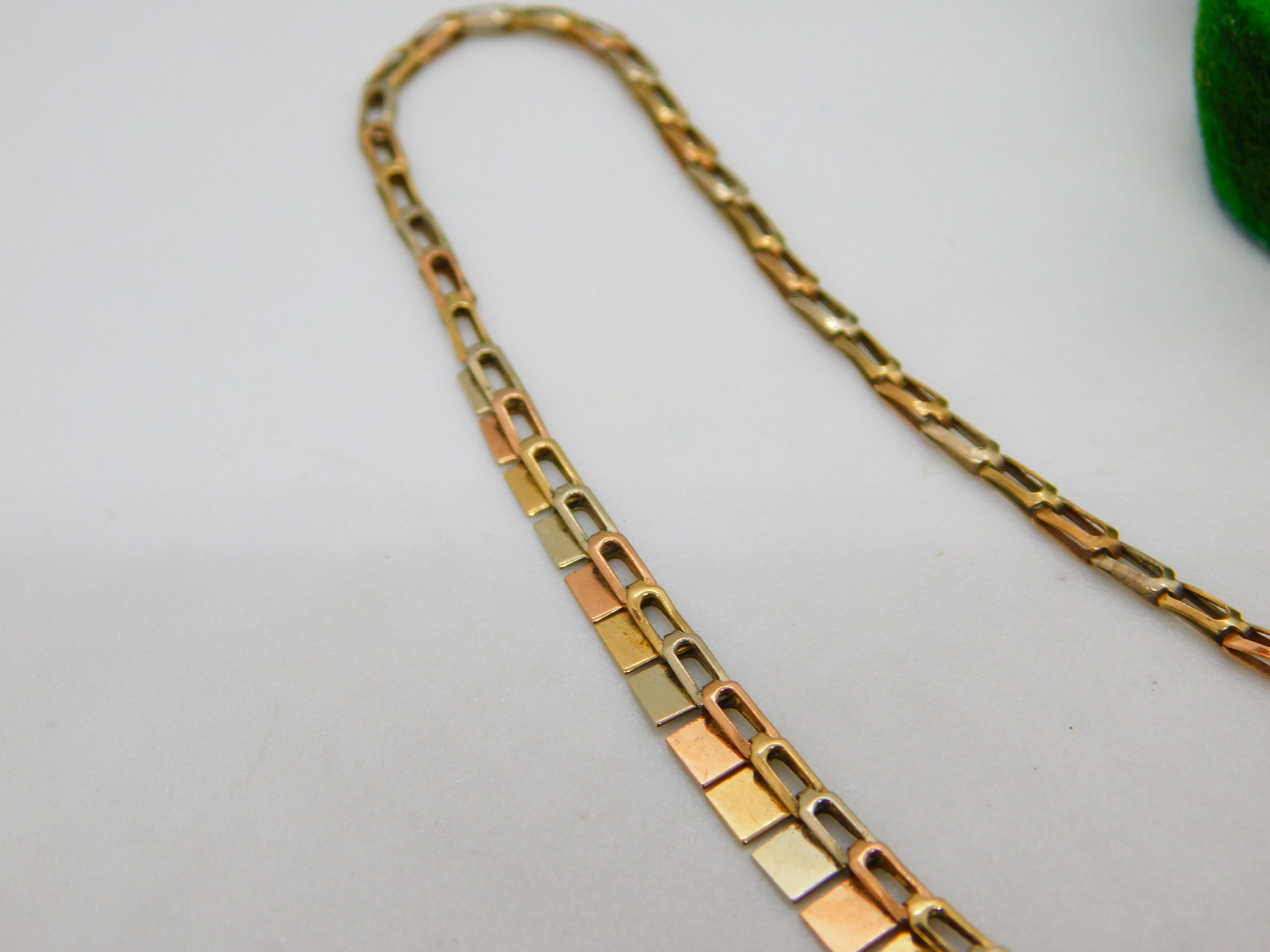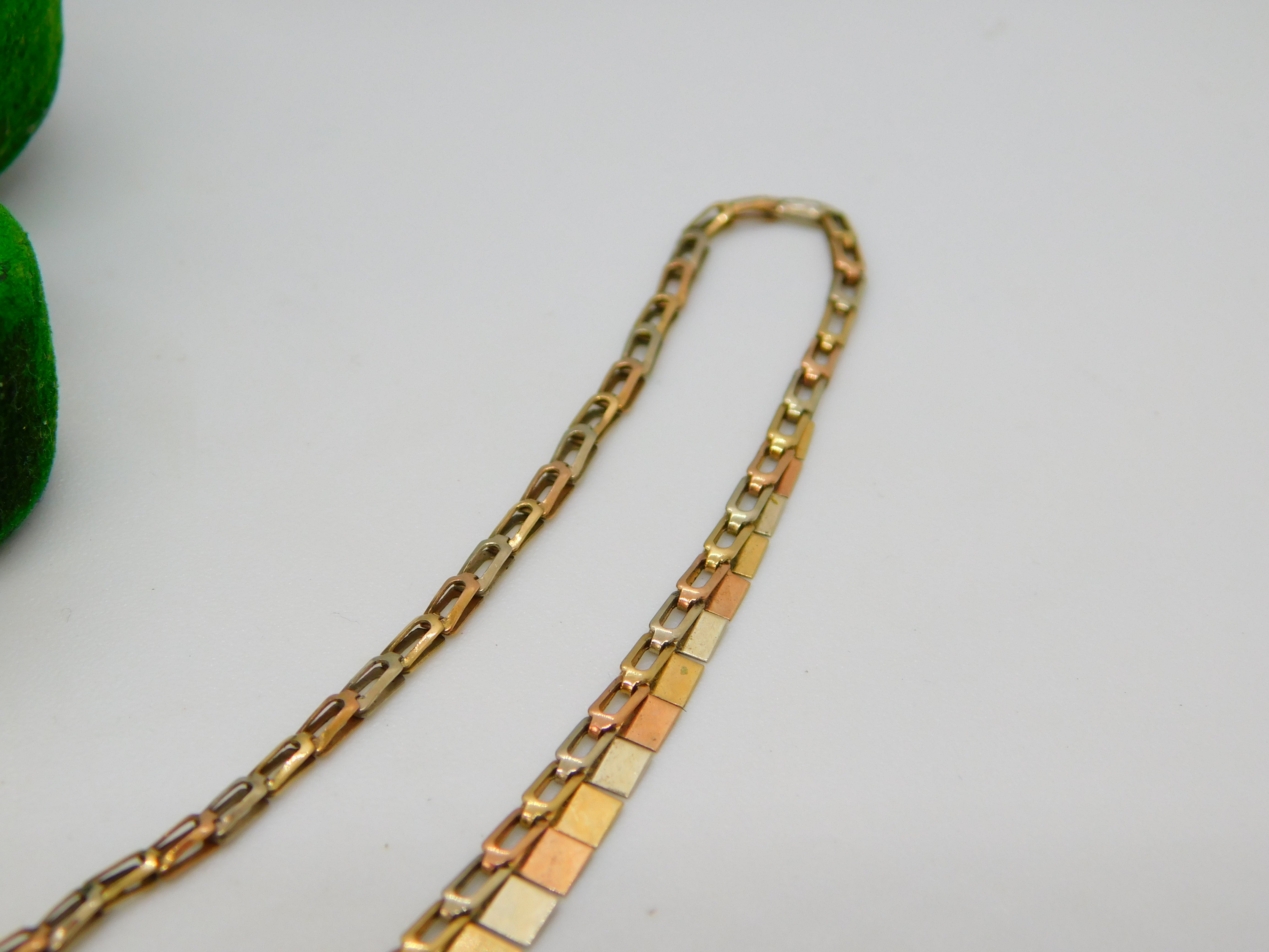 9ct Tri-Colour Gold Shimmering Chain Necklace Vintage 1994 London 40cm Length