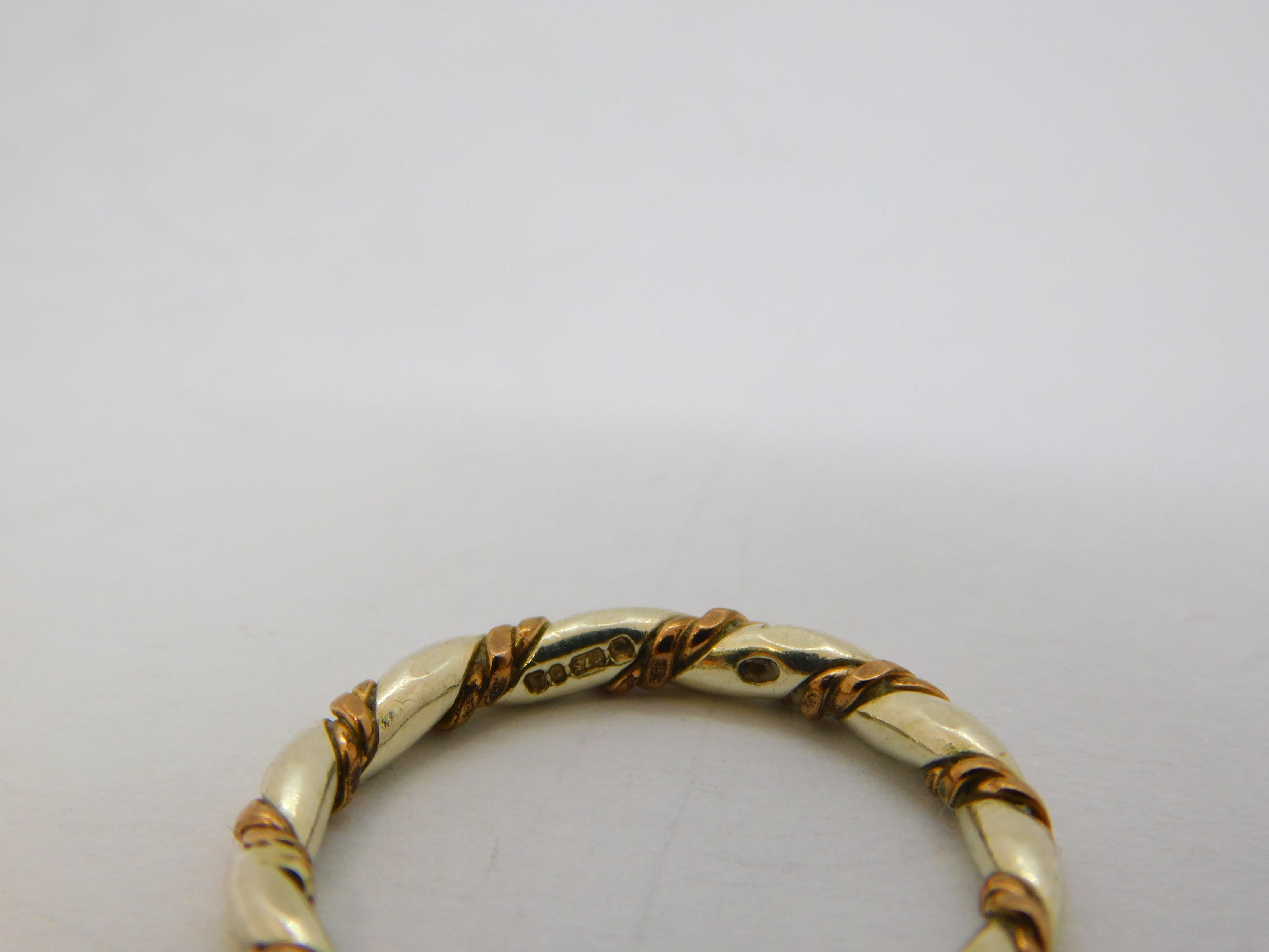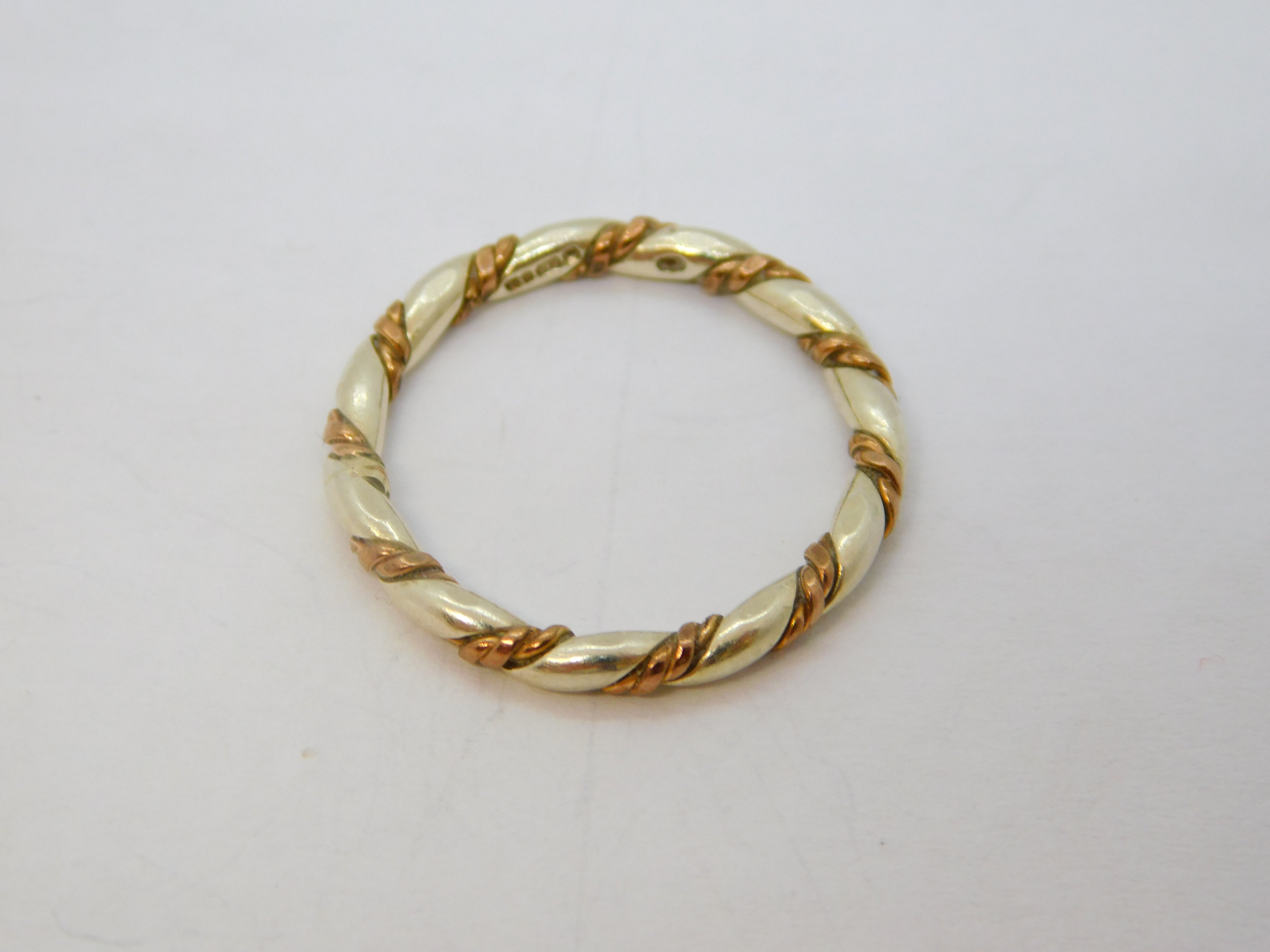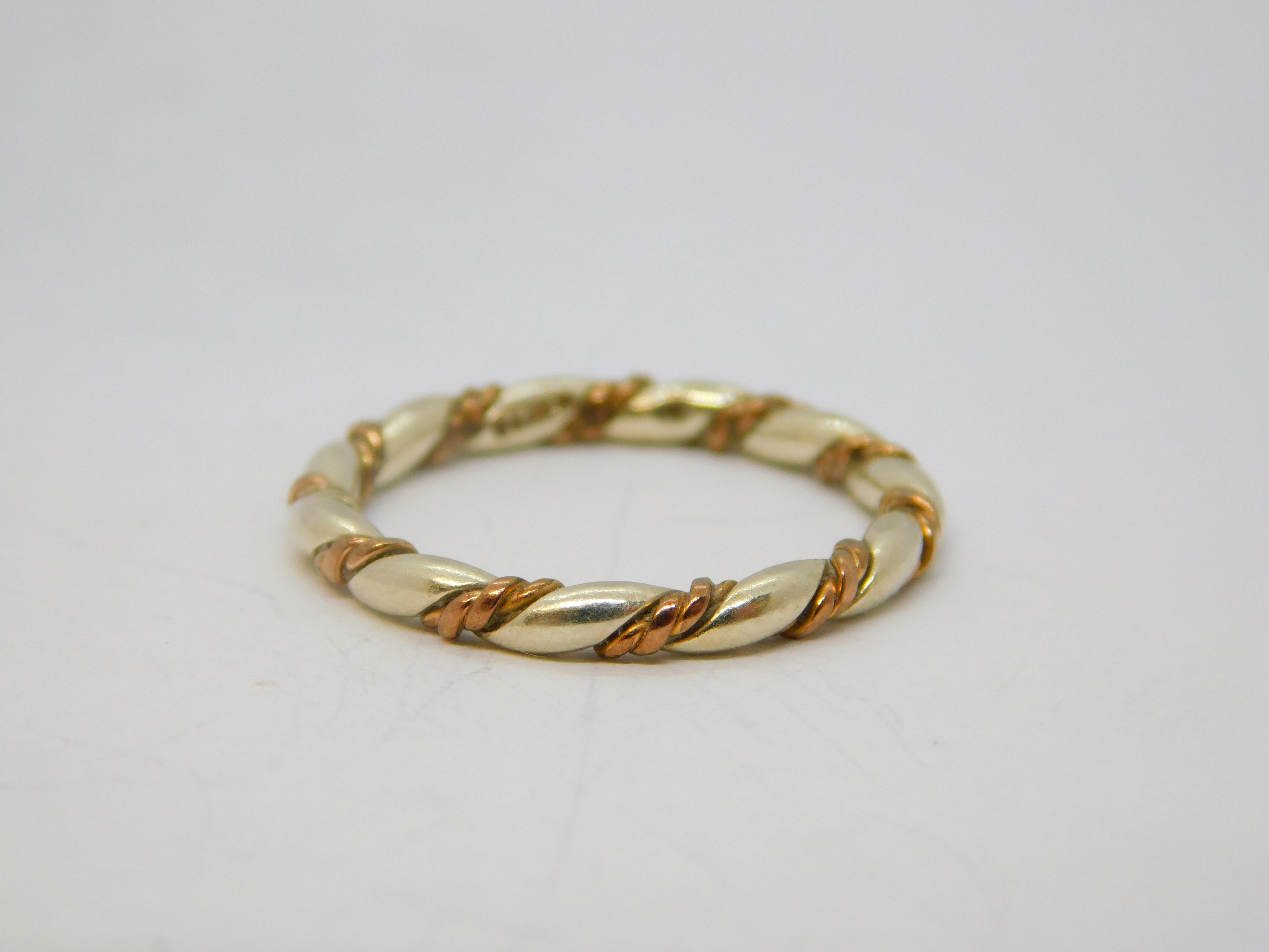 9ct White & Rose Gold Rope Twist Stacking Ring Vintage 1990 London