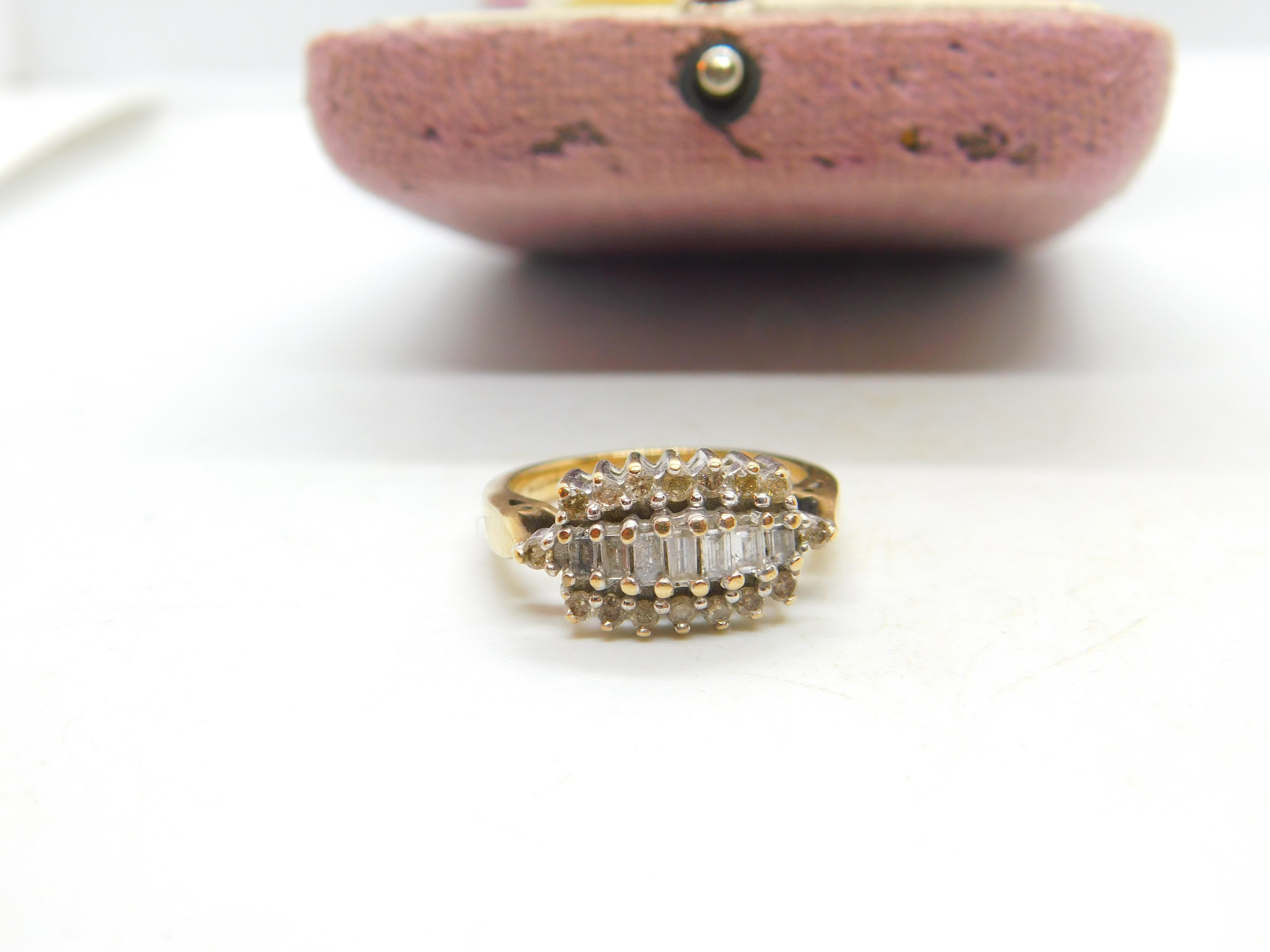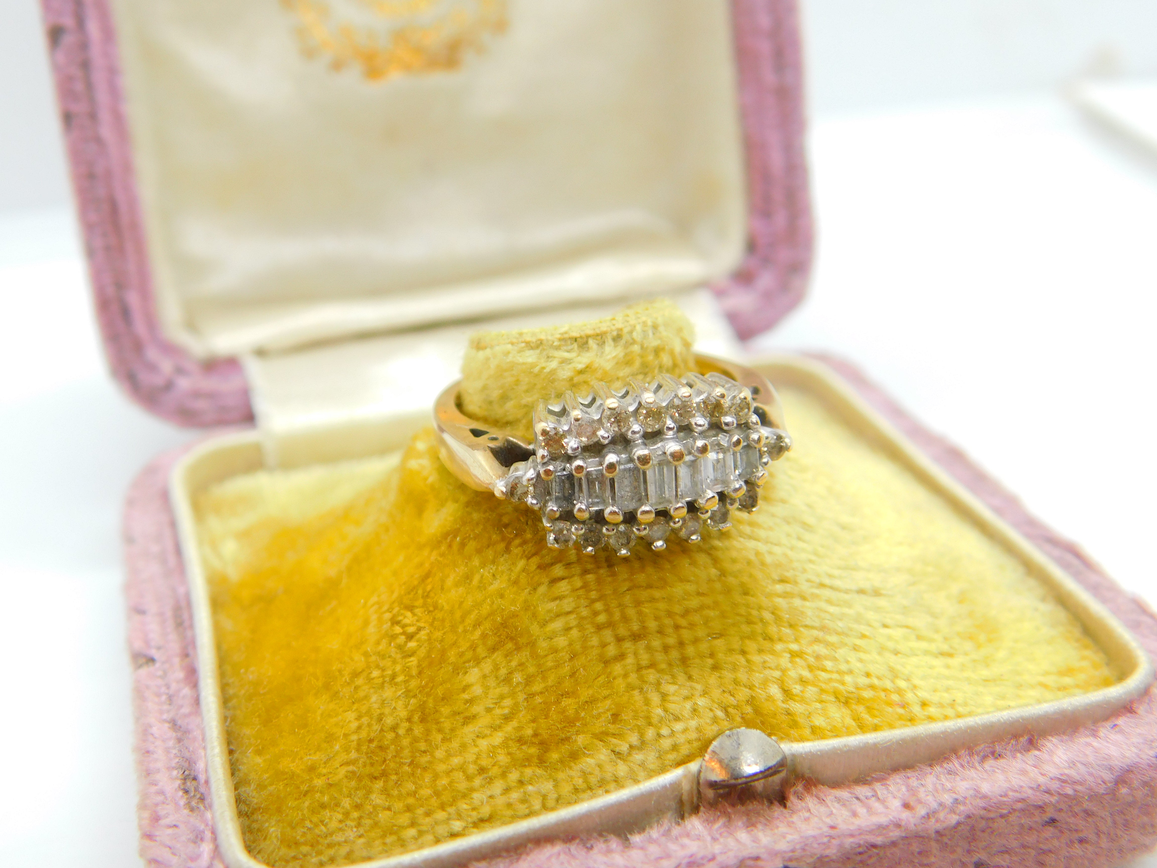9ct Yellow Gold & 0.5ct Baguette Cut Diamond Modernist Ring Vintage c1980