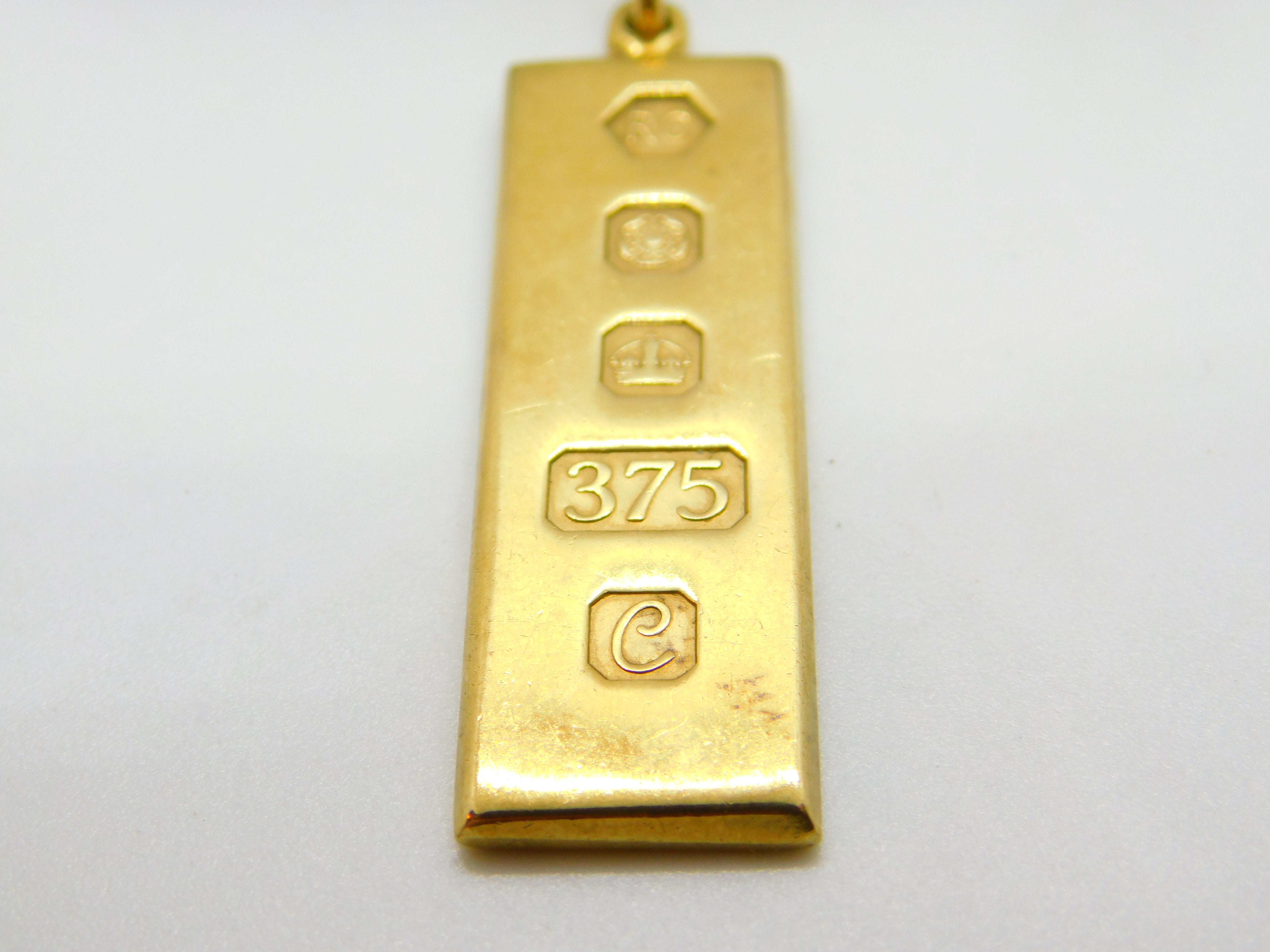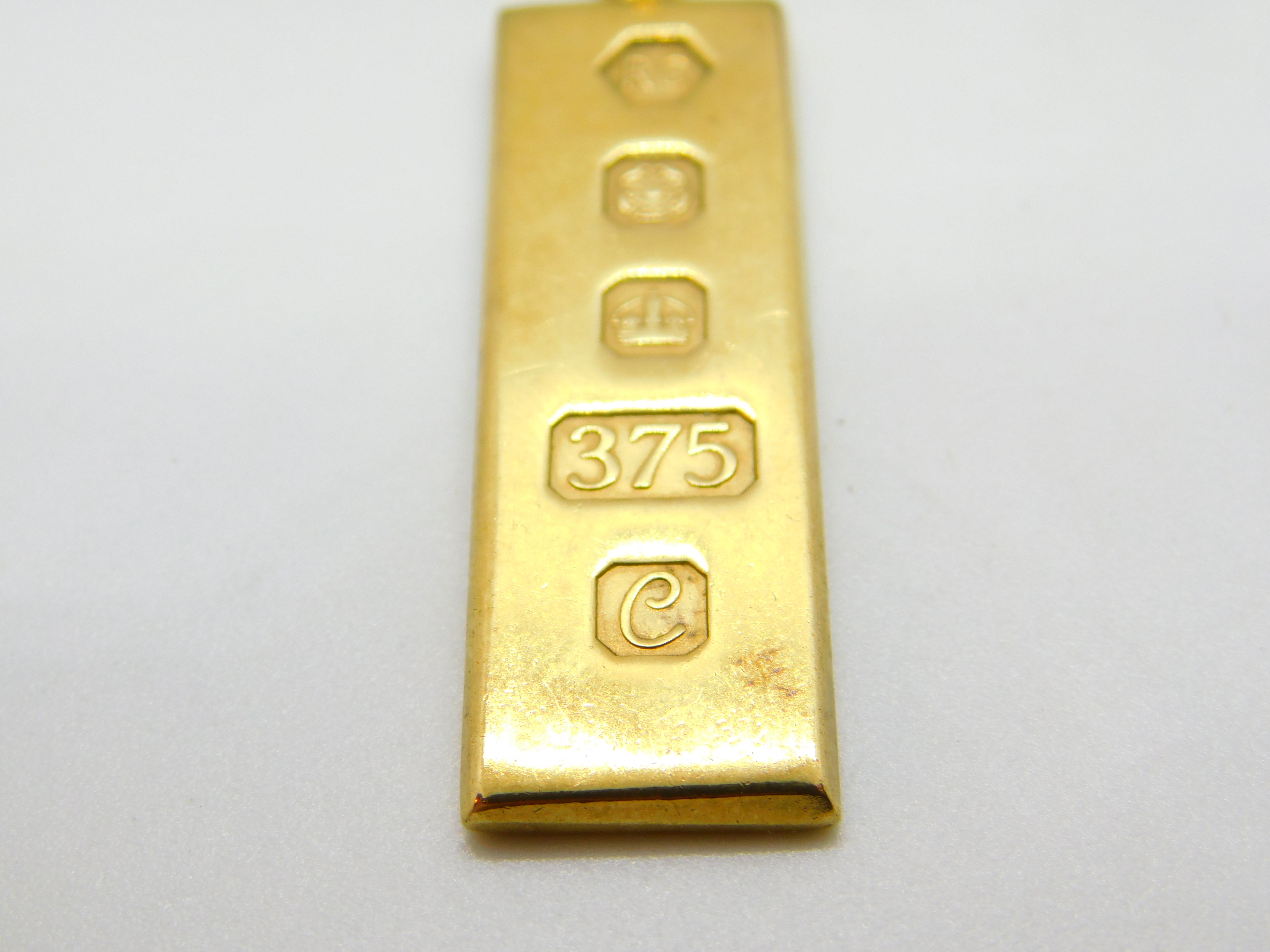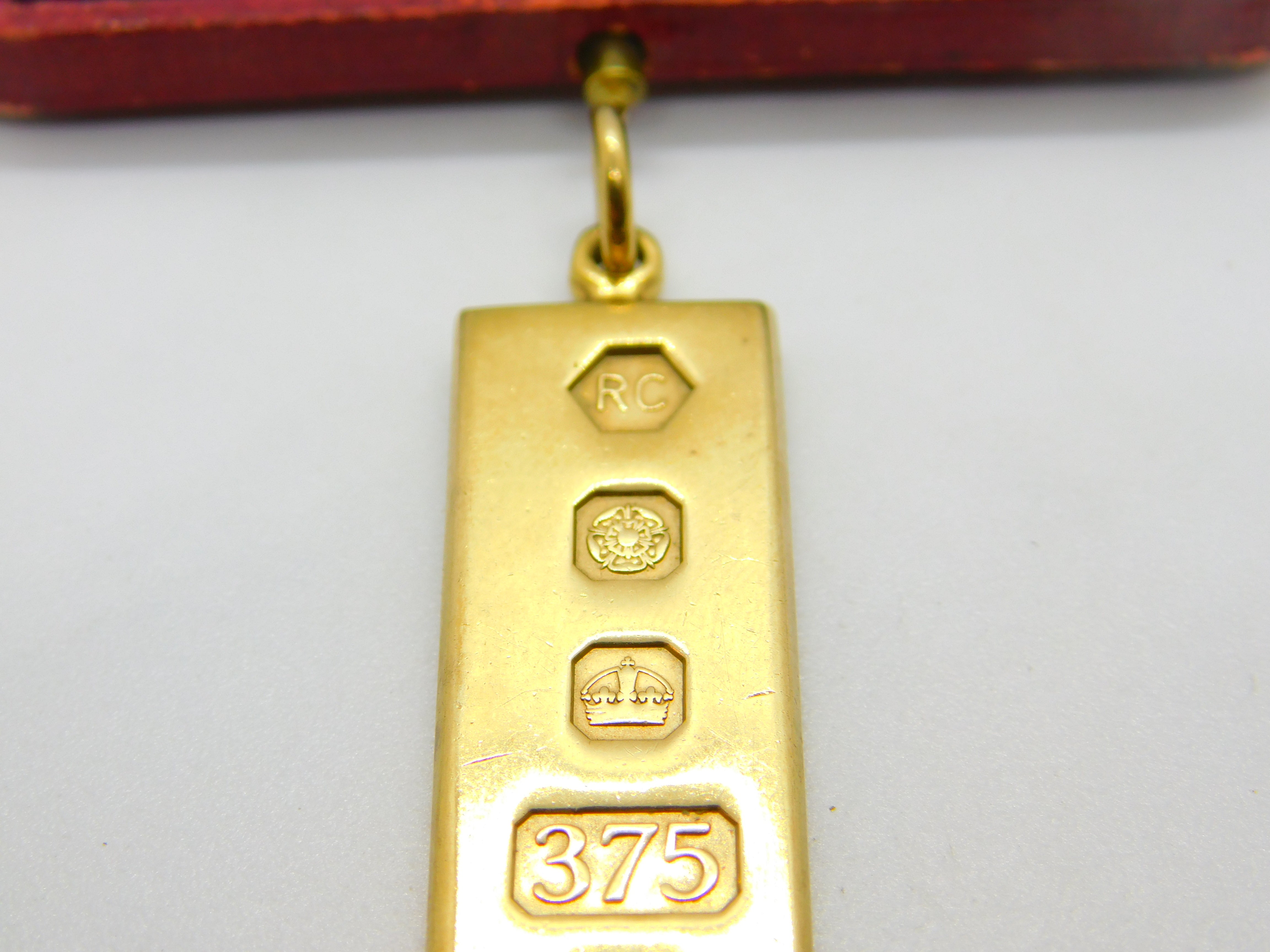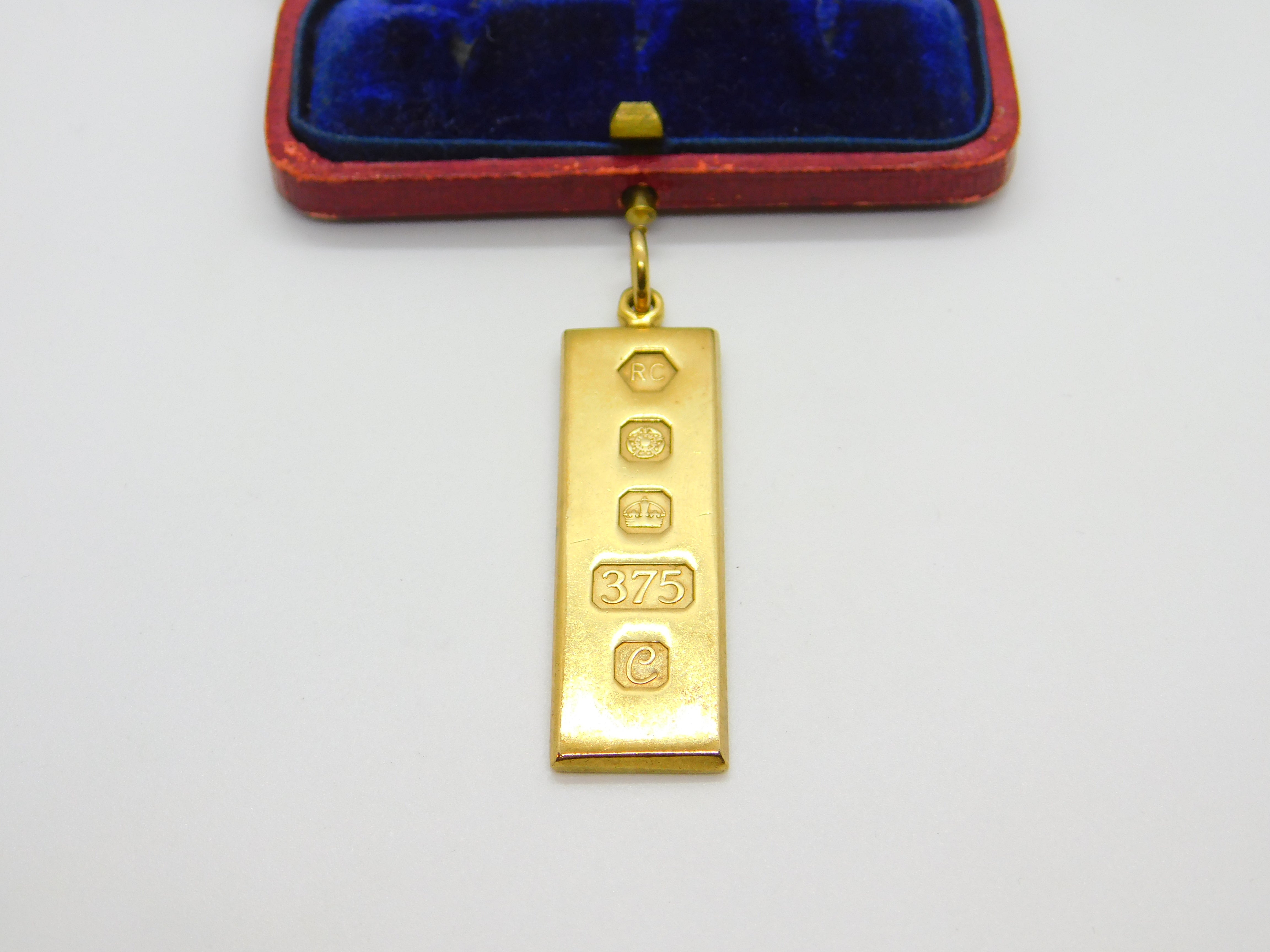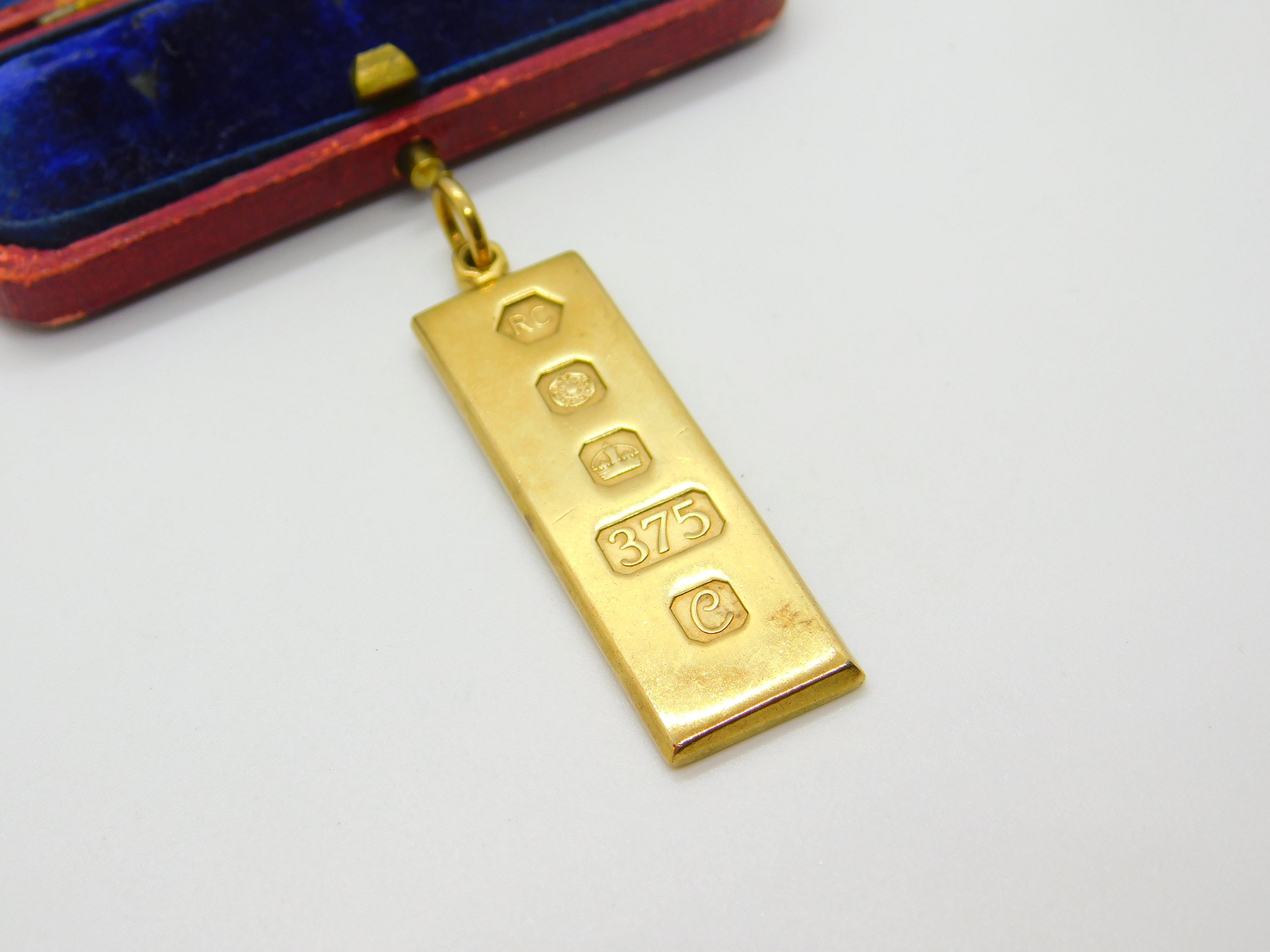 9ct Yellow Gold 1/2 ozt Bullion Bar Ingot Pendant Vintage 1977 Sheffield