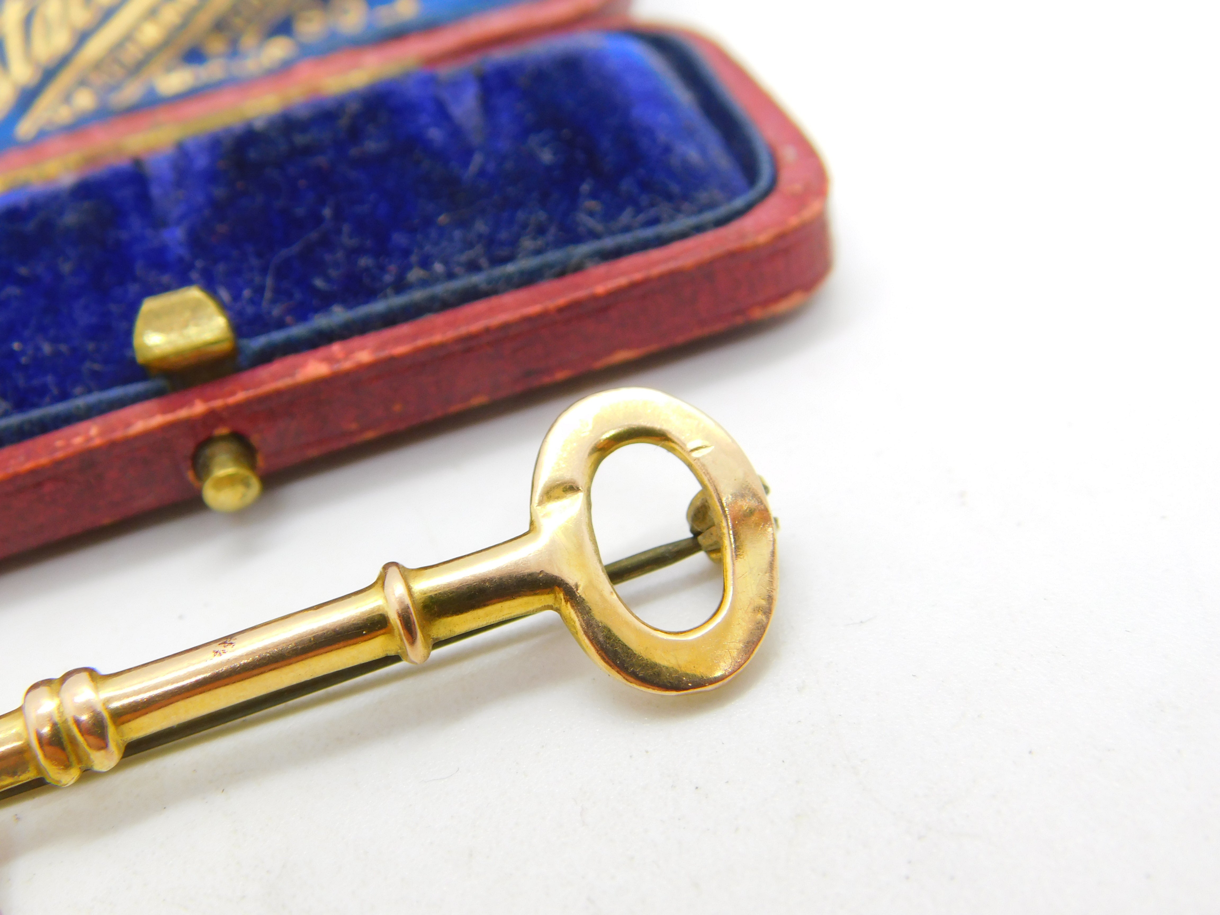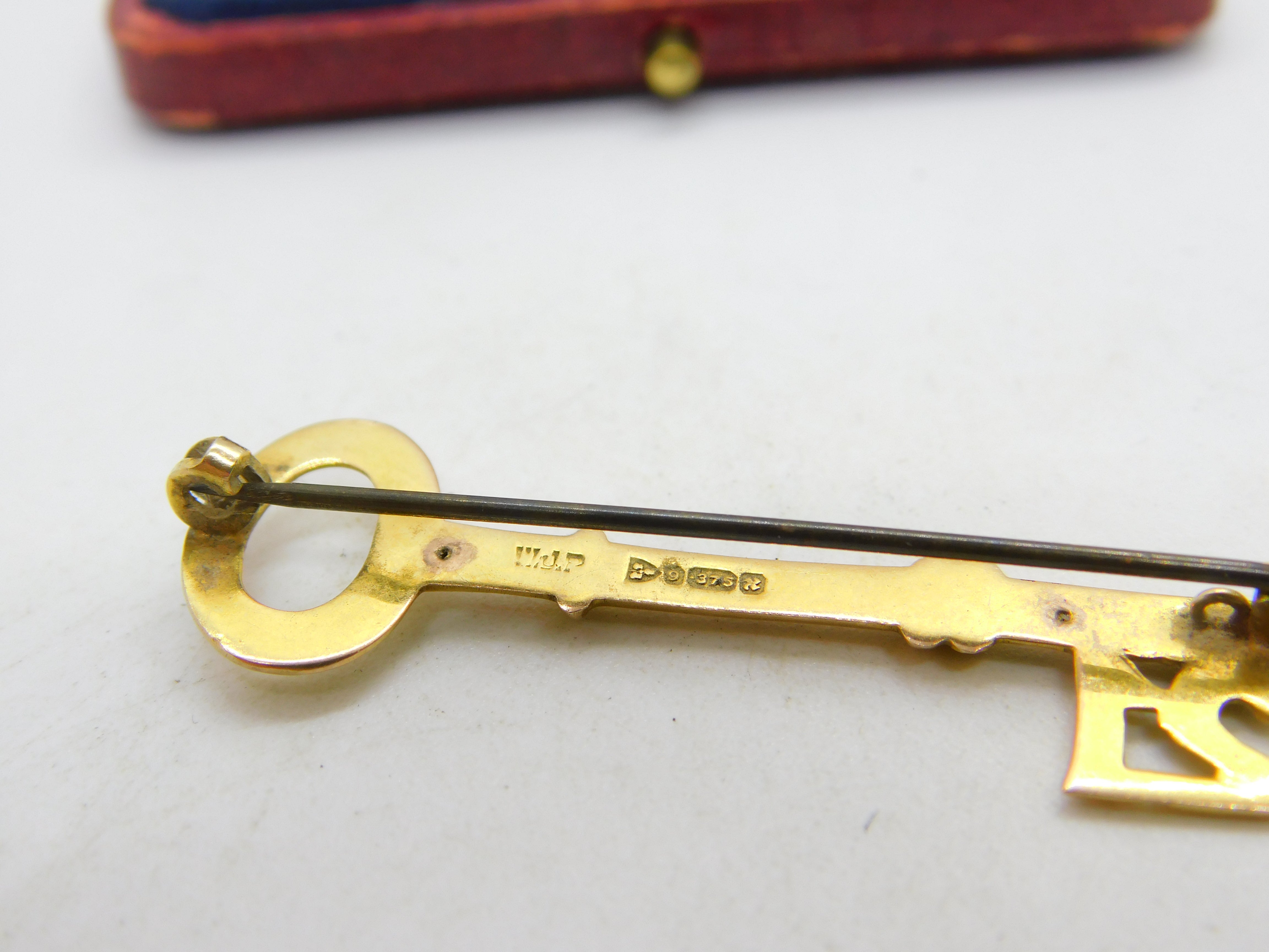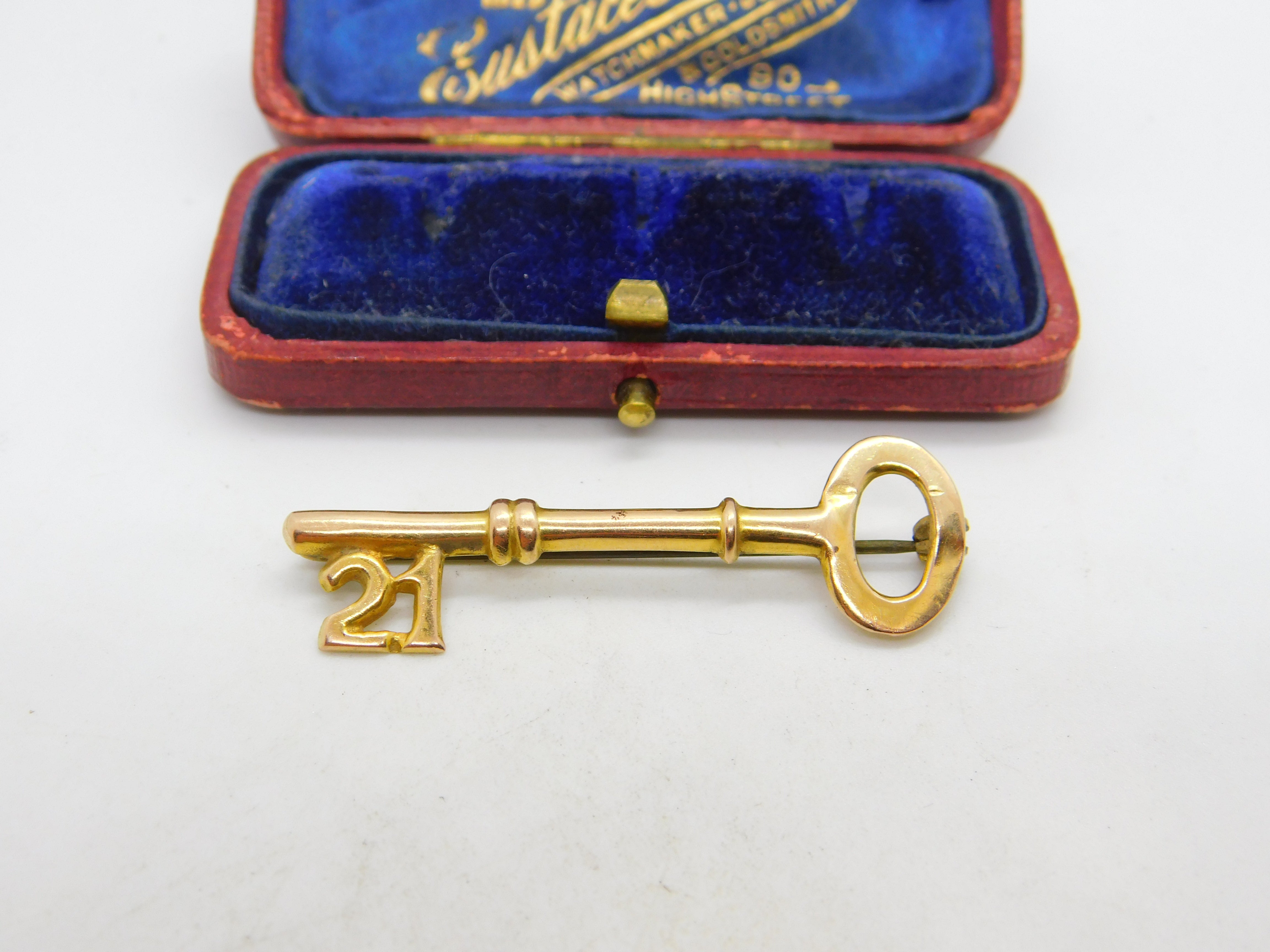 9ct Yellow Gold 21st Birthday Key Brooch Pin Antique 1948 Chester