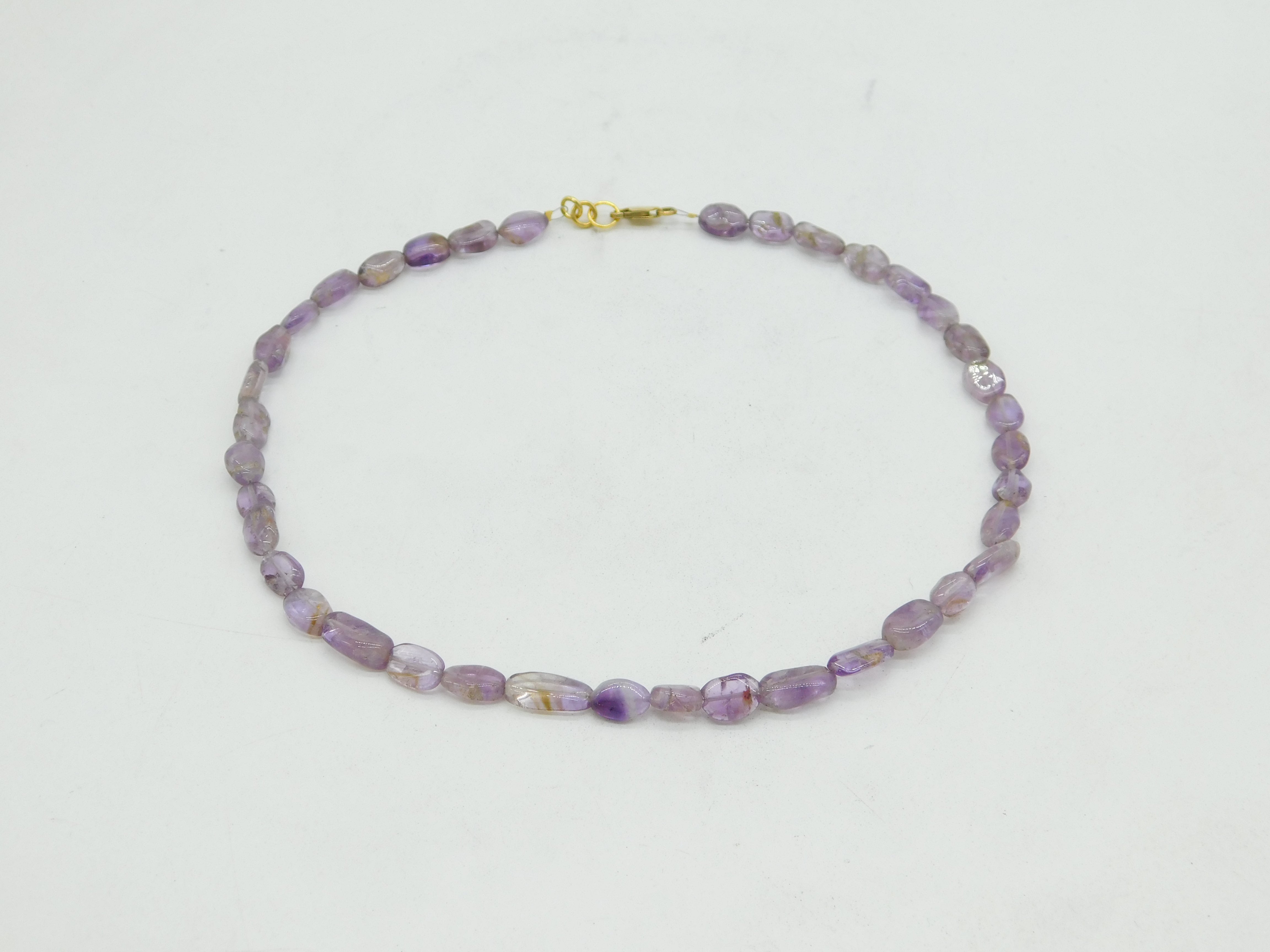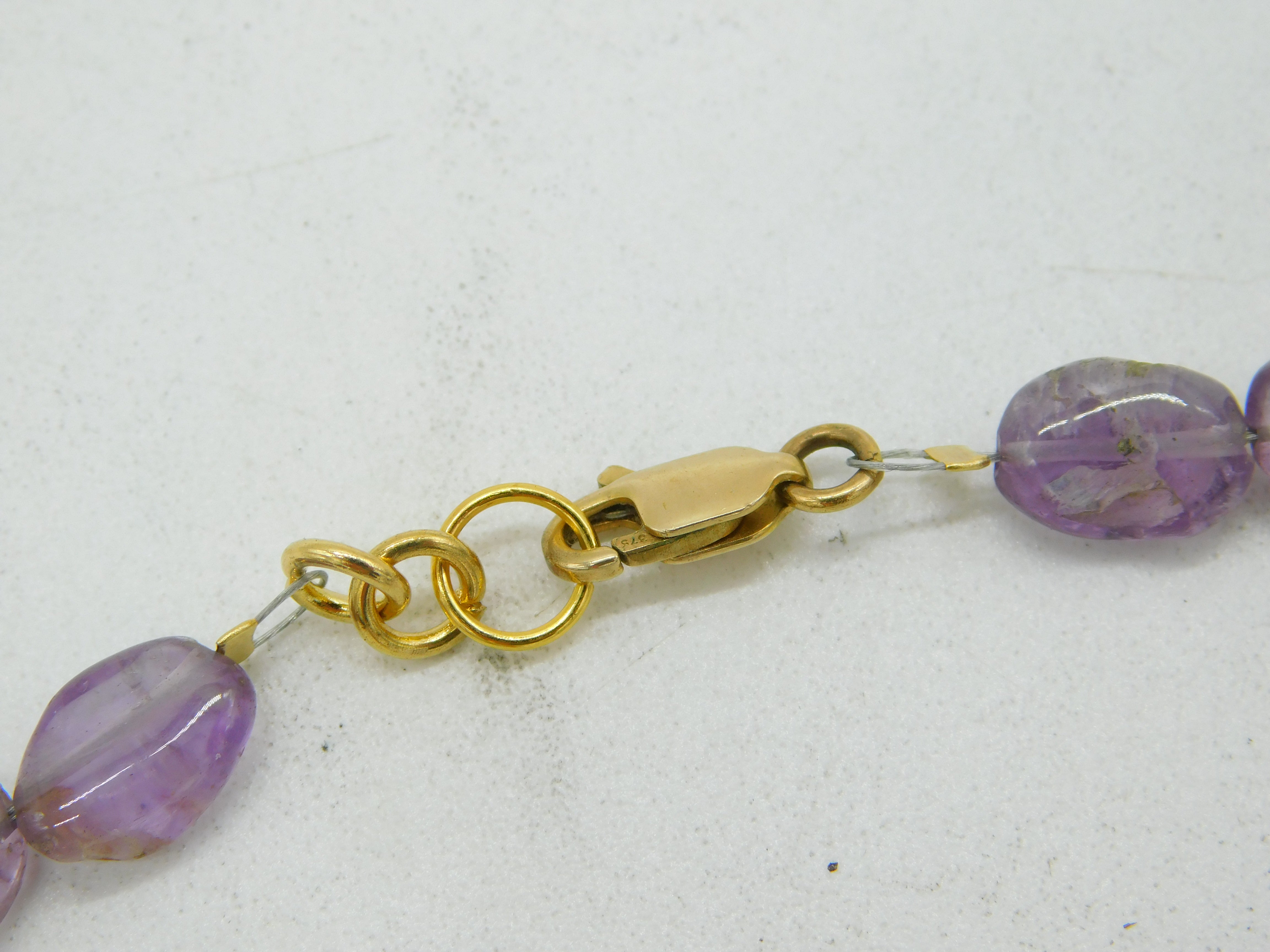 9ct Yellow Gold & Amethyst Beaded Chain Necklace Vintage c1970