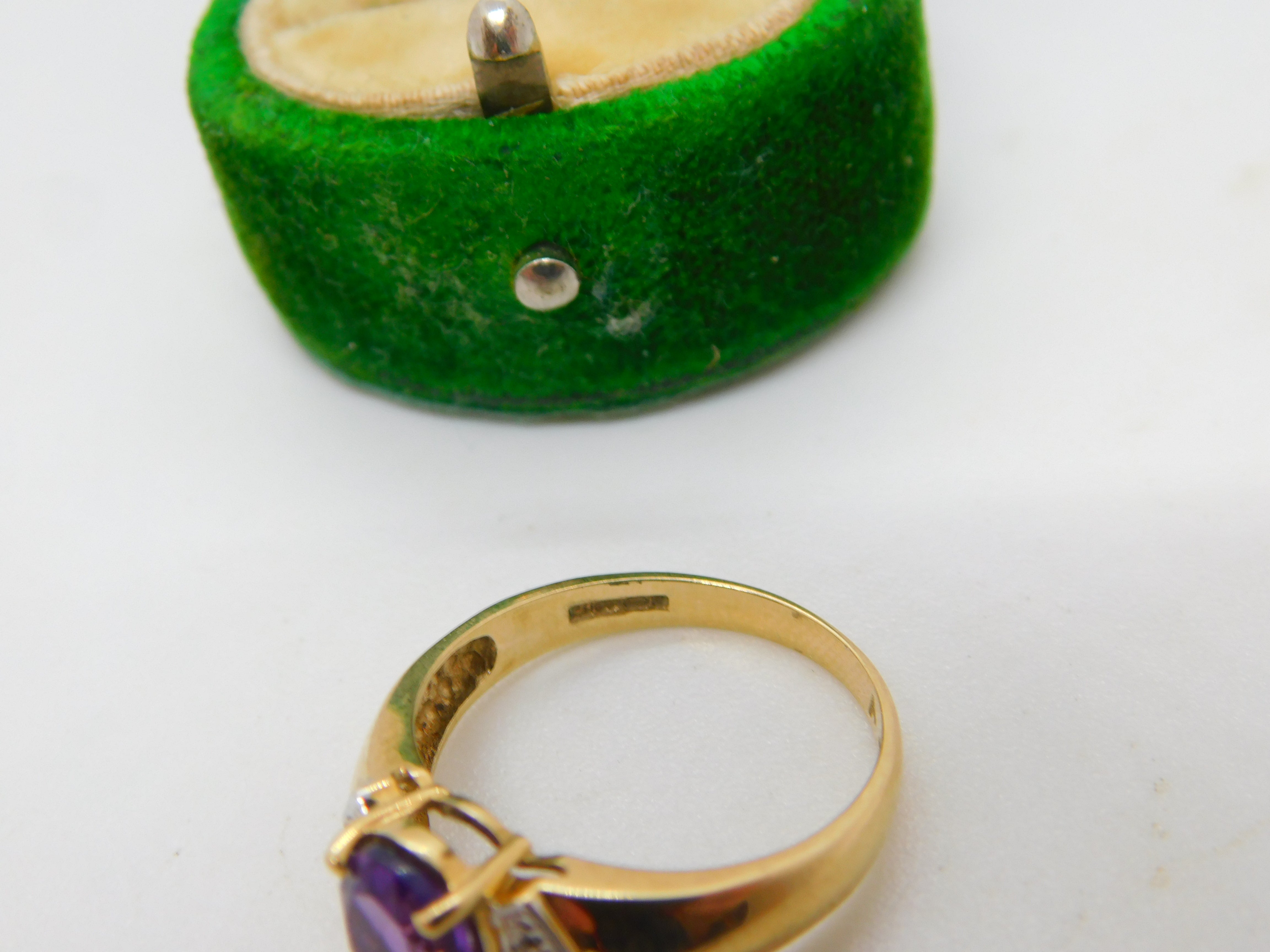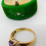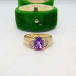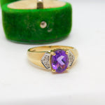 9ct Yellow Gold, Amethyst & Diamond Dress Ring Vintage c1990 Birmingham