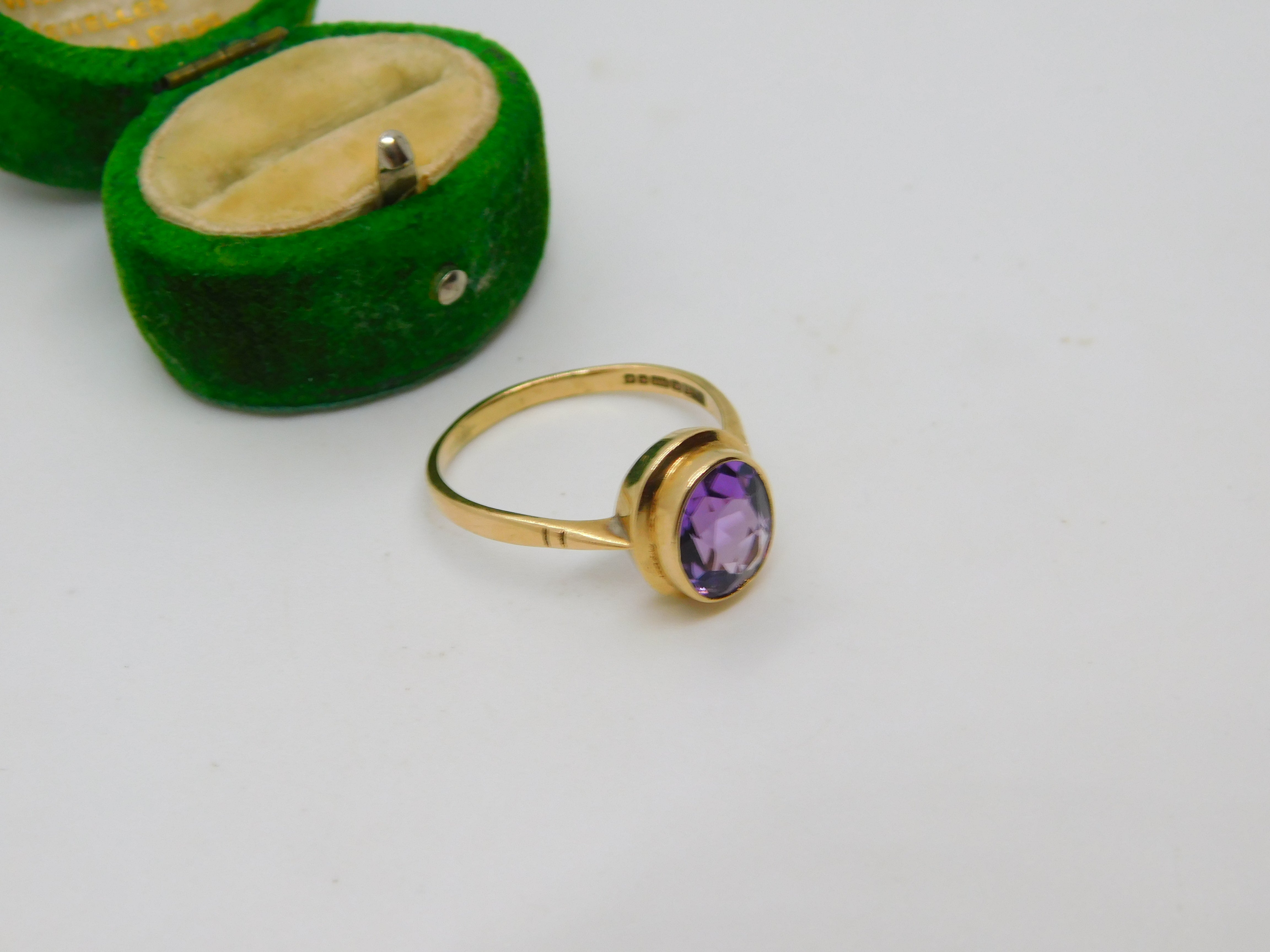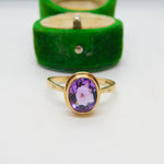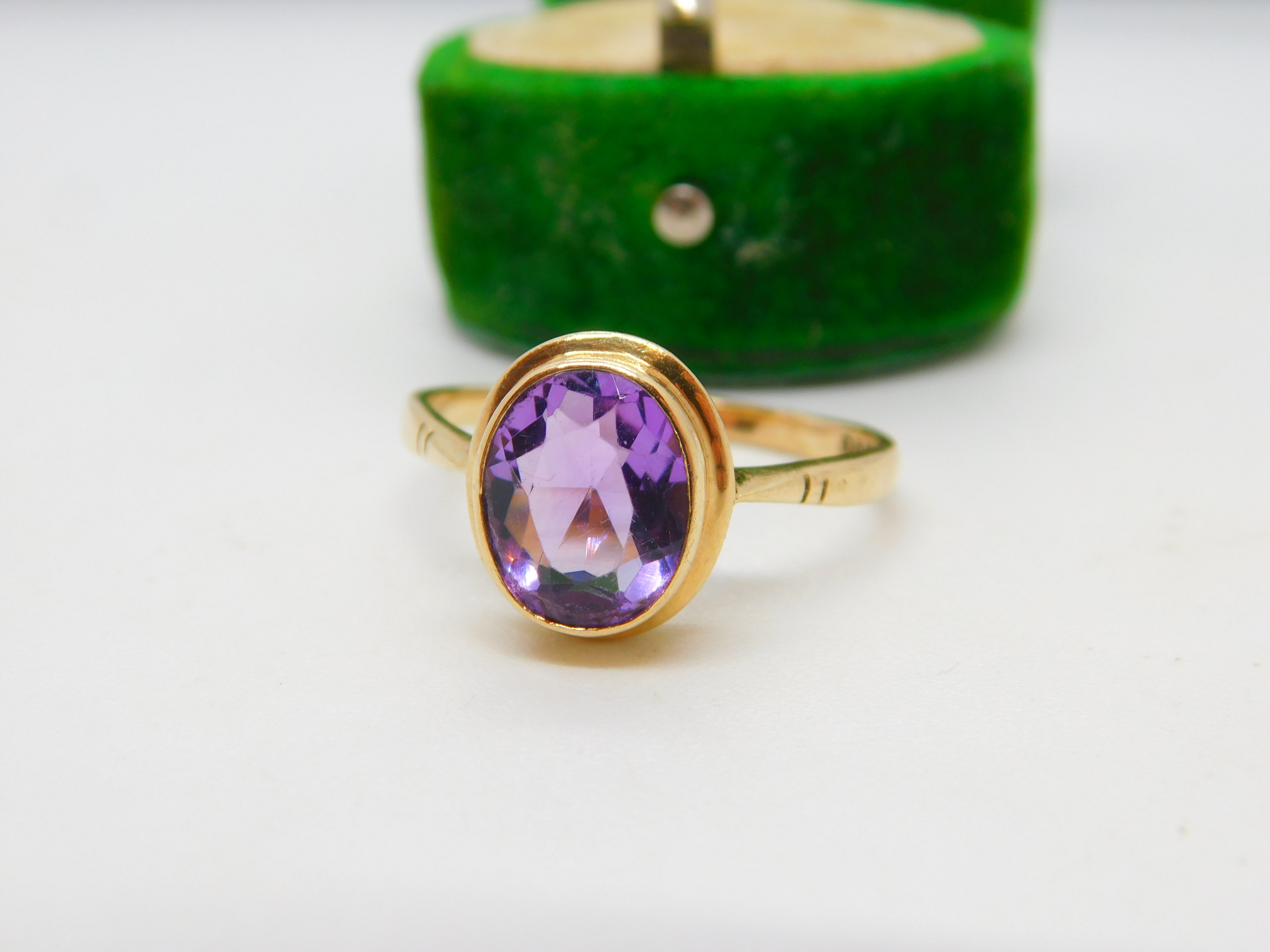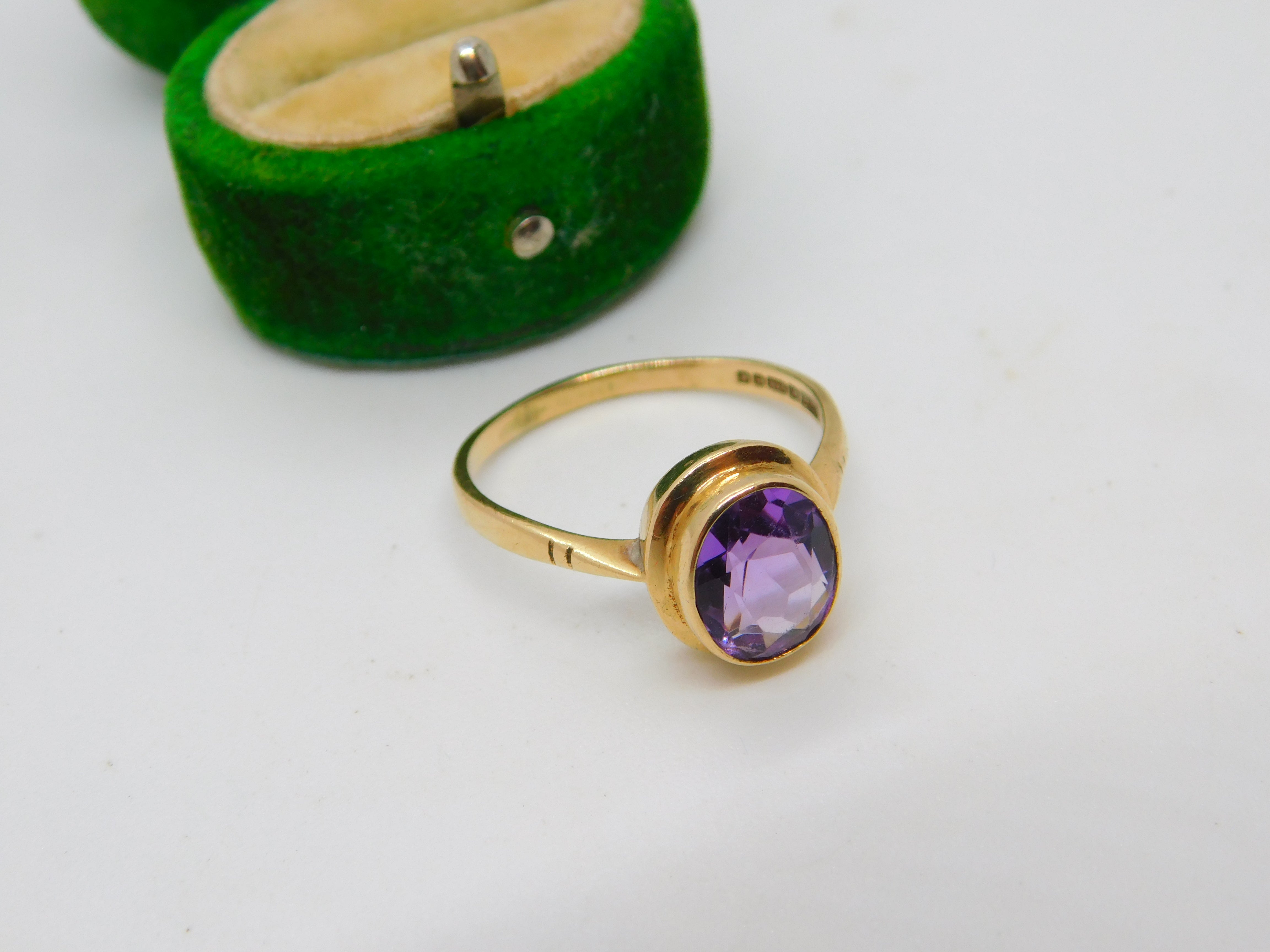 9ct Yellow Gold & Amethyst Set Dress Ring Vintage 1975 Birmingham