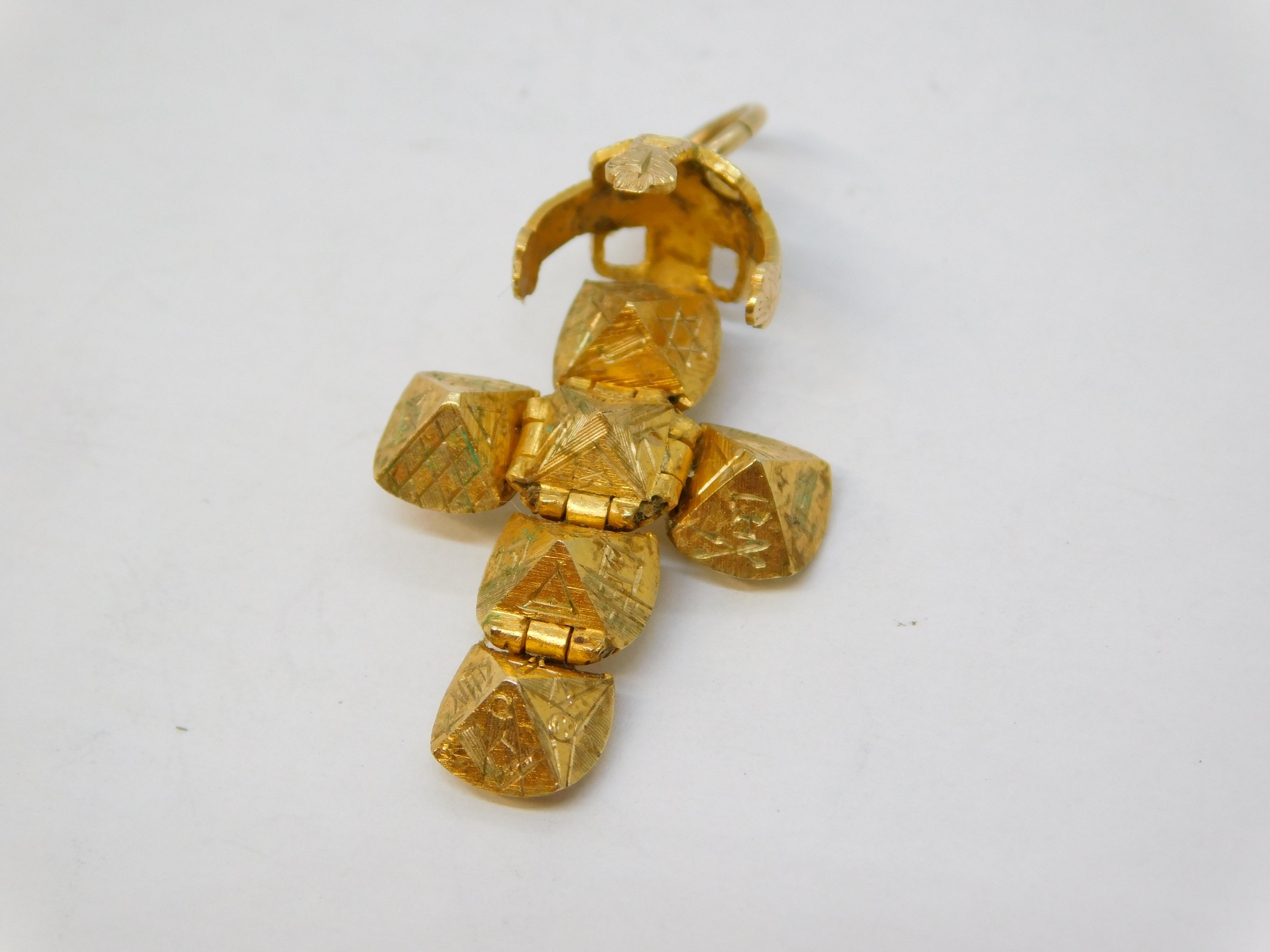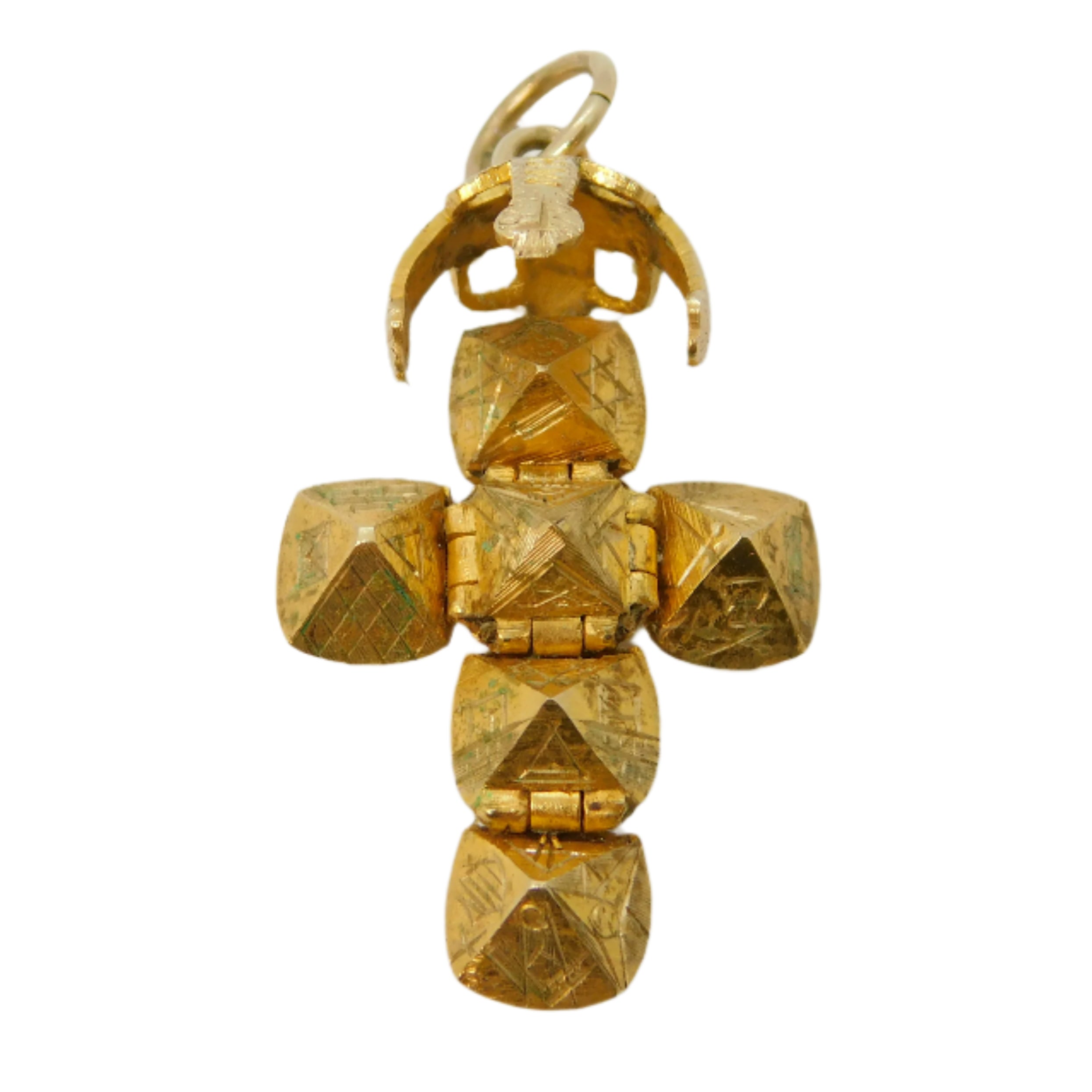 Details: A fantastic and wonderfully designed antique 9ct yellow gold small articulated masonic ball cross fob or pendant hallmarked Birmingham 1990, rarely found is solid 9ct gold. This is a wonderful item that would make a perfect gift or addition to any collection.