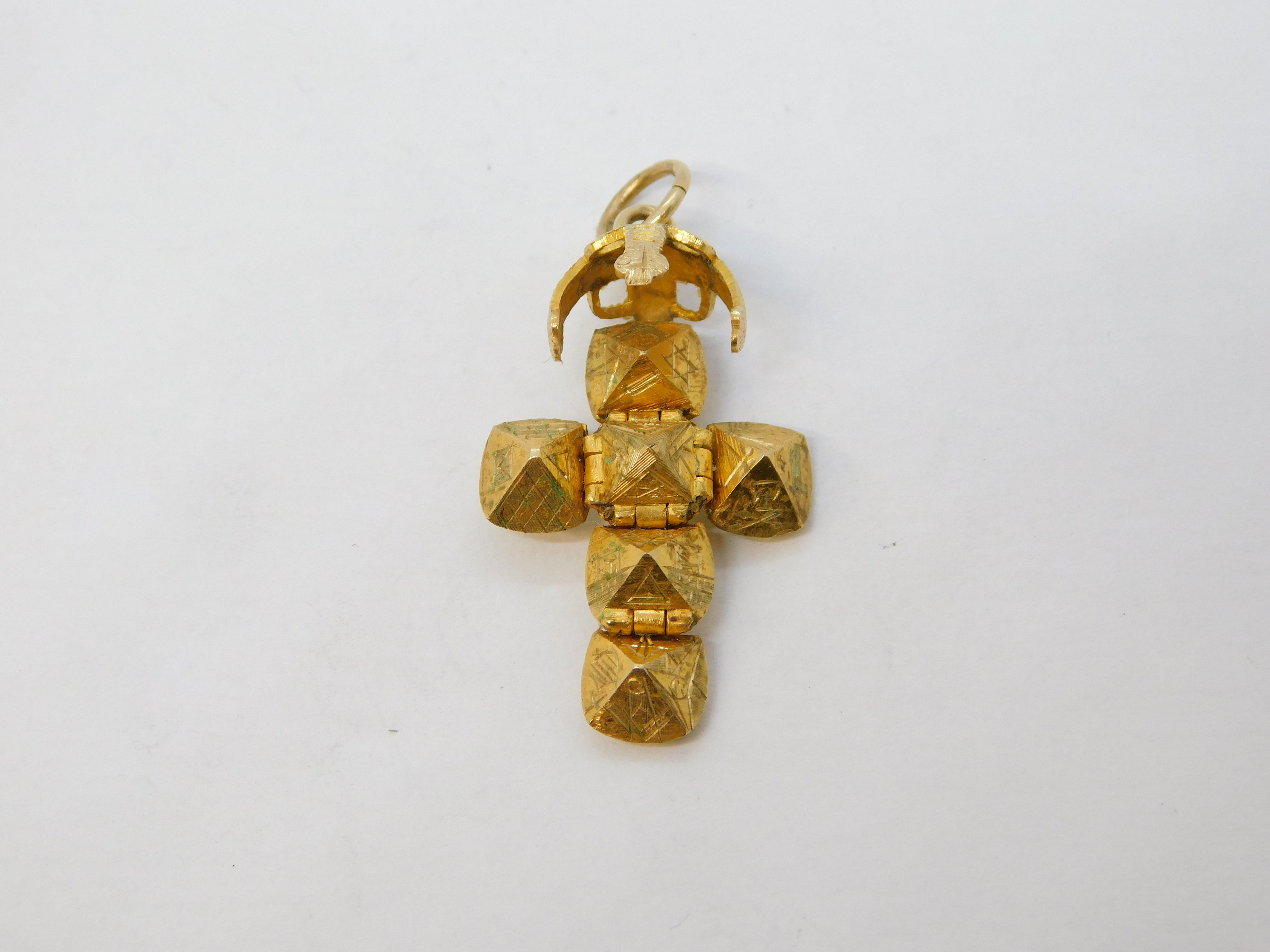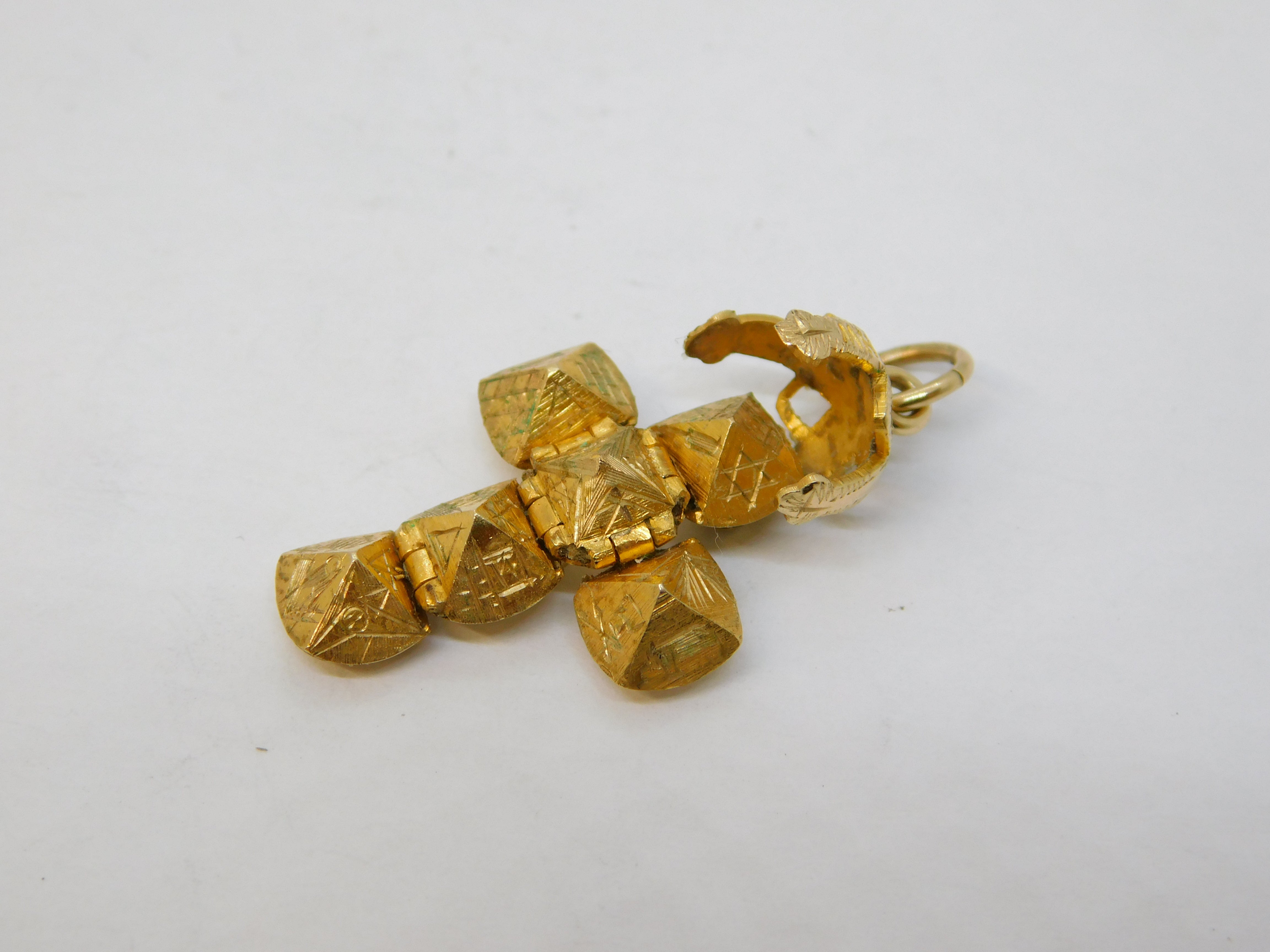 9ct Yellow Gold Articulated Masonic Ball Cross Pendant Vintage 1990 Birmingham