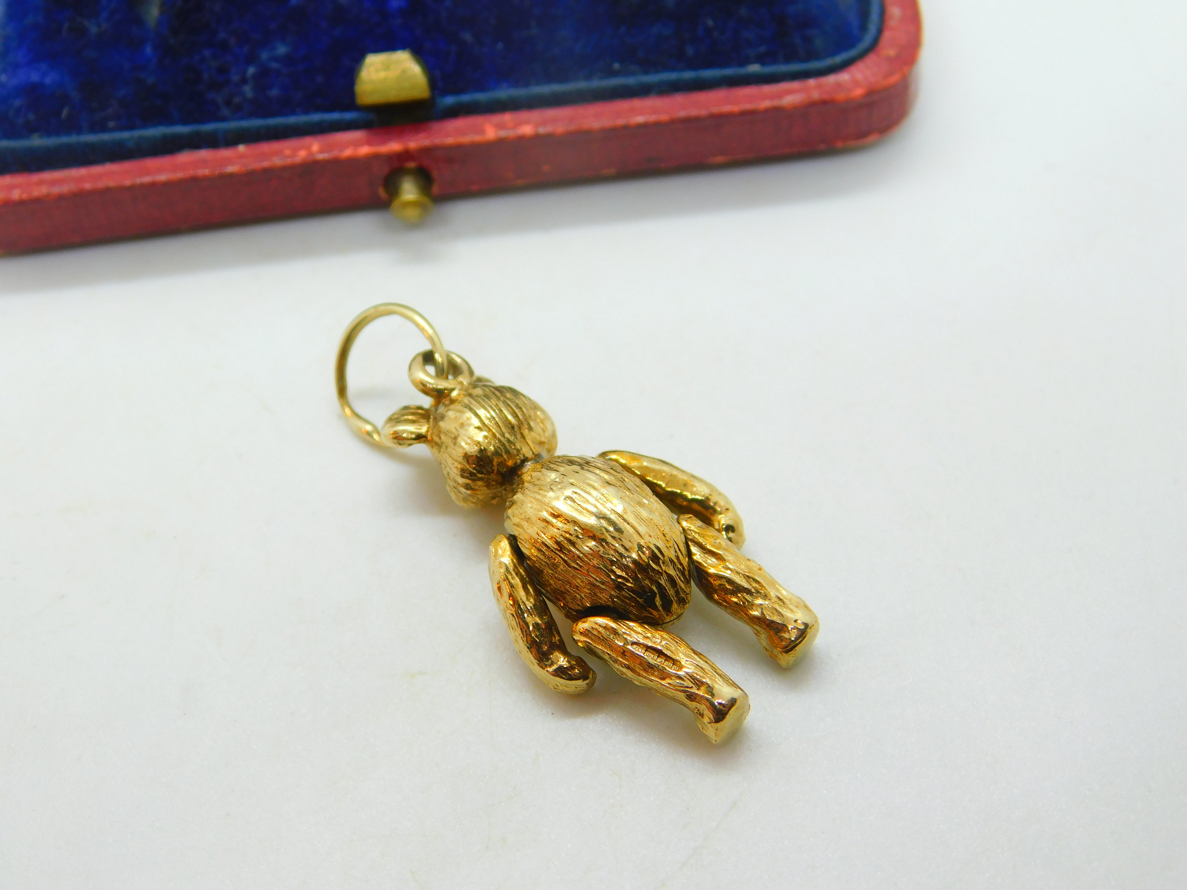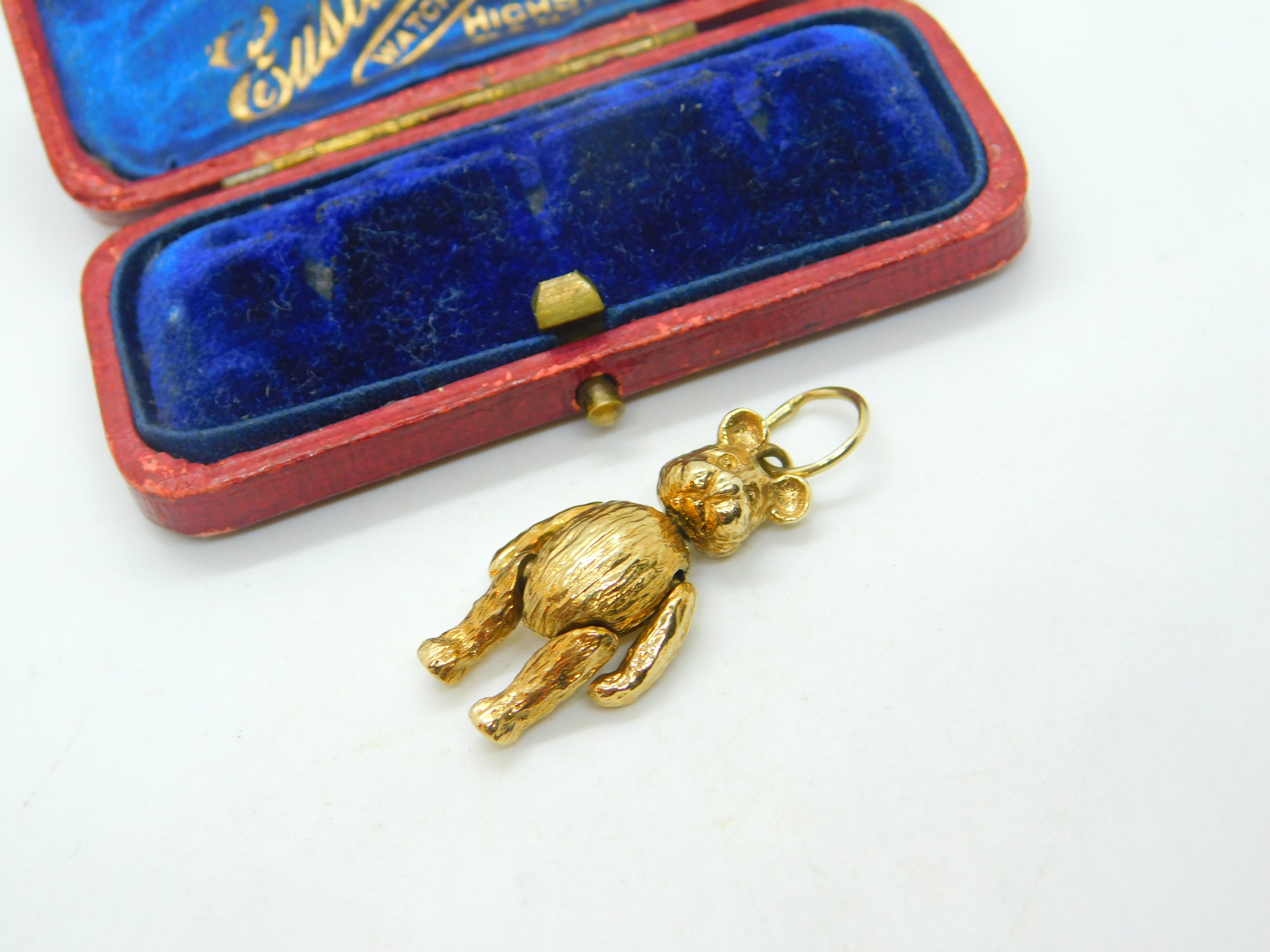 9ct Yellow Gold Articulated Moving Teddy Bear Pendant Vintage 2003 Sheffield