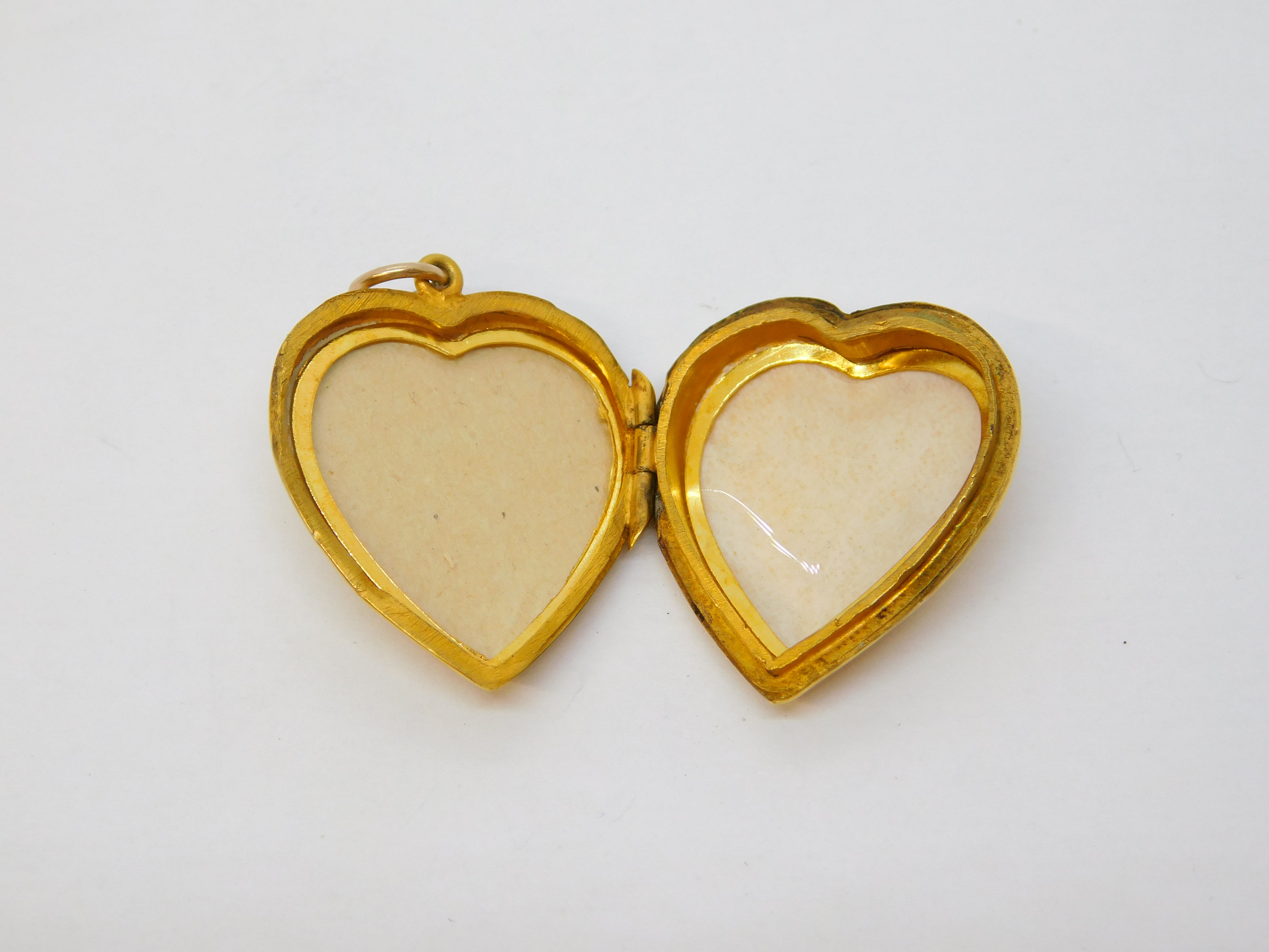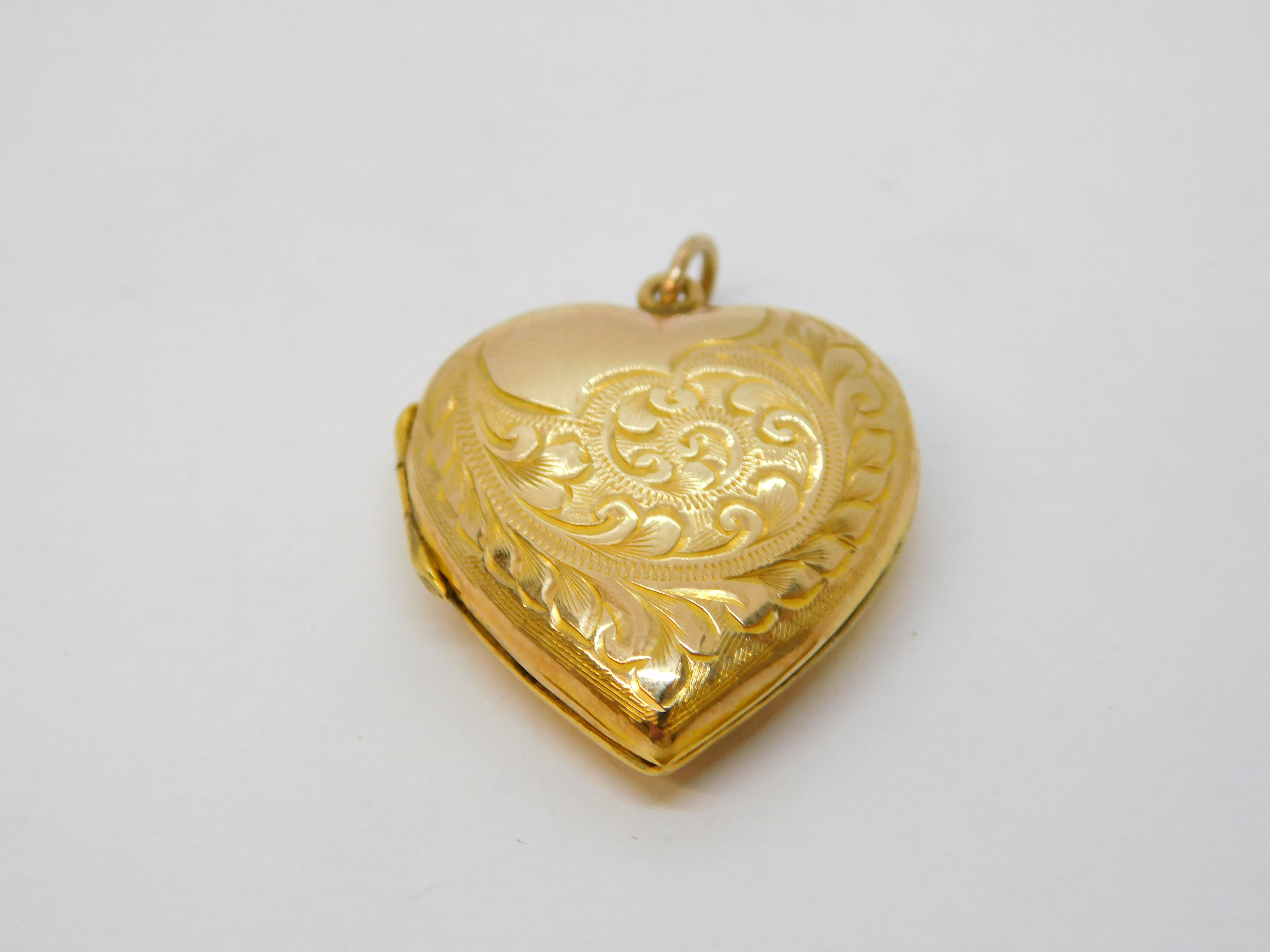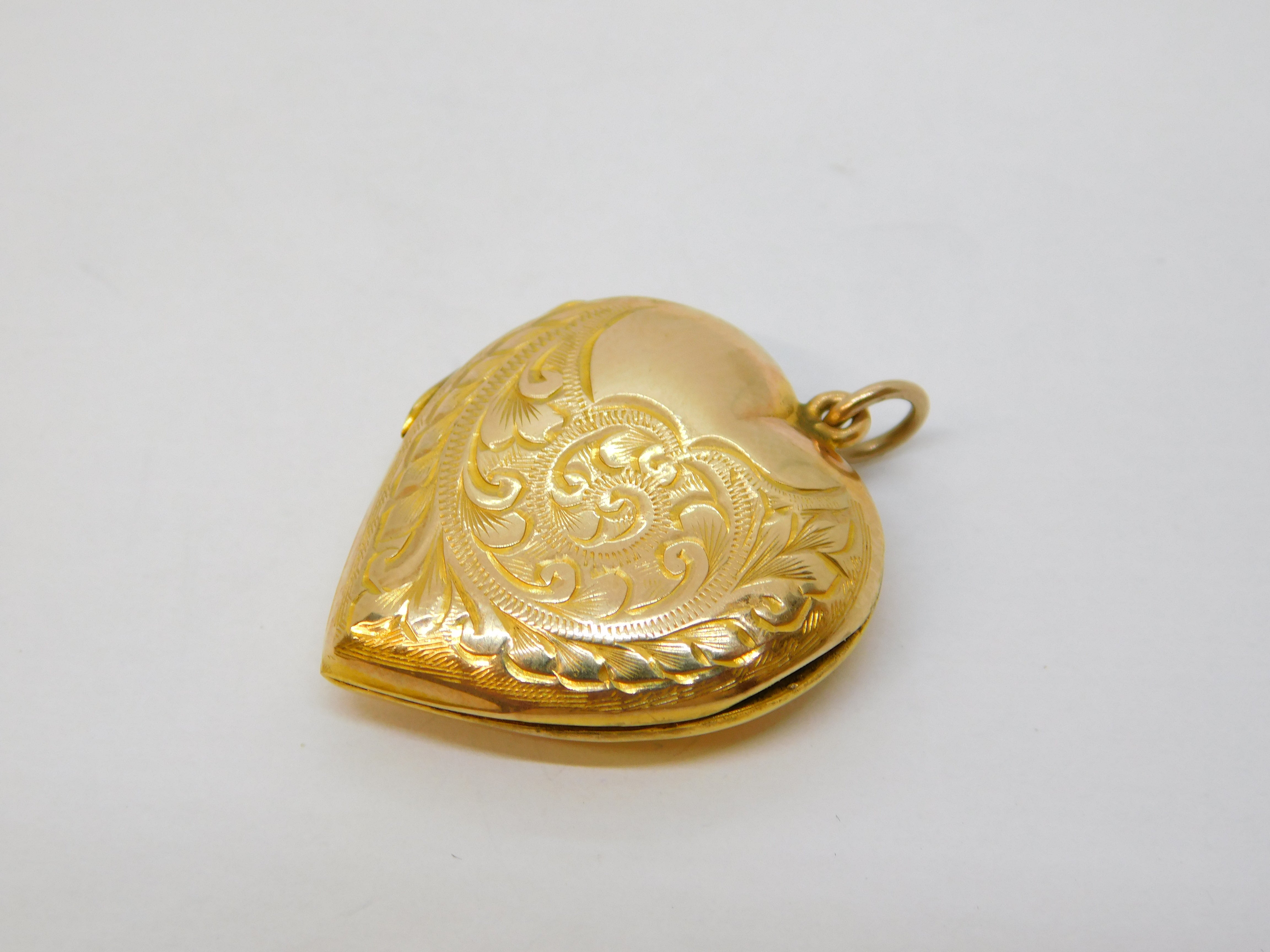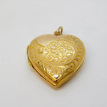 9ct Yellow Gold Back & Front Floral Pattern Heart Locket Pendant Antique c1920