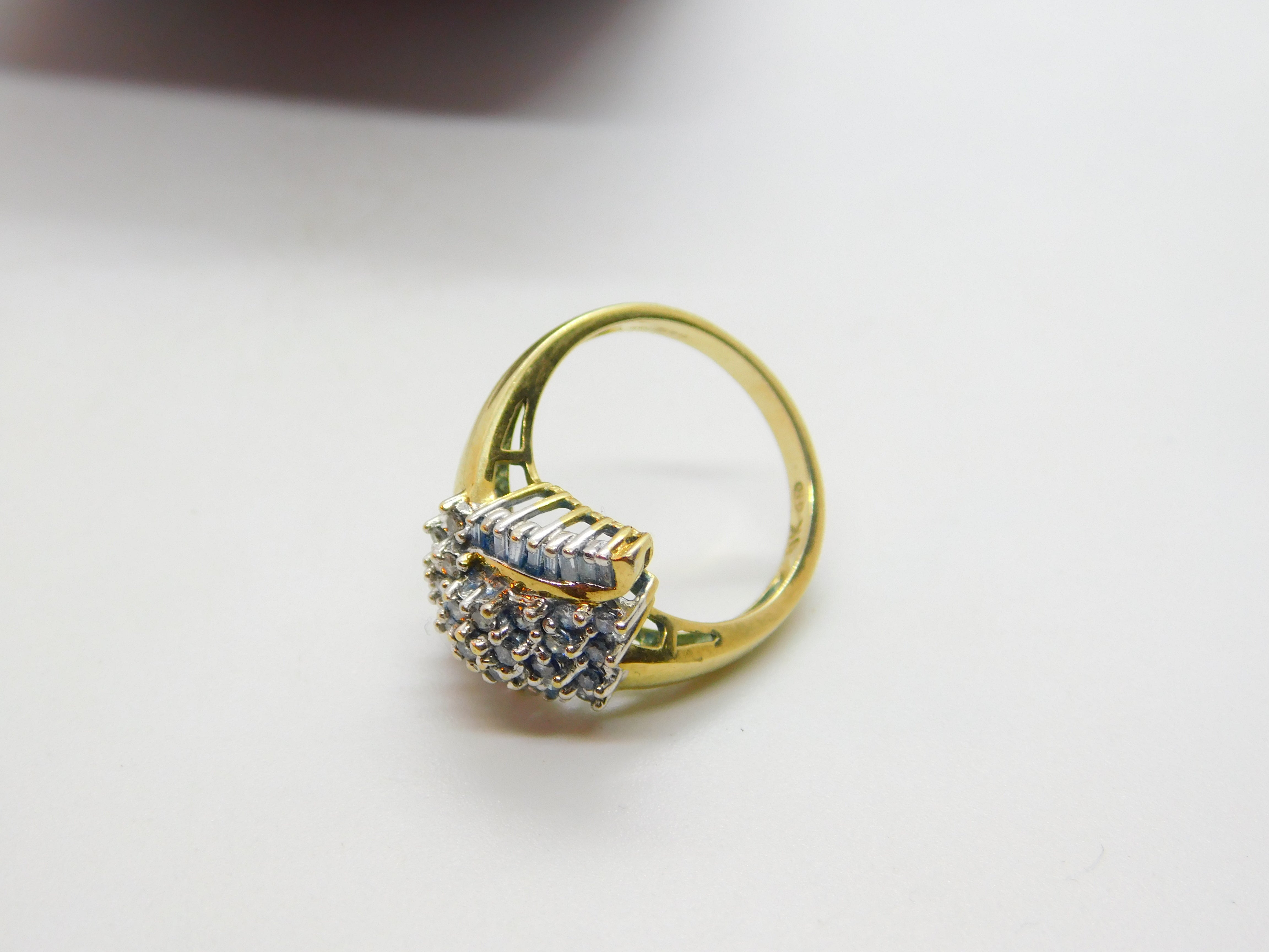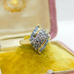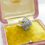 9ct Yellow Gold Baguette & Rose Cut Diamond Cluster Ring Vintage 2002 Birmingham