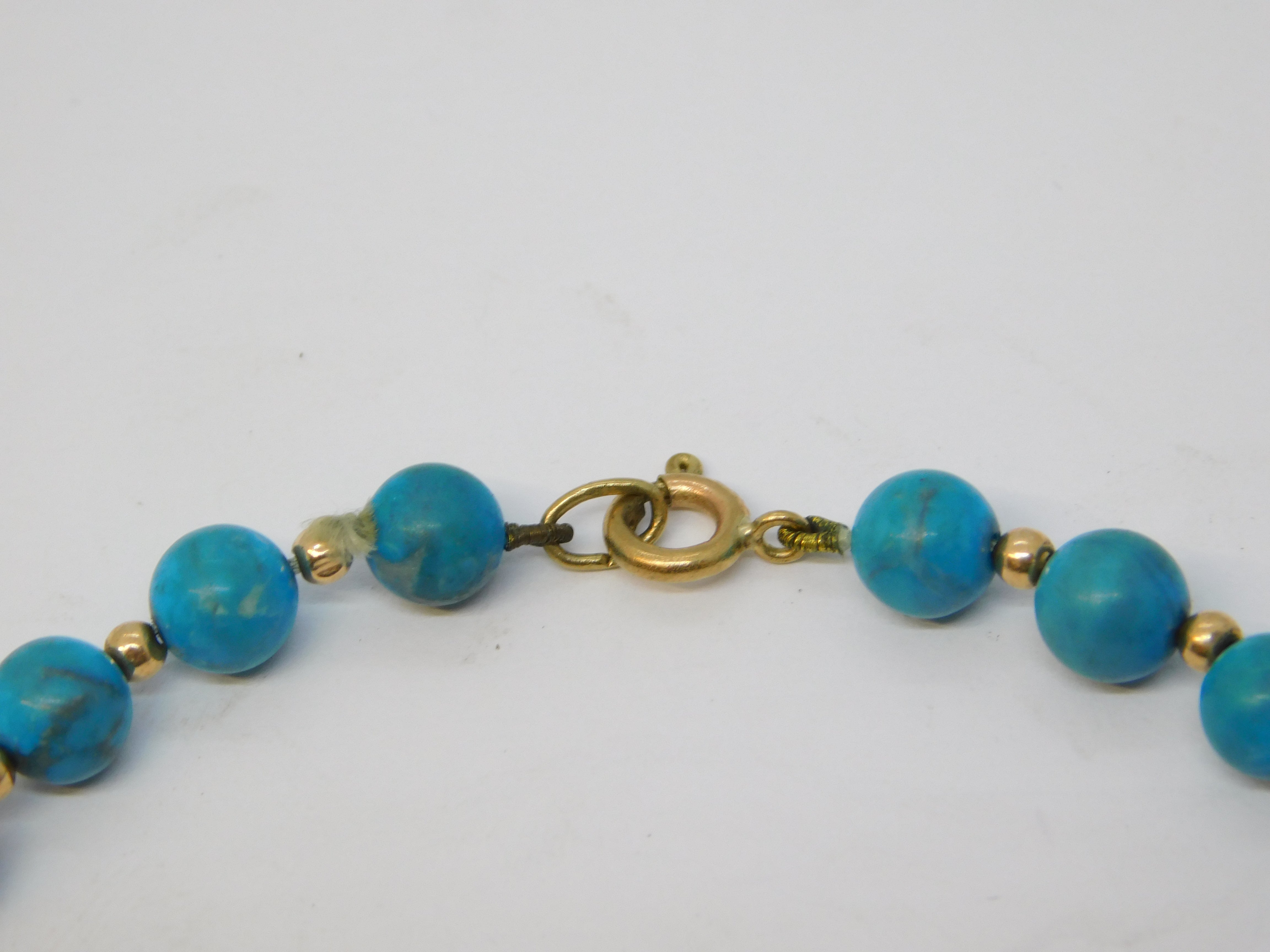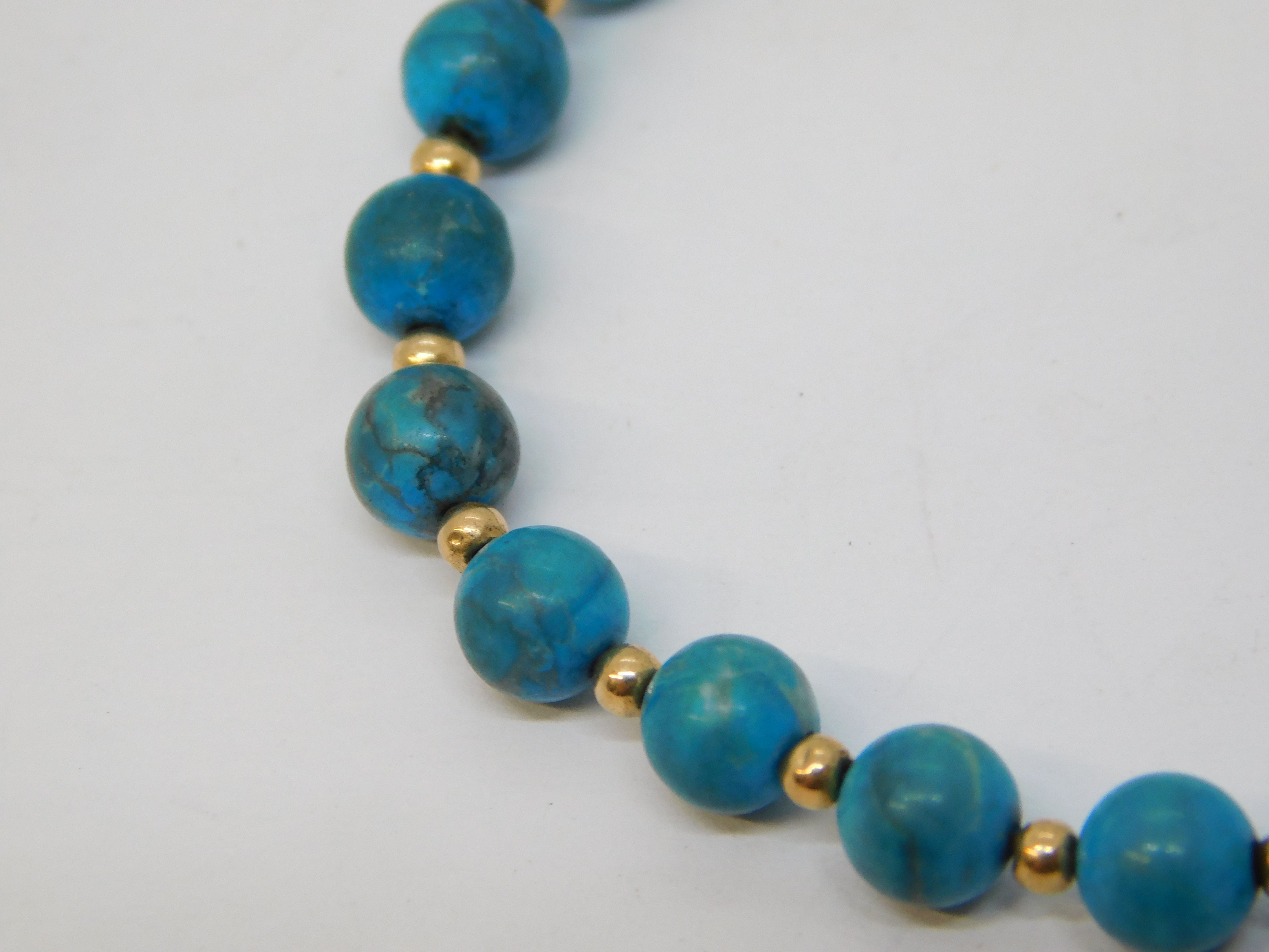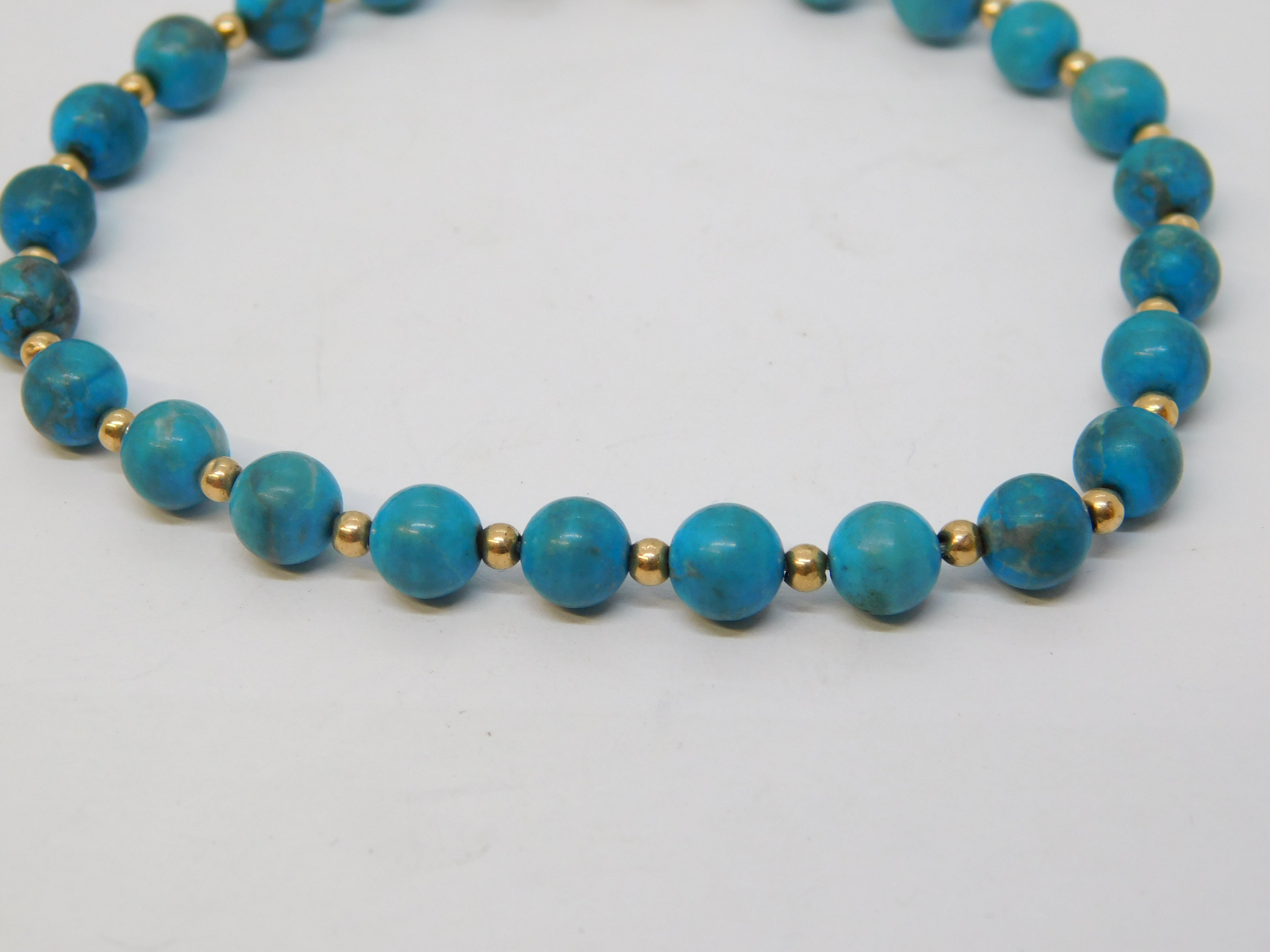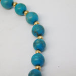 9ct Yellow Gold Beaded Natural Turquoise Bracelet Vintage c1970
