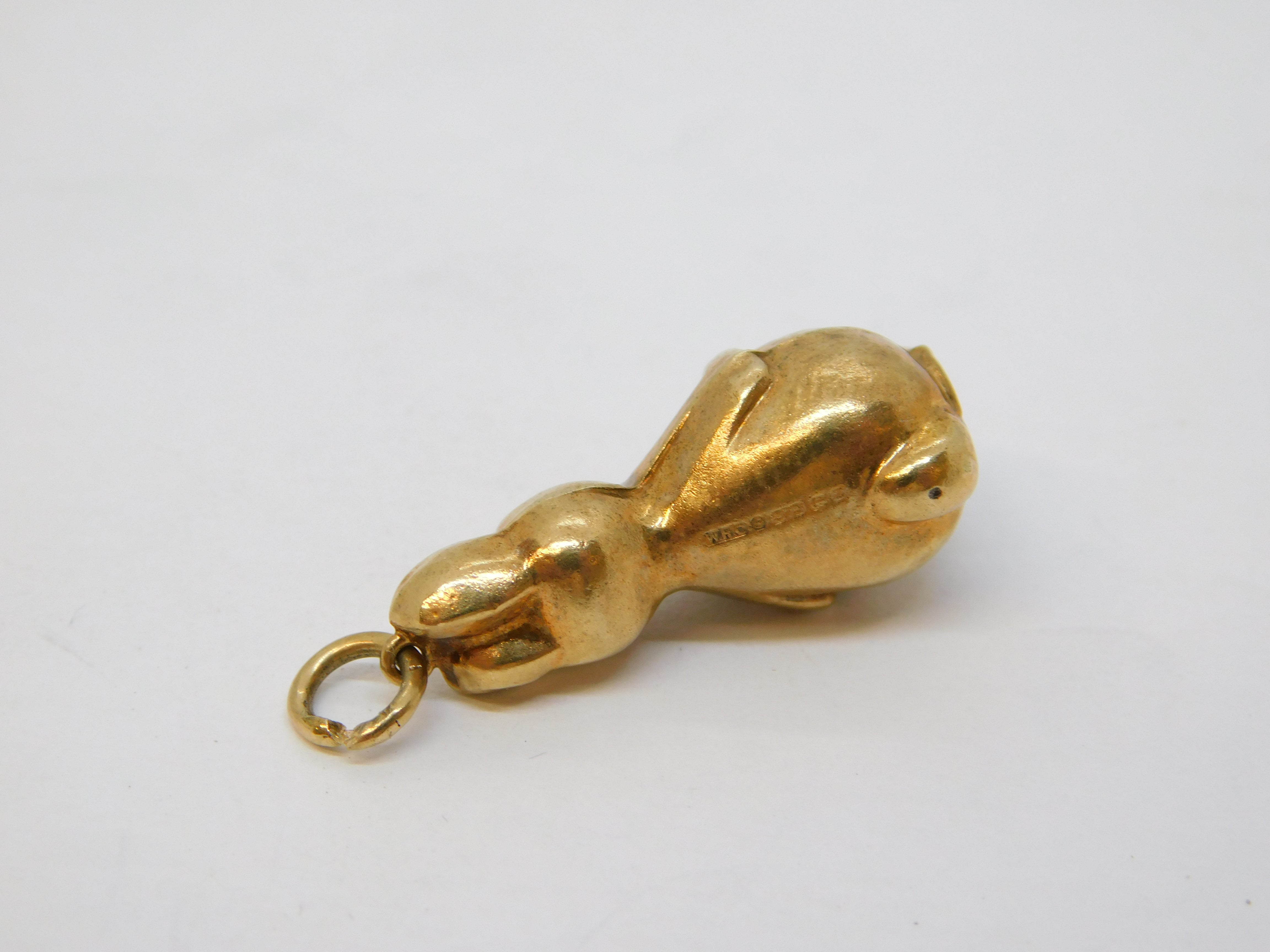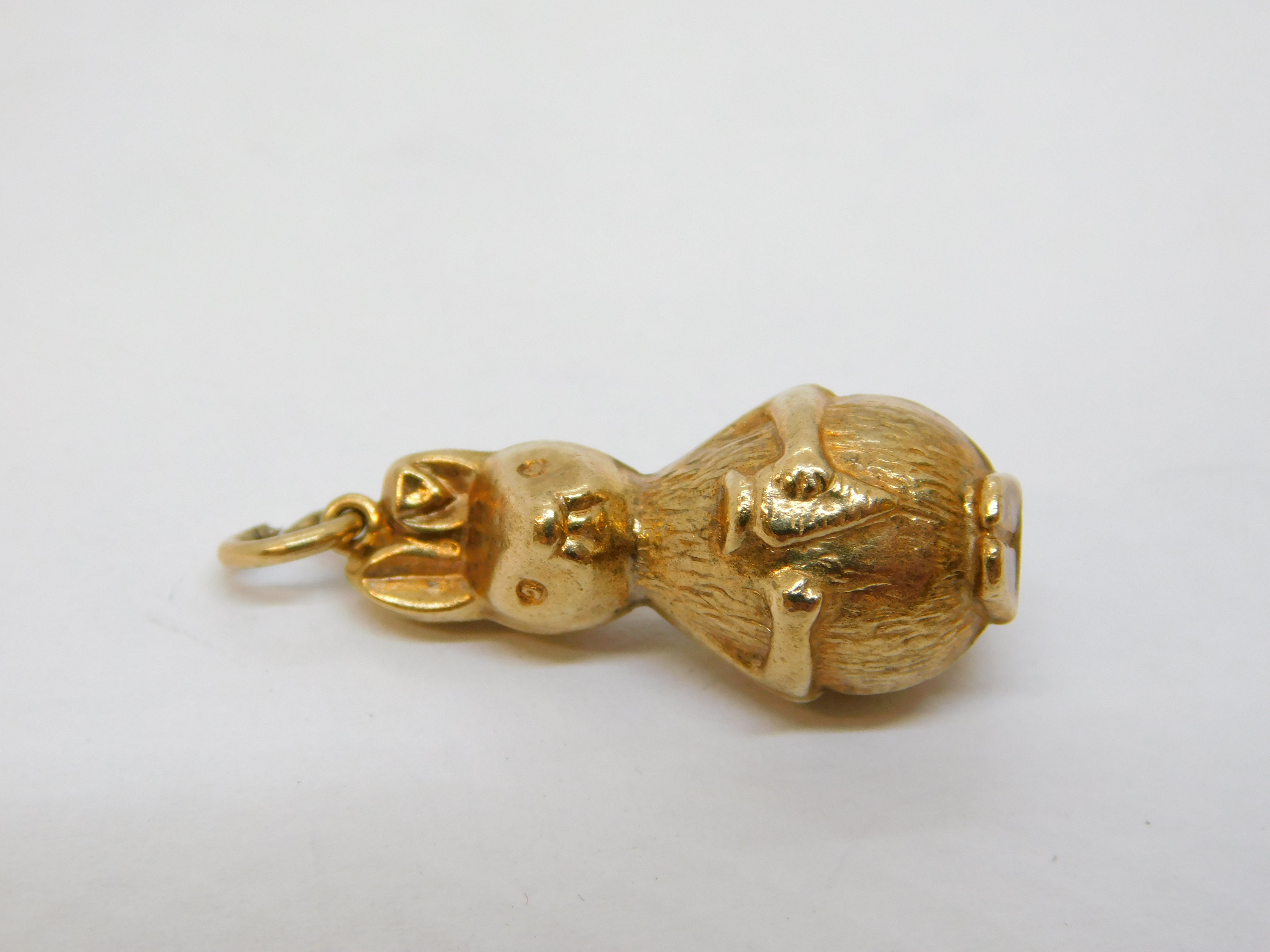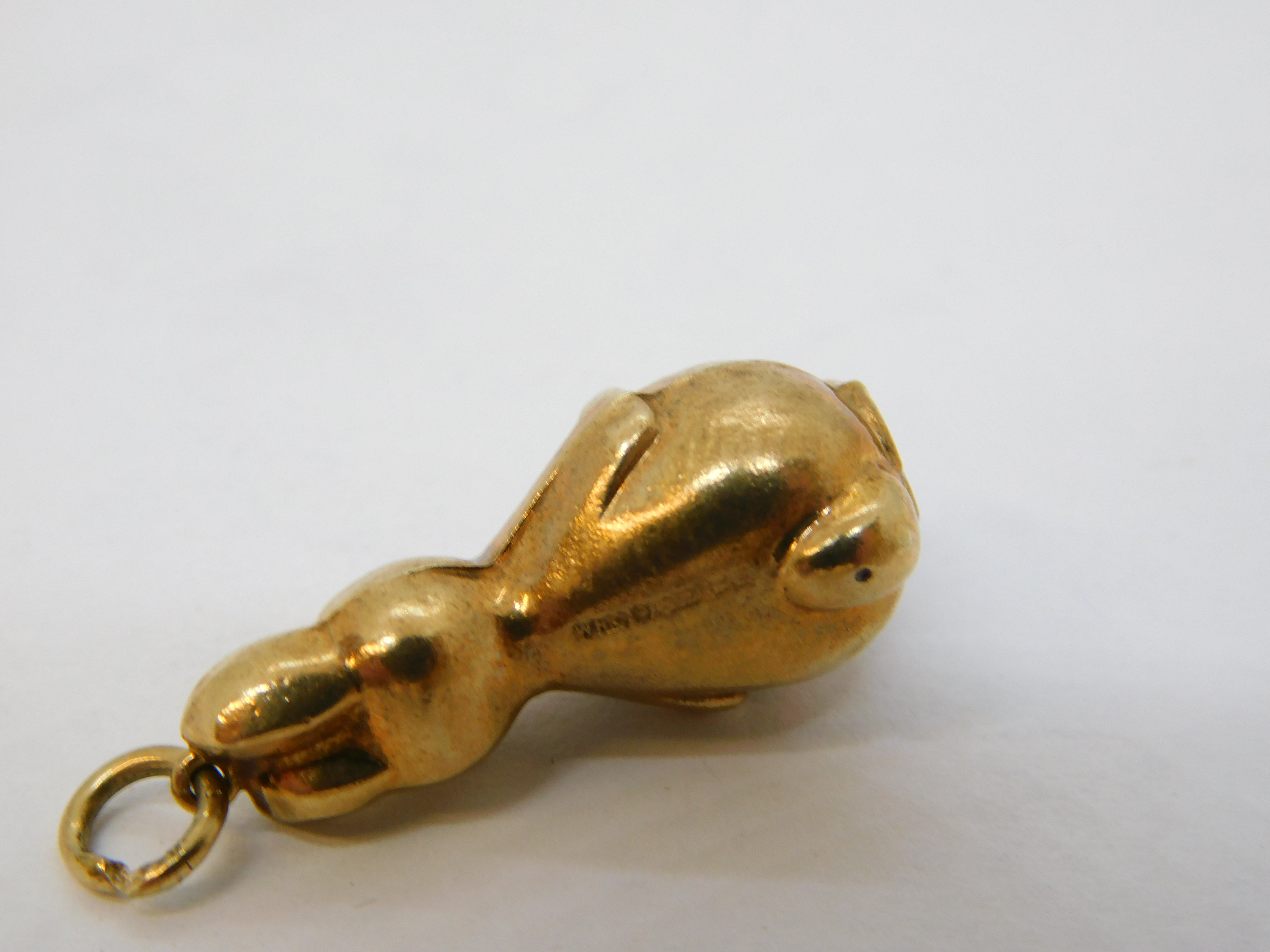 9ct Yellow Gold Bunny Rabbit with Carrot Charm Pendant Vintage 1974 Birmingham