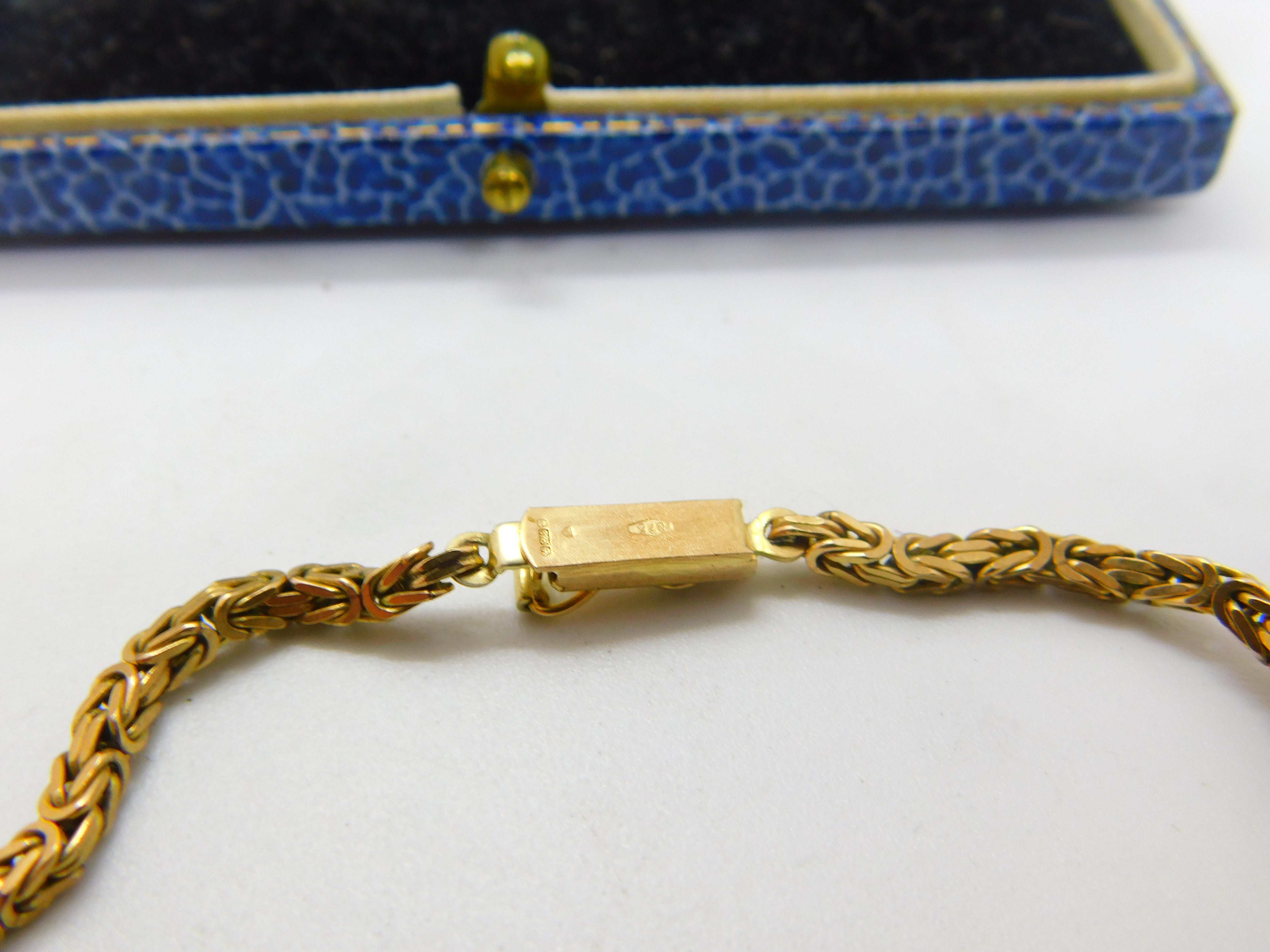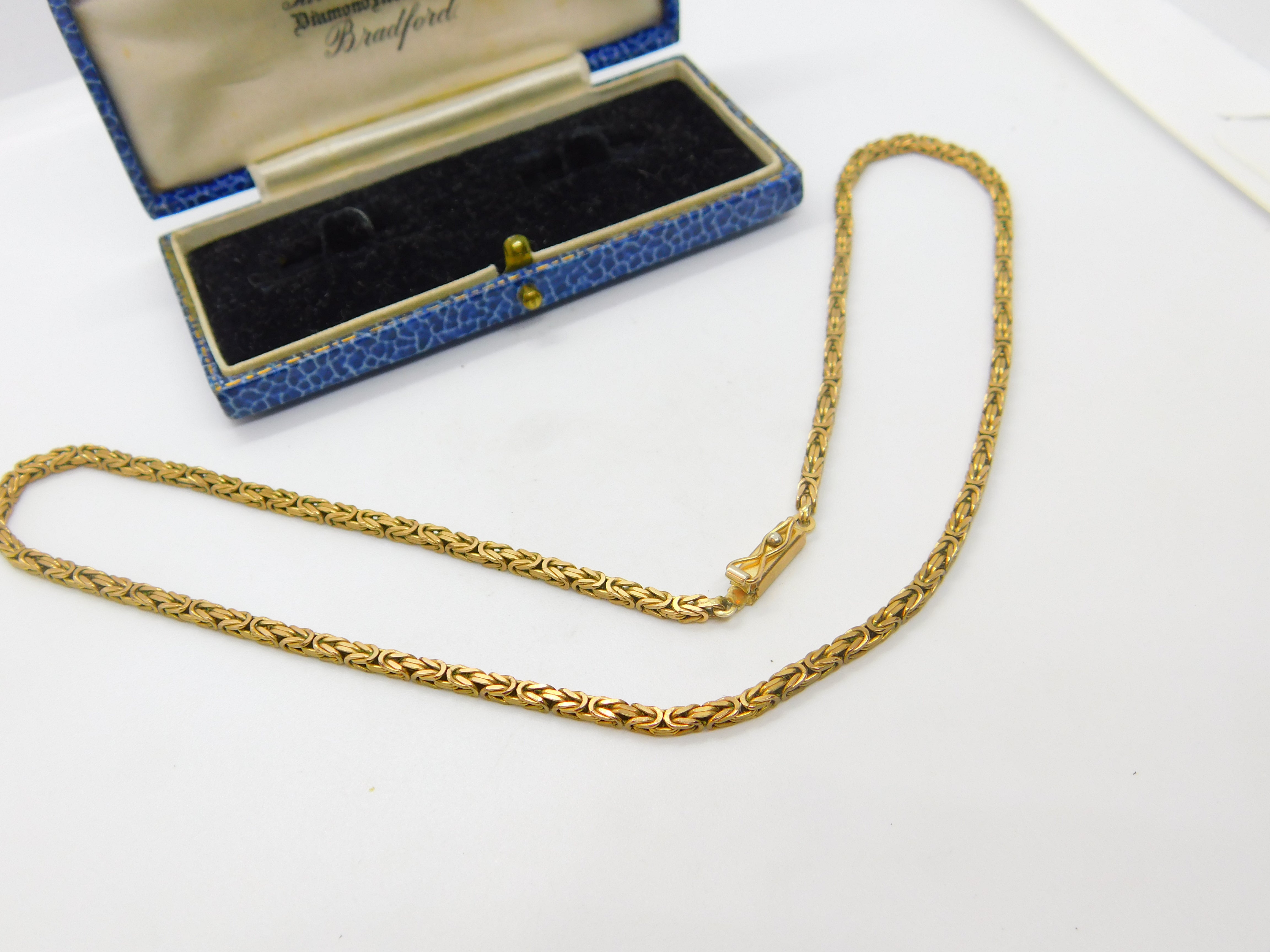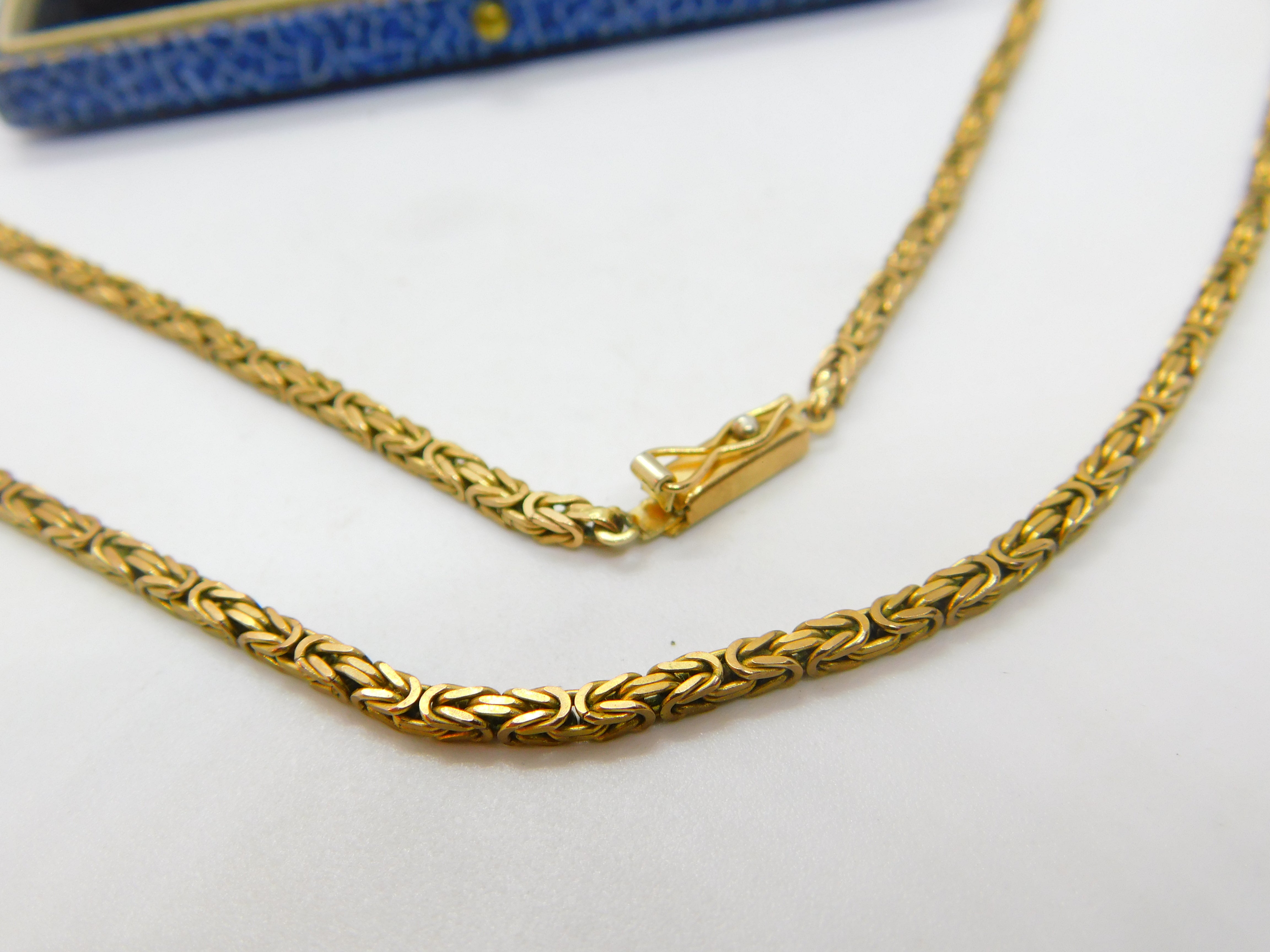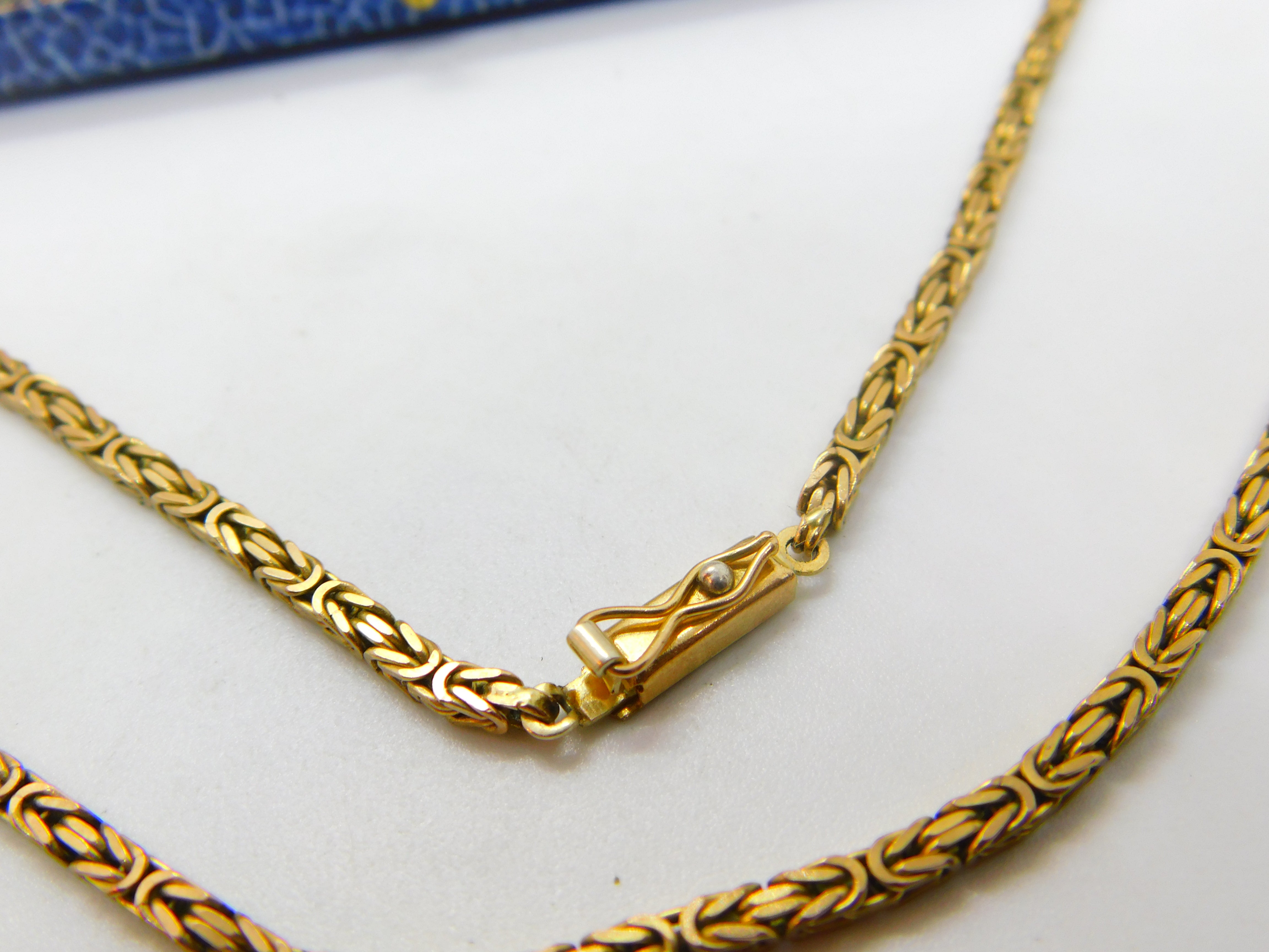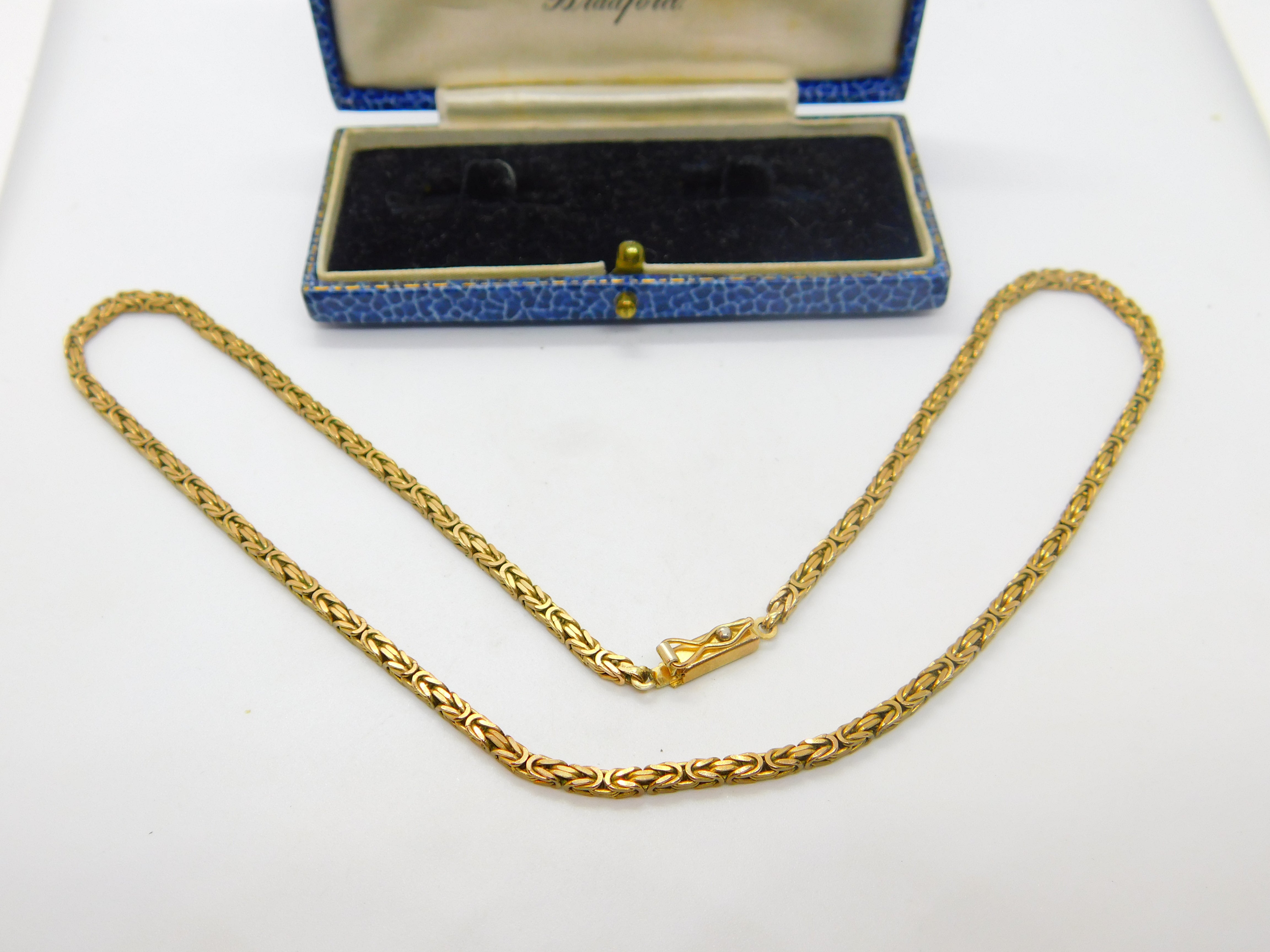 Details: A fantastic and wonderfully designed vintage 9ct yellow gold byzantine link chain necklace with lovely detail and tongue clasp hallmarked Birmingham 1958 with an import hallmark. This is a wonderful item that would make a perfect gift or addition to any collection. The BOX pictured is for PRESENTATION ONLY and is NOT included in the listings but used to frame the pictures unless specifically stated otherwise.