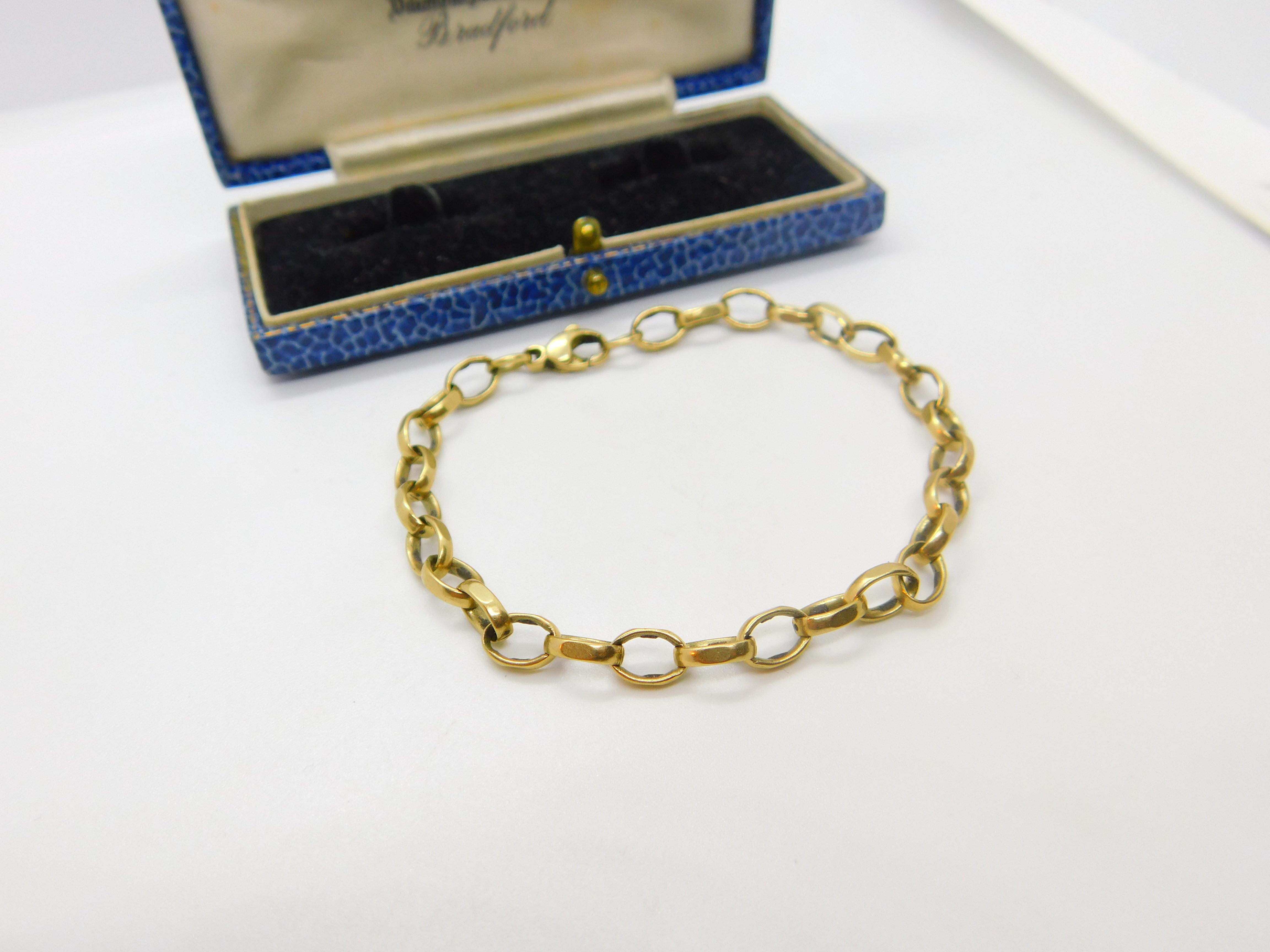 9ct Yellow Gold Cable Link Chain Bracelet Vintage 1969 Birmingham 7" Length