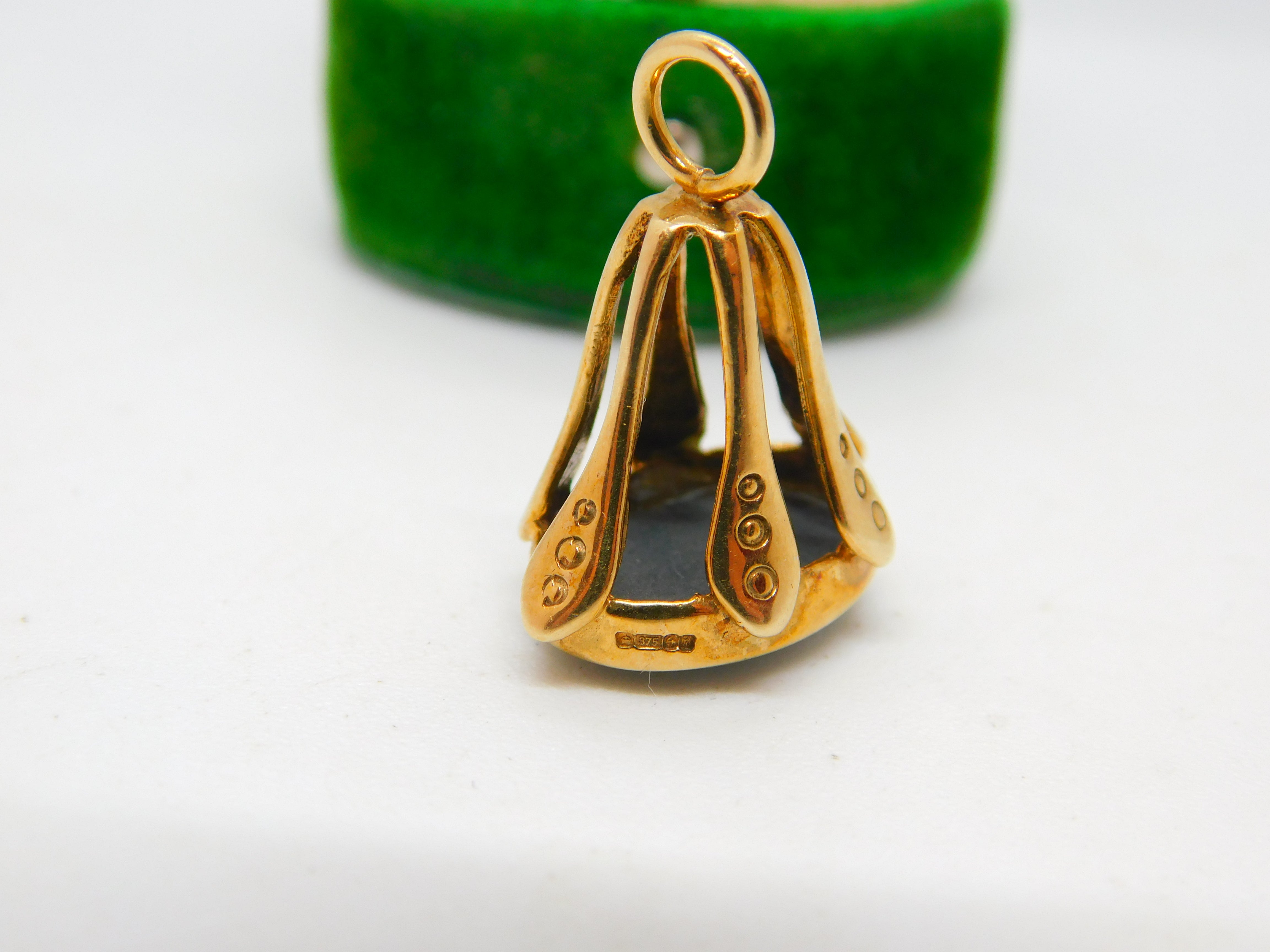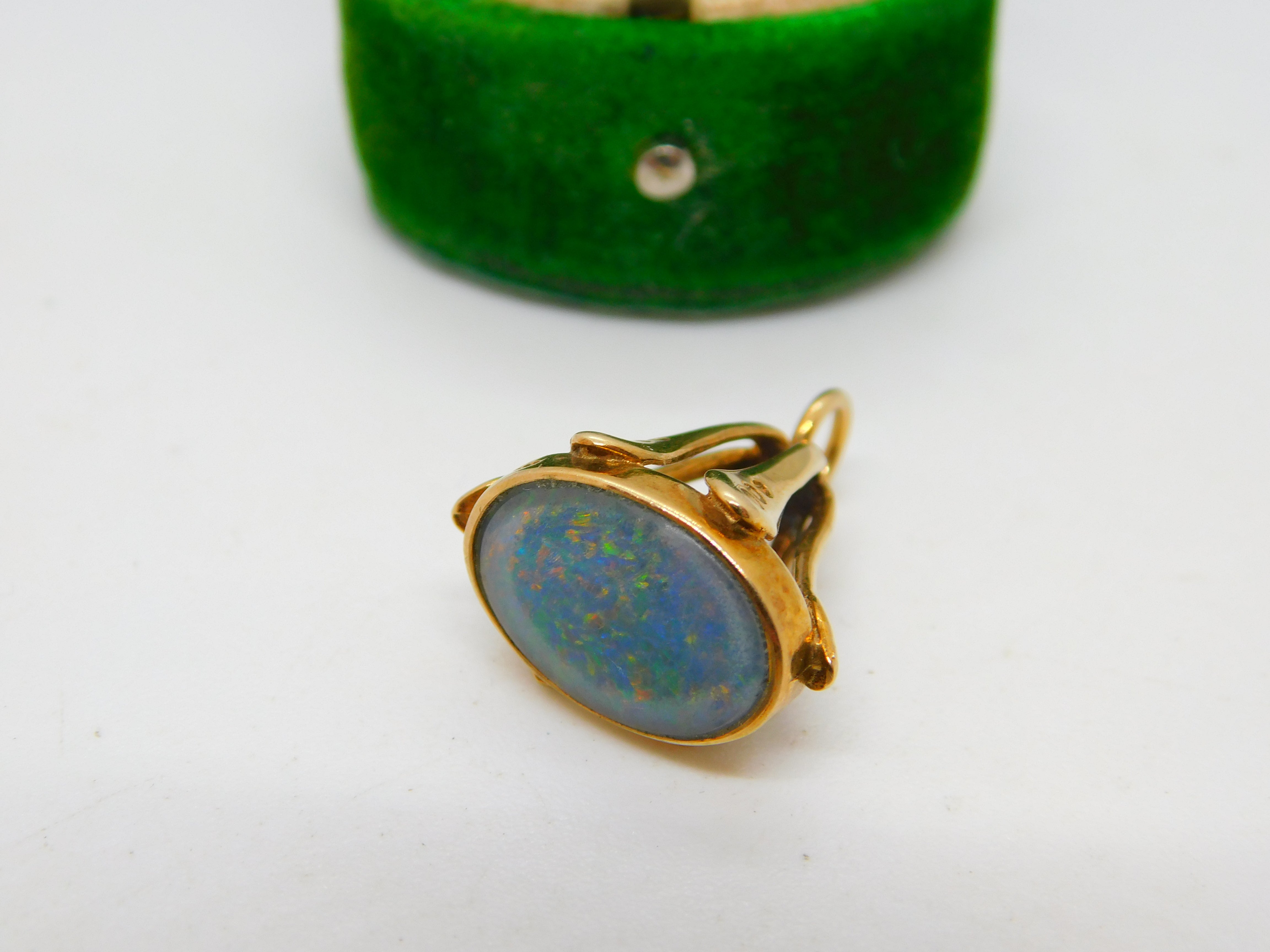 9ct Yellow Gold & Cabochon Doublet Opal Set Fob Pendant Vintage 1991 Birmingham