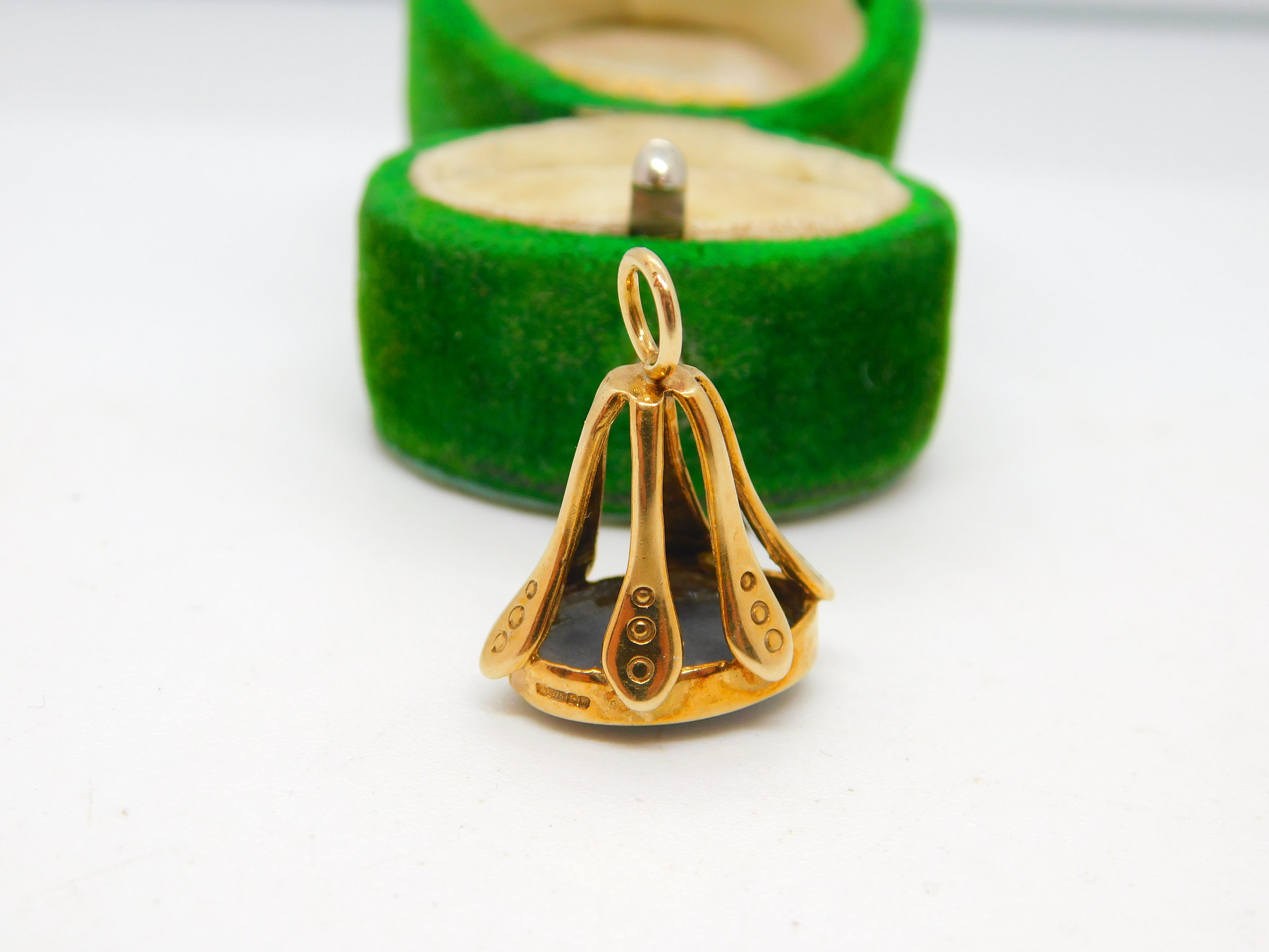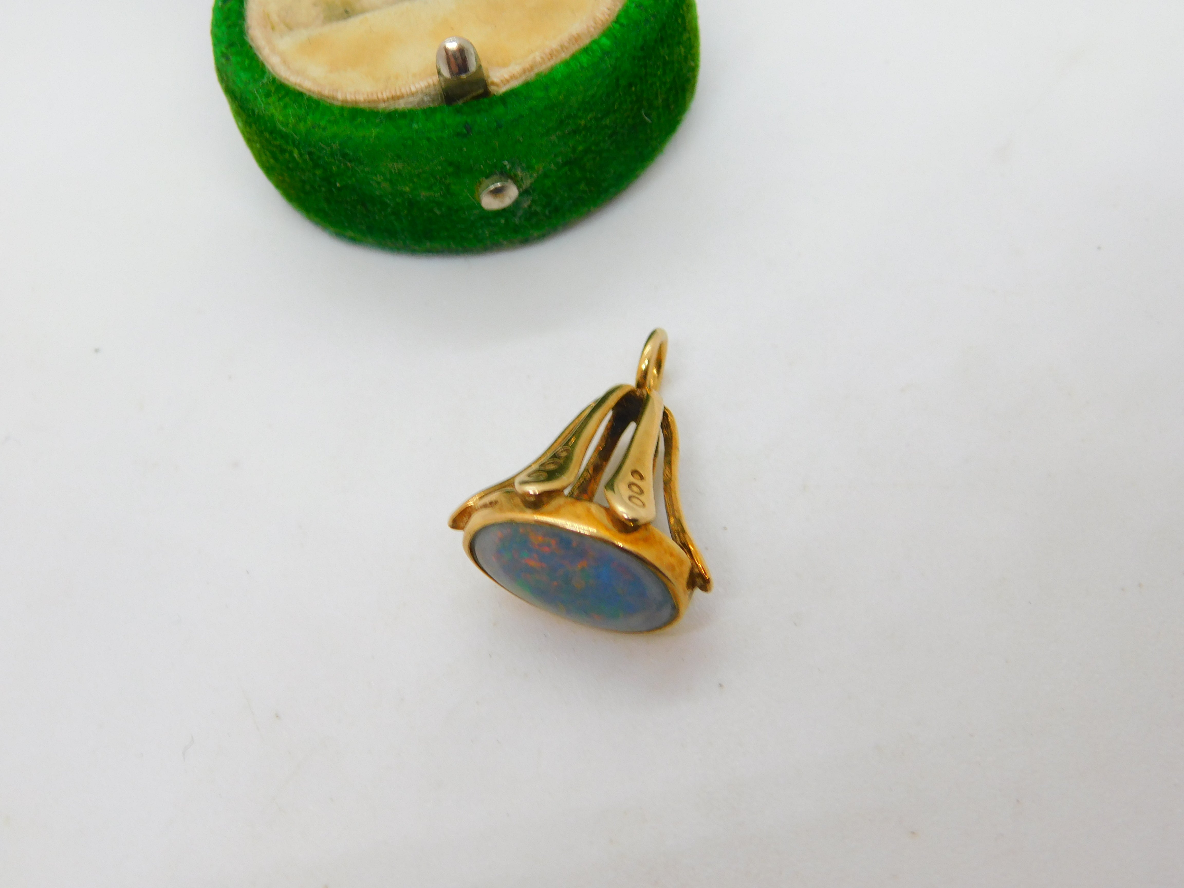 Details: A fantastic and wonderfully designed vintage 9ct yellow gold fob pendant set with cabochon cut doublet opal to the base Birmingham 1991. This is a wonderful item that would make a perfect gift or addition to any collection. The BOX pictured is for PRESENTATION ONLY and is NOT included in the listings but used to frame the pictures unless specifically stated otherwise.