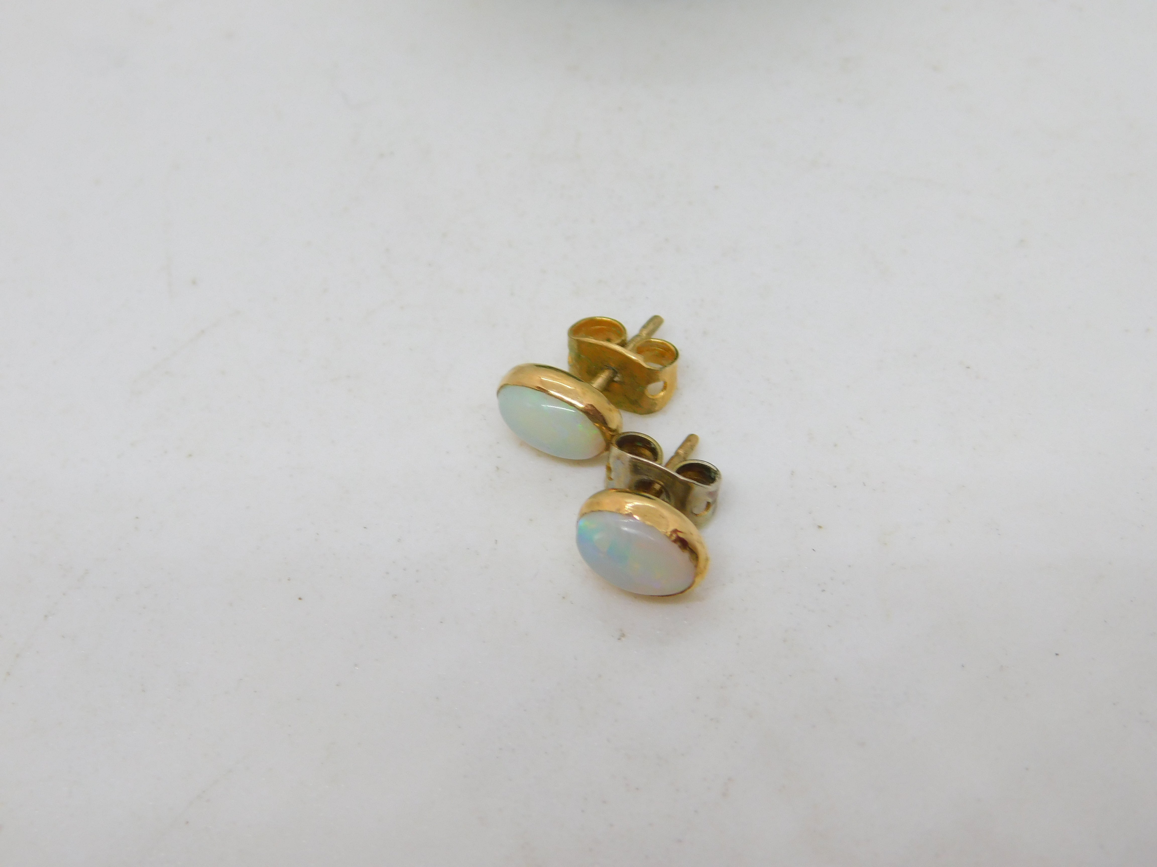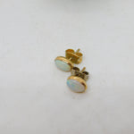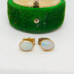 9ct Yellow Gold & Cabochon White Opal Stud Earrings Antique c1920 Art Deco