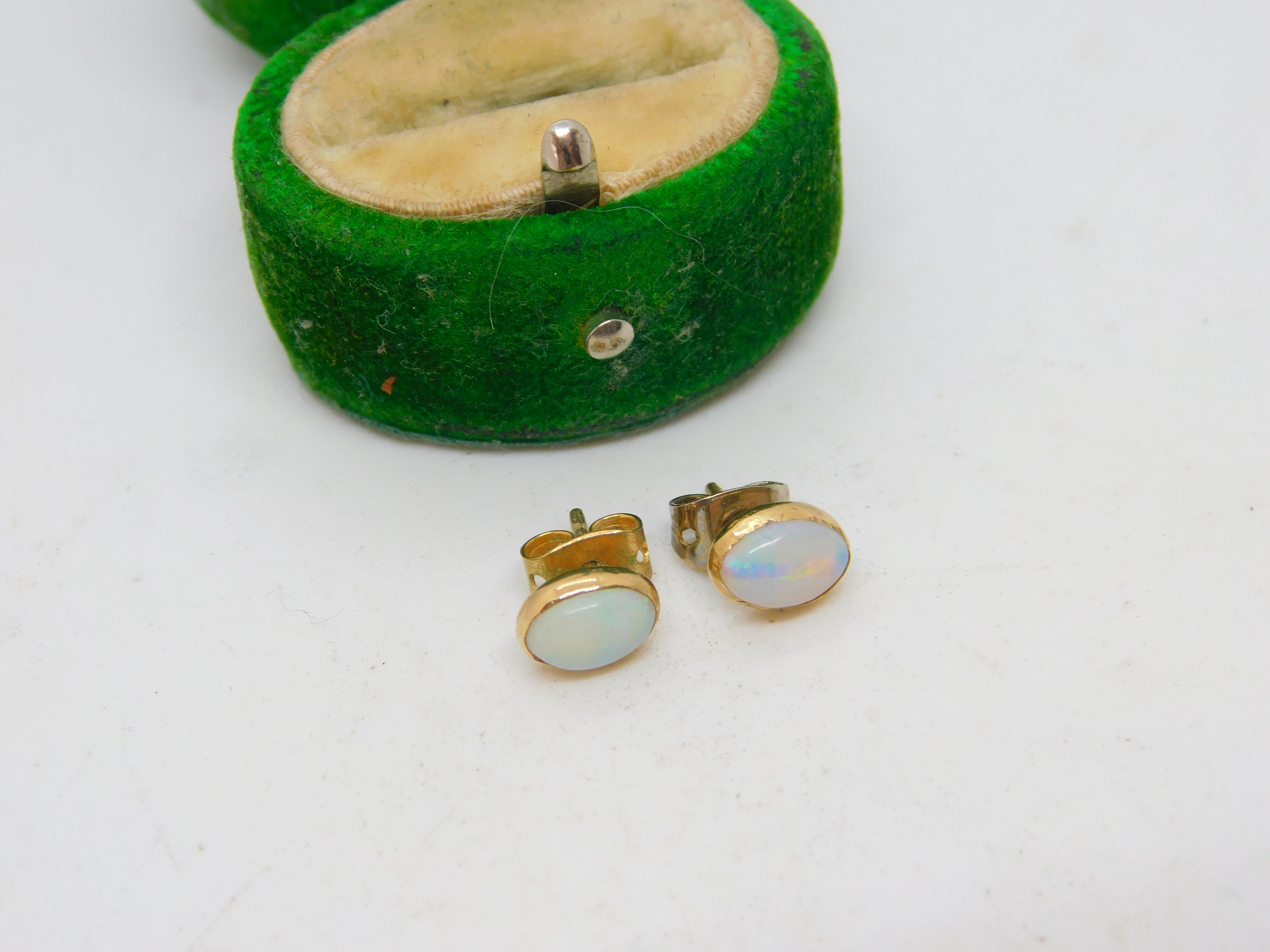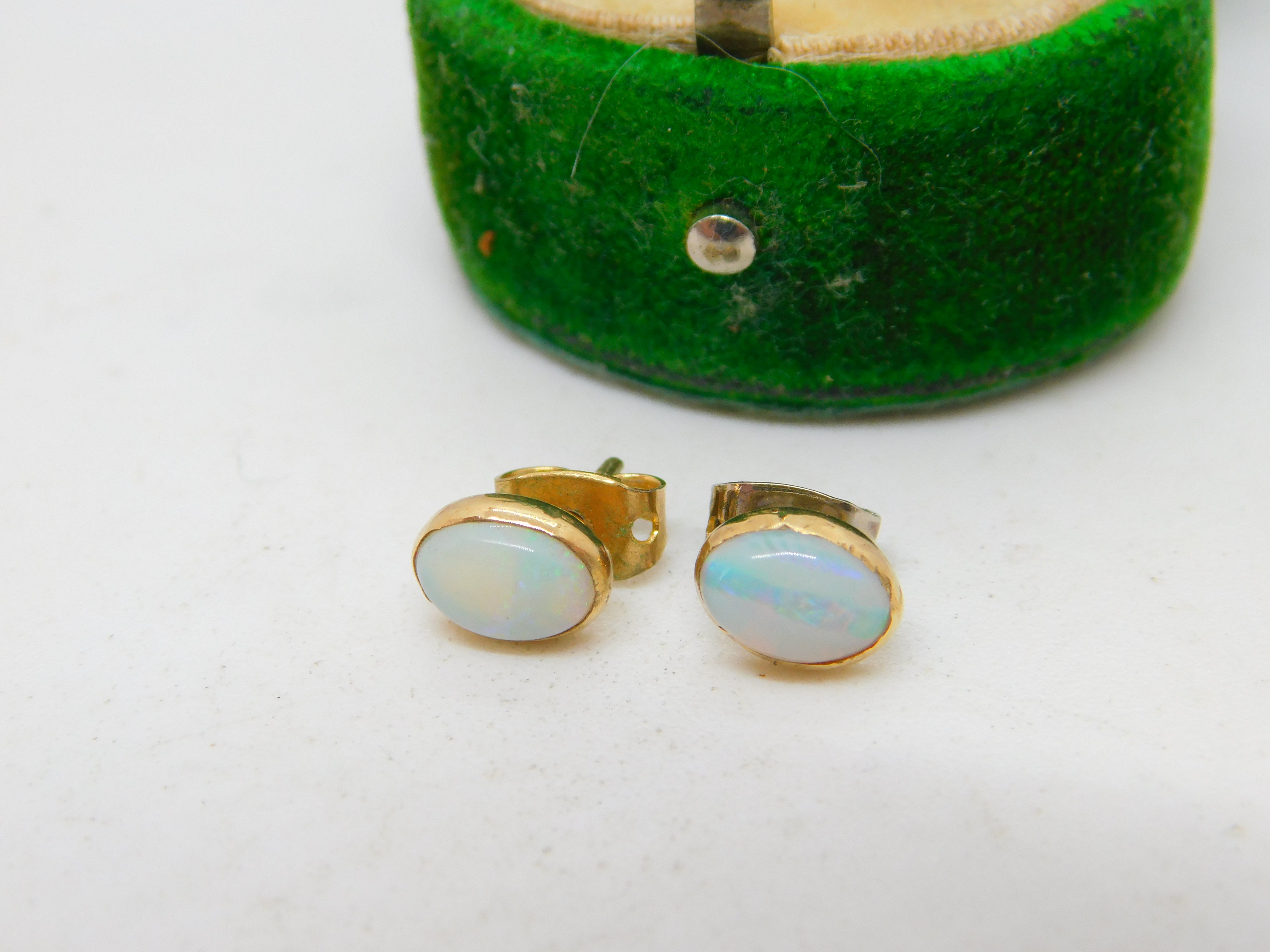 Details: A fantastic and wonderfully designed antique art deco 9ct yellow gold mounted cabochon white opal stud earrings with lovely detailing c1920, the gold has been XRF tested. This is a wonderful item that would make a perfect gift or addition to any collection. The BOX pictured is for PRESENTATION ONLY and is NOT included in the listings but used to frame the pictures unless specifically stated otherwise.