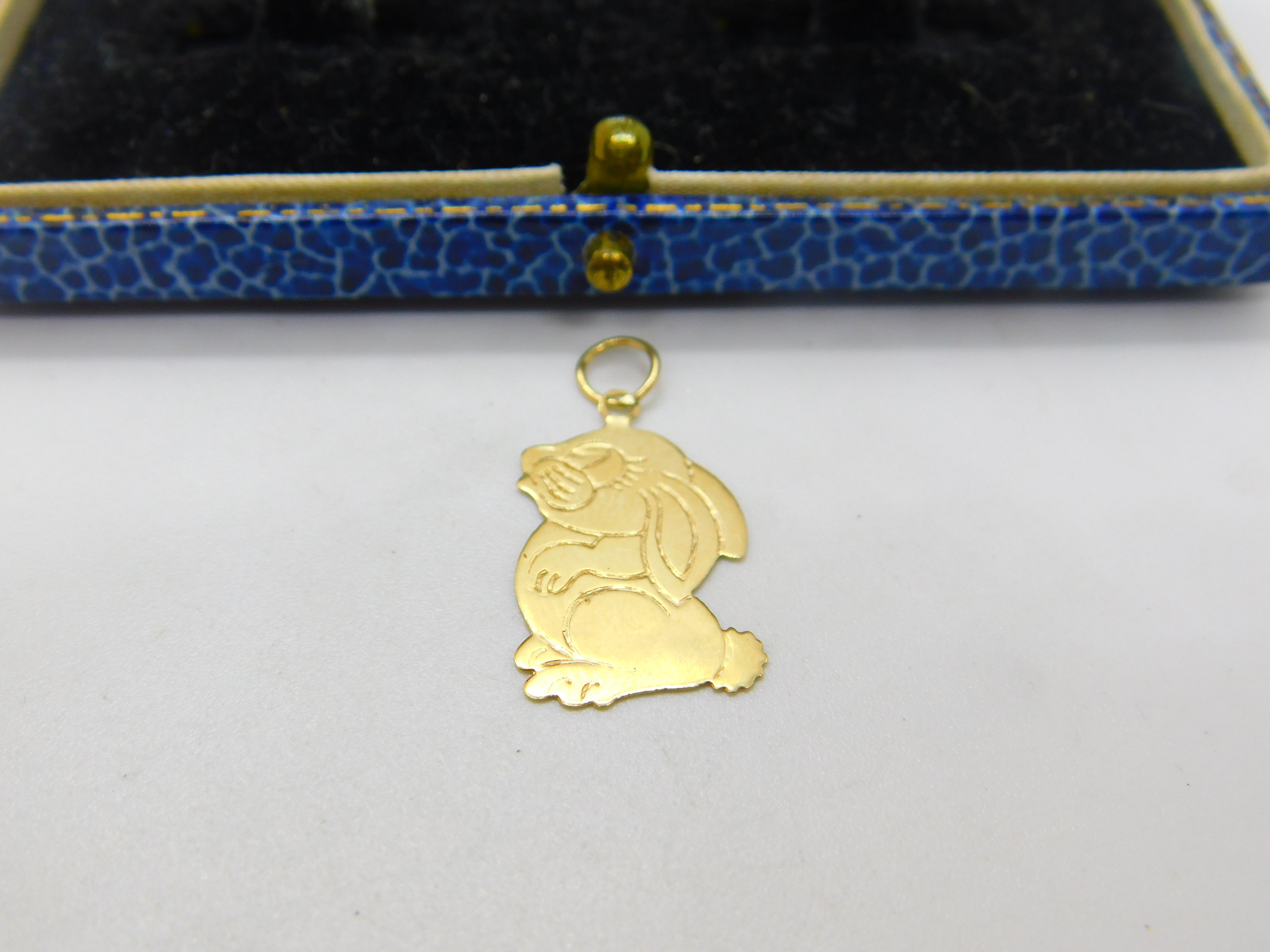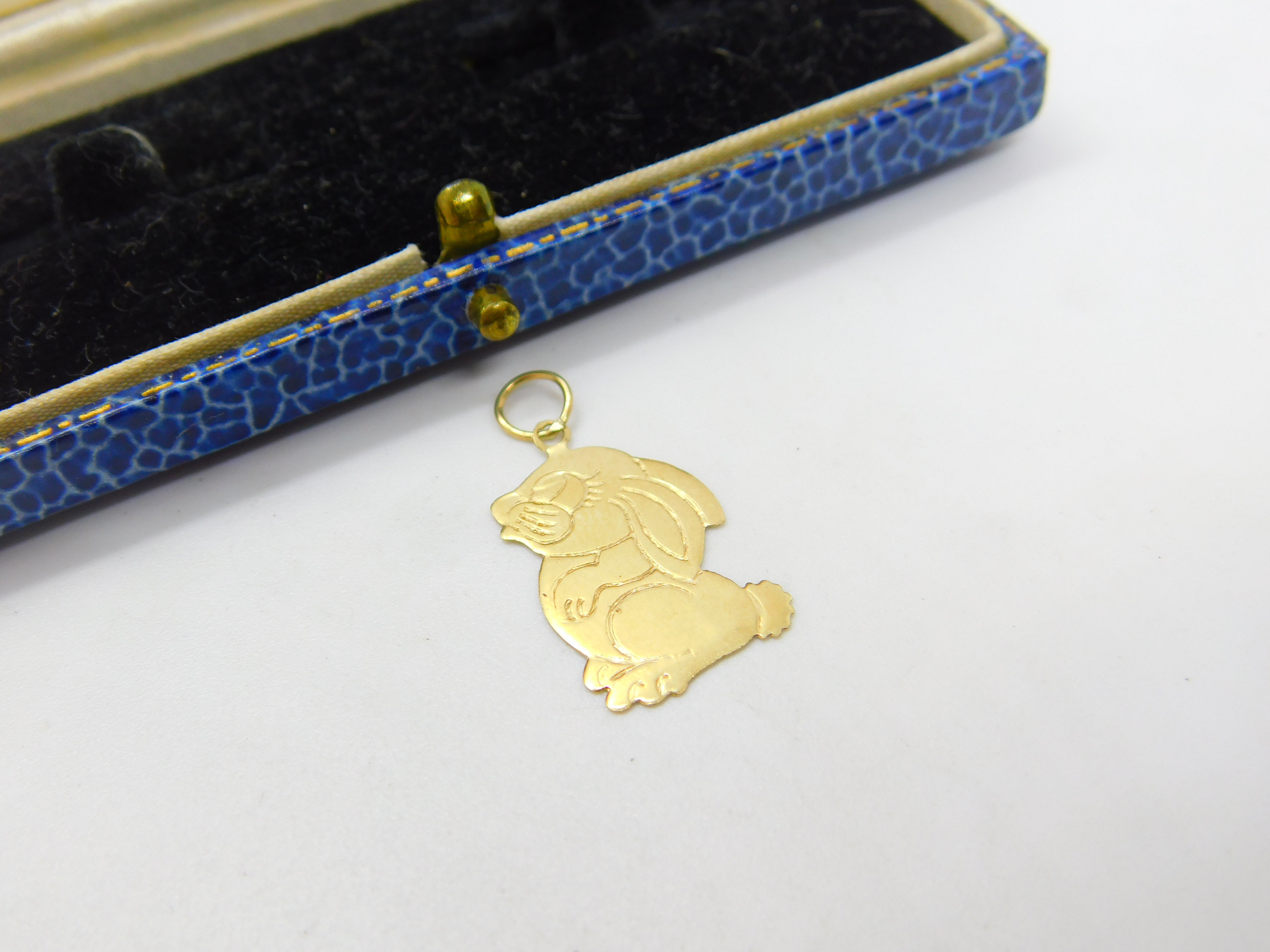 Details: A fantastic and wonderfully designed vintage 9ct yellow gold bunny rabbit cartoon form charm pendant with lovely detail hallmarked London 1983 to the reverse. This is a wonderful item that would make a perfect gift or addition to any collection. The BOX pictured is for PRESENTATION ONLY and is NOT included in the listings but used to frame the pictures unless specifically stated otherwise.