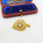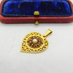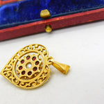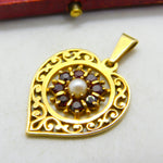 9ct Yellow Gold, Central Pearl & Garnet Set Heart Drop Pendant Vintage c1970