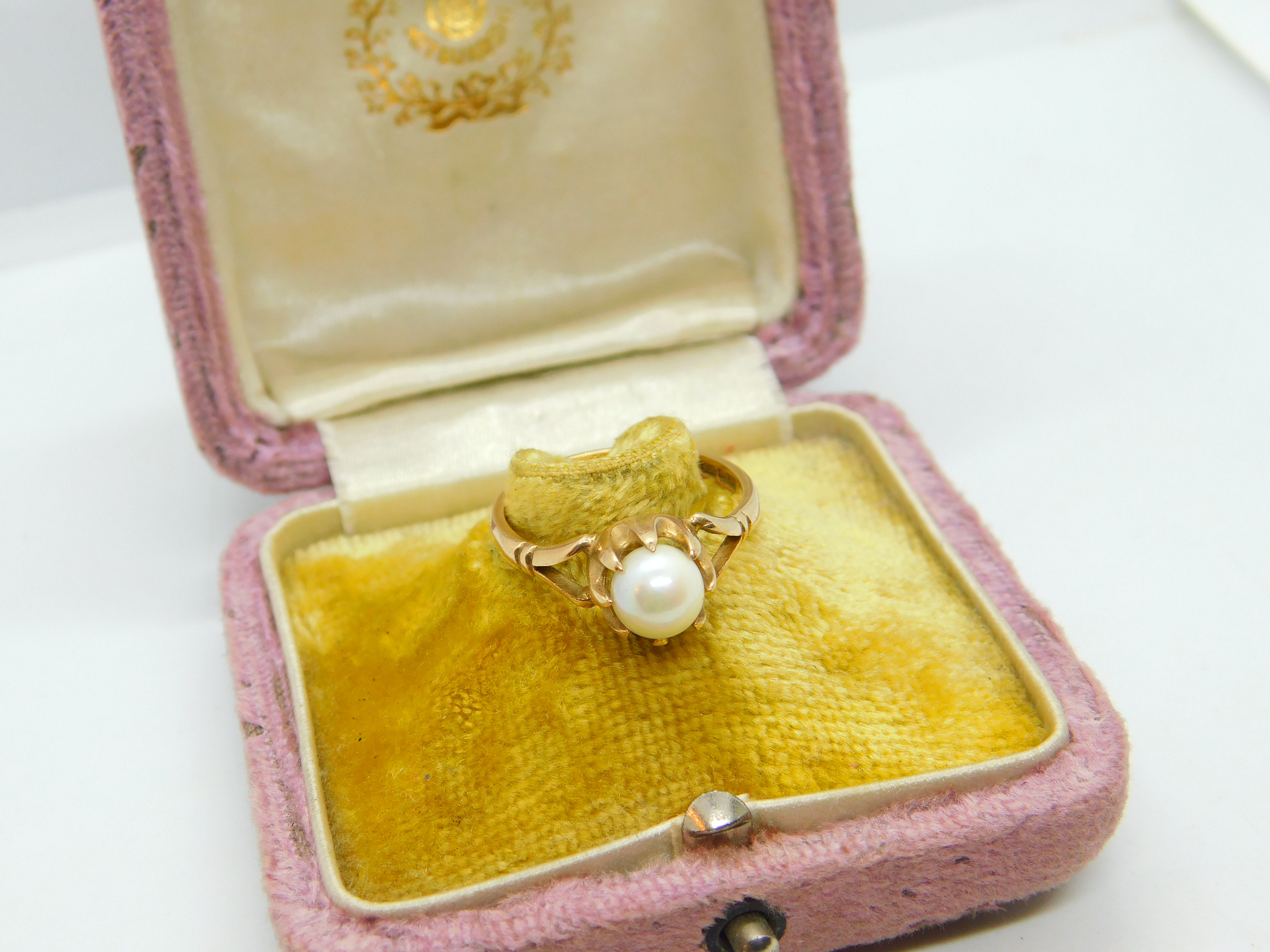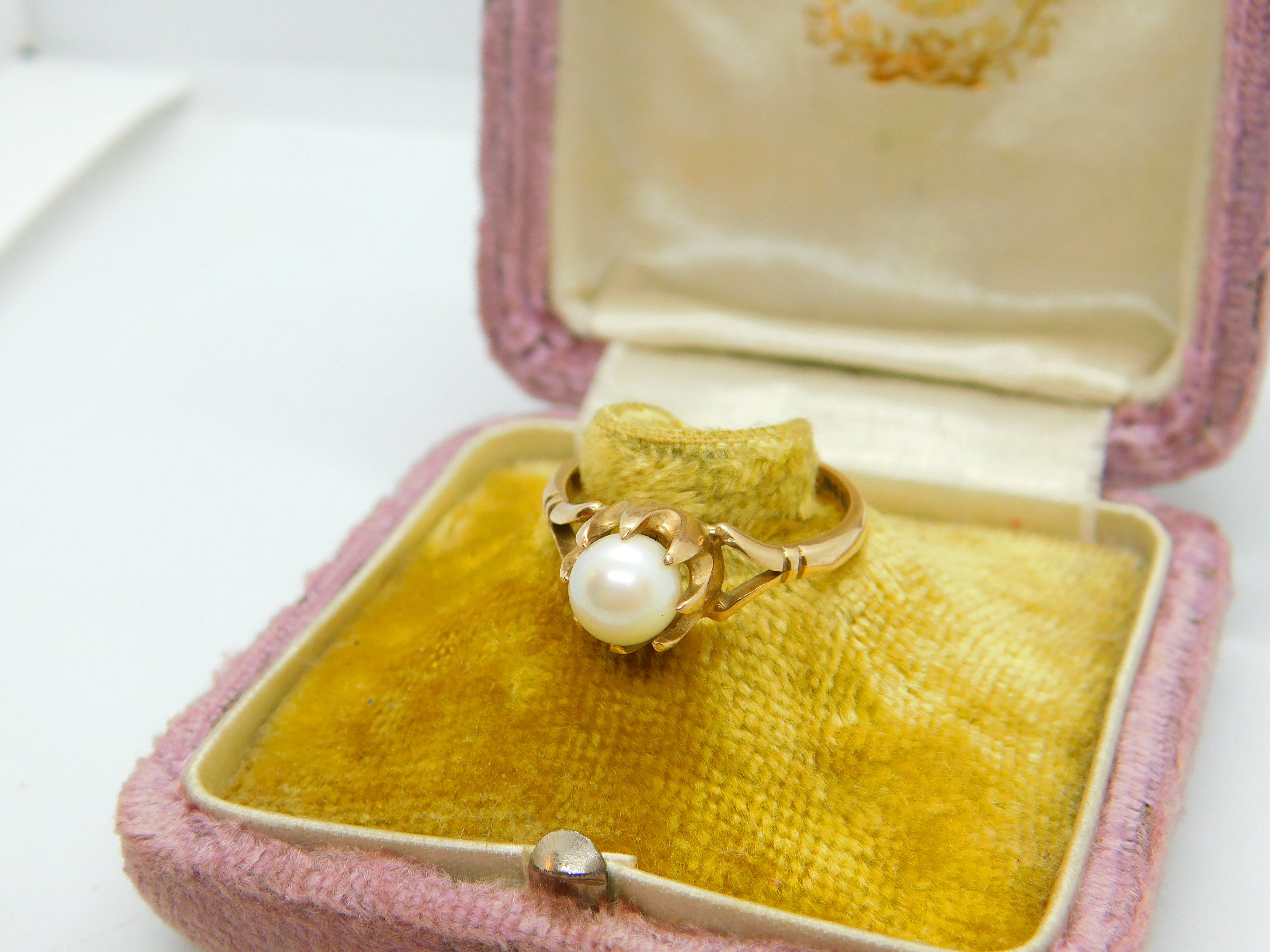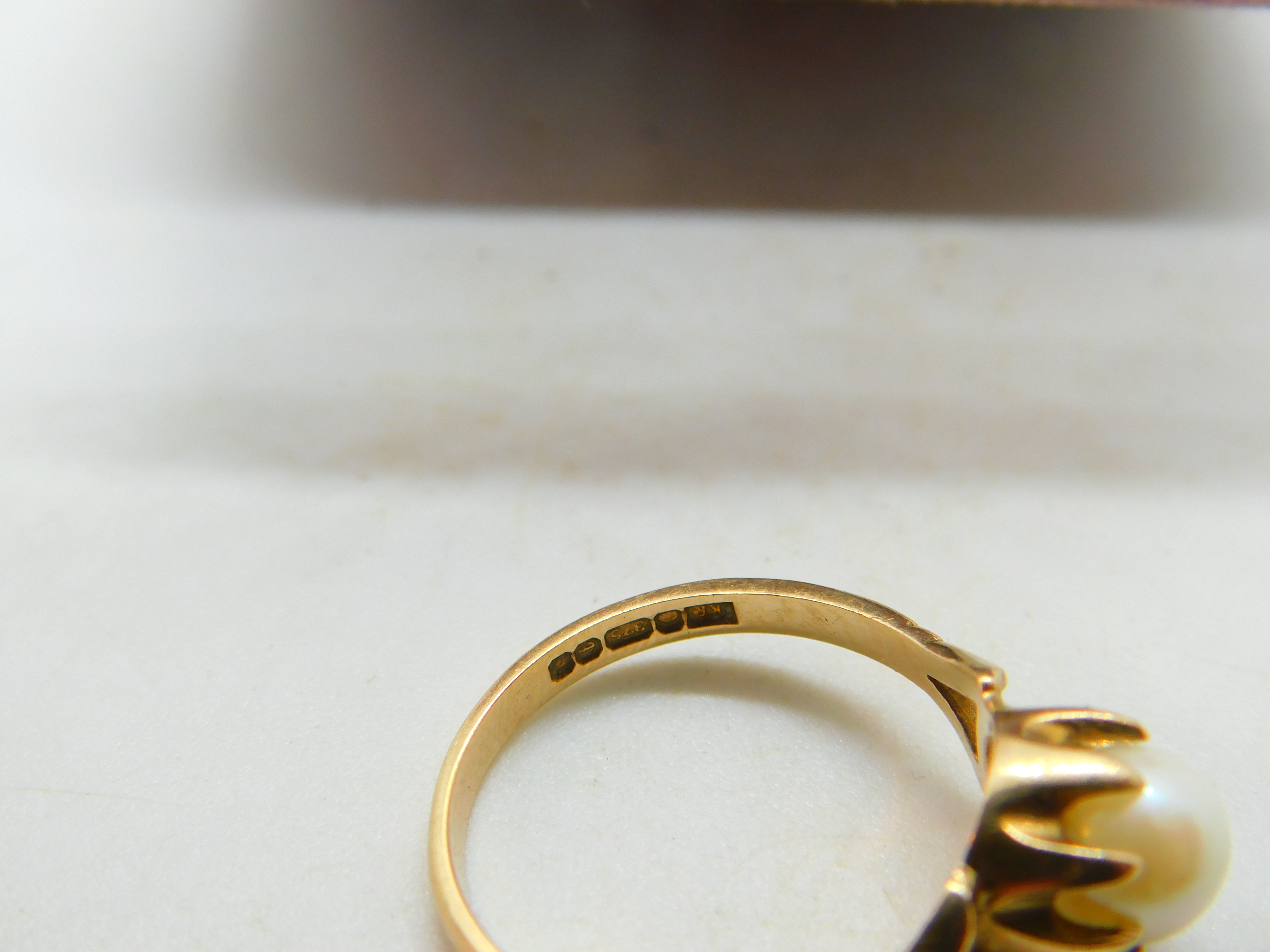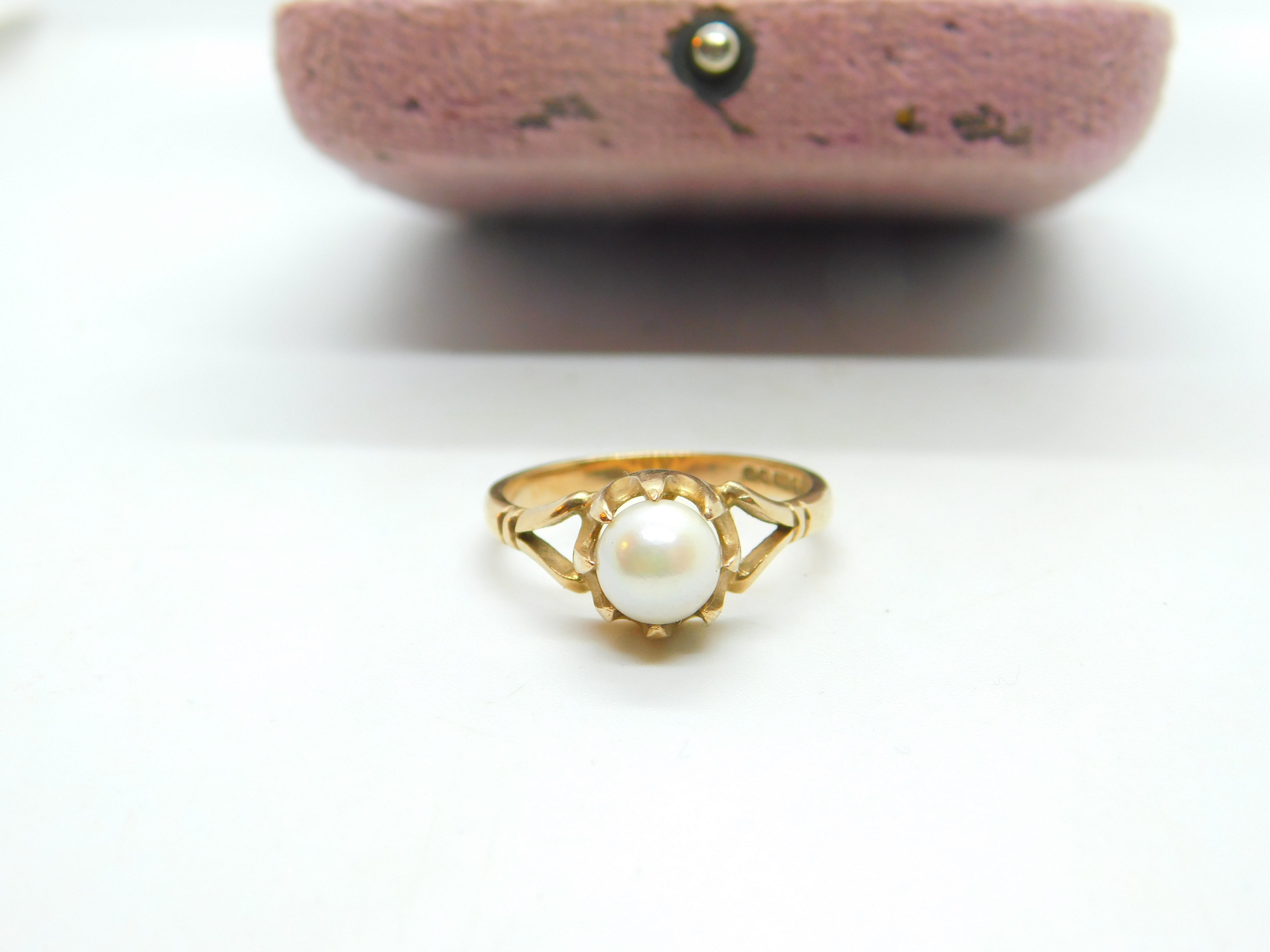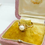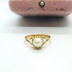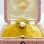 9ct Yellow Gold & Claw Set Pearl Dress Ring Vintage 1985 Birmingham