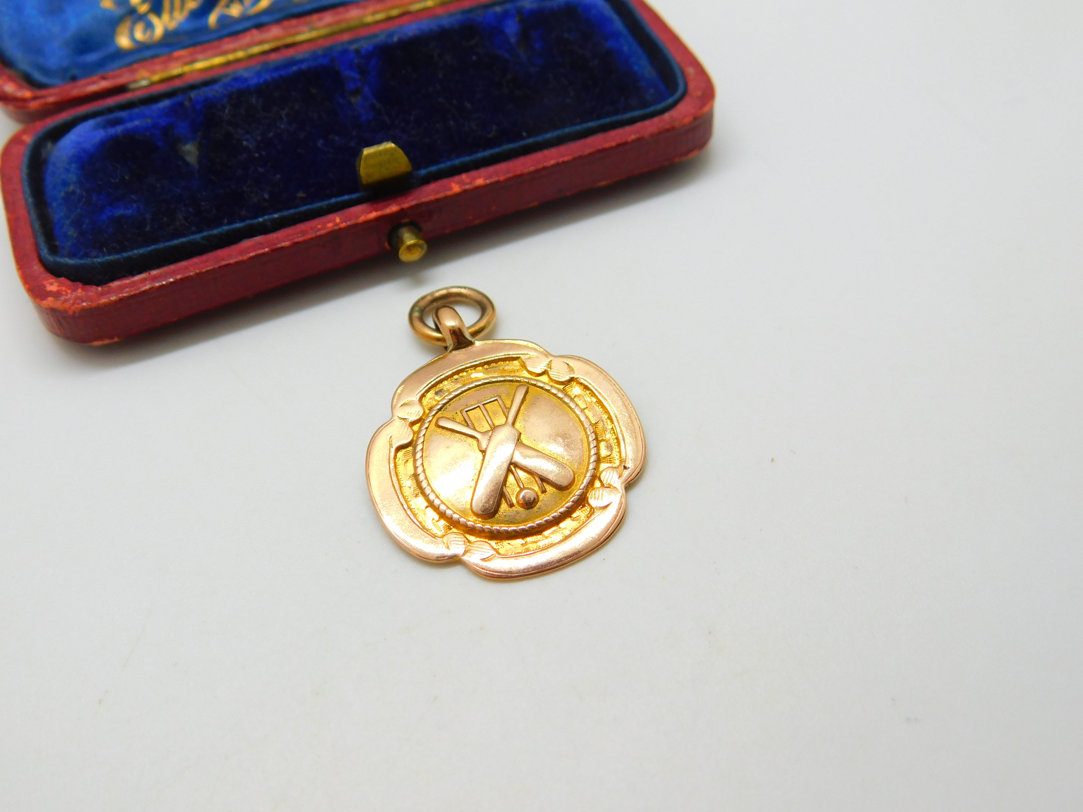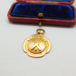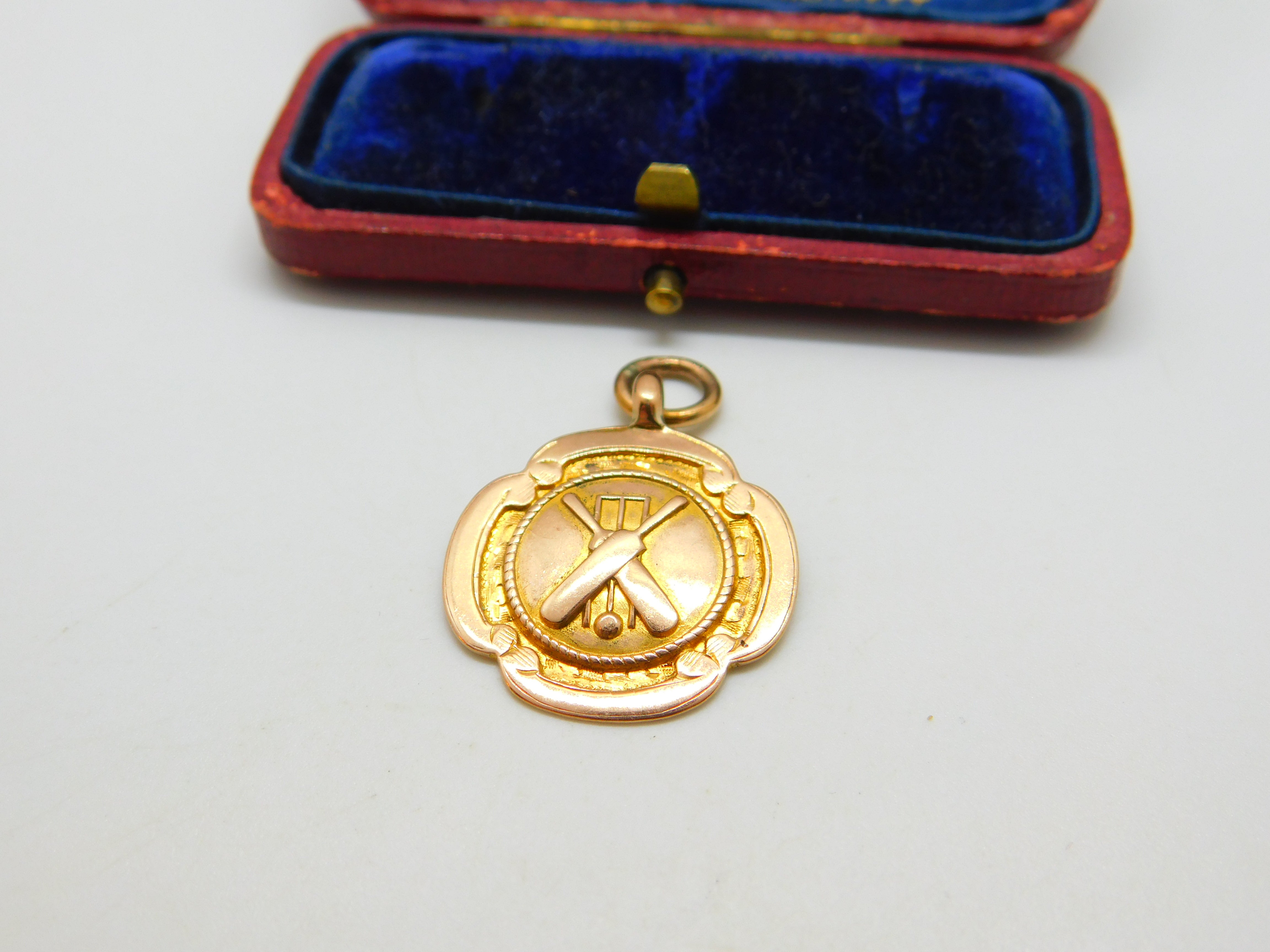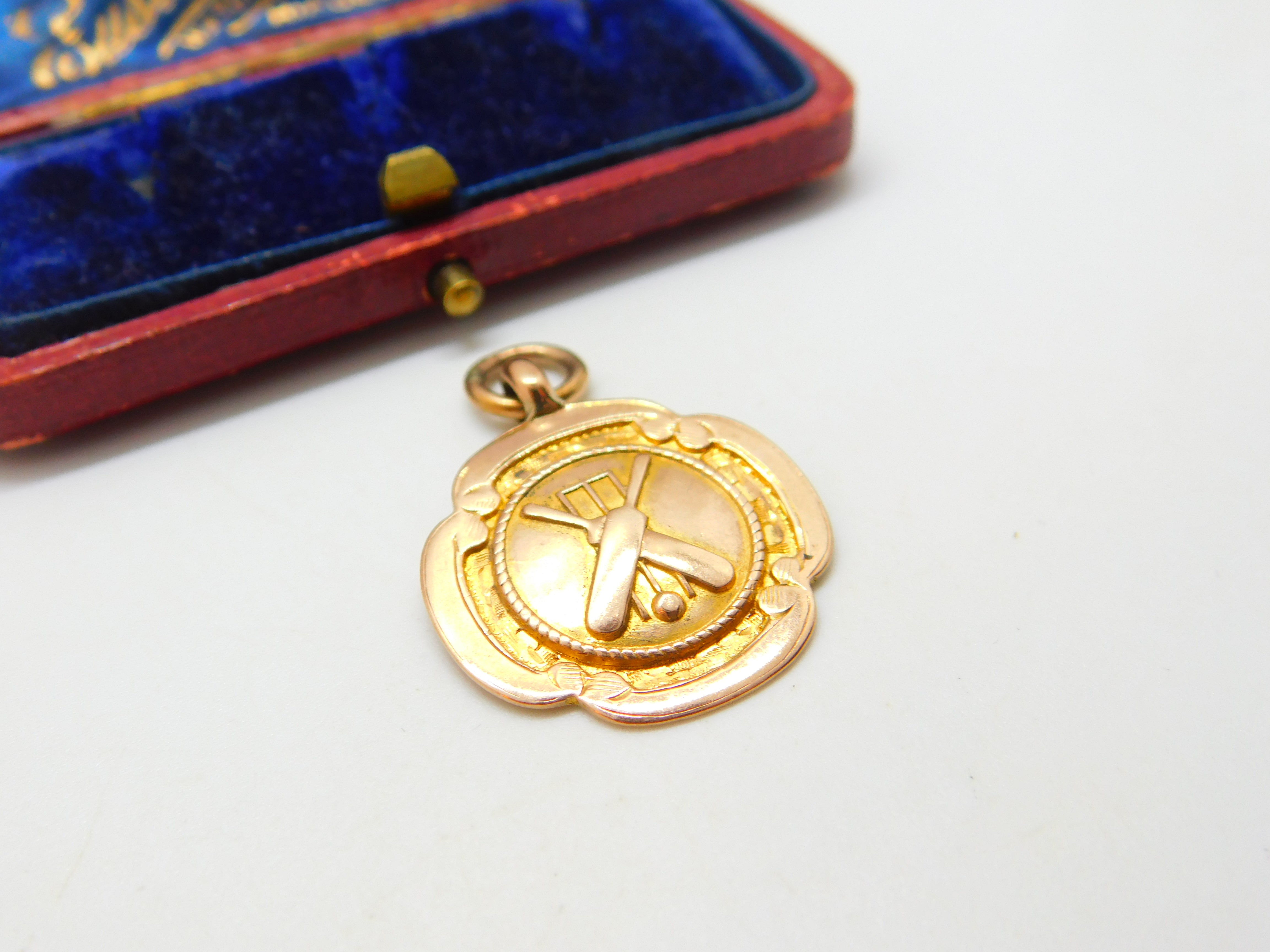 9ct Yellow Gold Cricket Match Fob Medal Antique 1930 Birmingham Art Deco