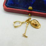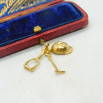 9ct Yellow Gold Crop, Stirrup, Hat Riding Equestrian Charm Vintage c1970