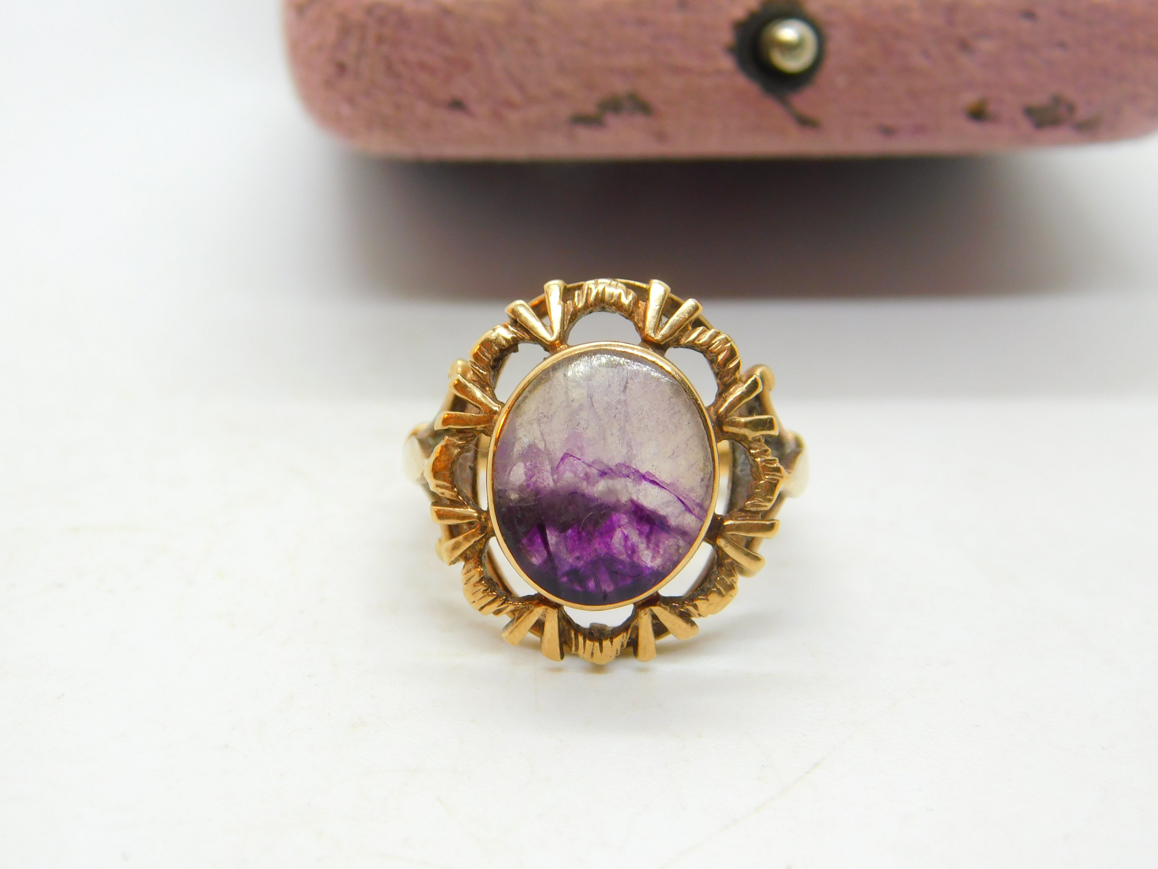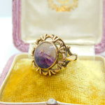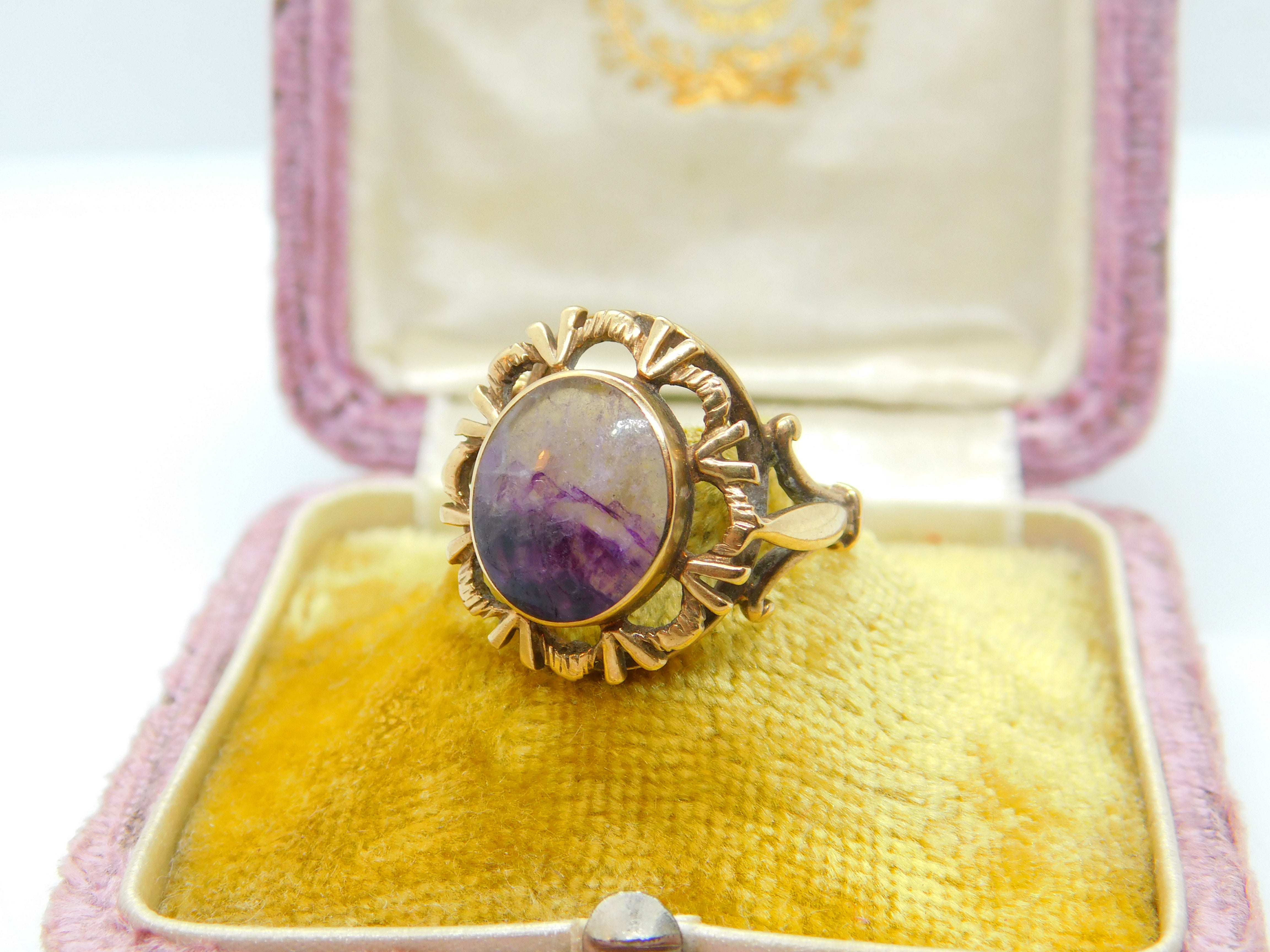 9ct Yellow Gold & Derbyshire Blue John Dress Ring Vintage 1973 Birmingham