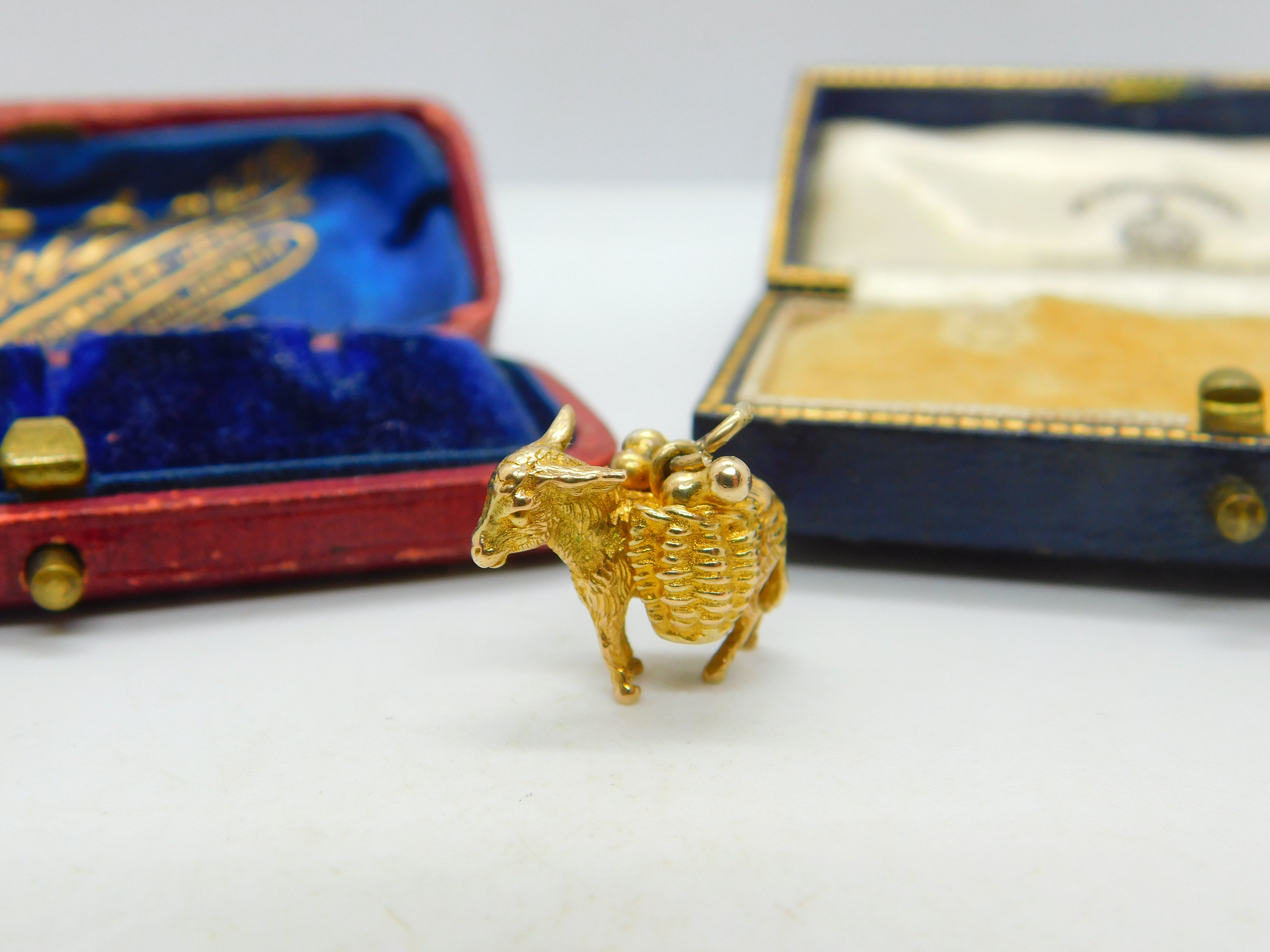 9ct Yellow Gold Donkey Carrying Baskets Charm Pendant Vintage 1982 Birmingham