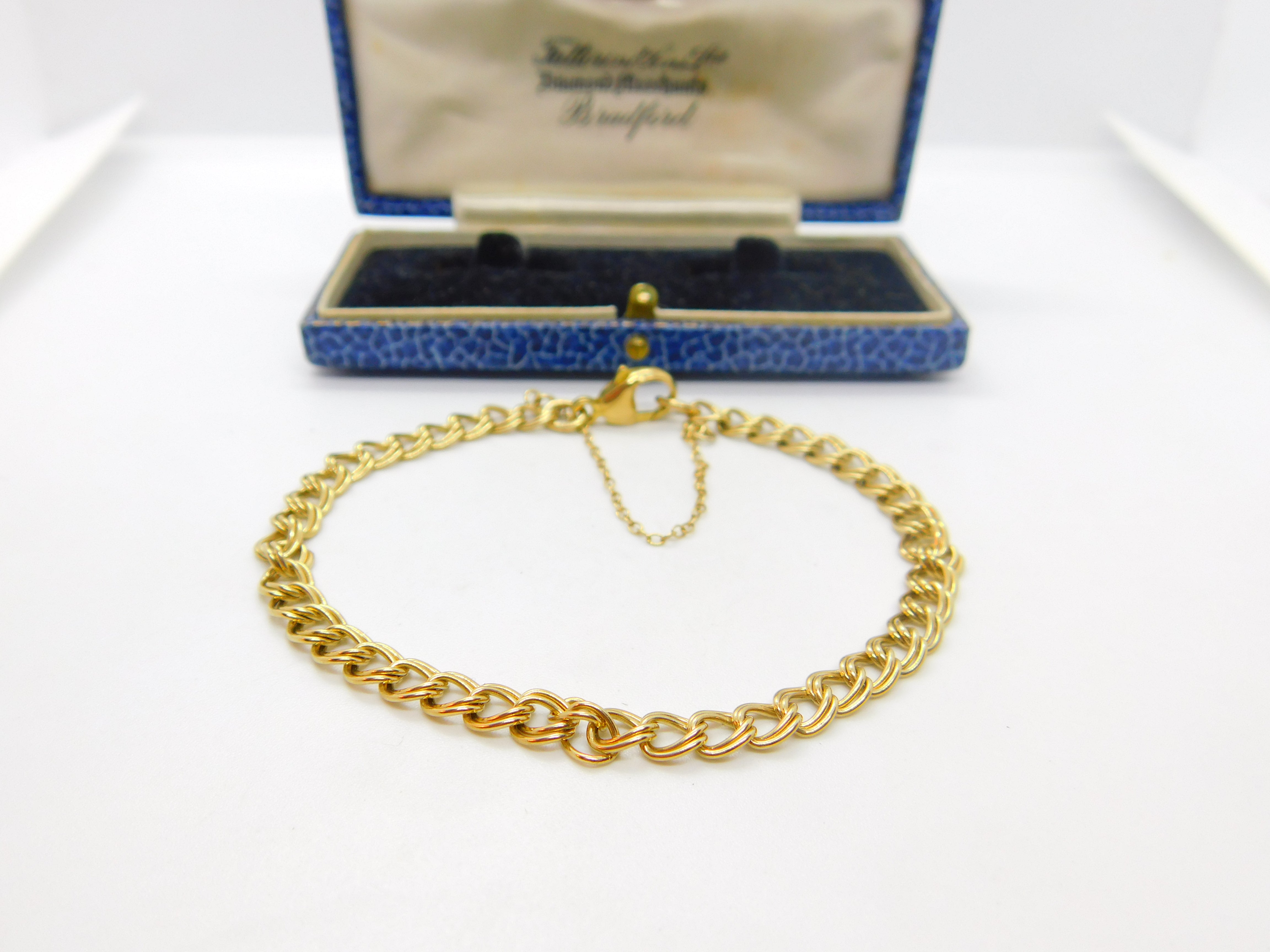 Details: A fantastic and wonderfully designed vintage 9ct yellow gold double curb link chain bracelet with lovely detail hallmarked Birmingham 1989 to the bale. This is a wonderful item that would make a perfect gift or addition to any collection. The BOX pictured is for PRESENTATION ONLY and is NOT included in the listings but used to frame the pictures unless specifically stated otherwise.