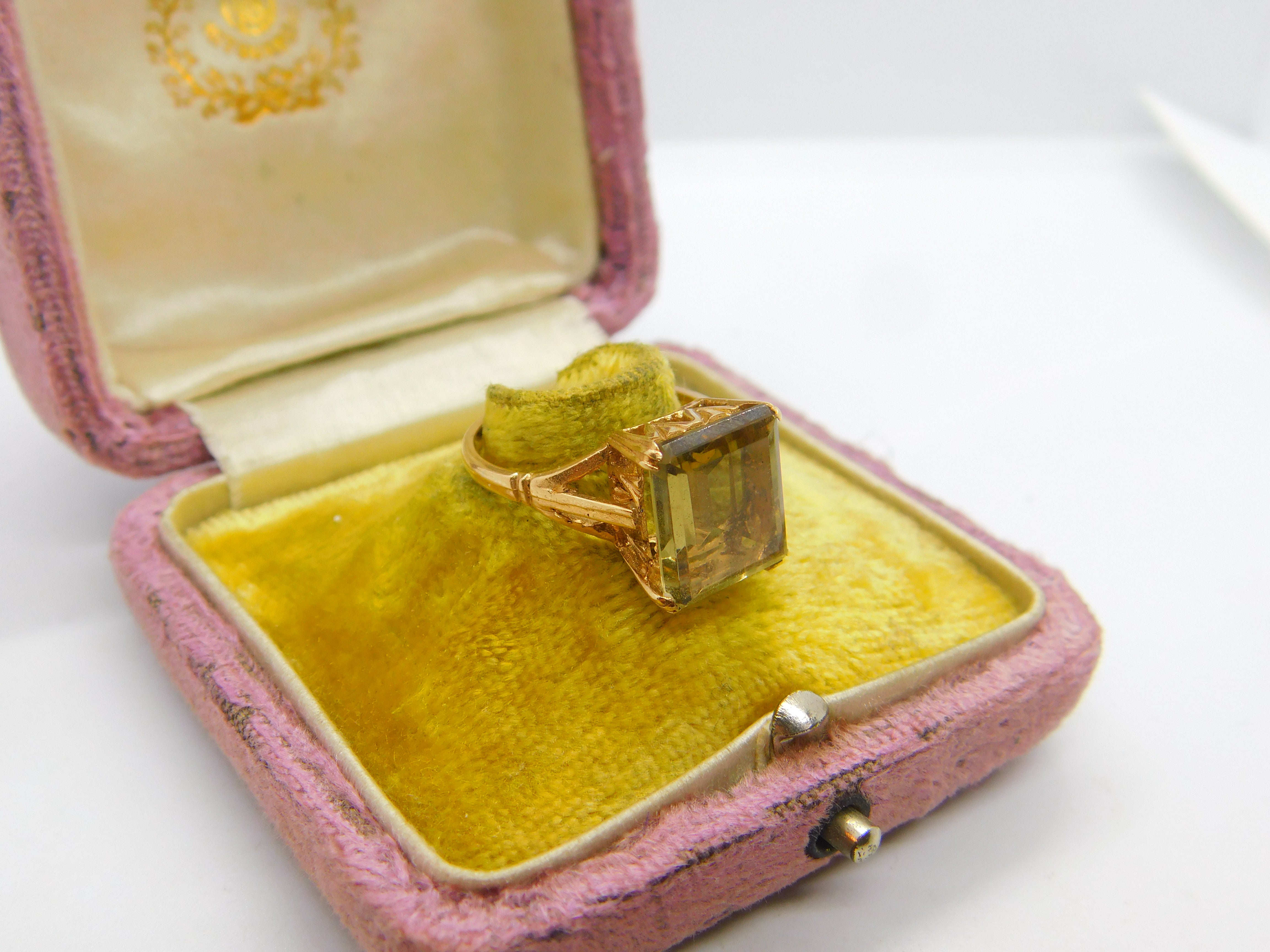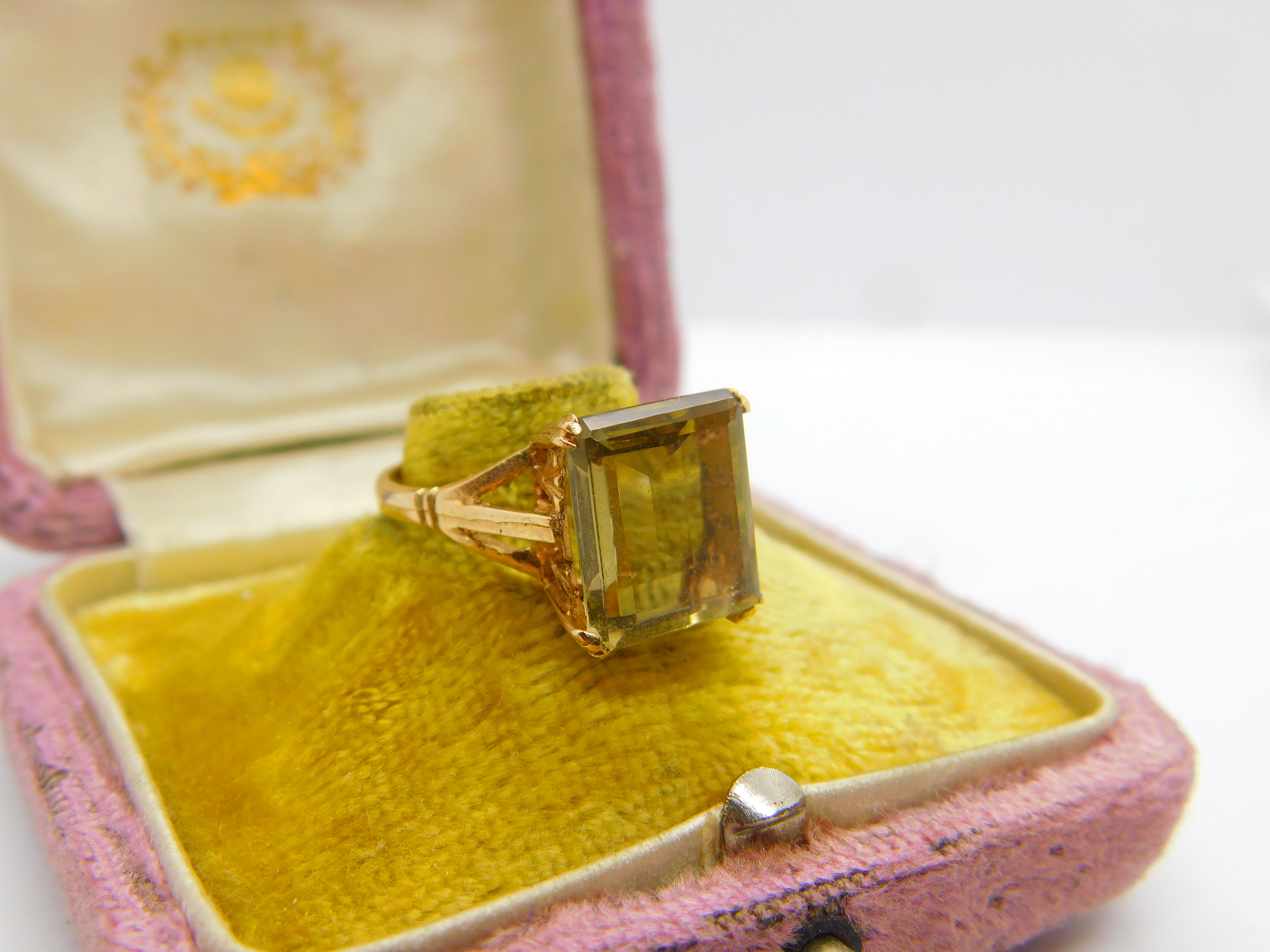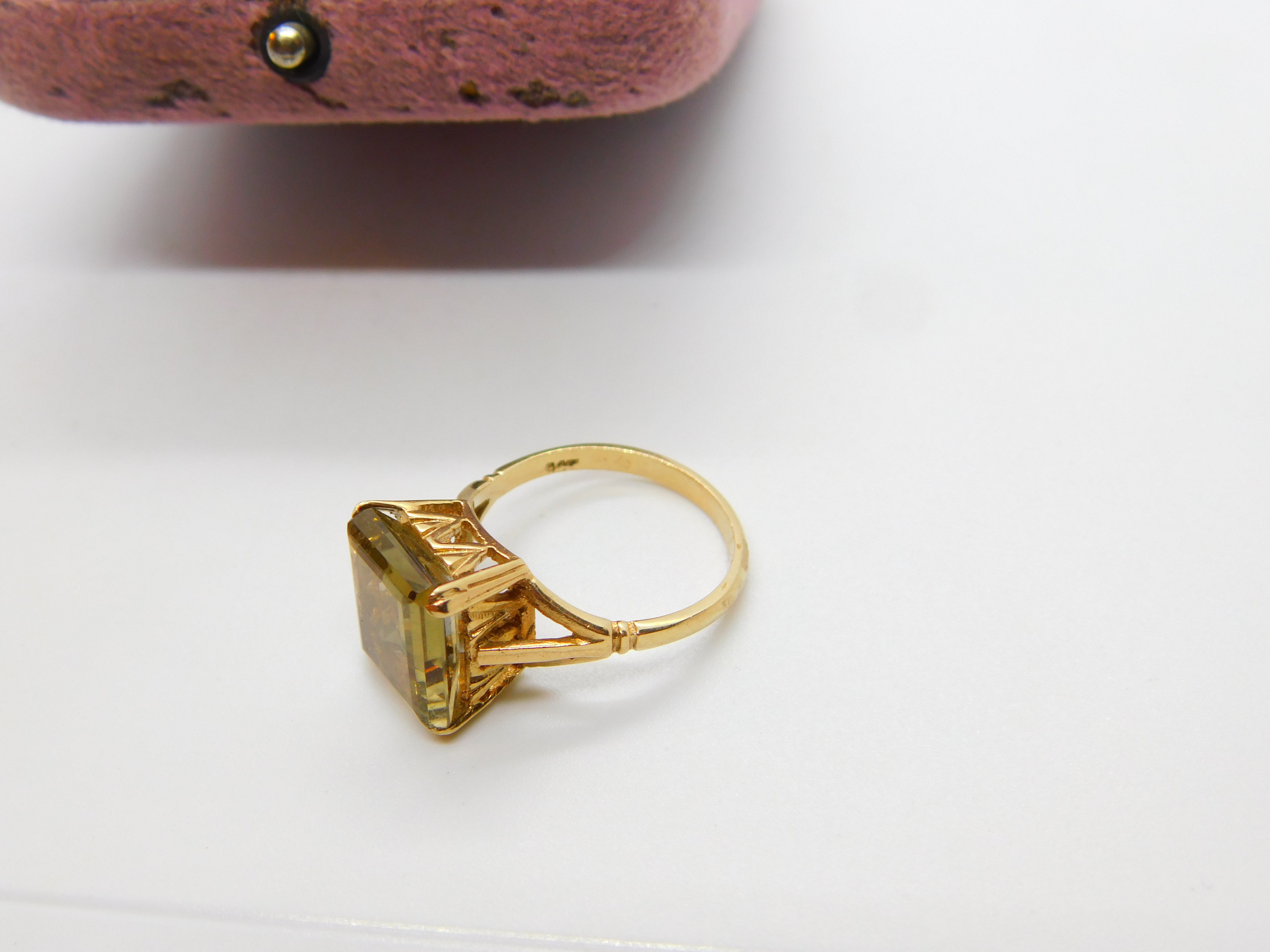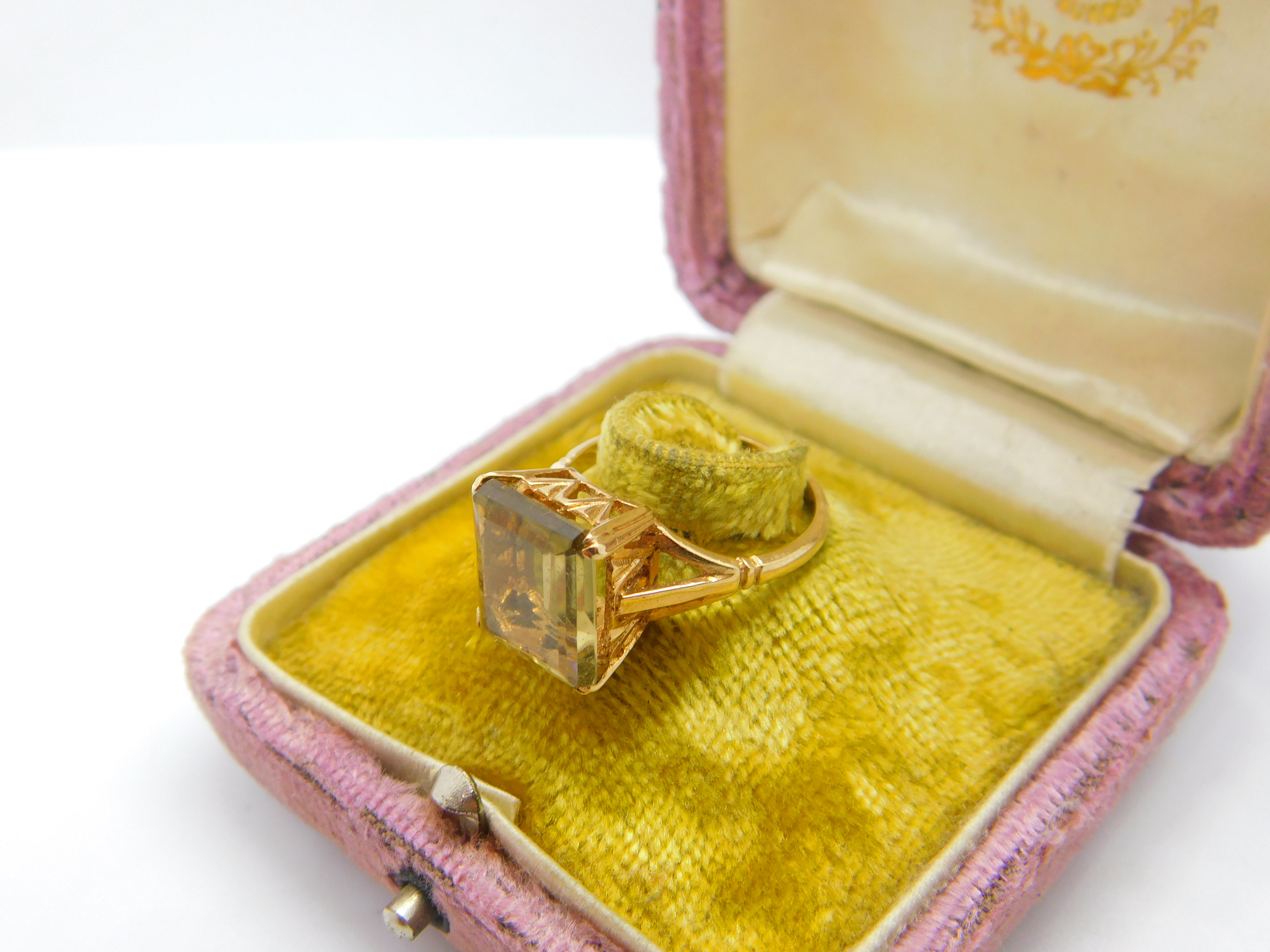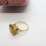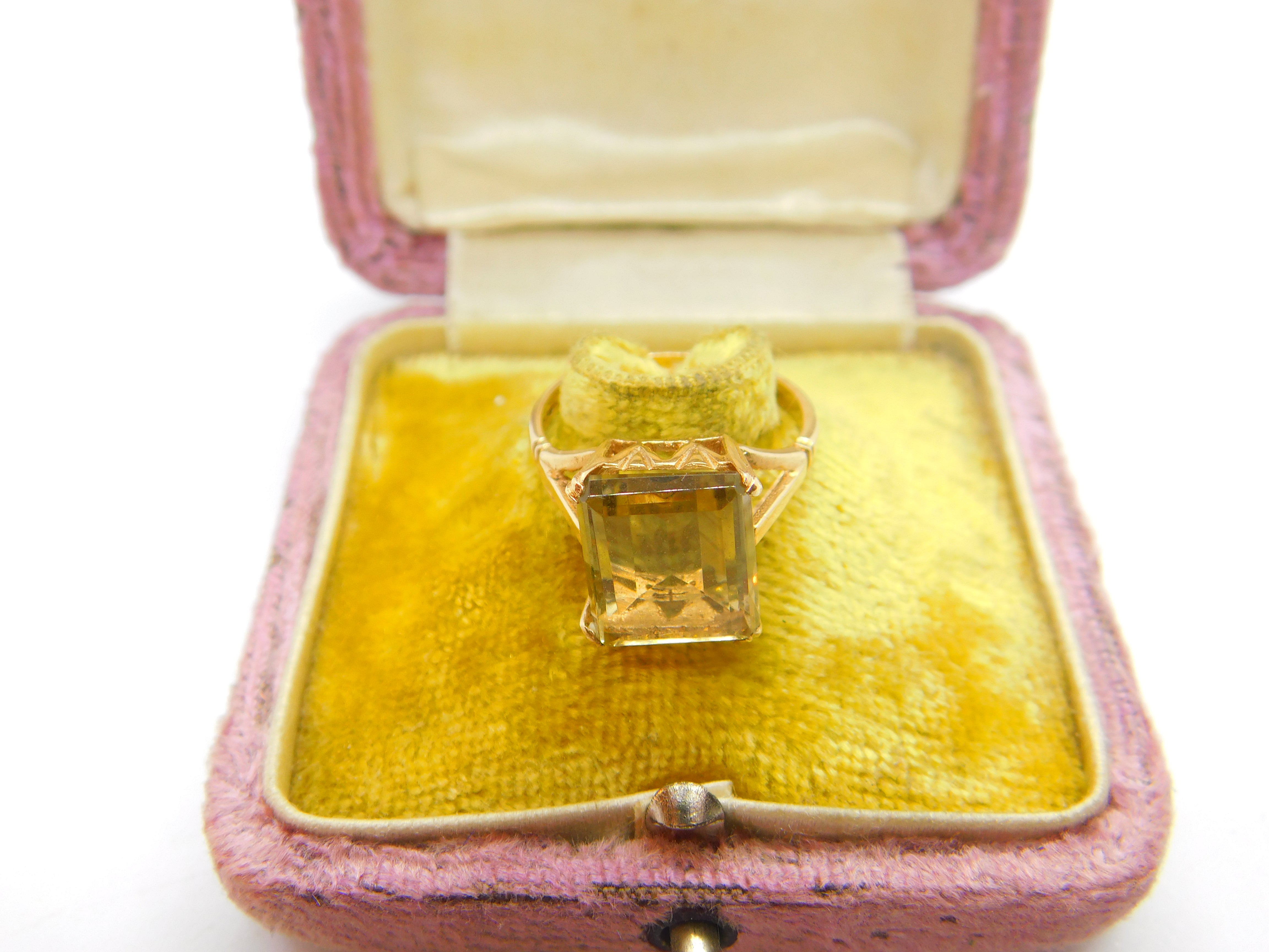 9ct Yellow Gold & Emerald Cut Citrine Set Cocktail Ring Vintage c1970