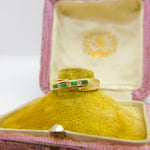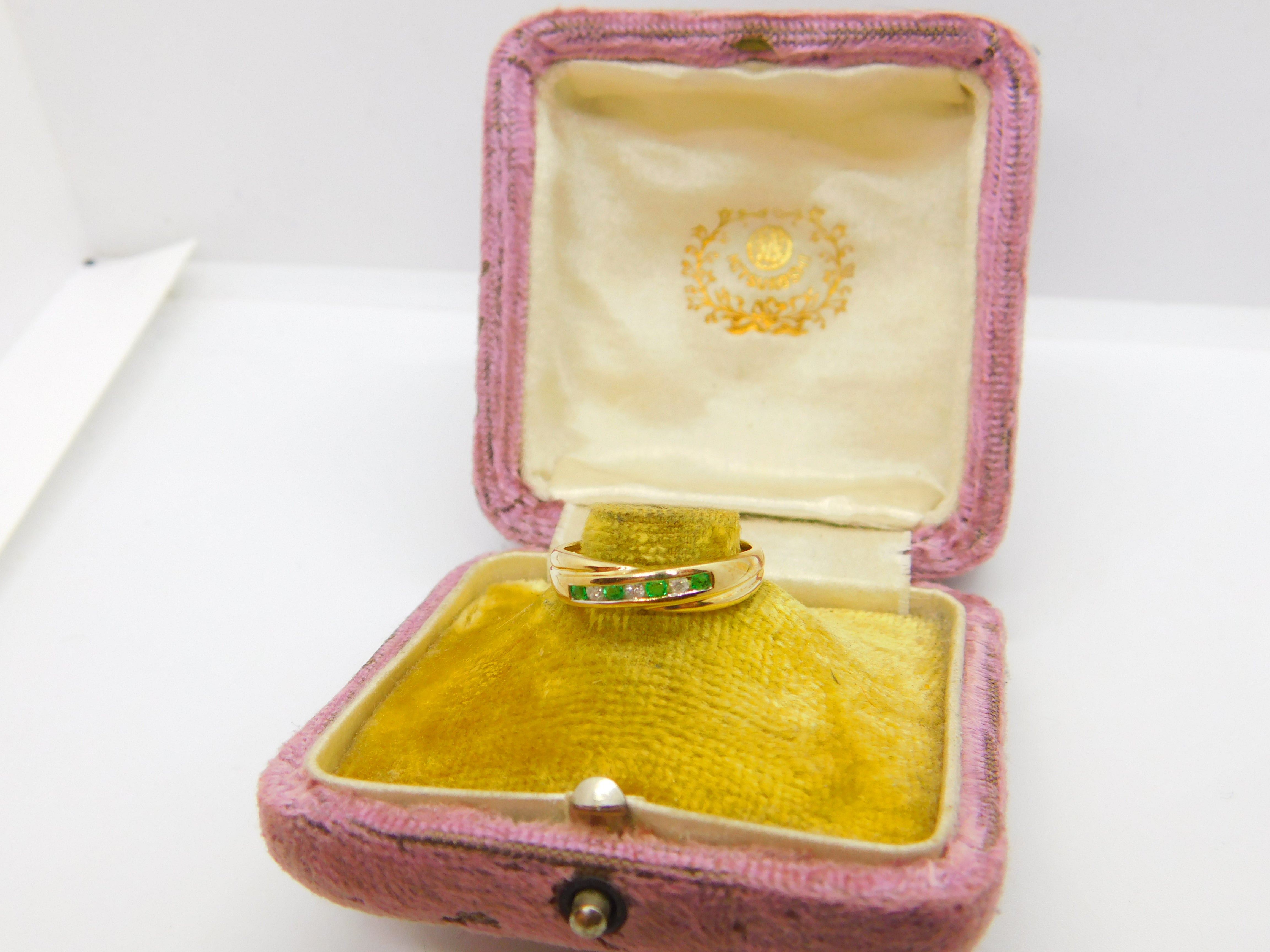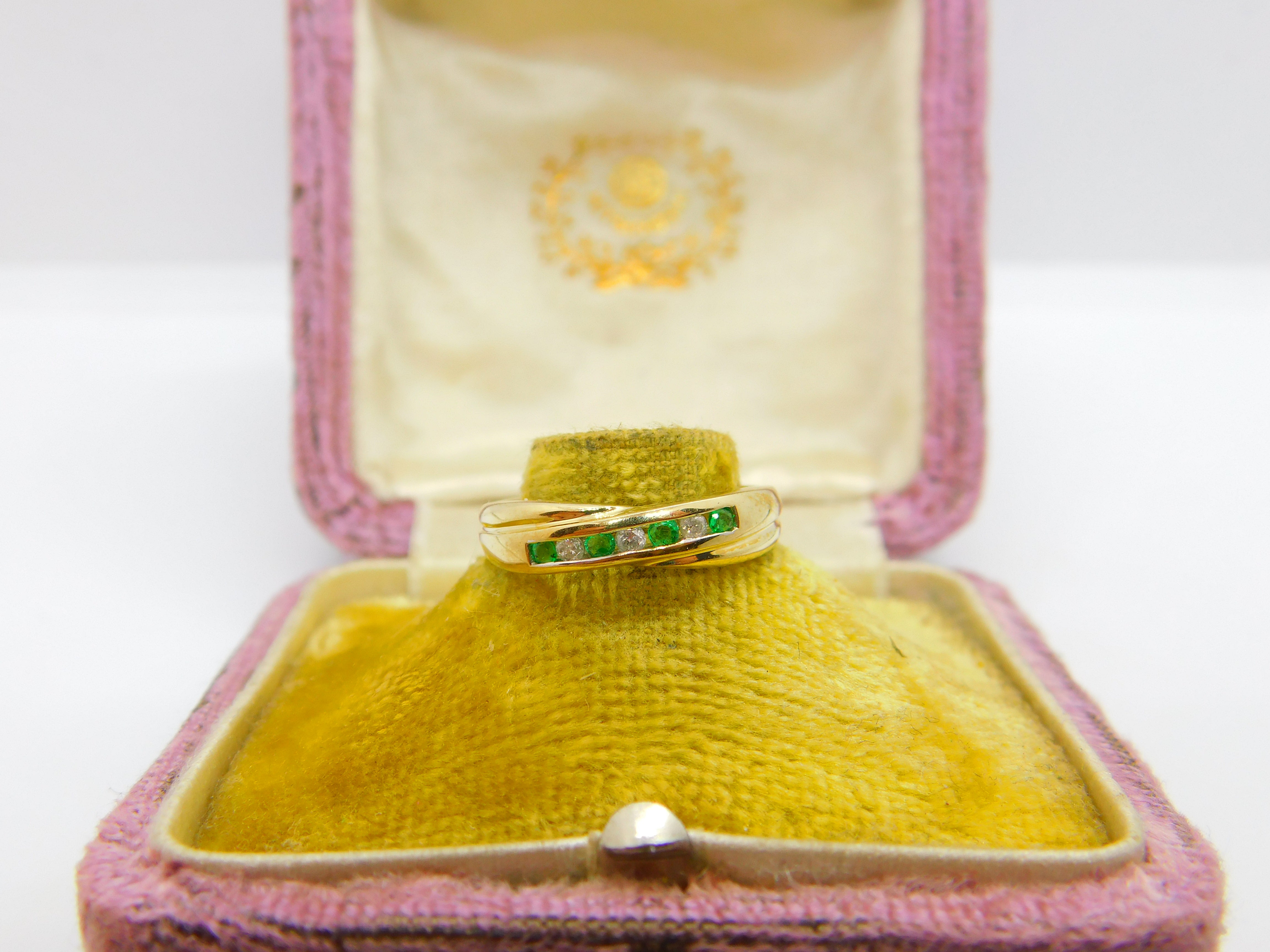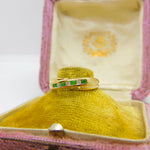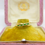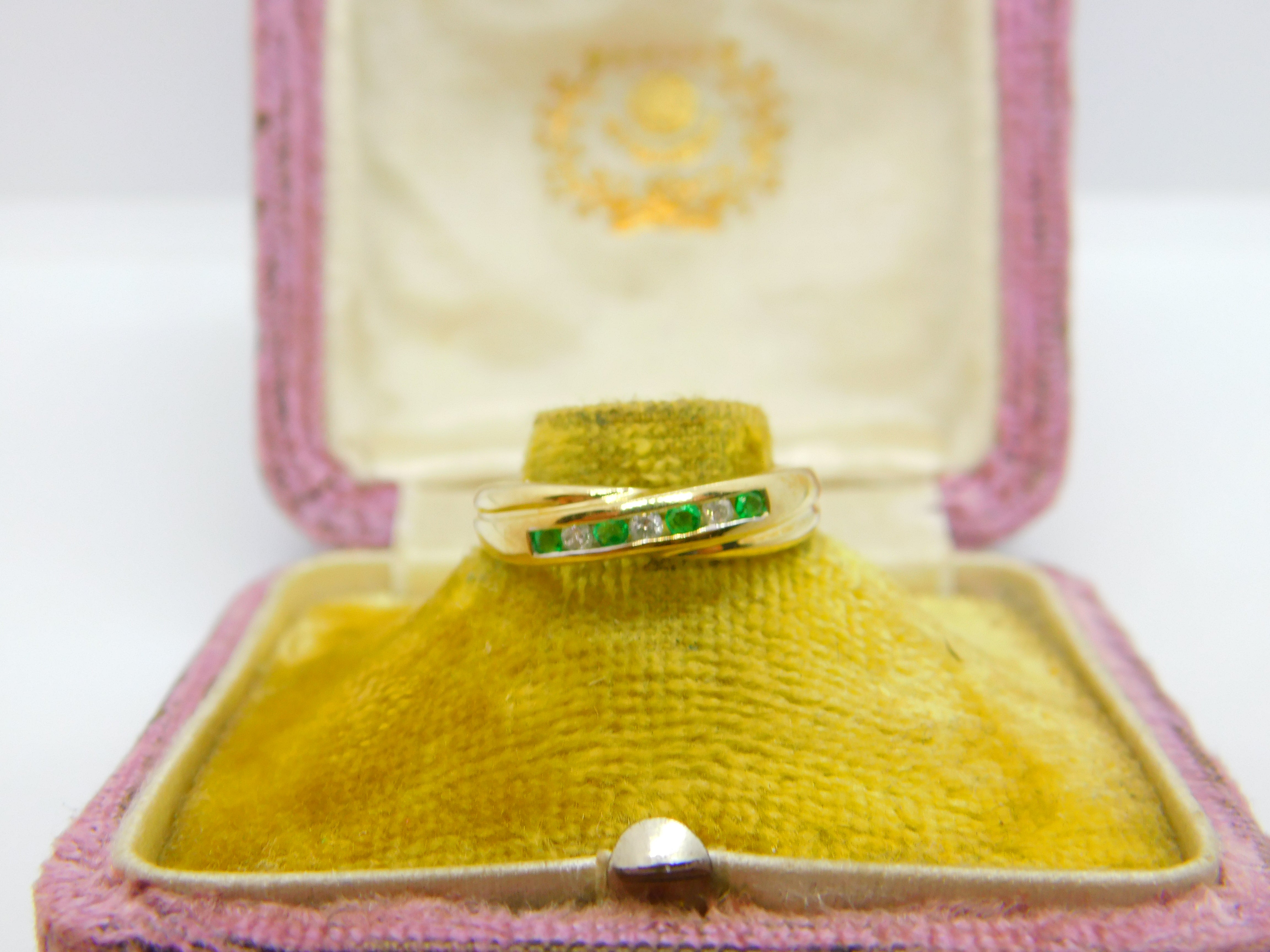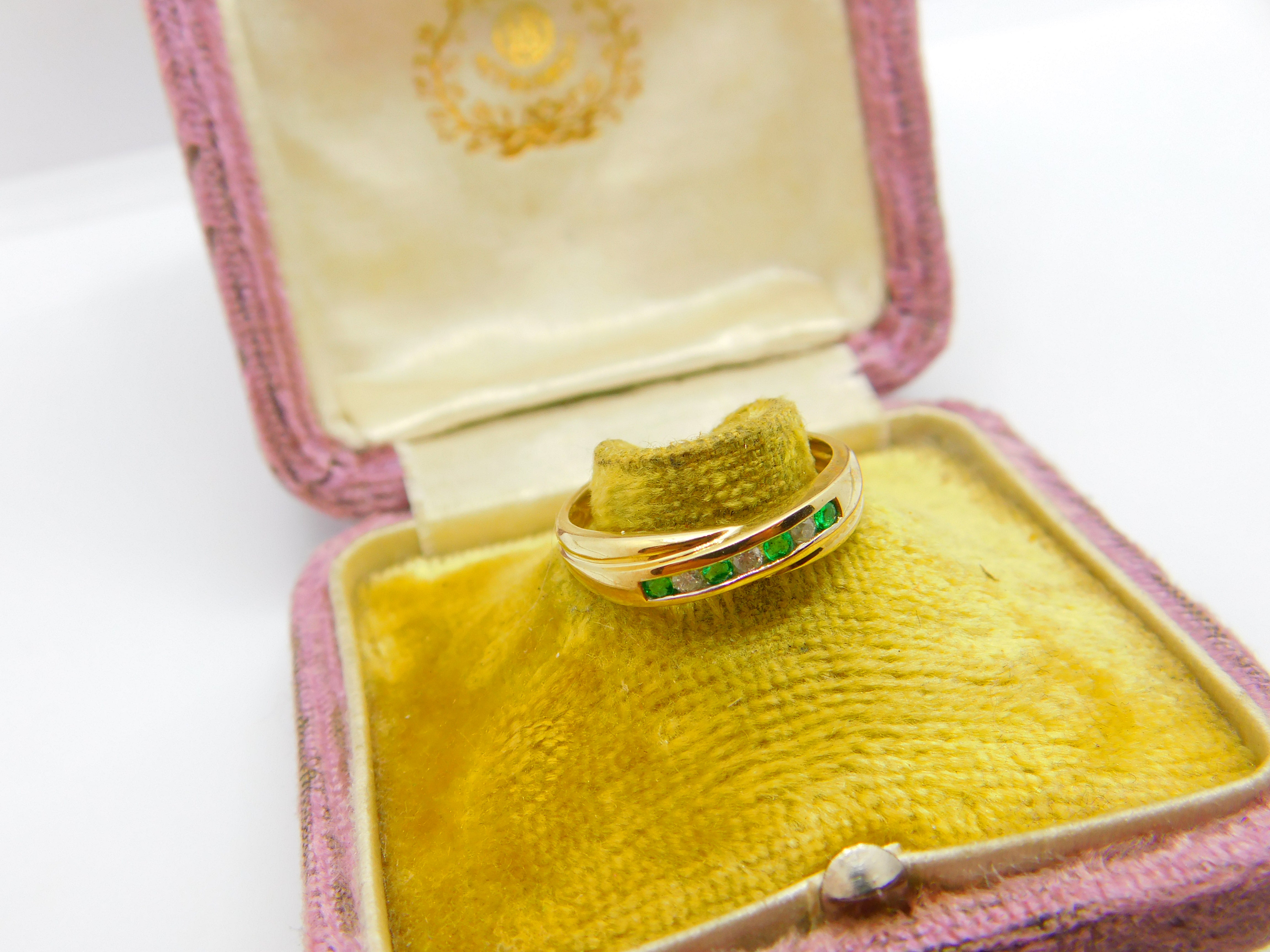 9ct Yellow Gold, Emerald & Diamond Crossover Band Ring Vintage c1980 Sheffield