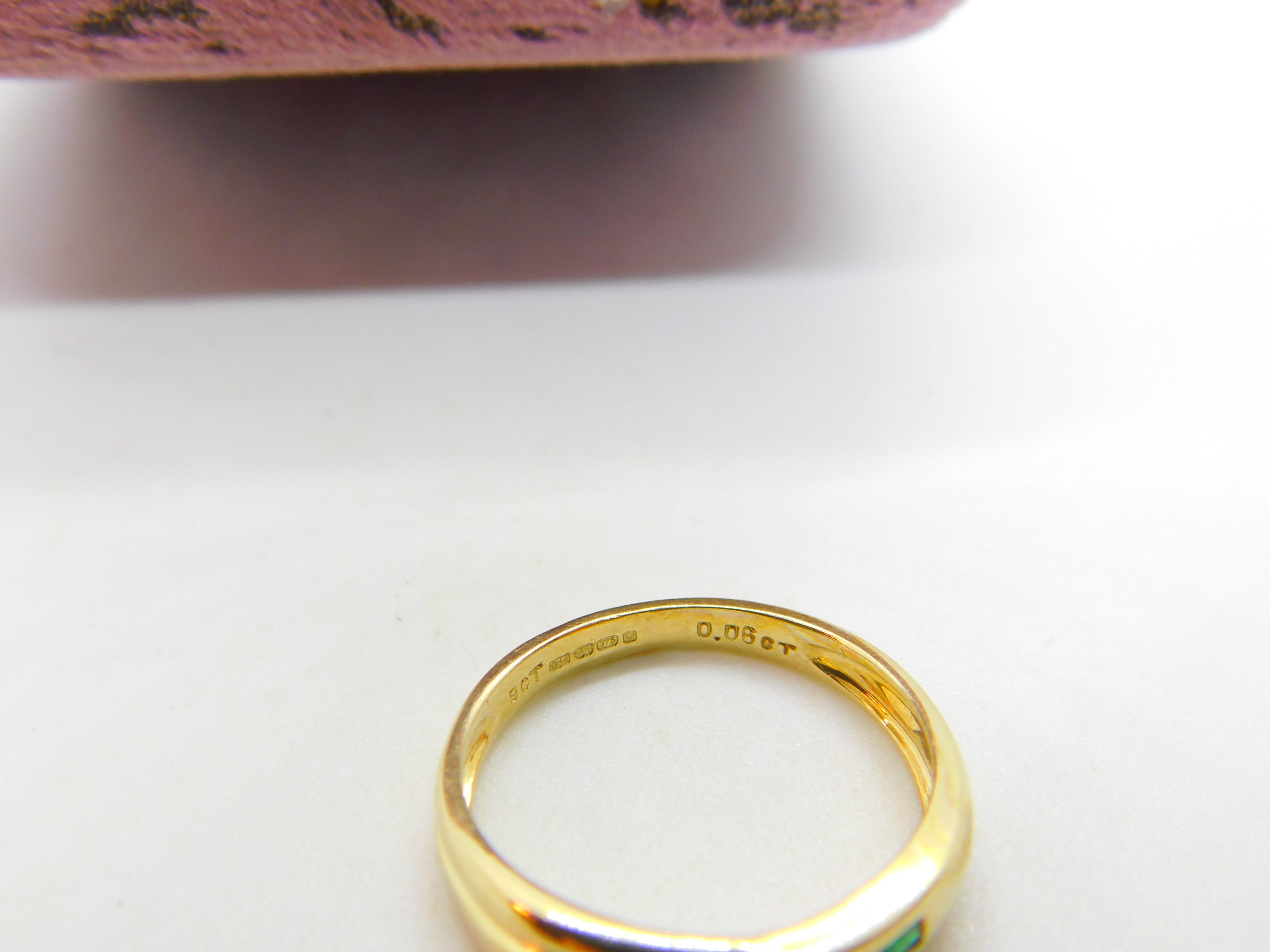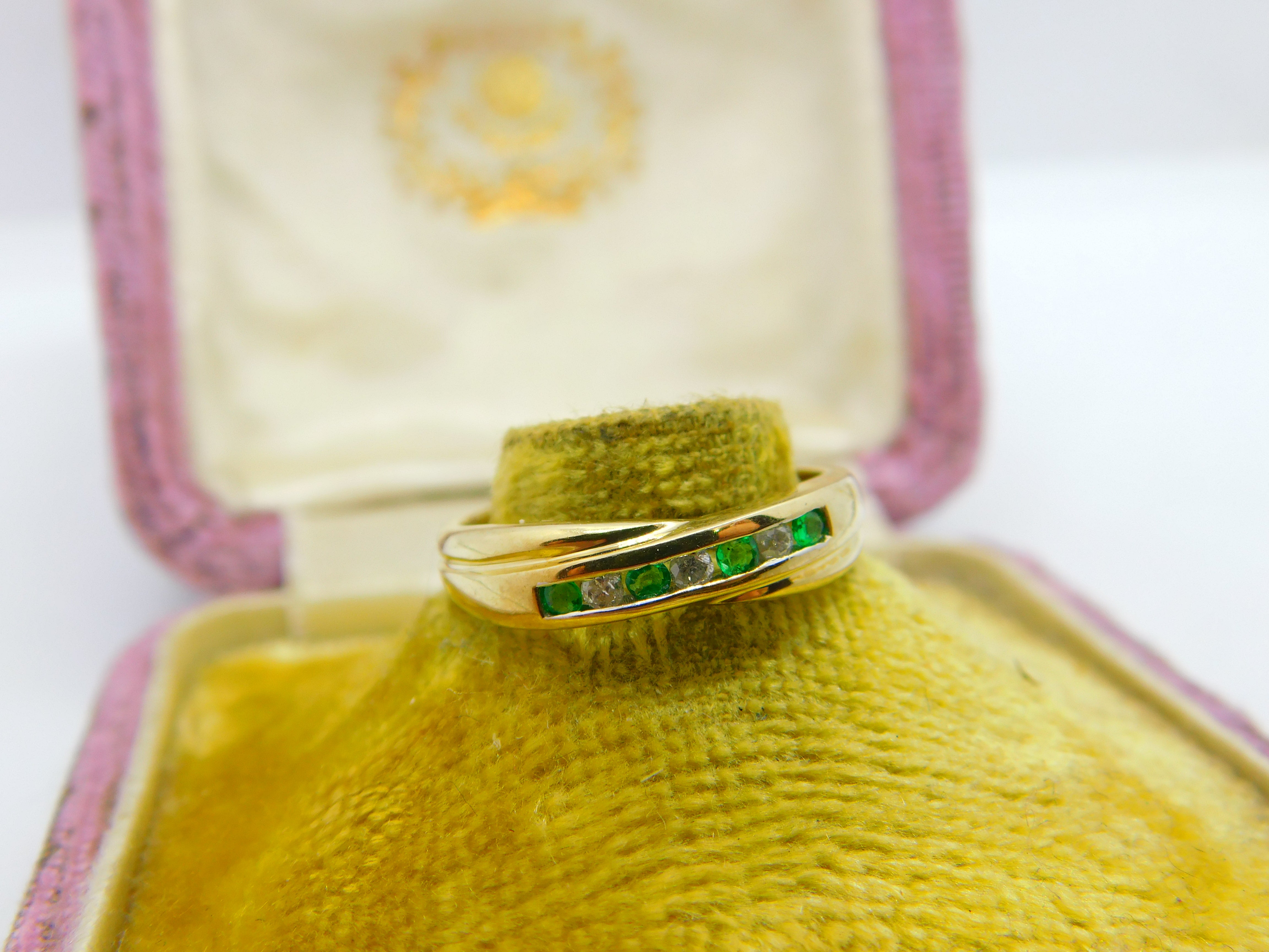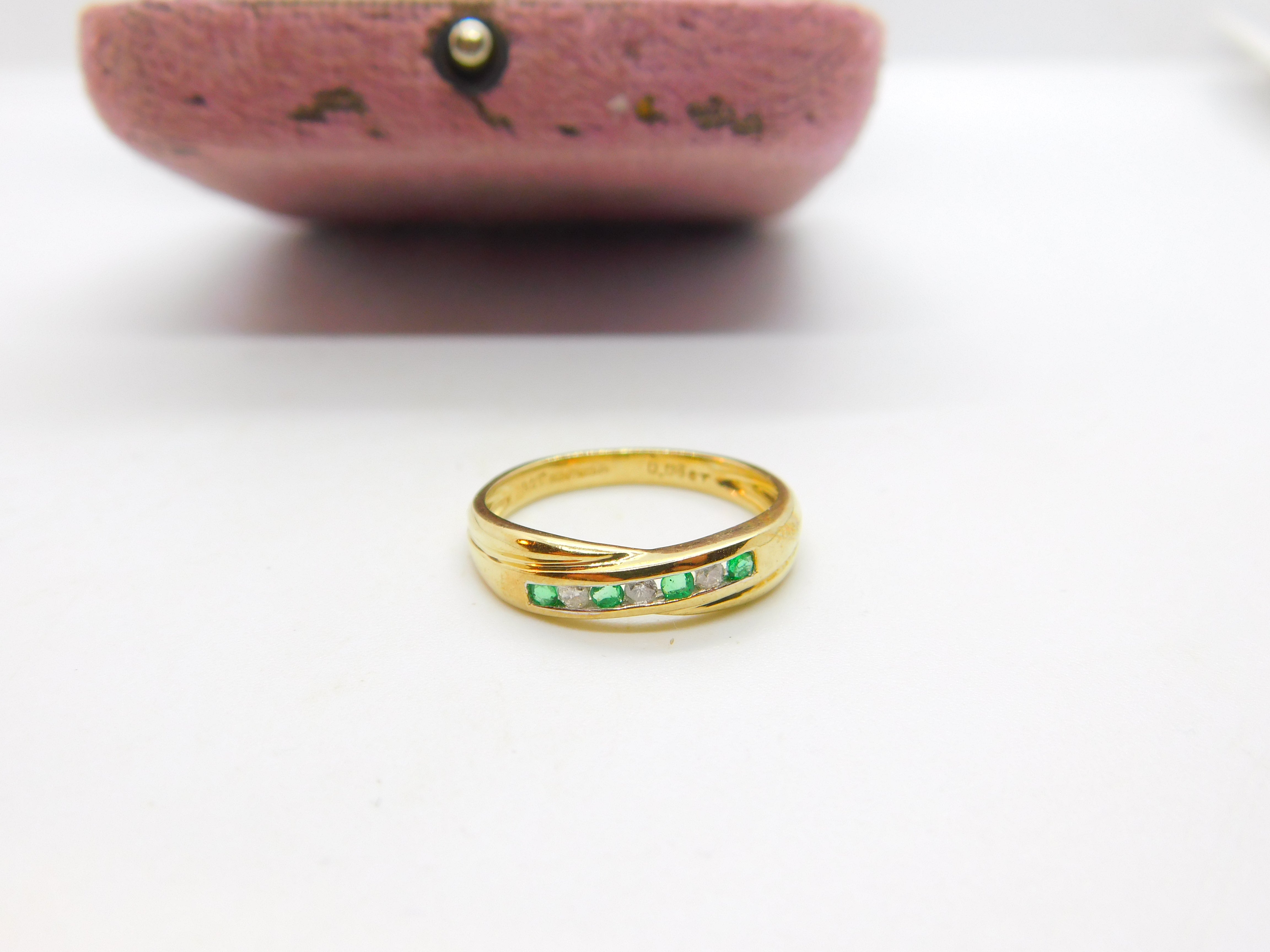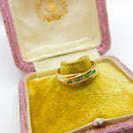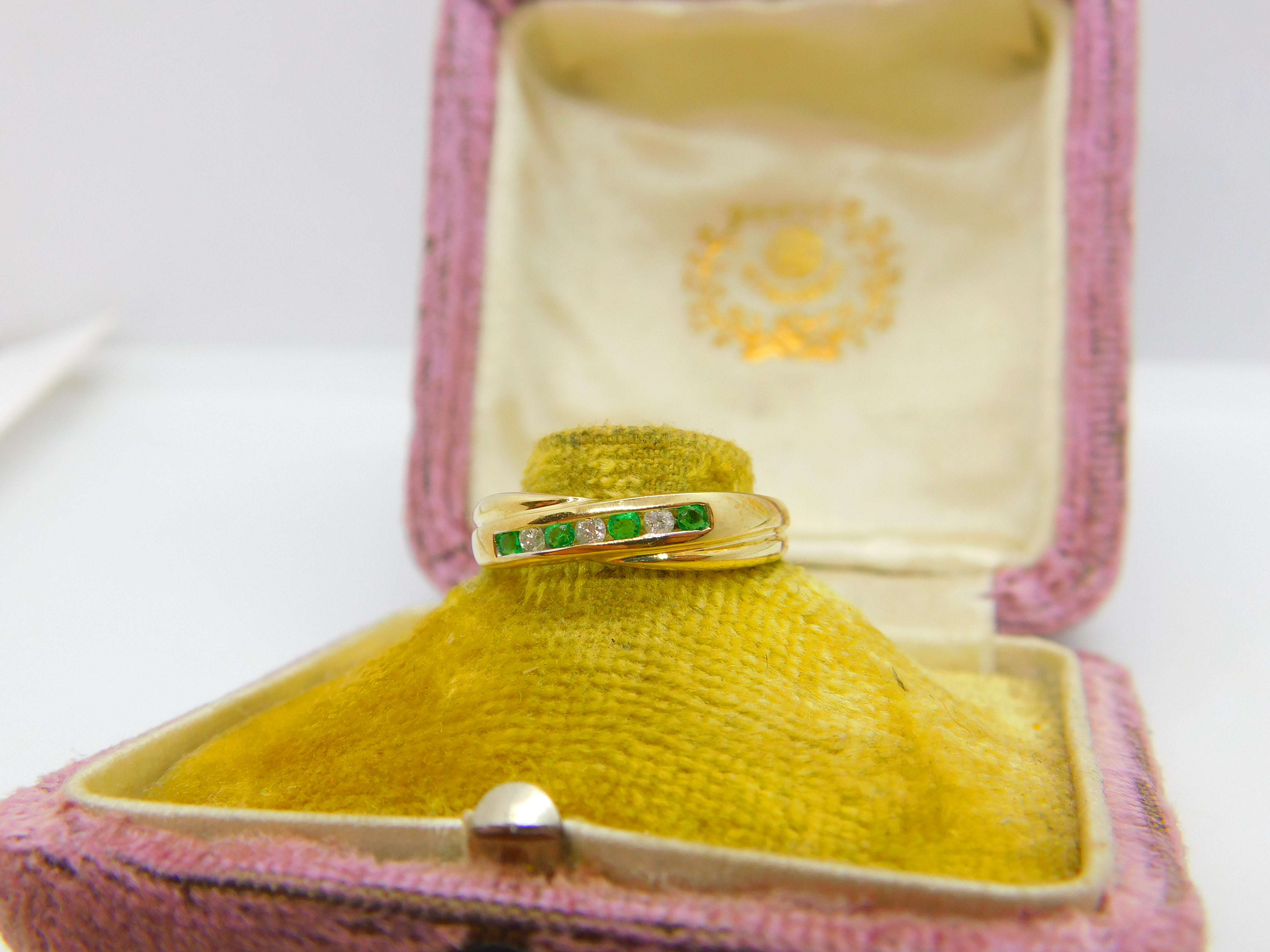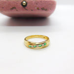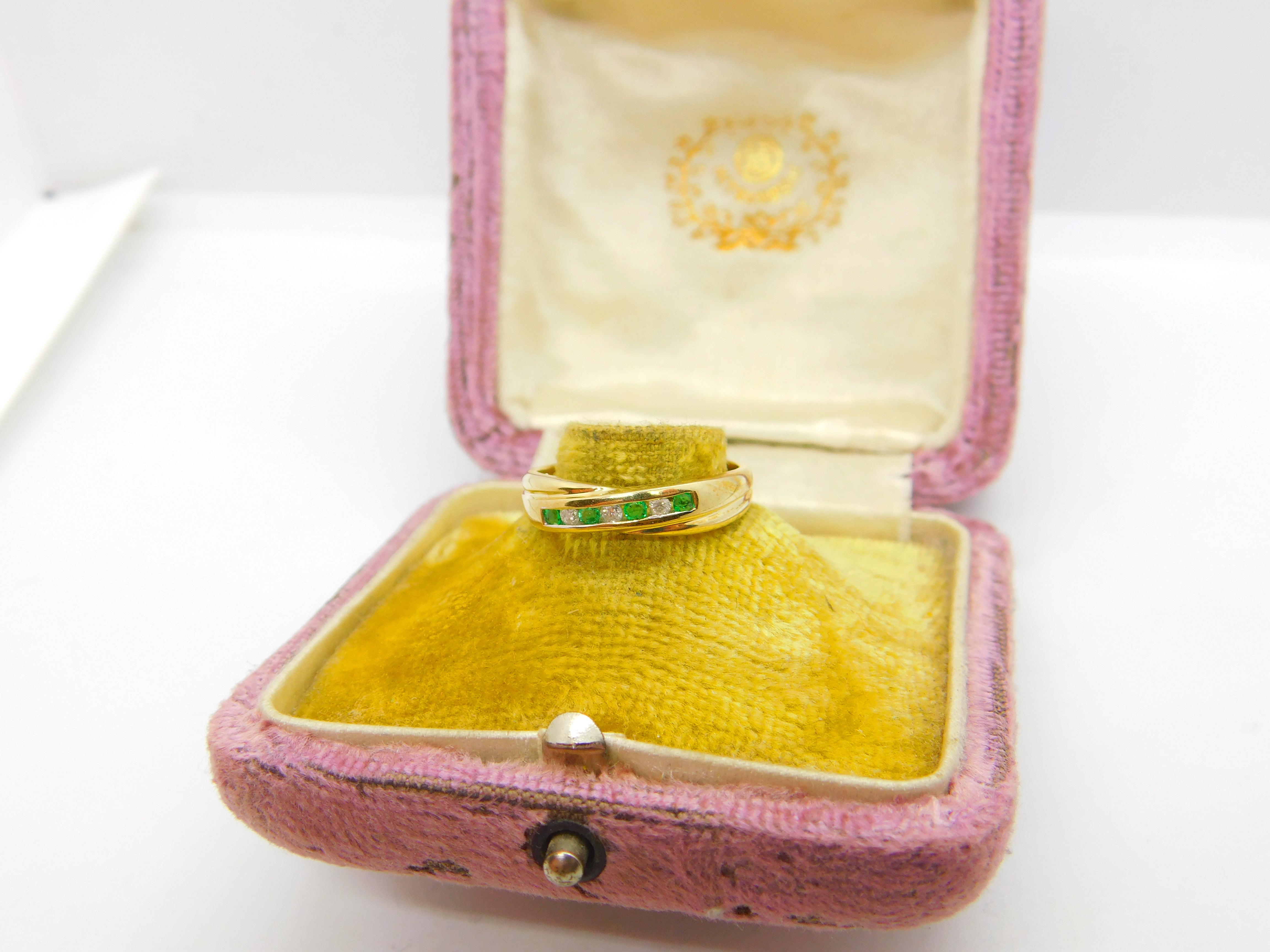9ct Yellow Gold, Emerald & Diamond Crossover Band Ring Vintage c1980 Sheffield