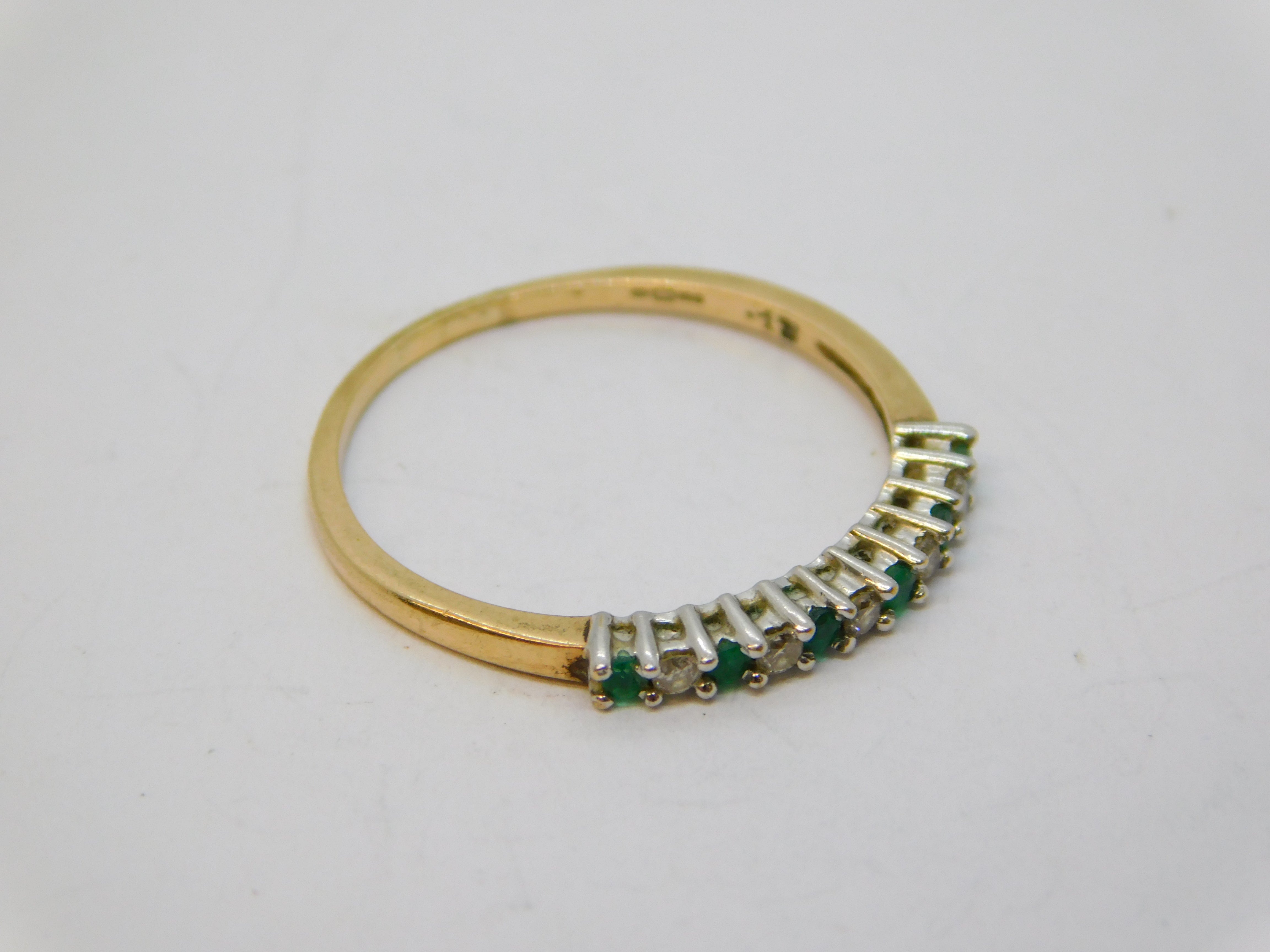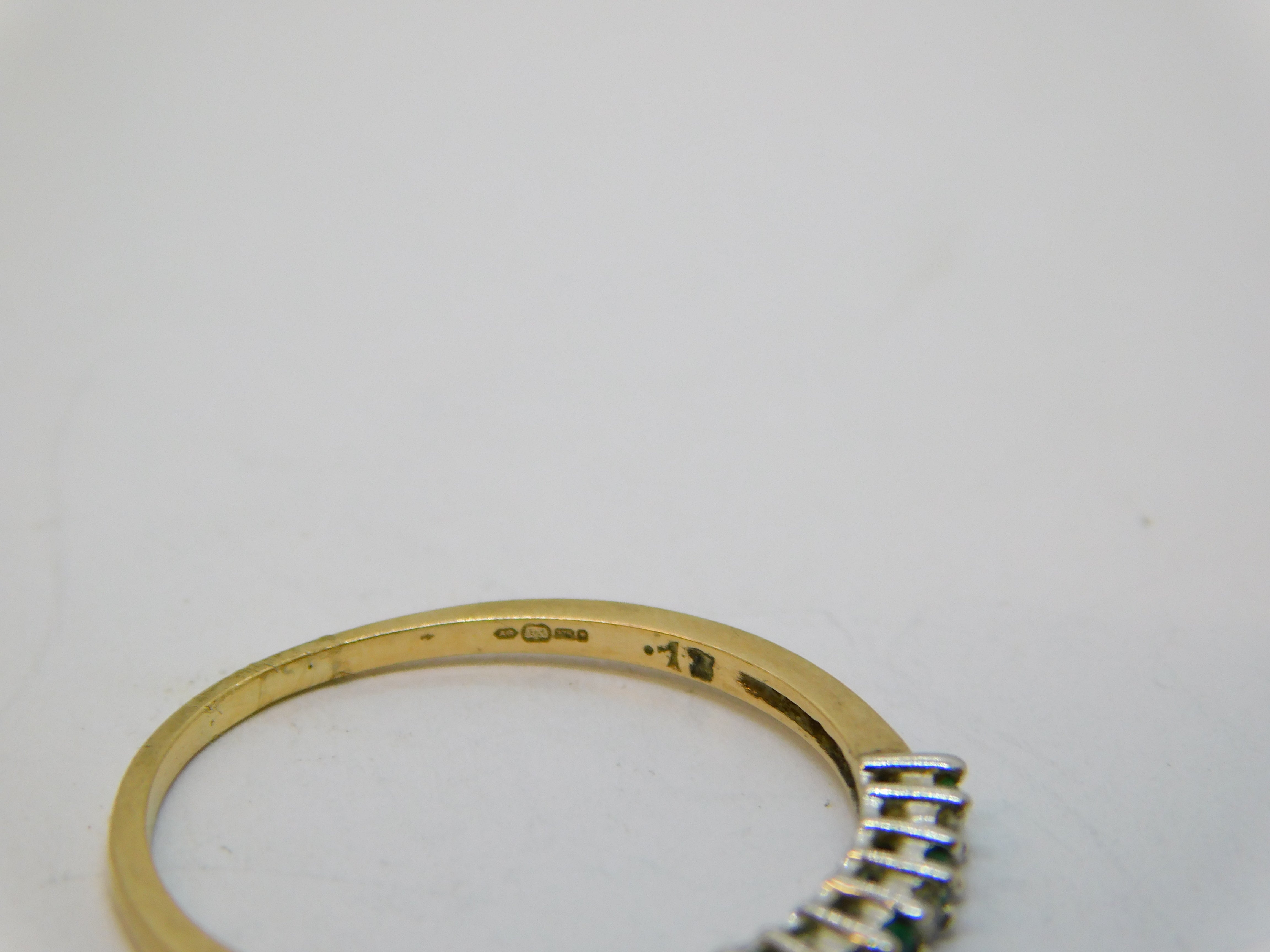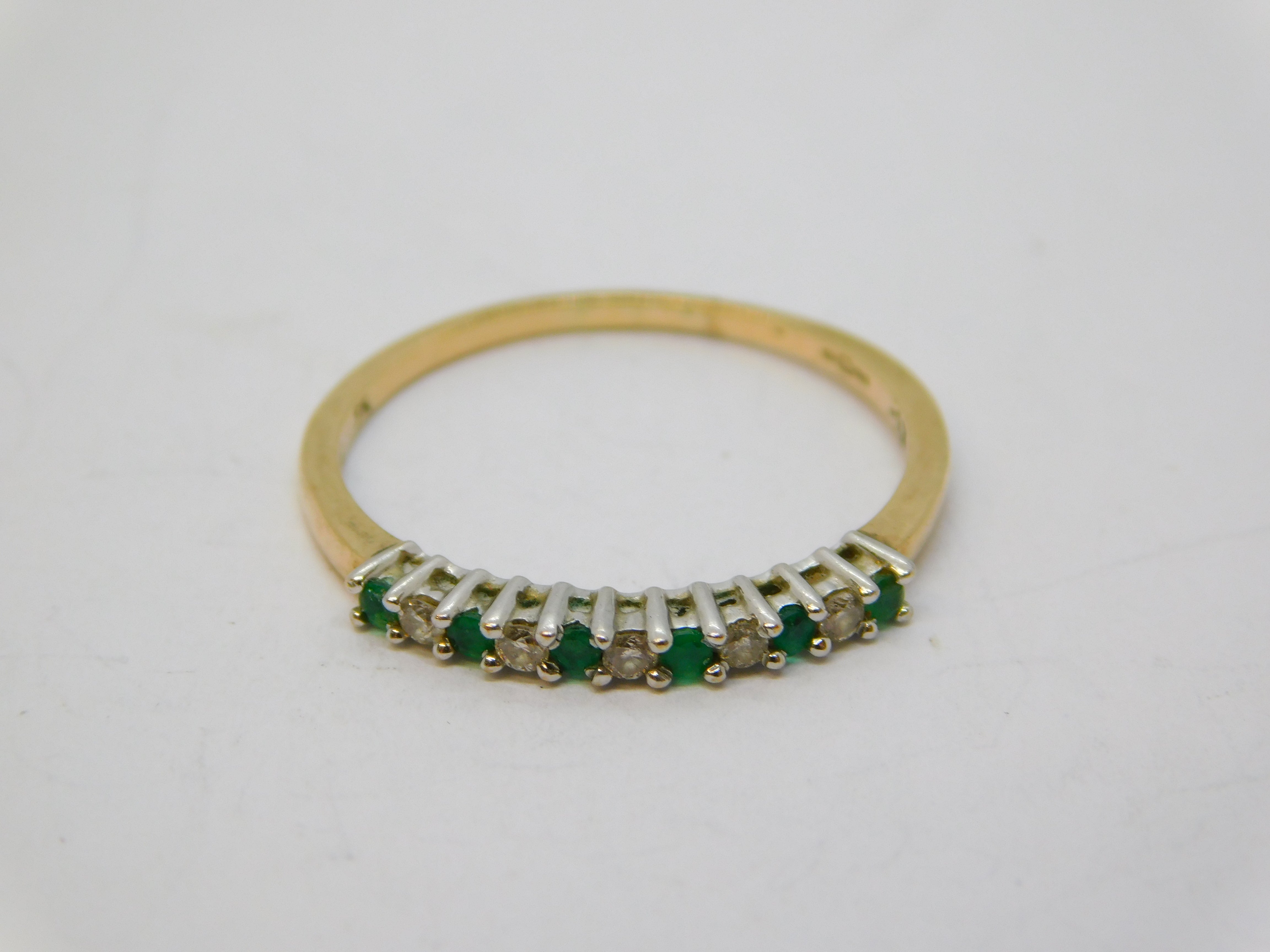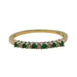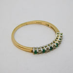 9ct Yellow Gold, Emerald & Diamond Half-Eternity Ring Vintage c1980