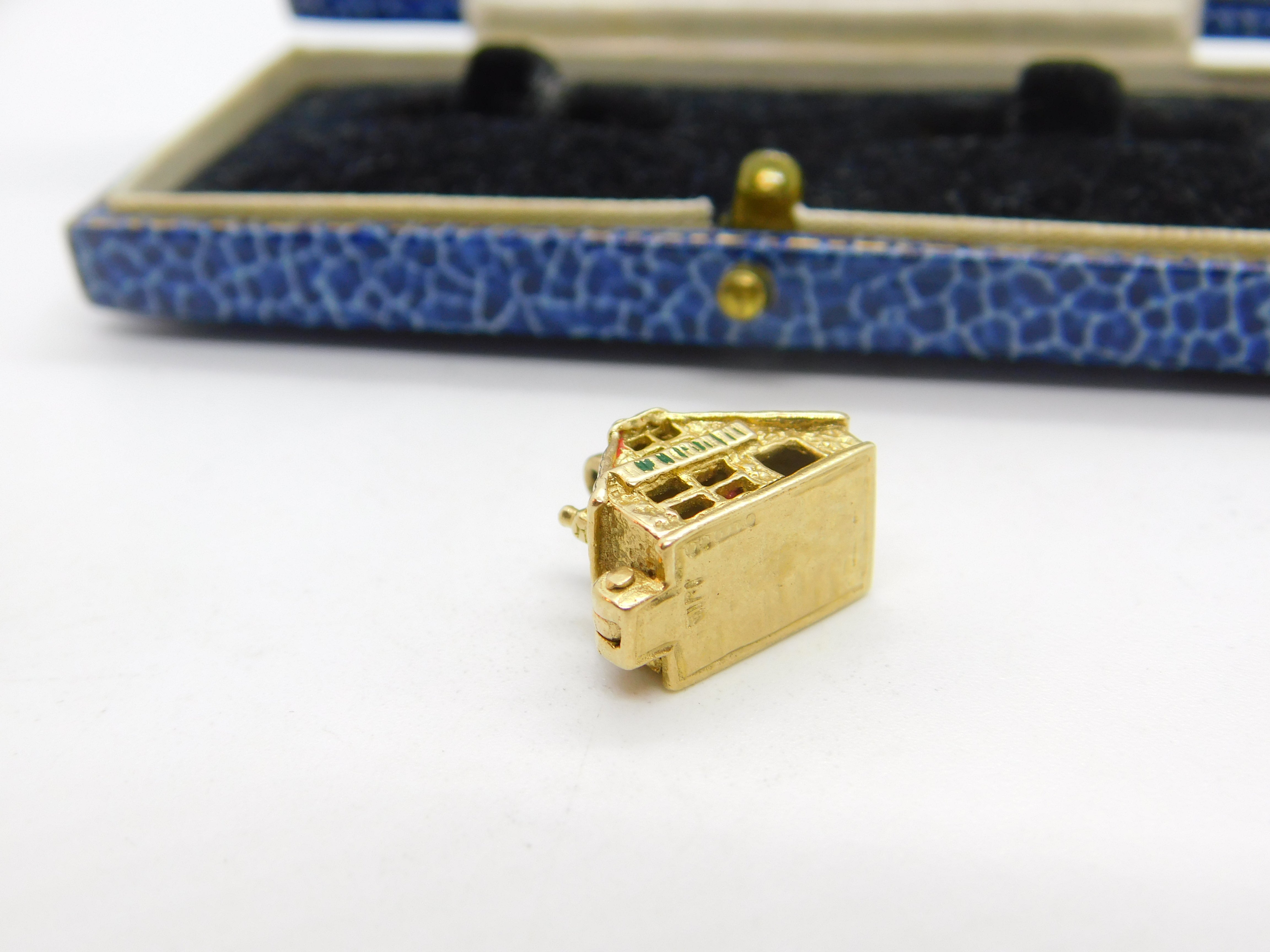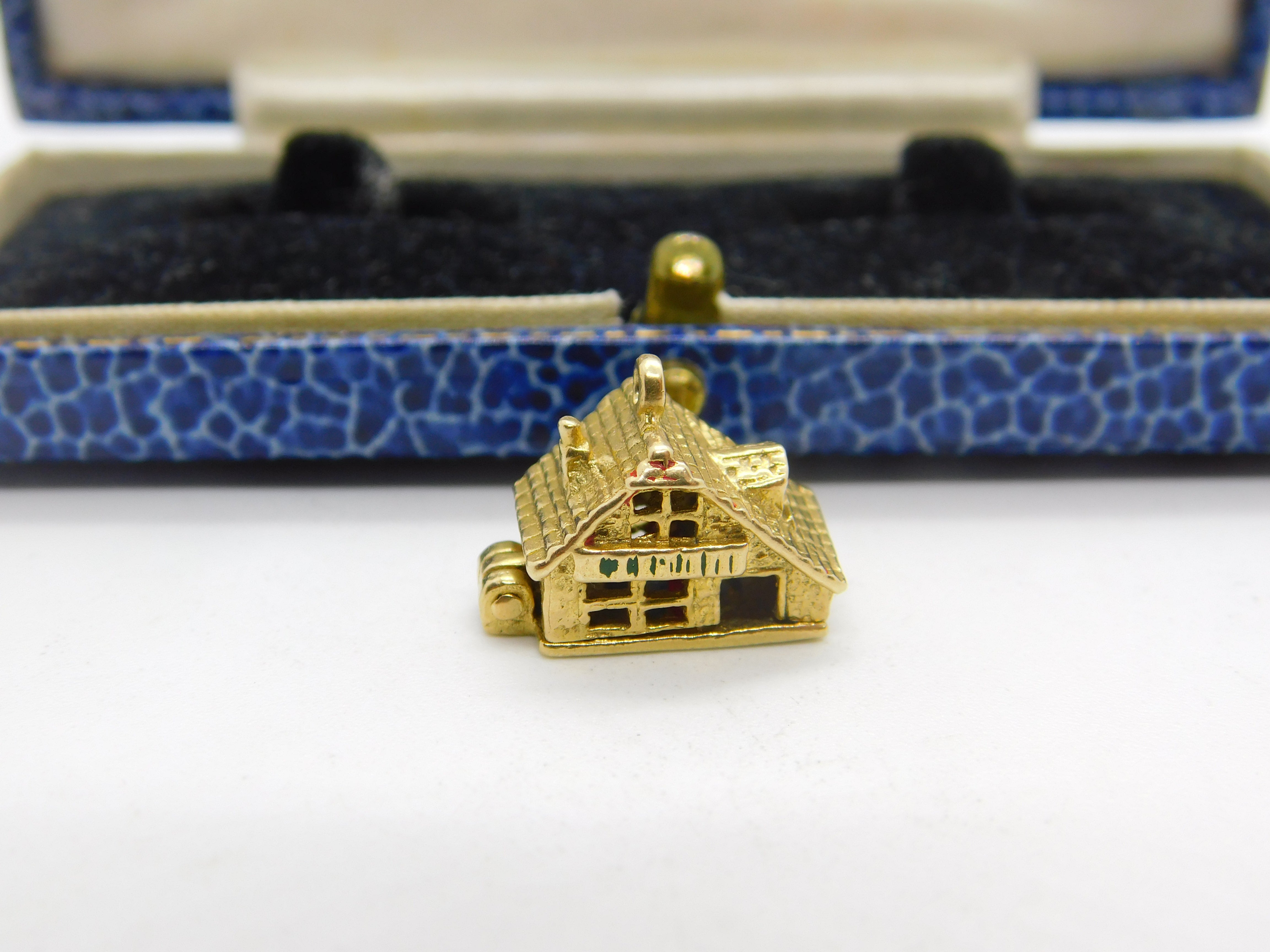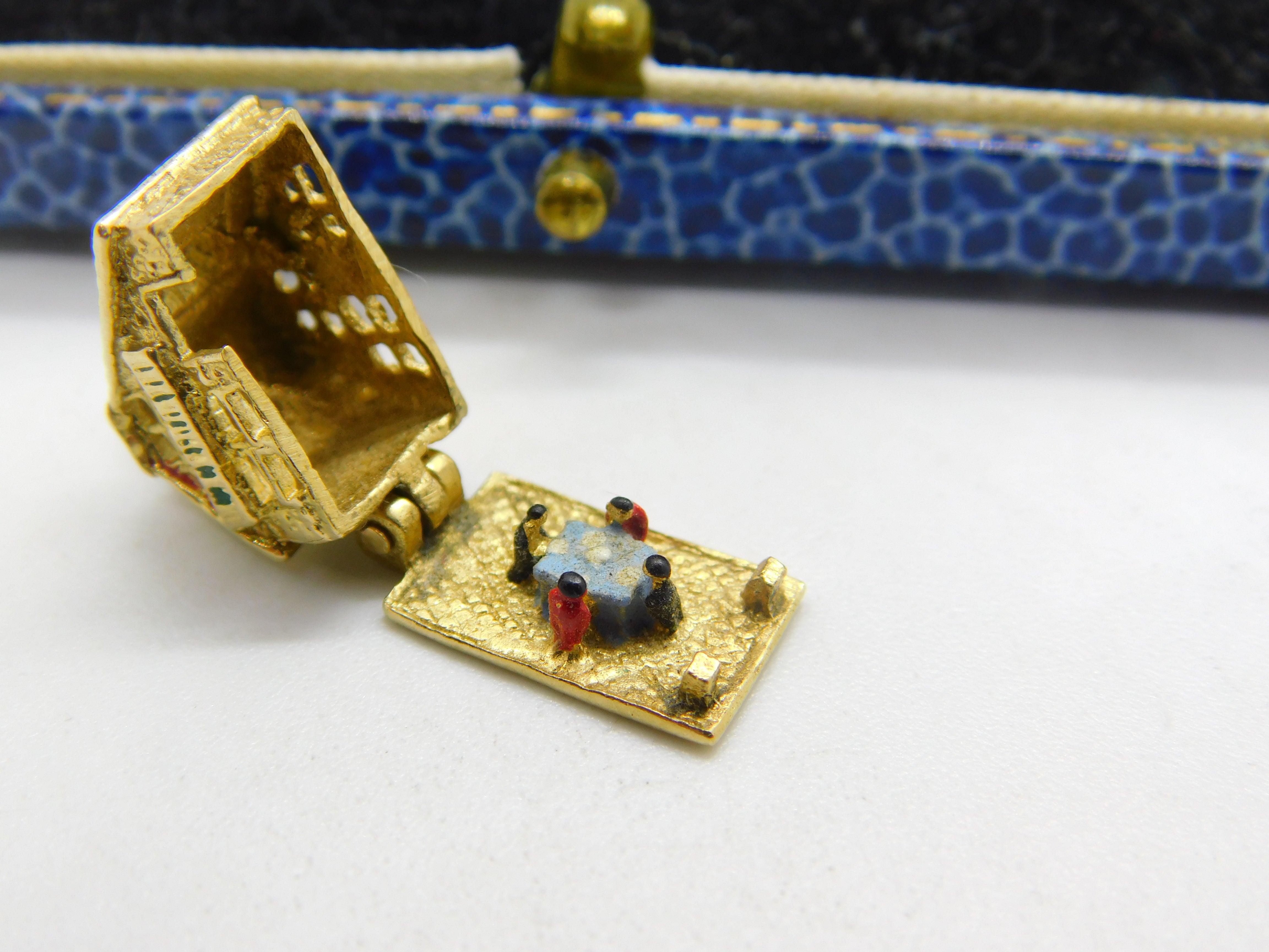 Details: A fantastic and wonderfully designed vintage 9ct yellow gold charm or pendant opening to reveal a family eating dinner around the table finished in enamel hallmarked London c1970 to the base. This is a wonderful item that would make a perfect gift or addition to any collection. The BOX pictured is for PRESENTATION ONLY and is NOT included in the listings but used to frame the pictures unless specifically stated otherwise.