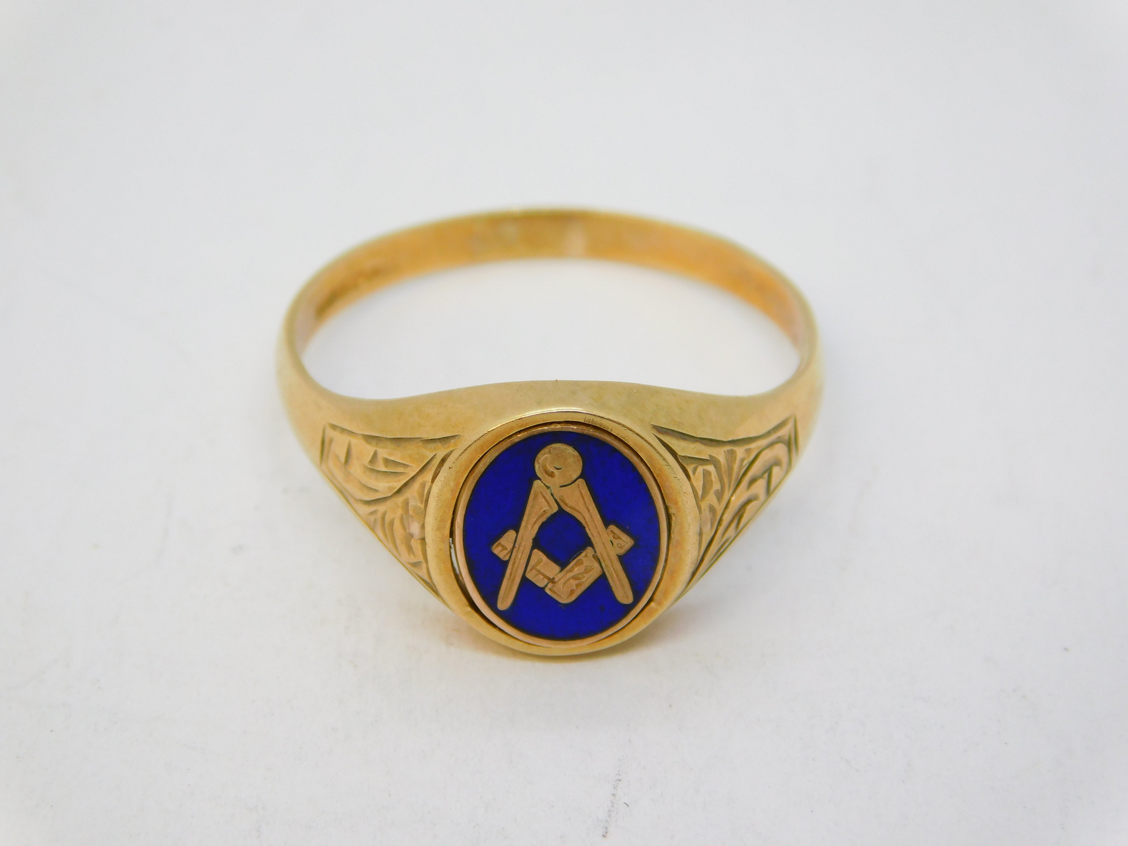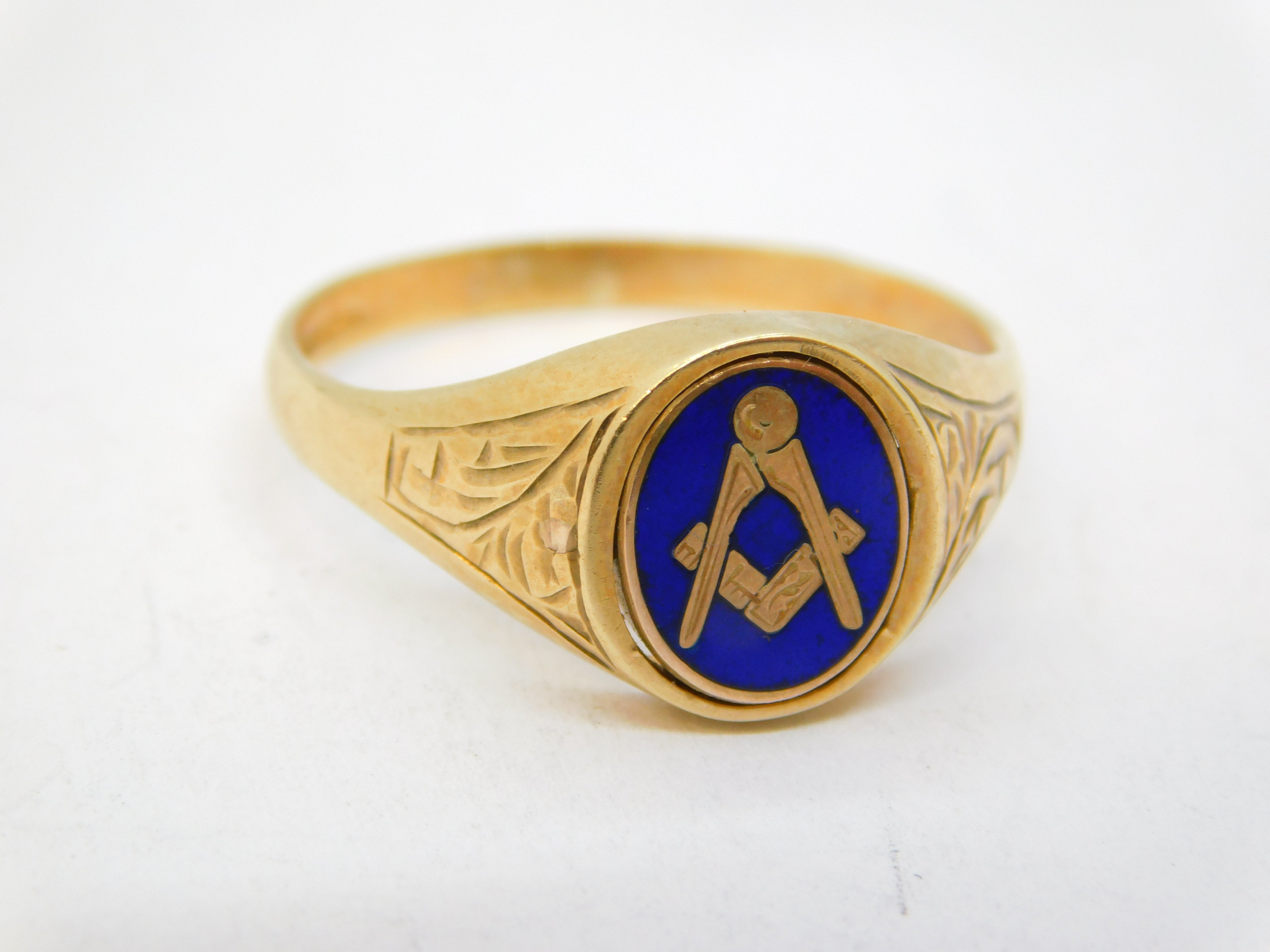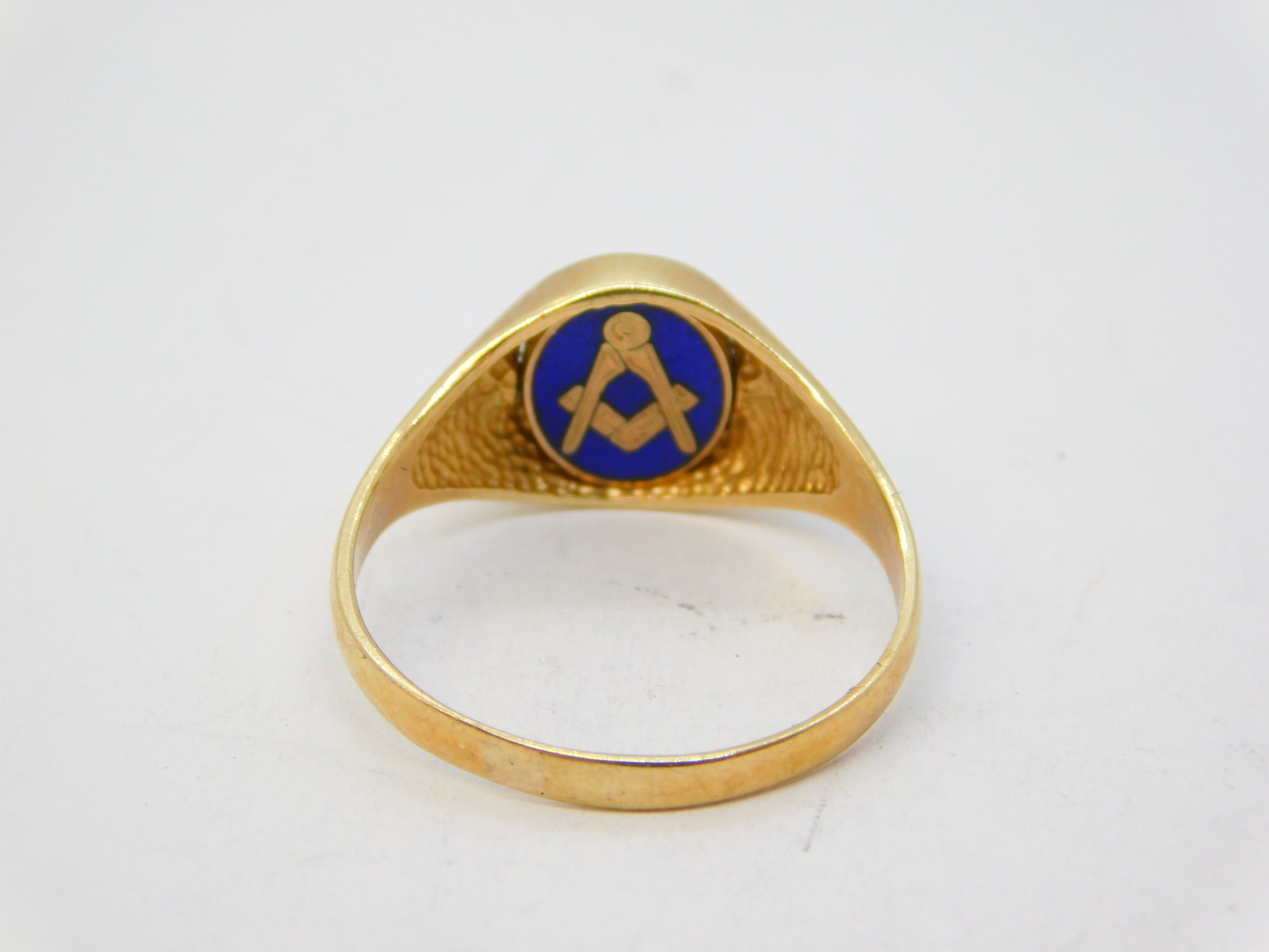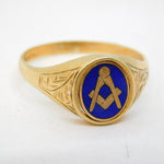 9ct Yellow Gold Enamel Masonic Spinning Signet Ring Vintage 1991 Birmingham